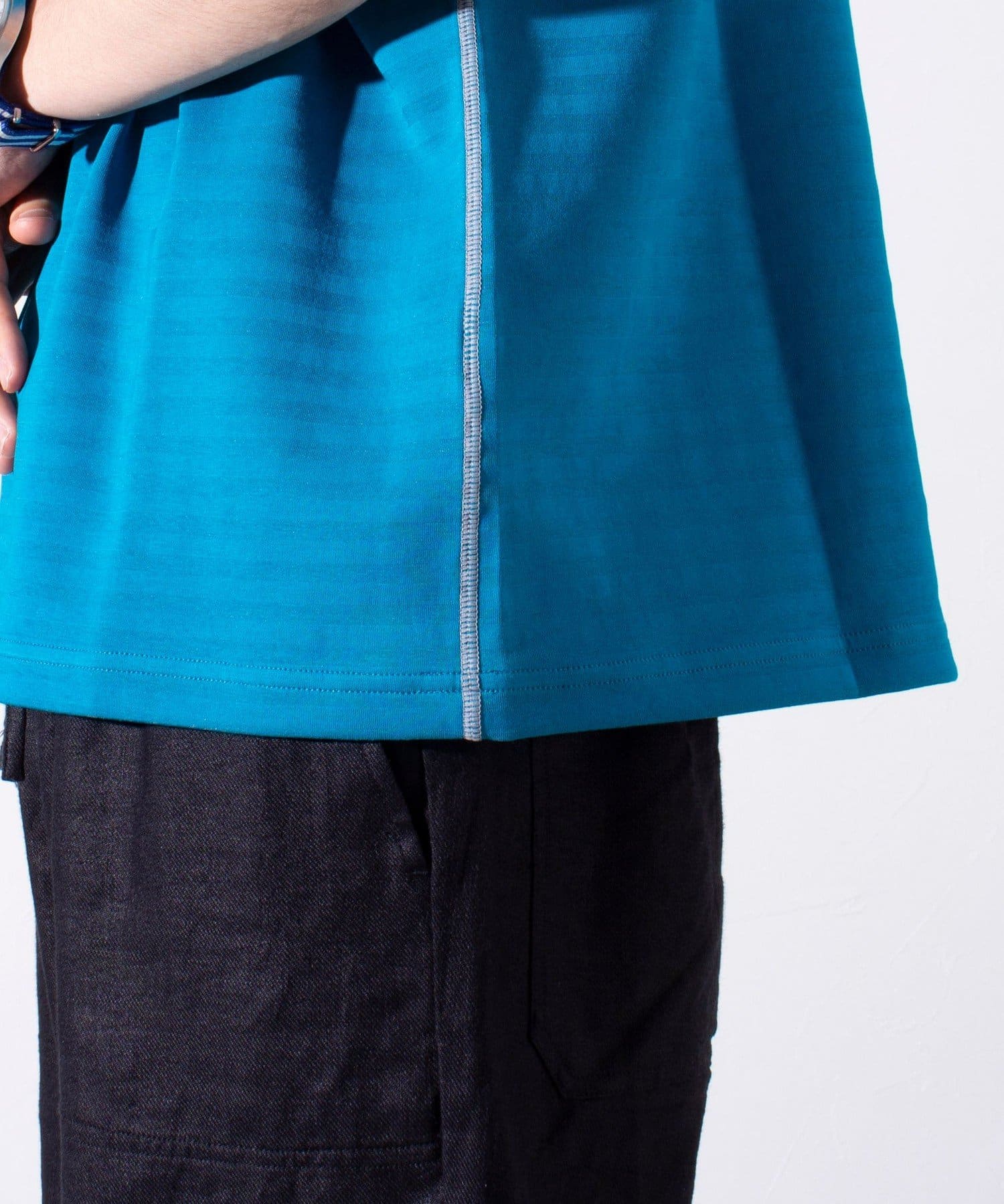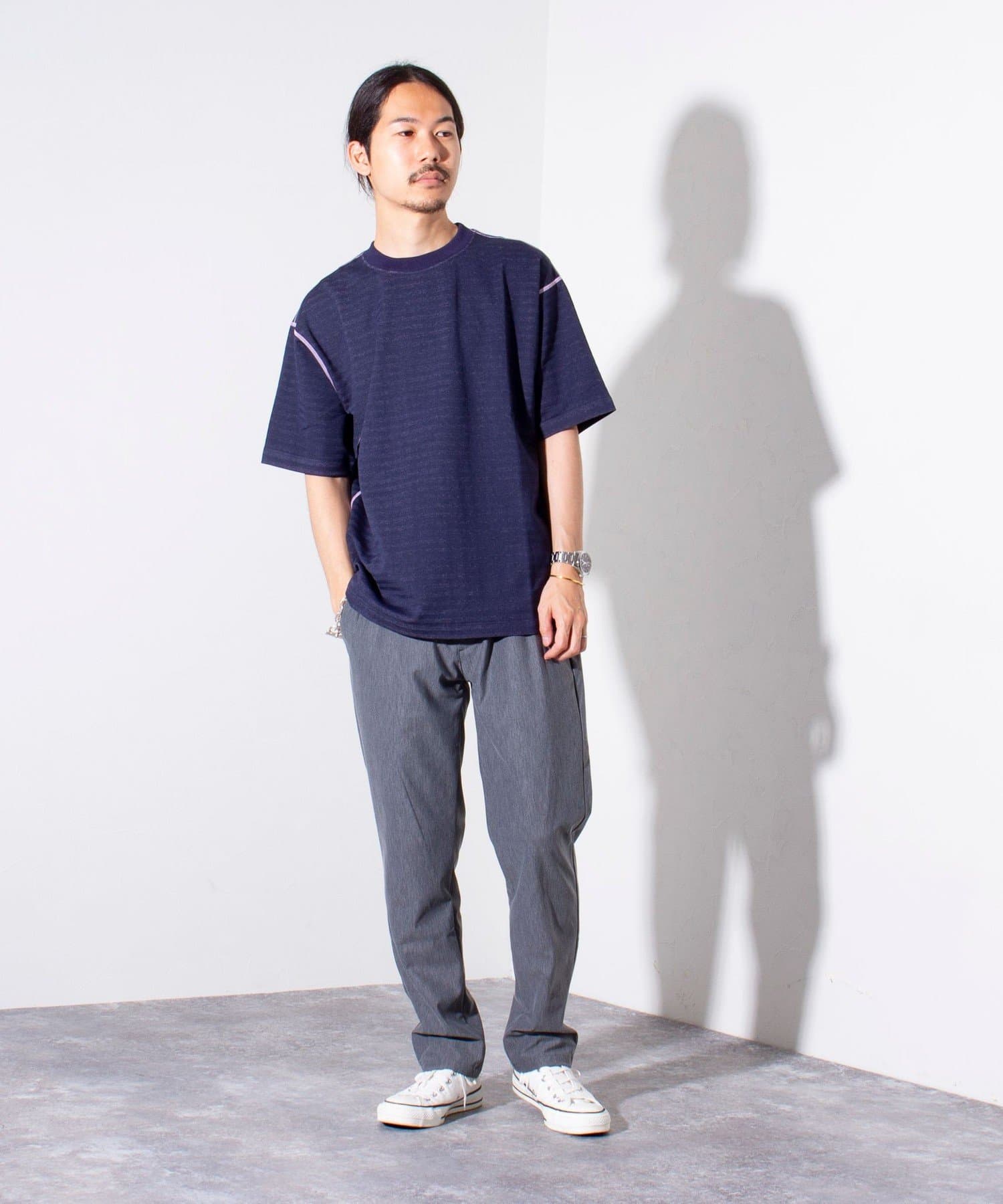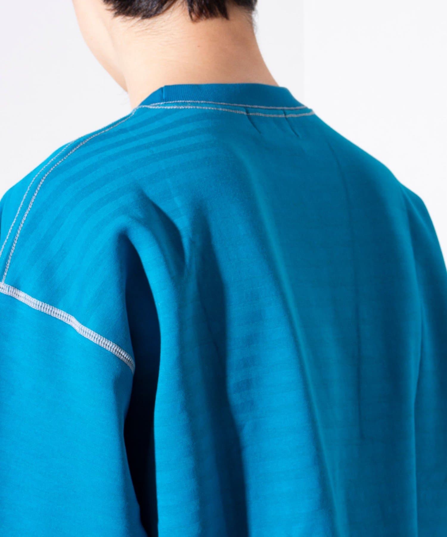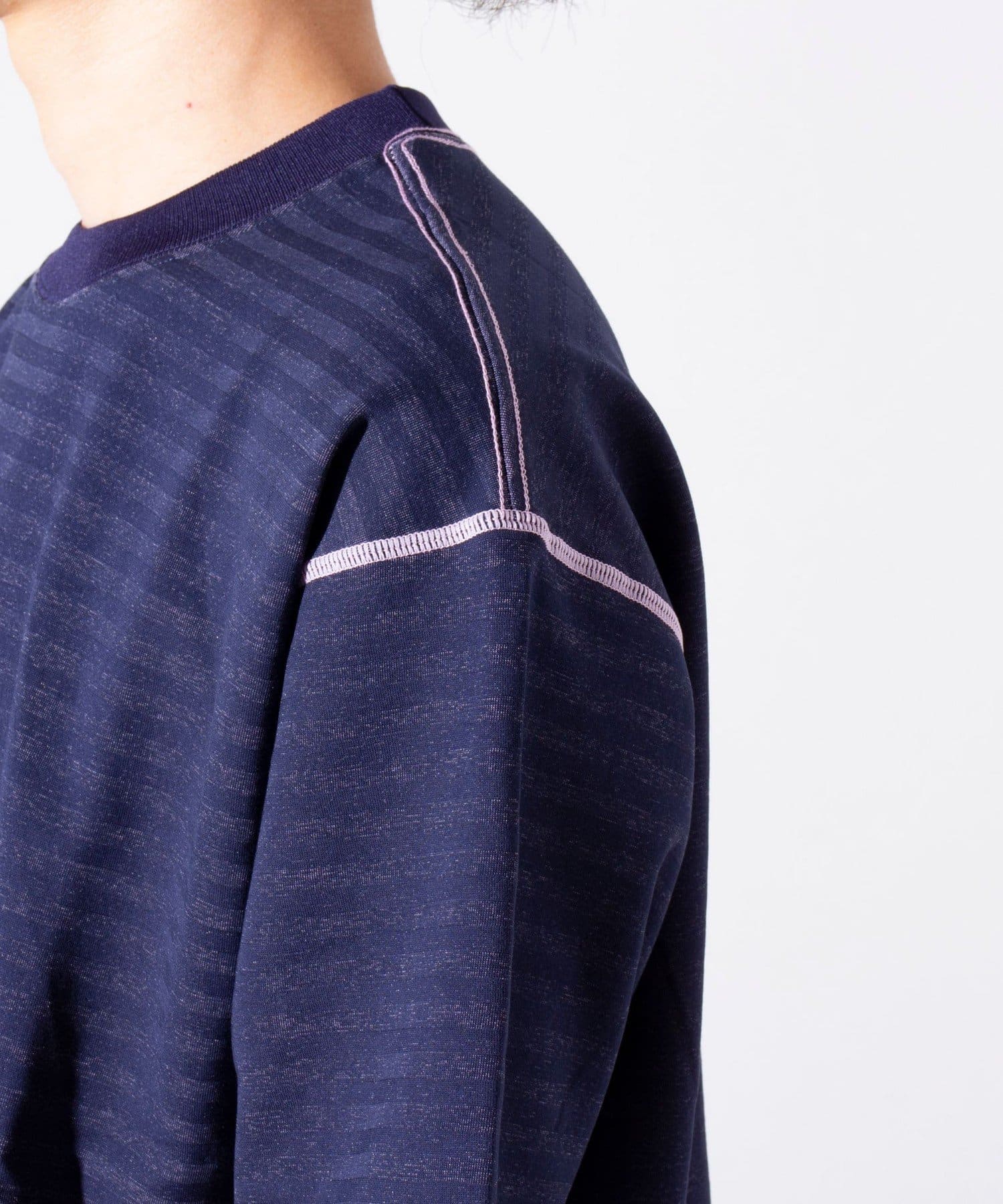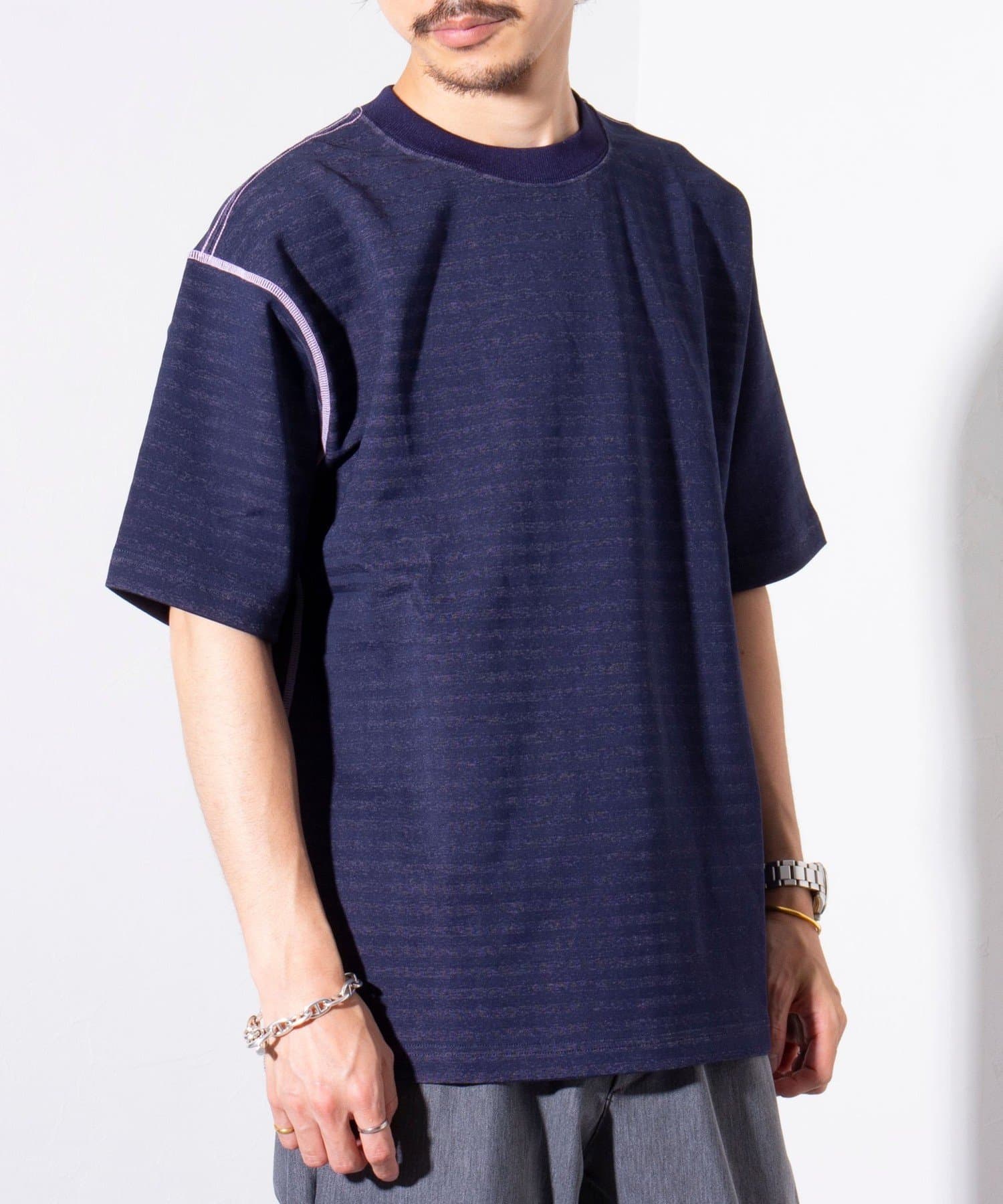 脇と袖下の配色ステッチが特徴で、1枚着はもちろん羽織りもののインナーとしても活躍するアイテムです。
