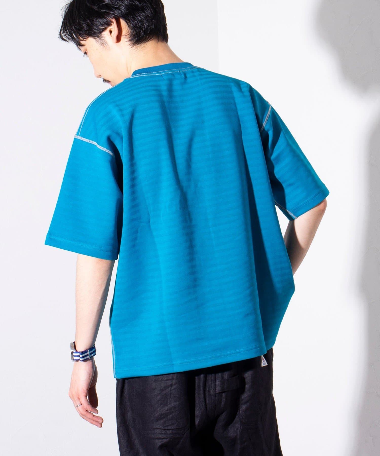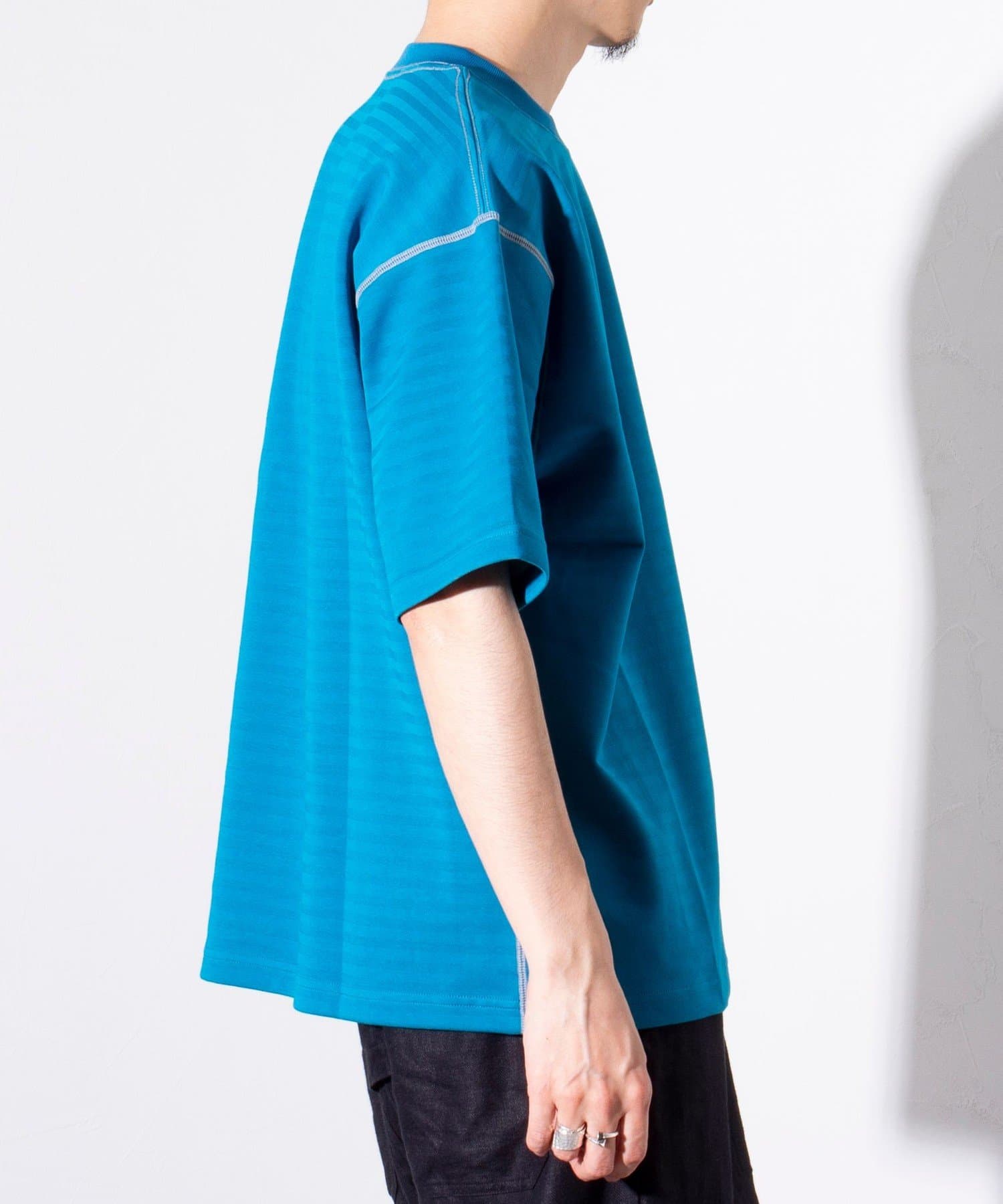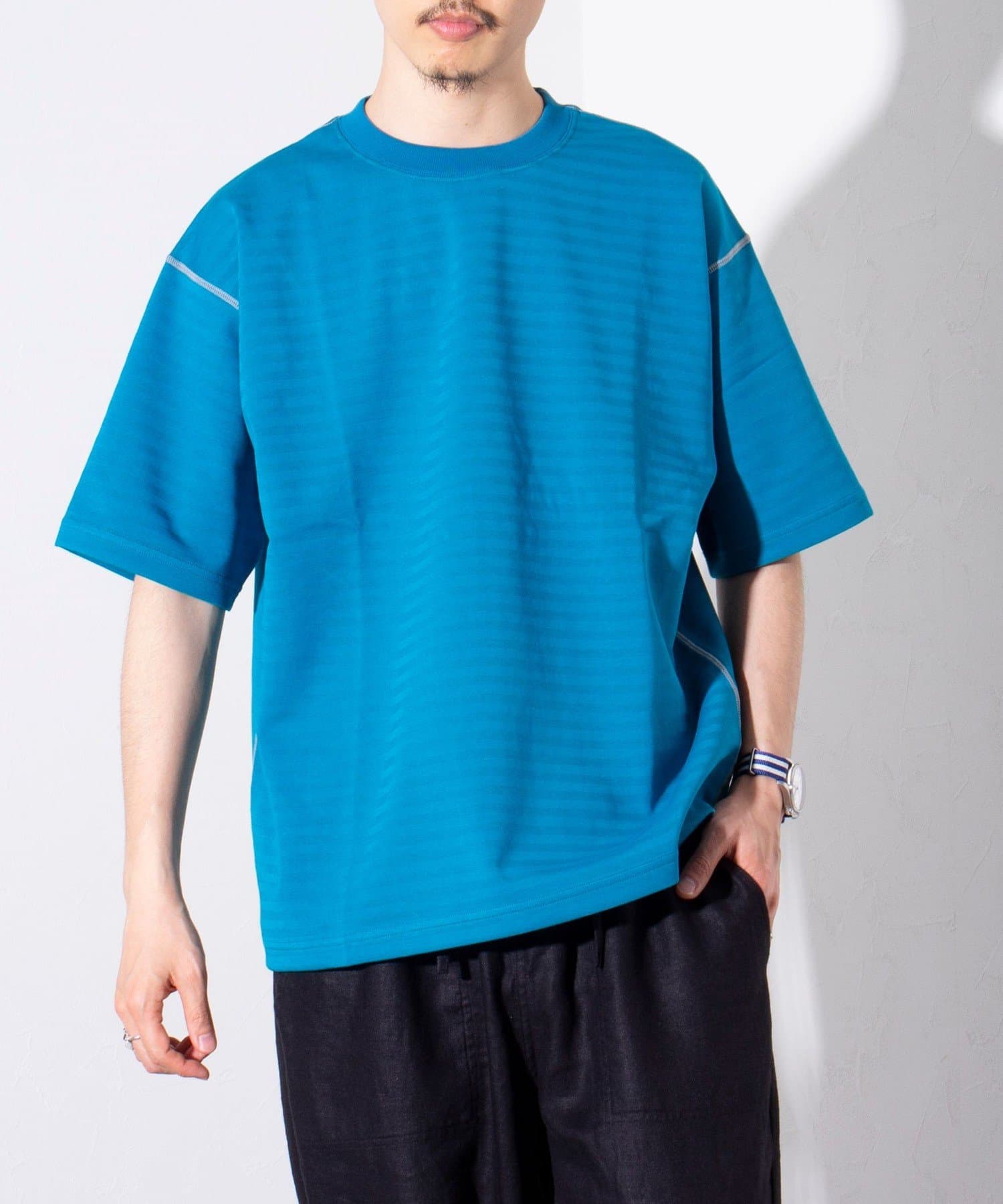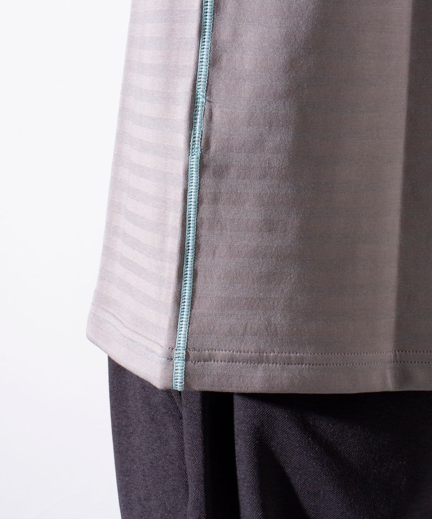 脇と袖下の配色ステッチが特徴で、1枚着はもちろん羽織りもののインナーとしても活躍するアイテムです。