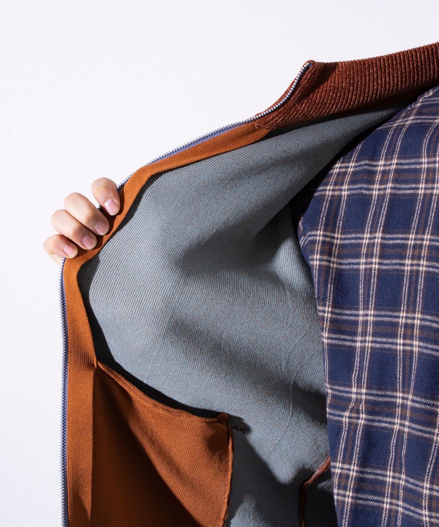 表裏が配色になった、ダブルフェイス素材のドライバーズニットです。
