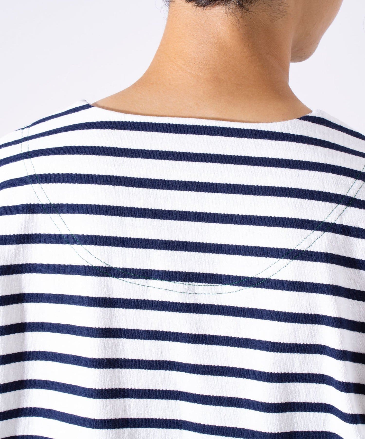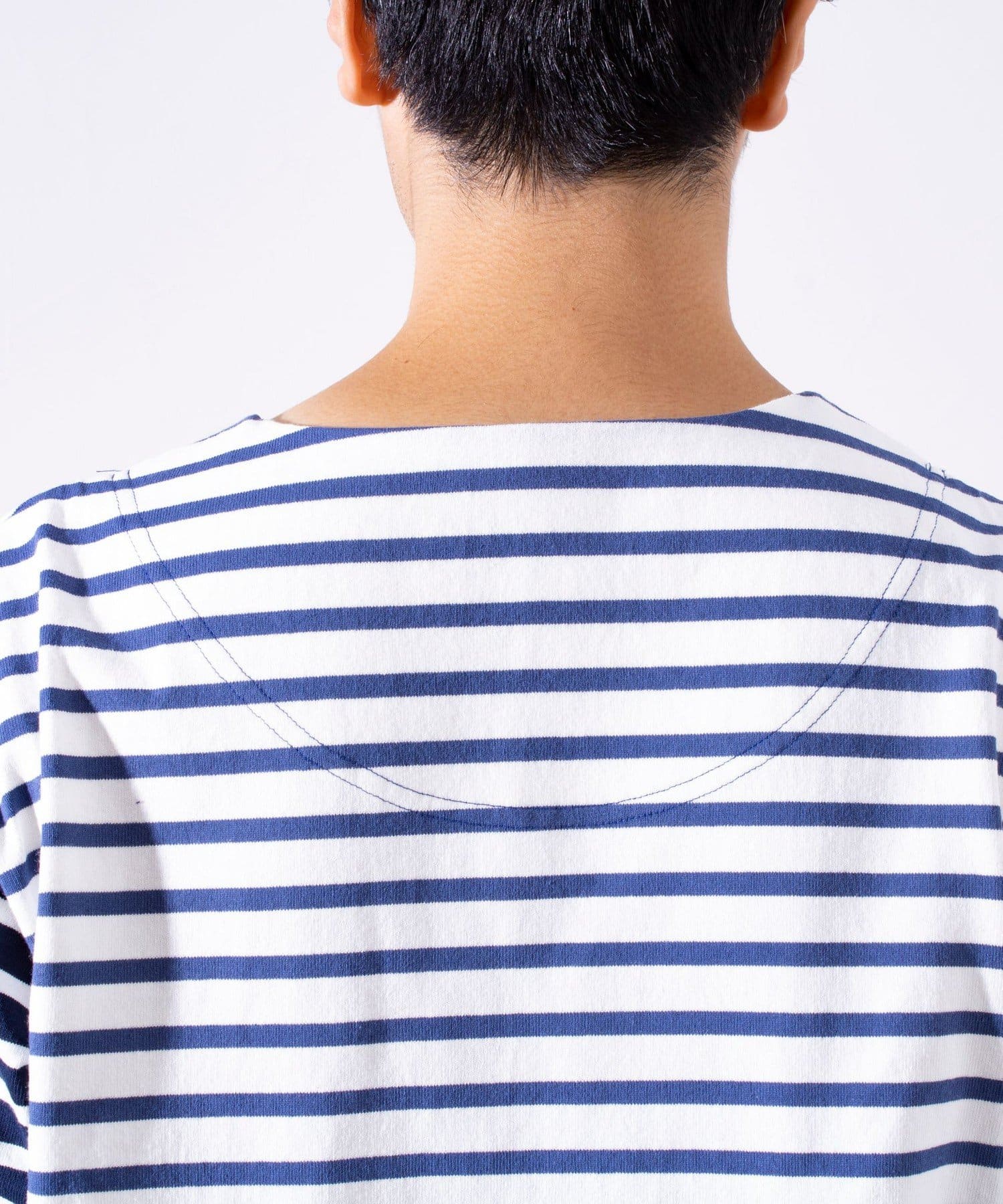 程よく詰めた浅いボートネックがポイント。