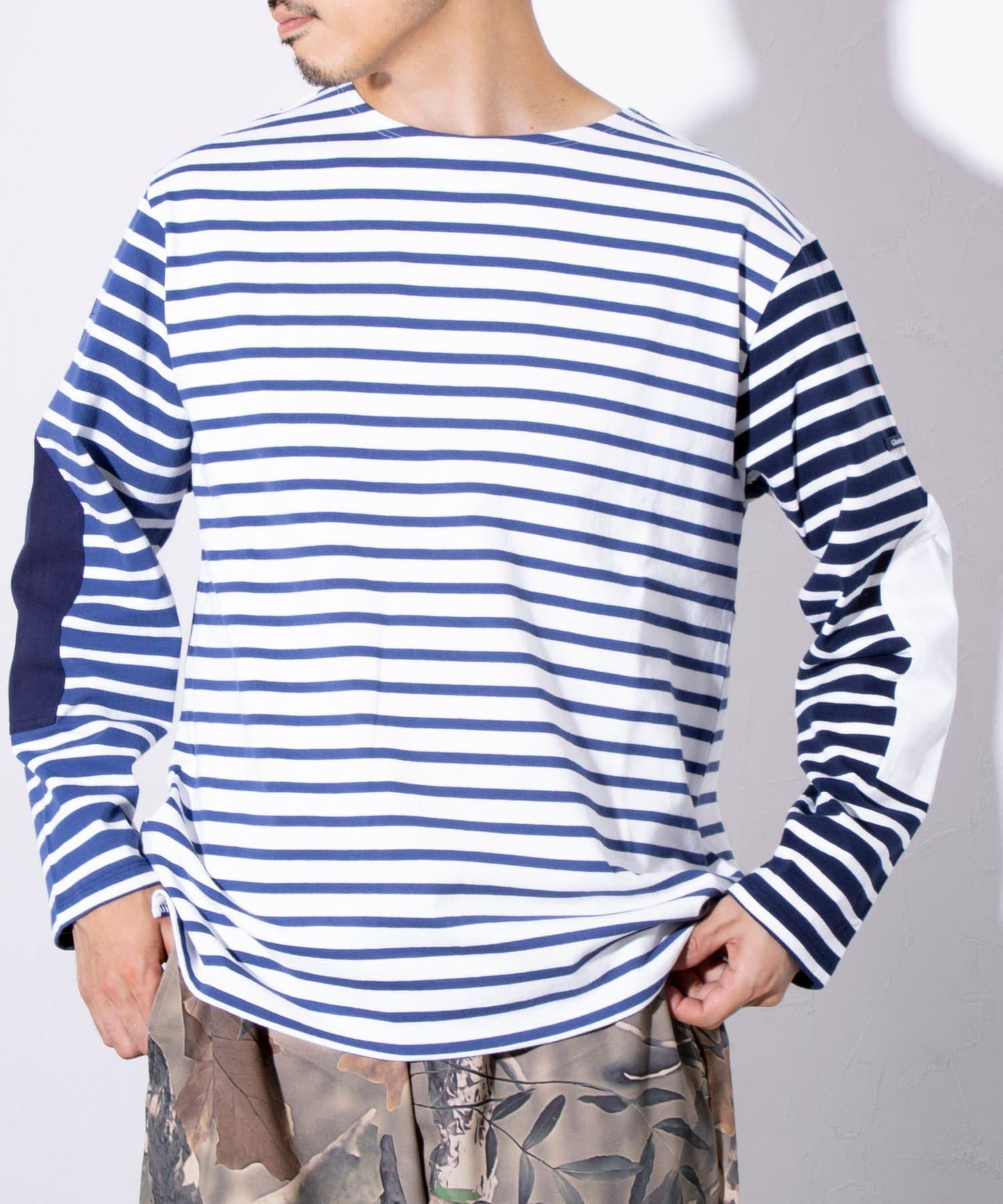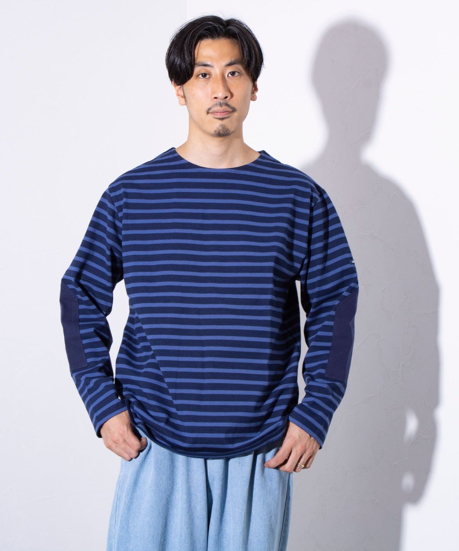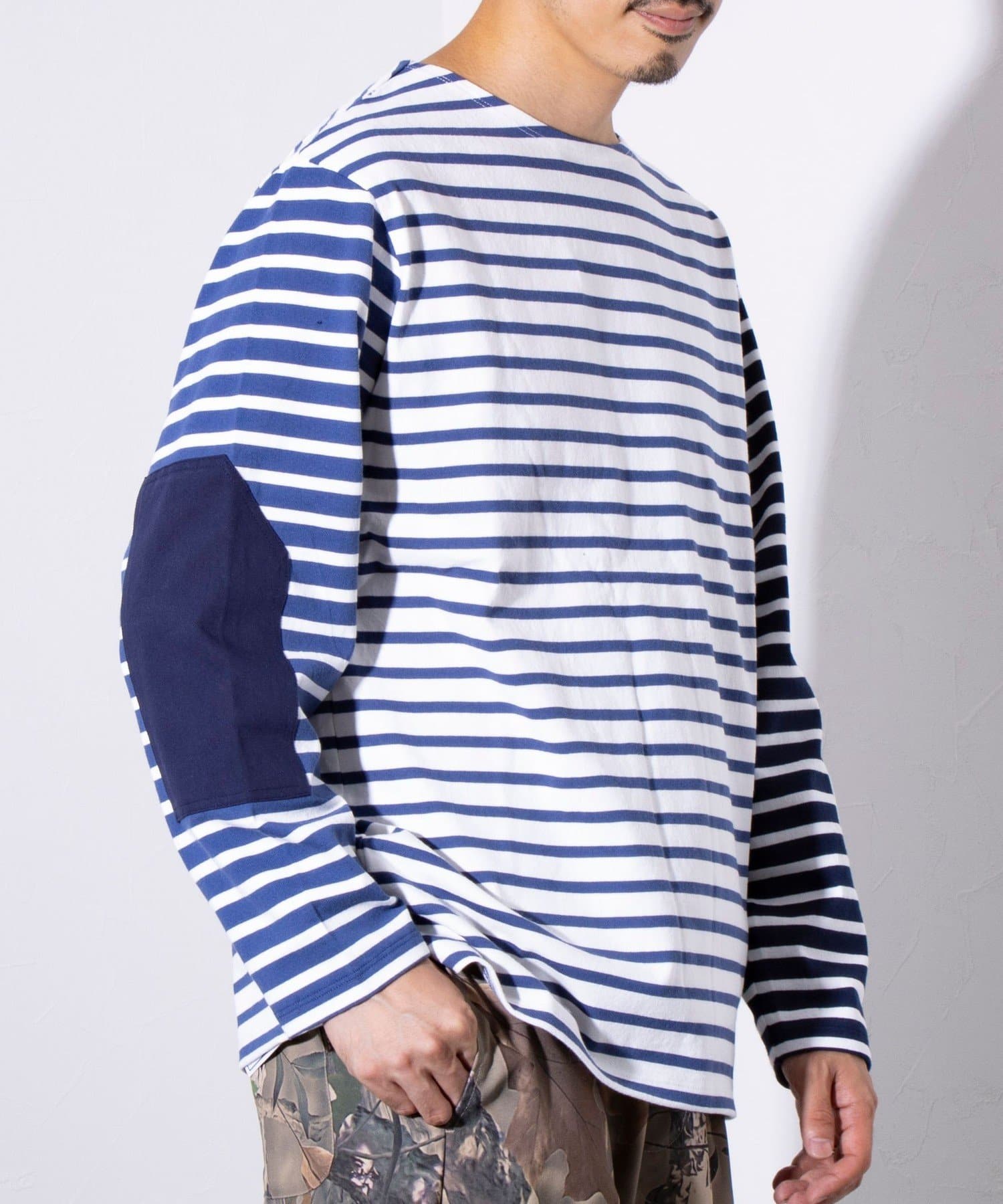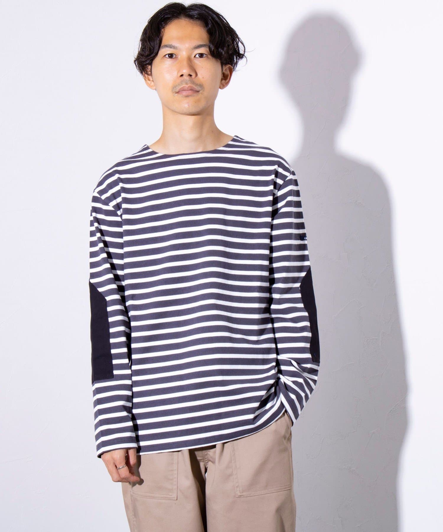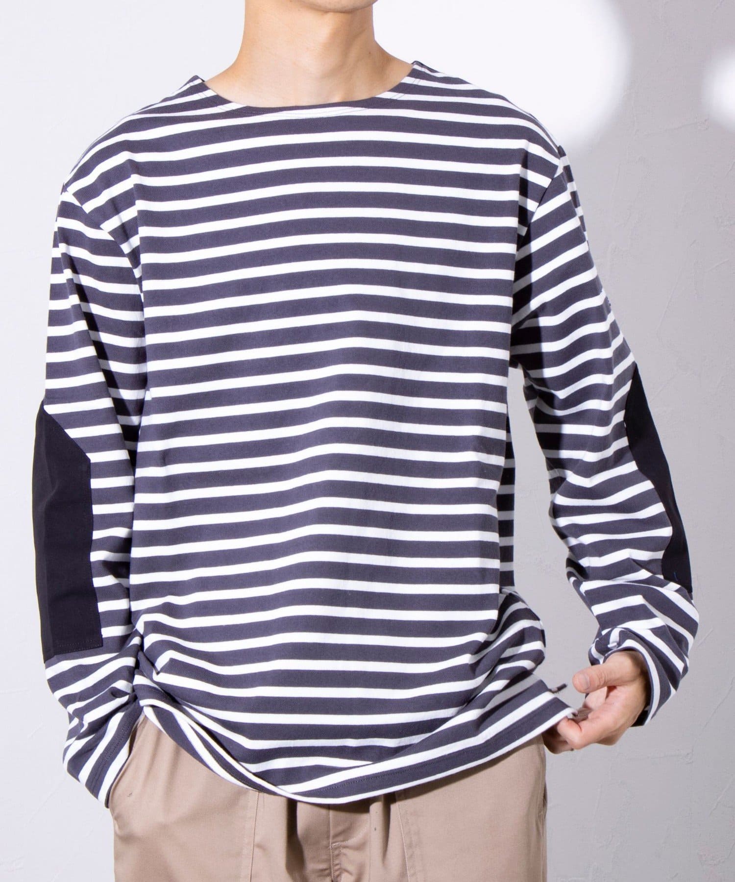 【GLOSTER】バスクボーダー エルボーパッチ ボーダーロンT