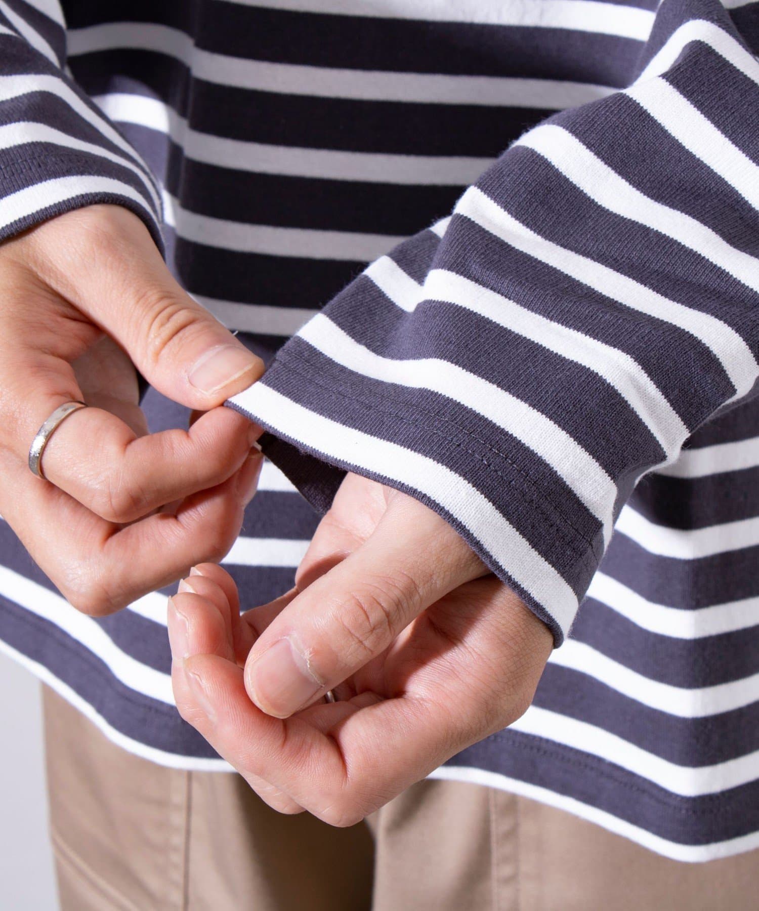綿100%の天然素材特有の肌触りで着心地抜群なボーダーカットソー。