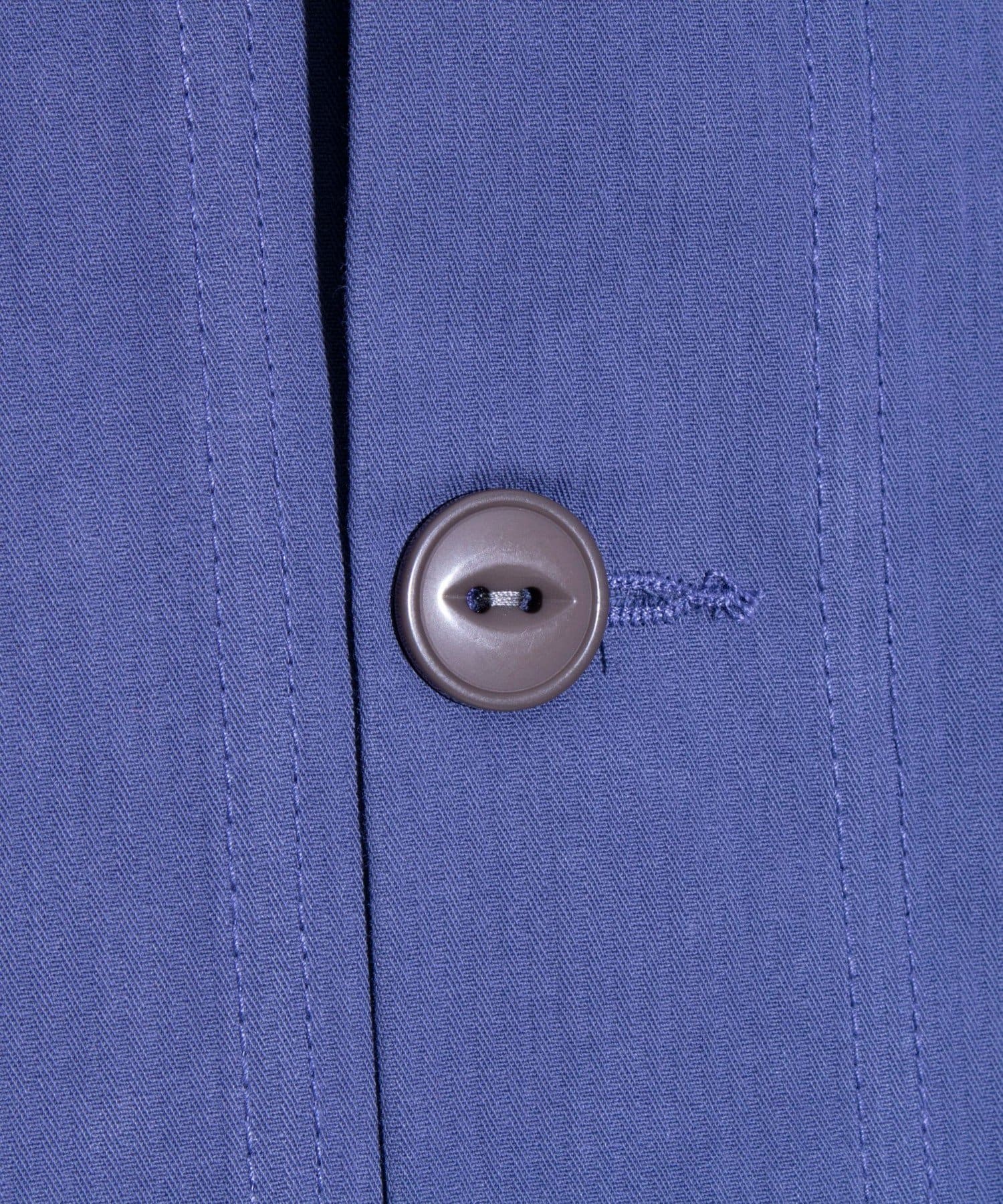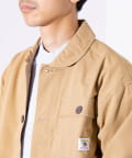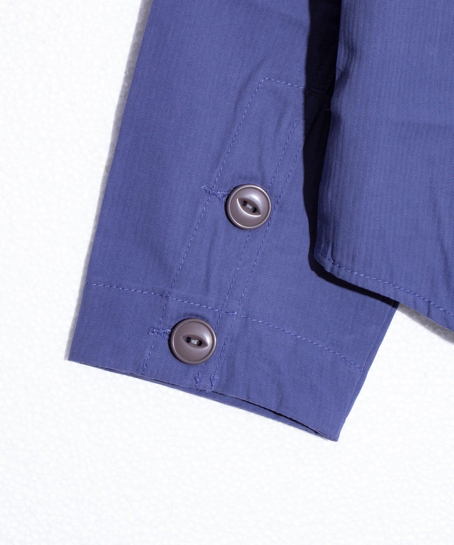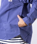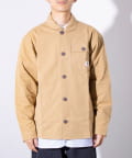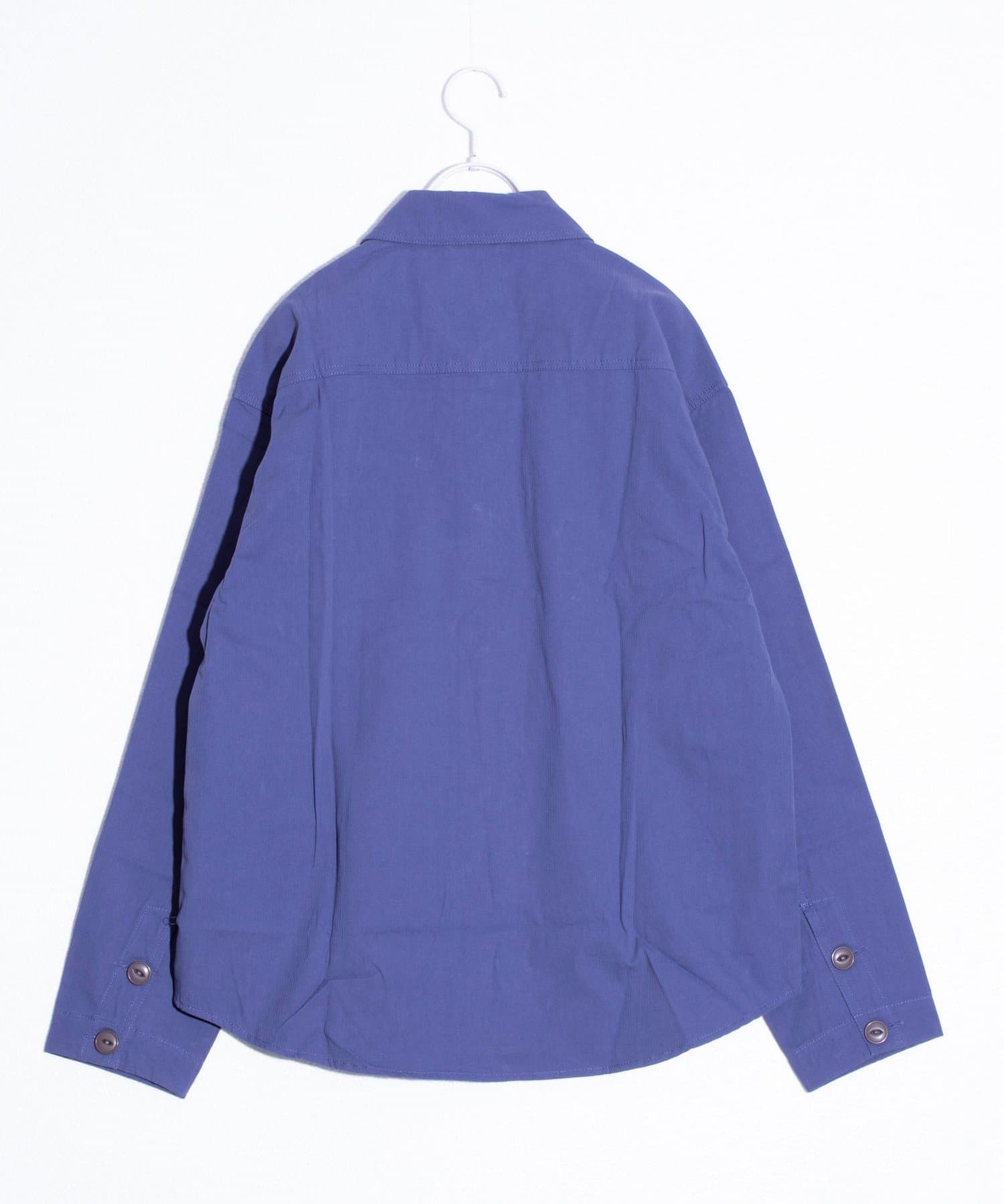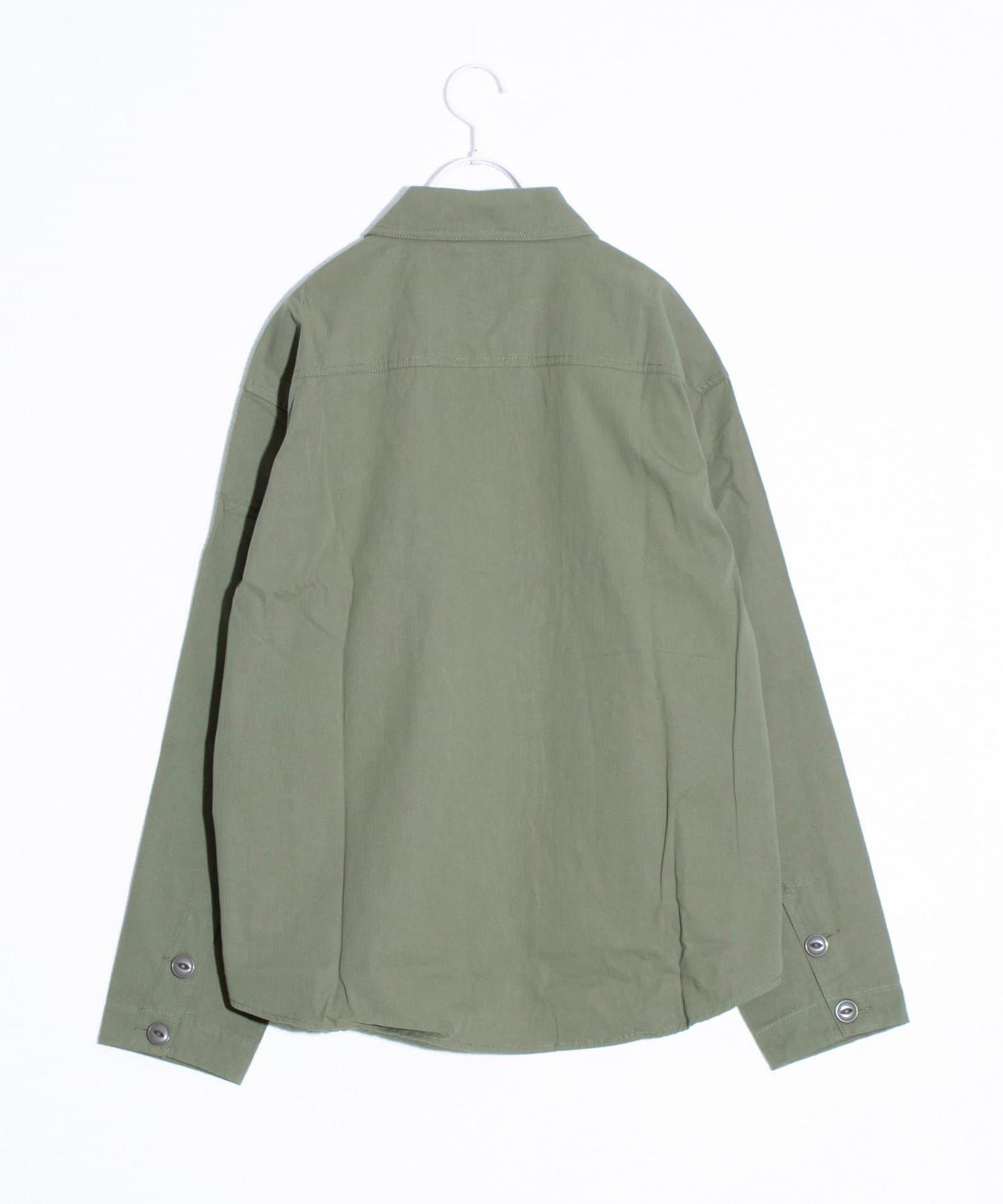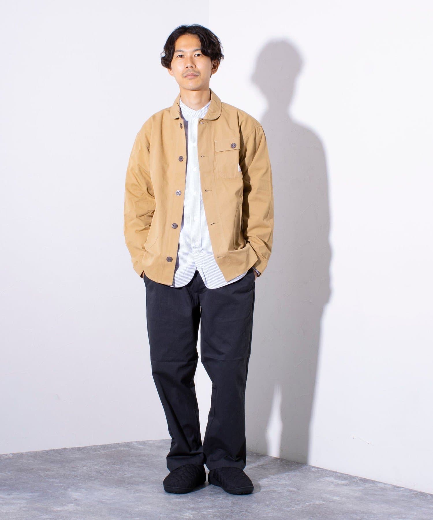 さっと羽織るだけでサマになる秋の羽織りとして丁度良い丸襟カバーオールシャツ。