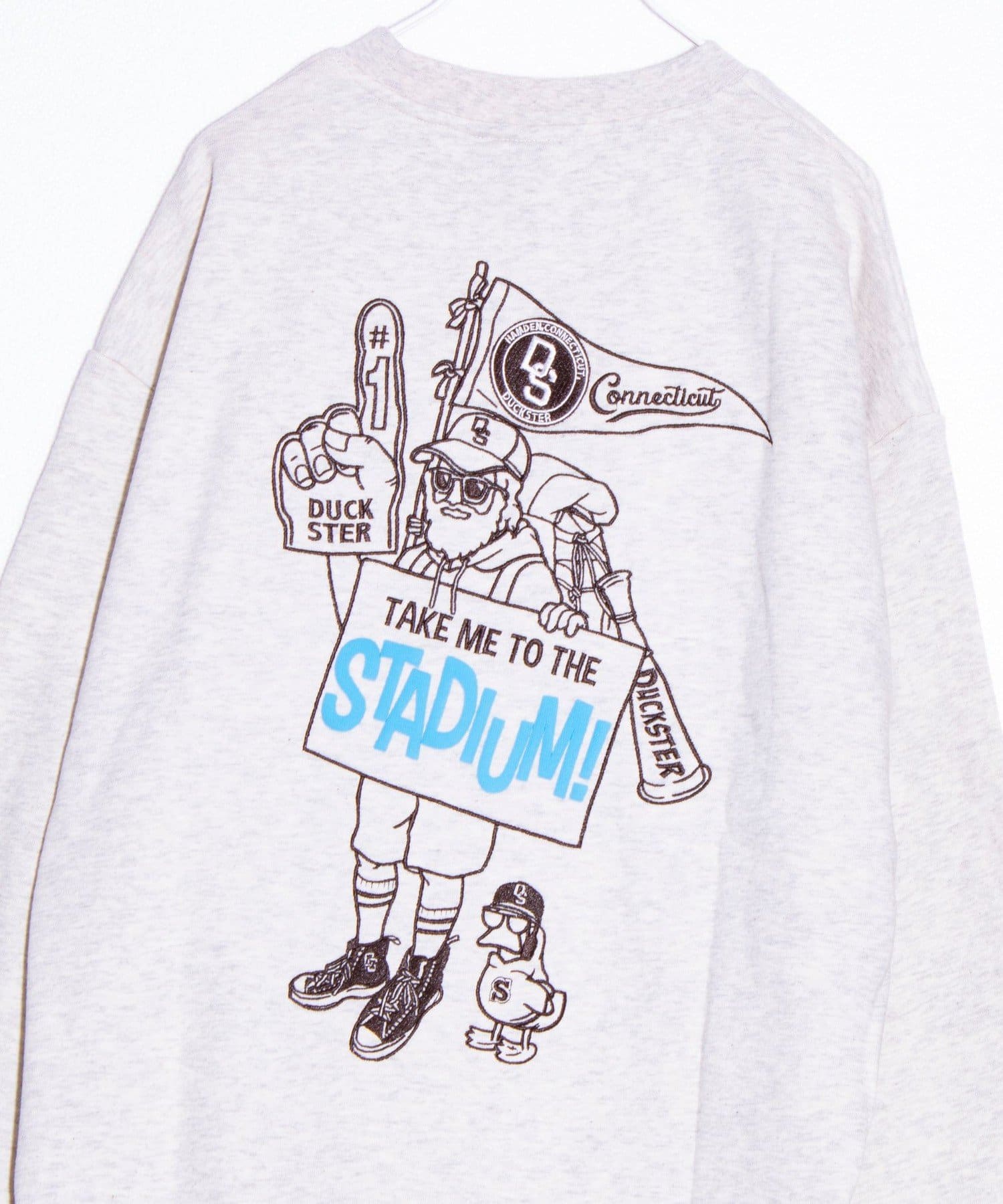 【Duckster】バックプリント 裏毛クルーネックスウェット(ヒッチハイク)