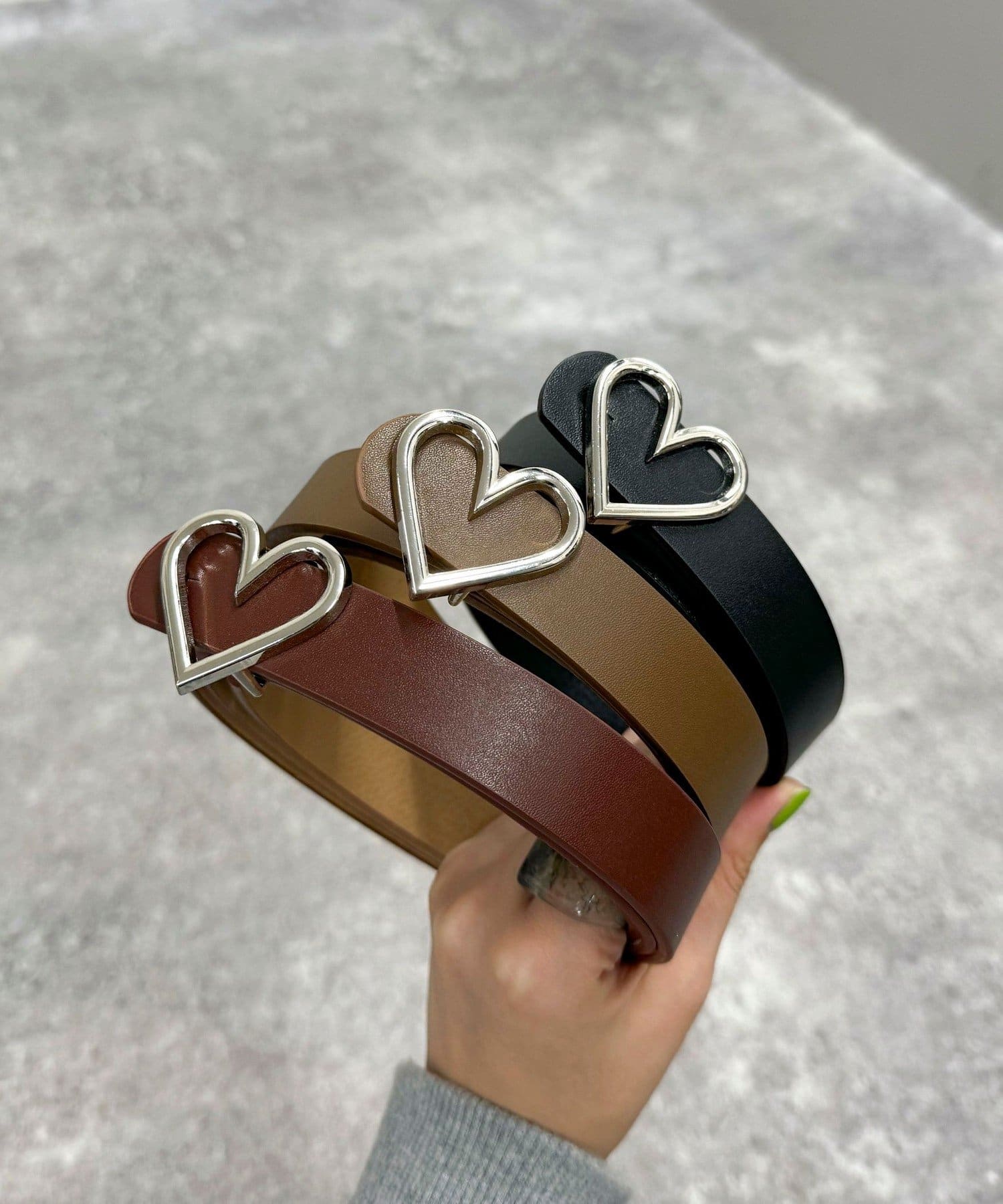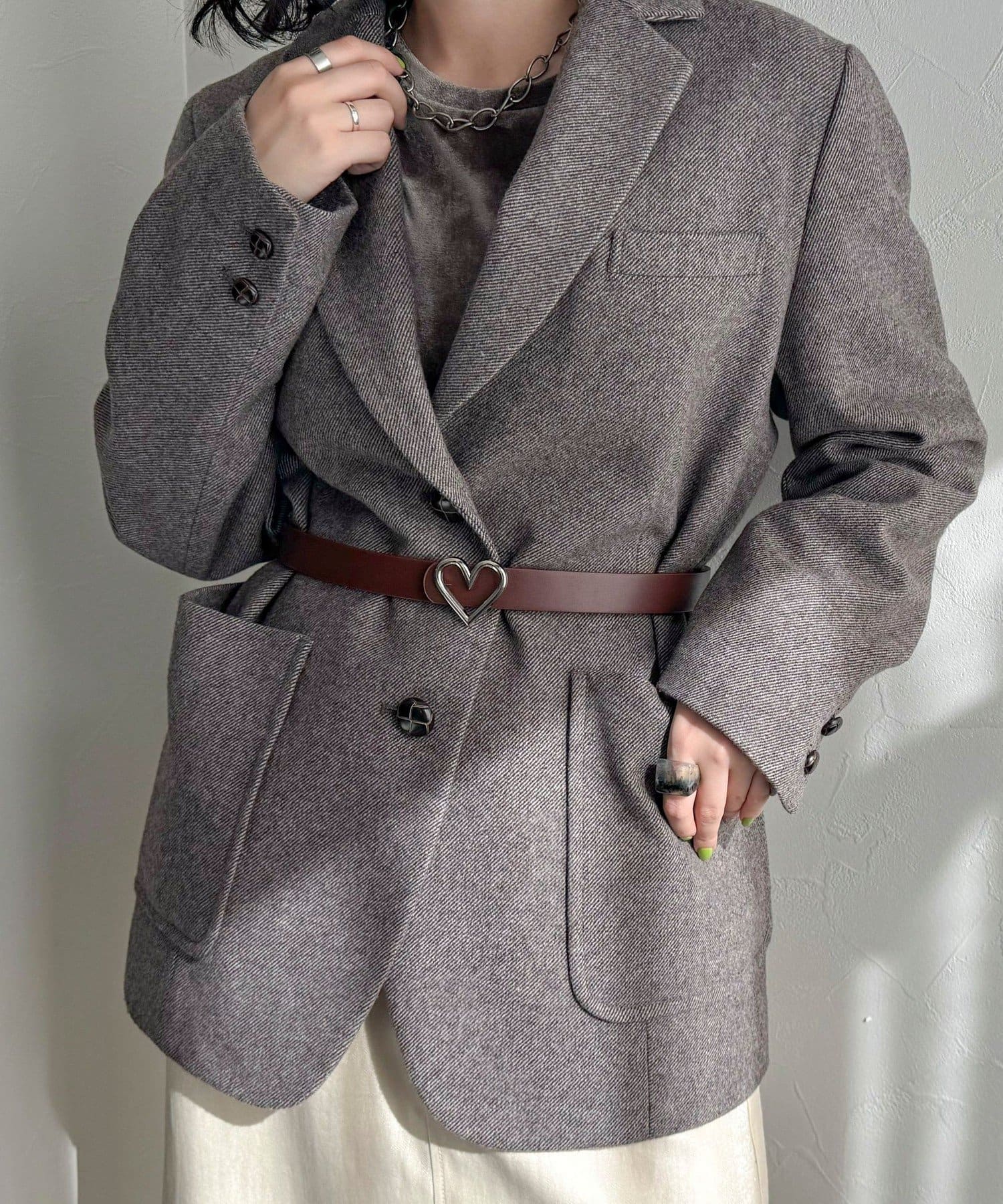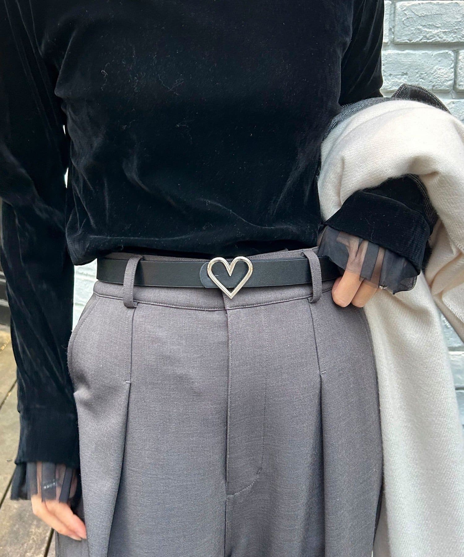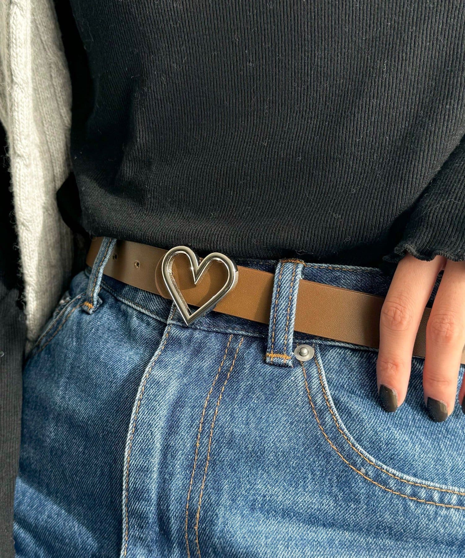 シンプルコーデに映えるハートバックルベルト