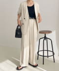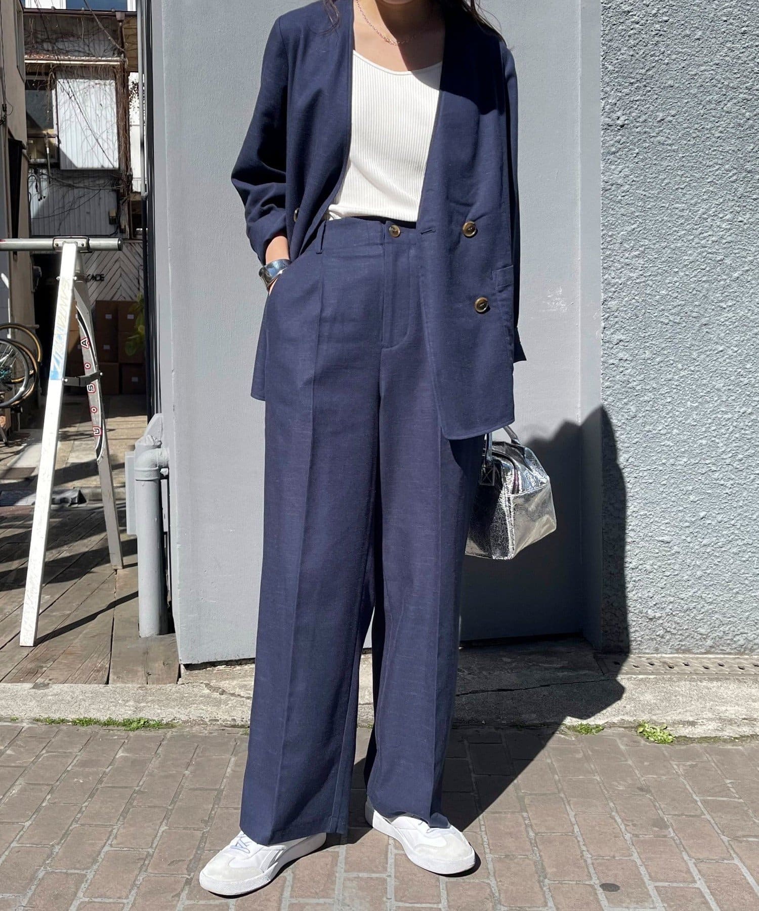 ・同素材のジャケットとのセットアップもオススメです(4-0310-2-25-001【リネンブレンドVカラージャケット】)
