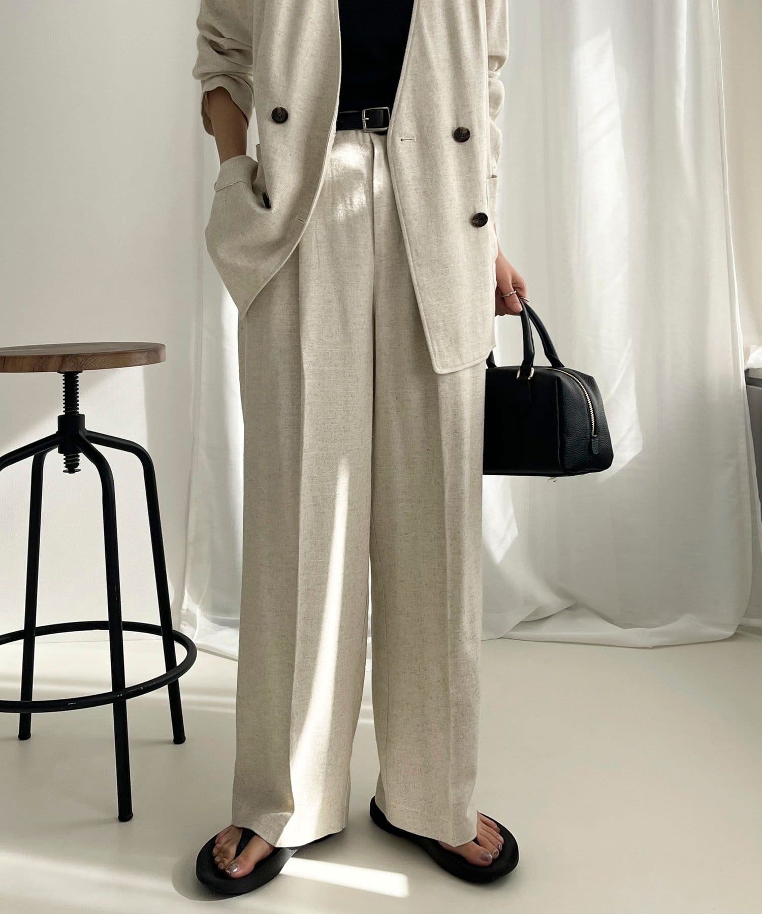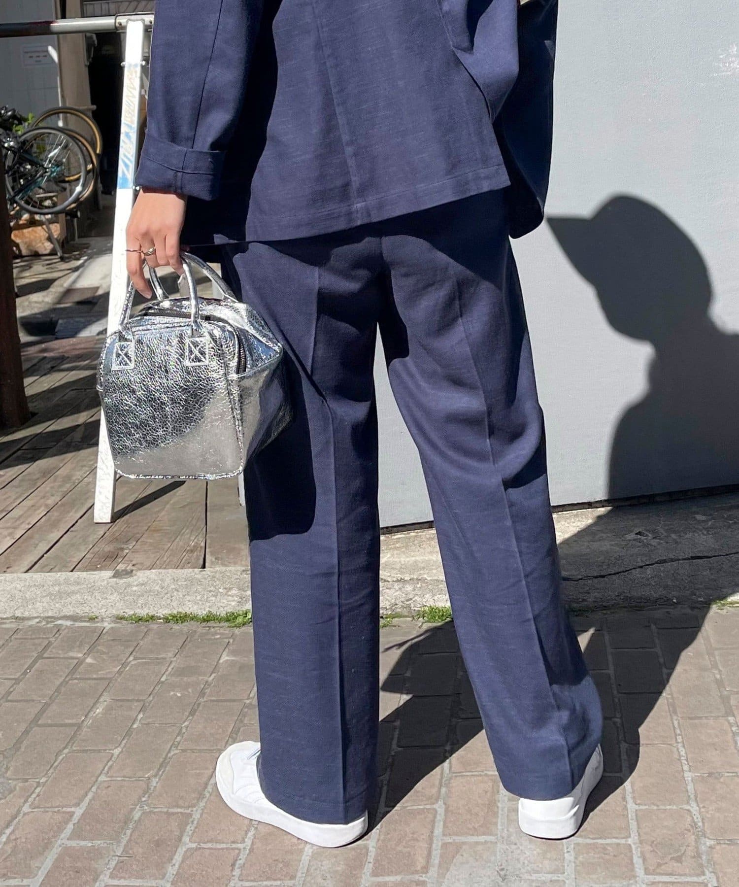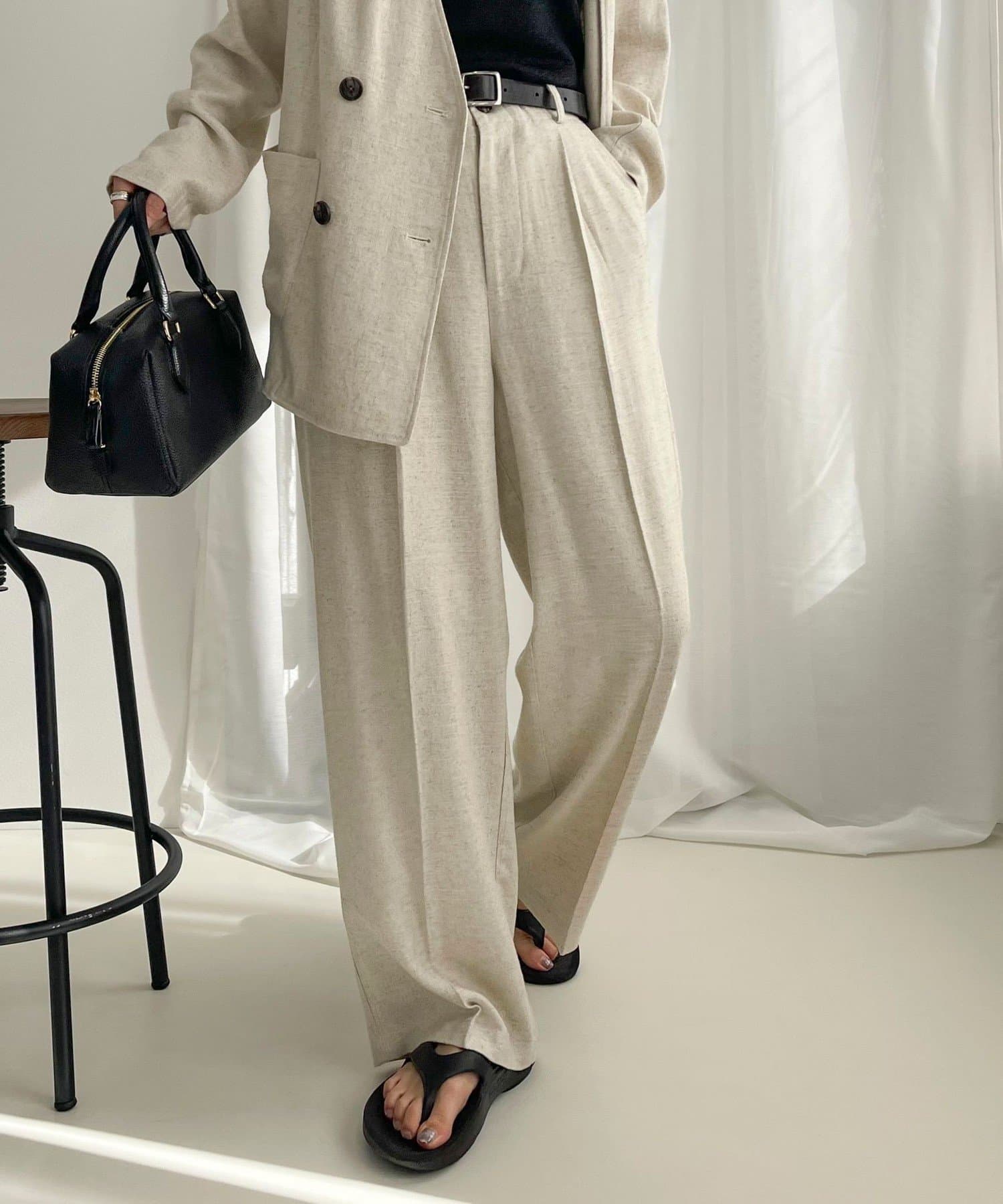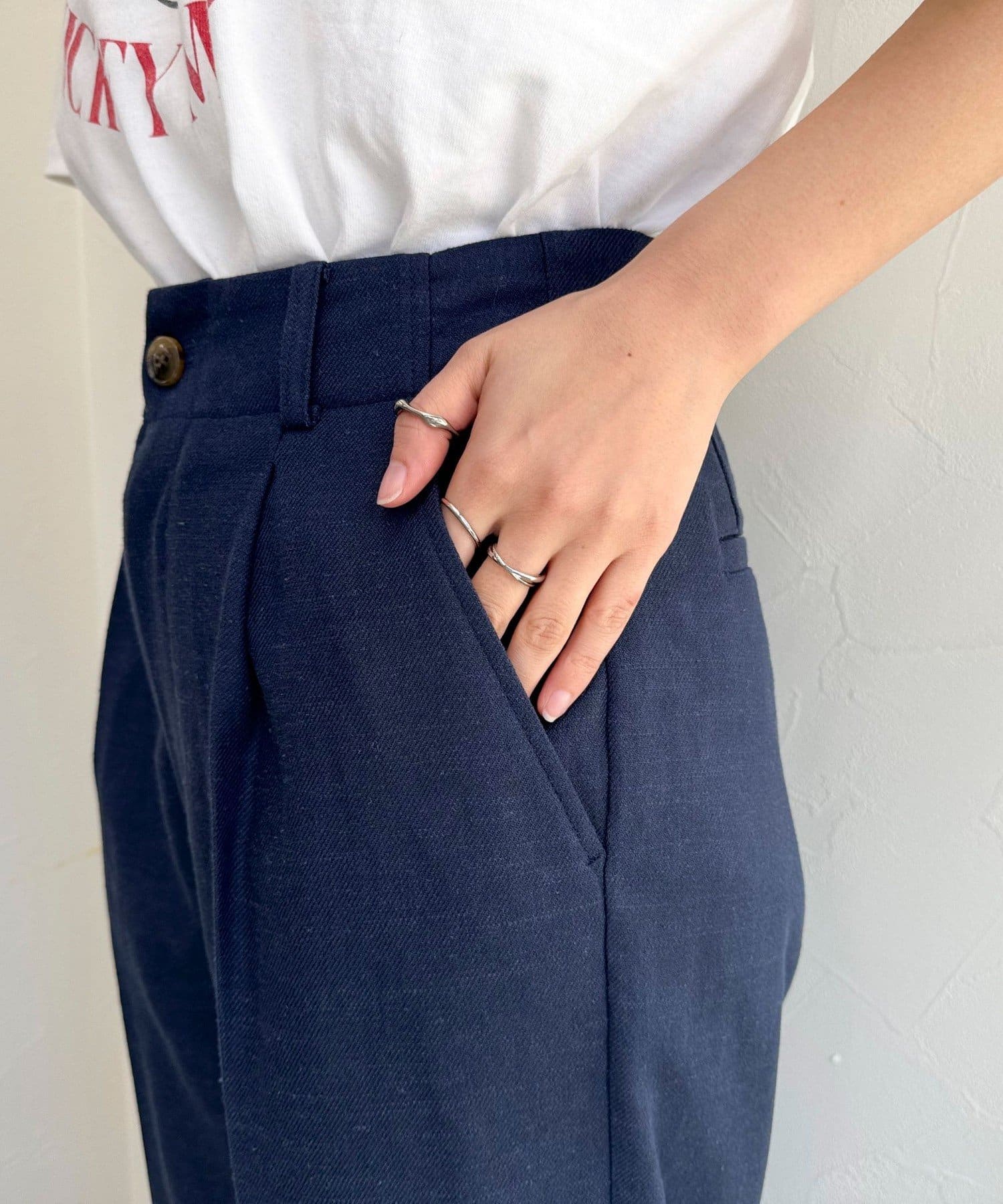 ・レーヨン混麻素材のナチュラルな雰囲気漂うスラックスパンツです