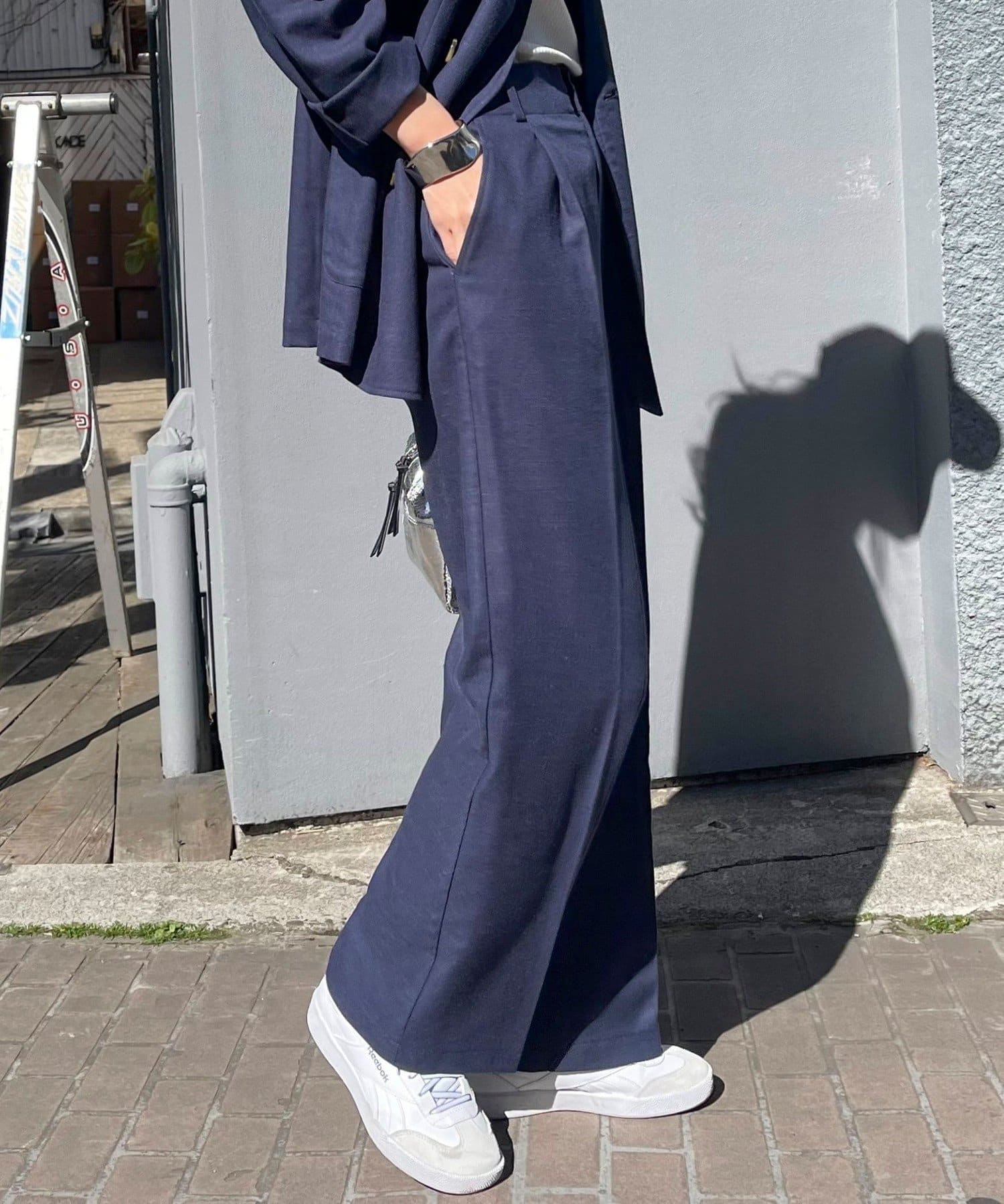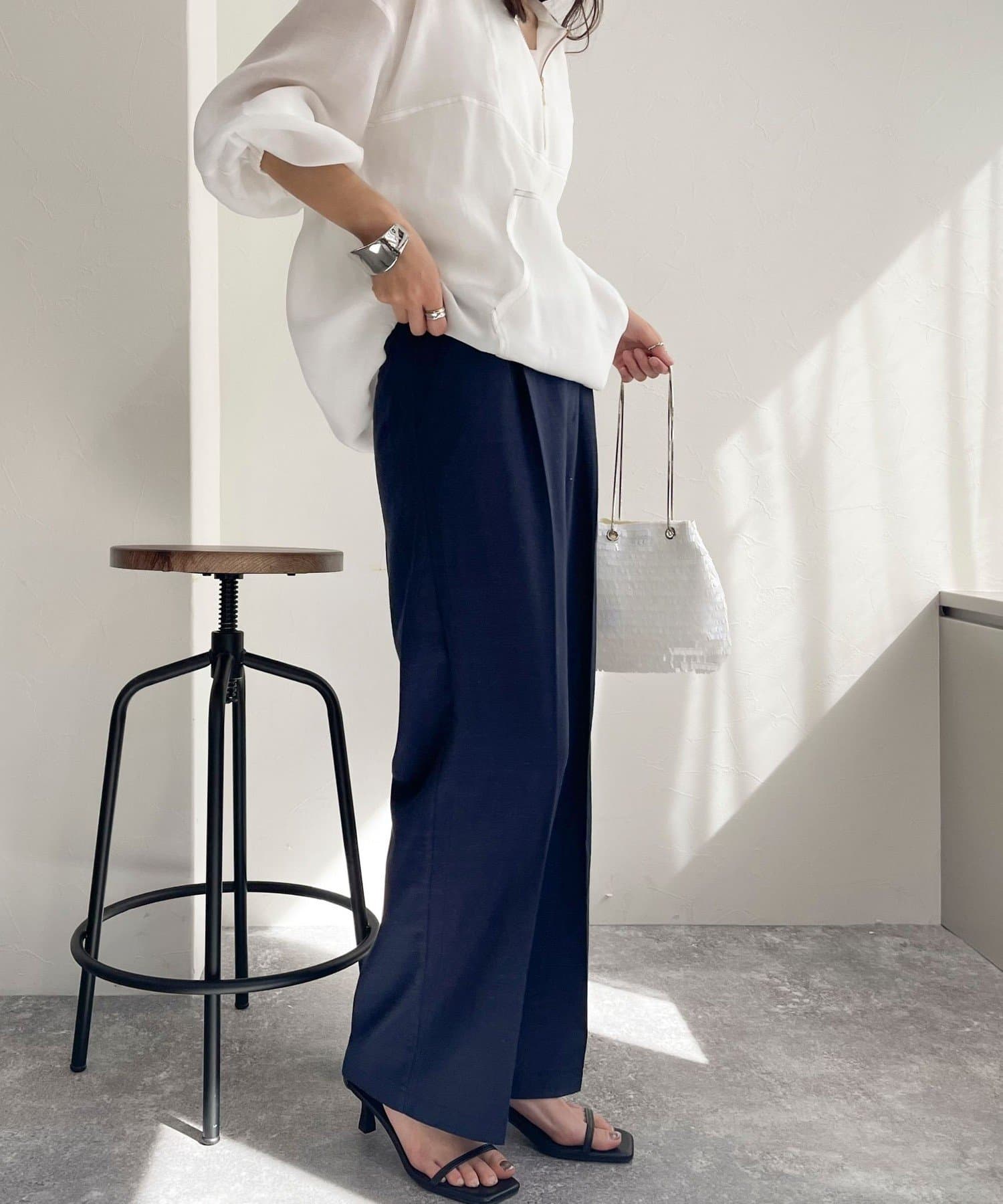 ・タック入りセンタープレスですらりときれい見えが叶うシルエットで脚長効果も◎