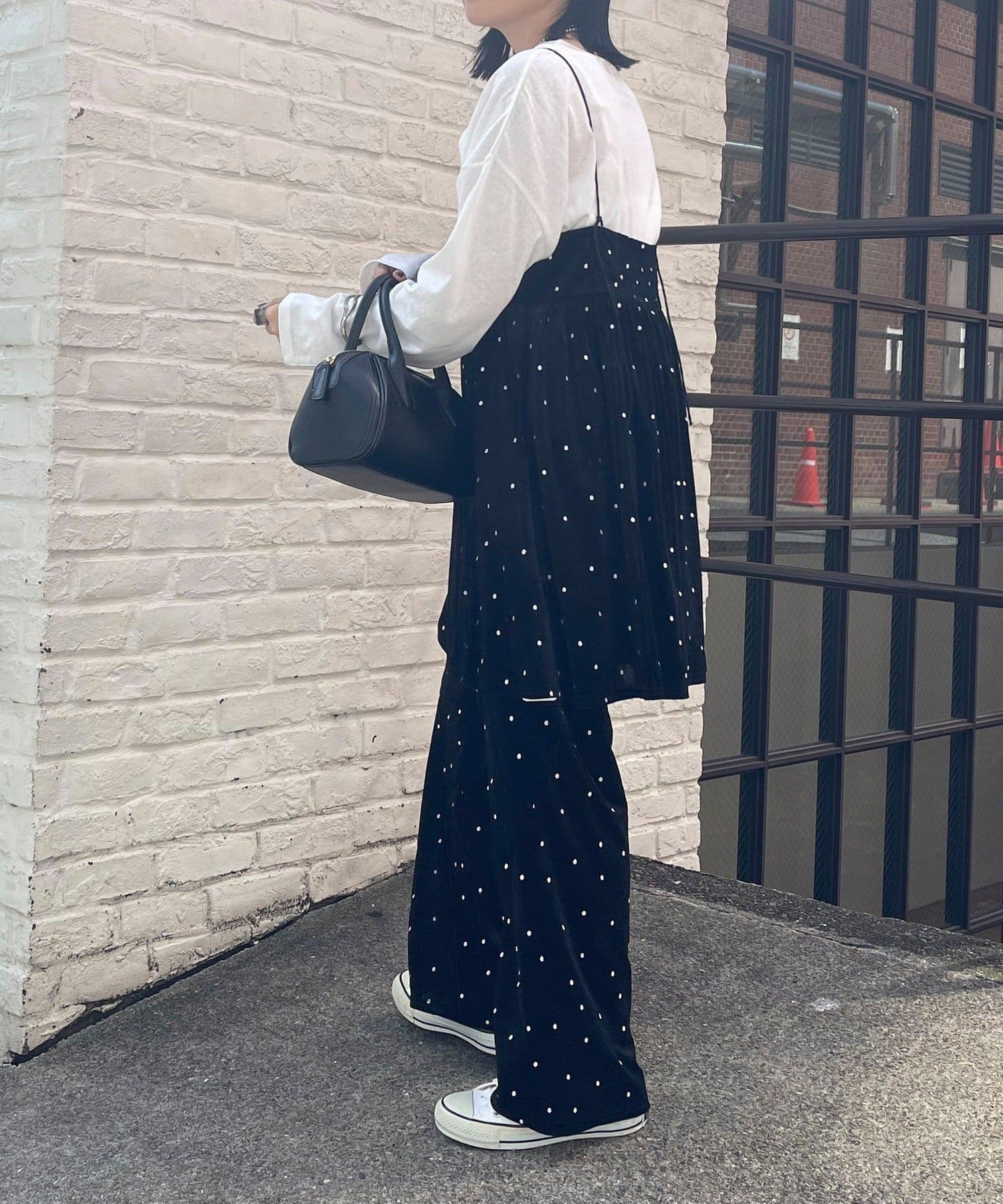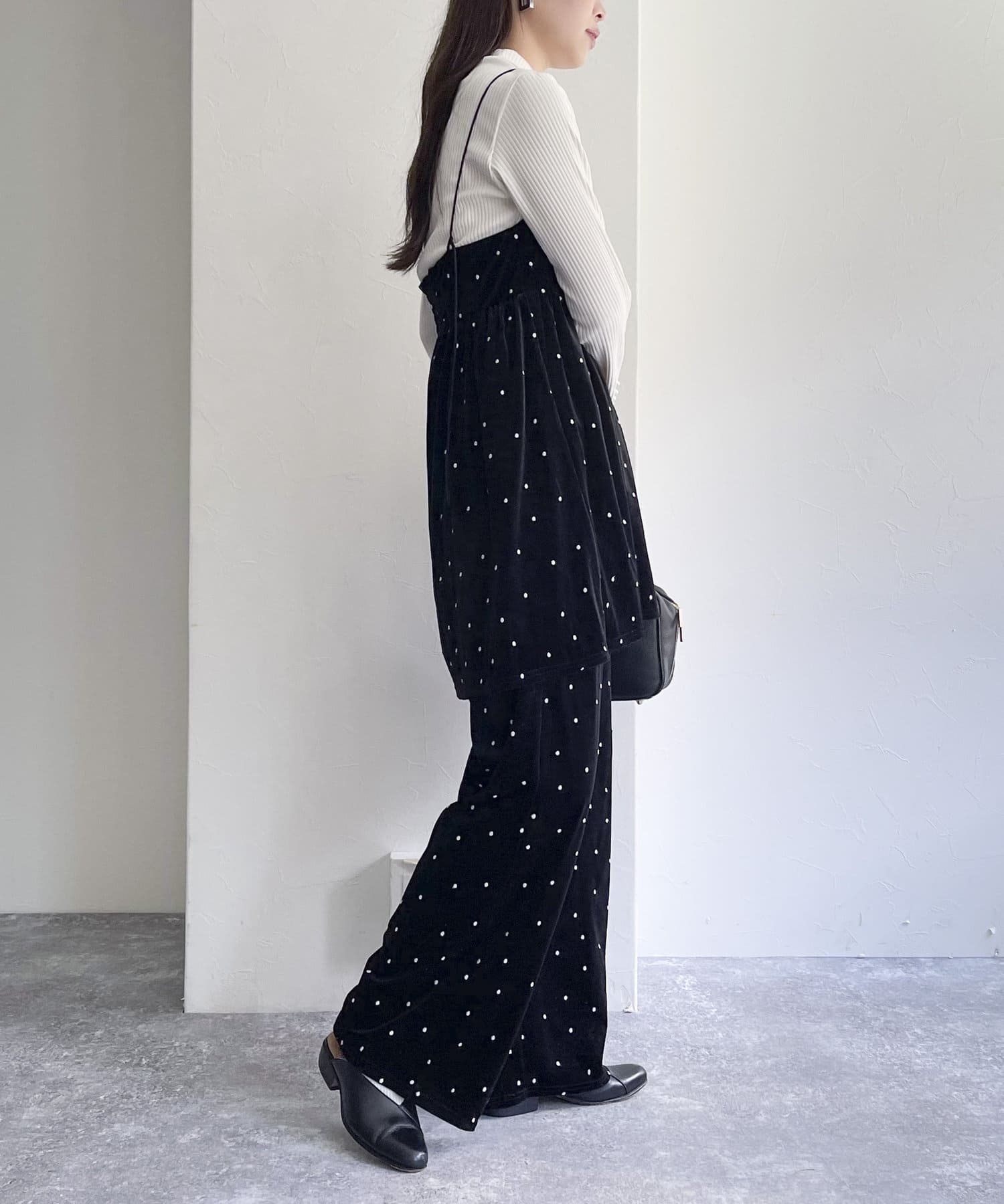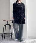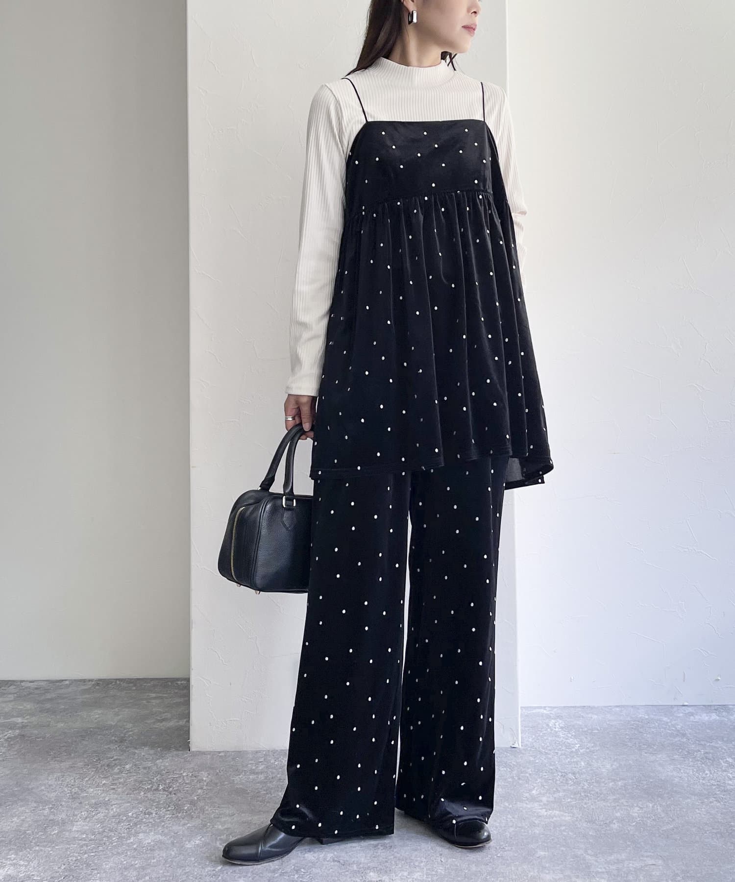 (【4-0310-6-29-002】ベロアドット刺繍イージーパンツ)