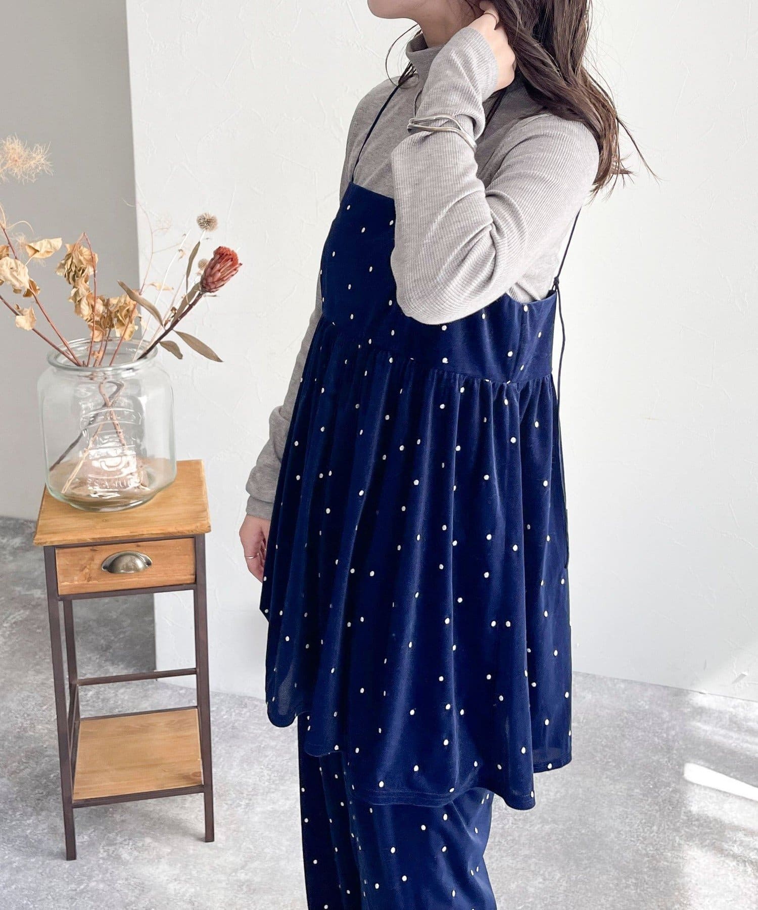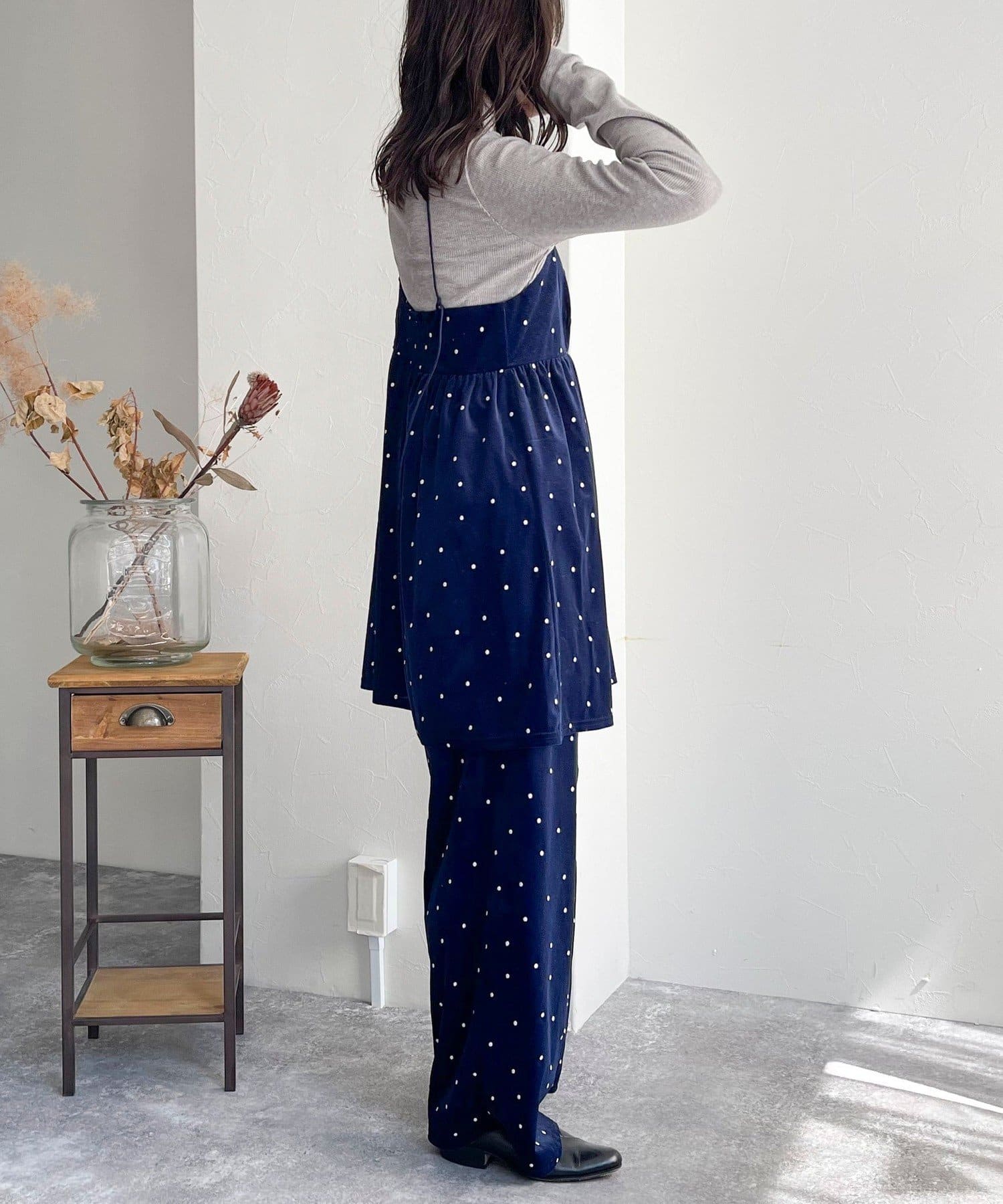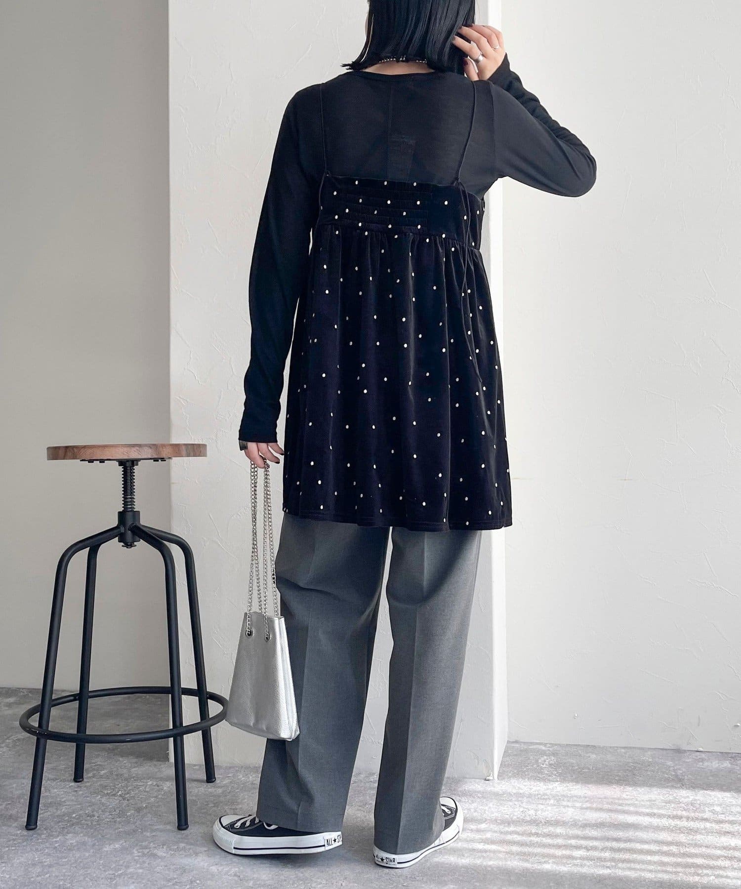 (【4-0310-6-29-002】ベロアドット刺繍イージーパンツ)