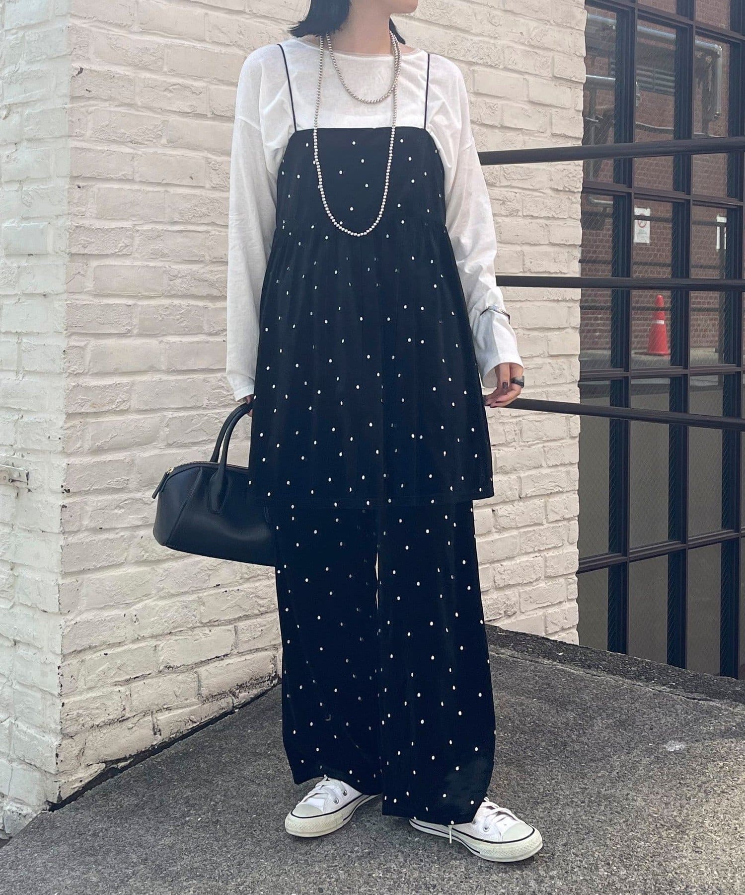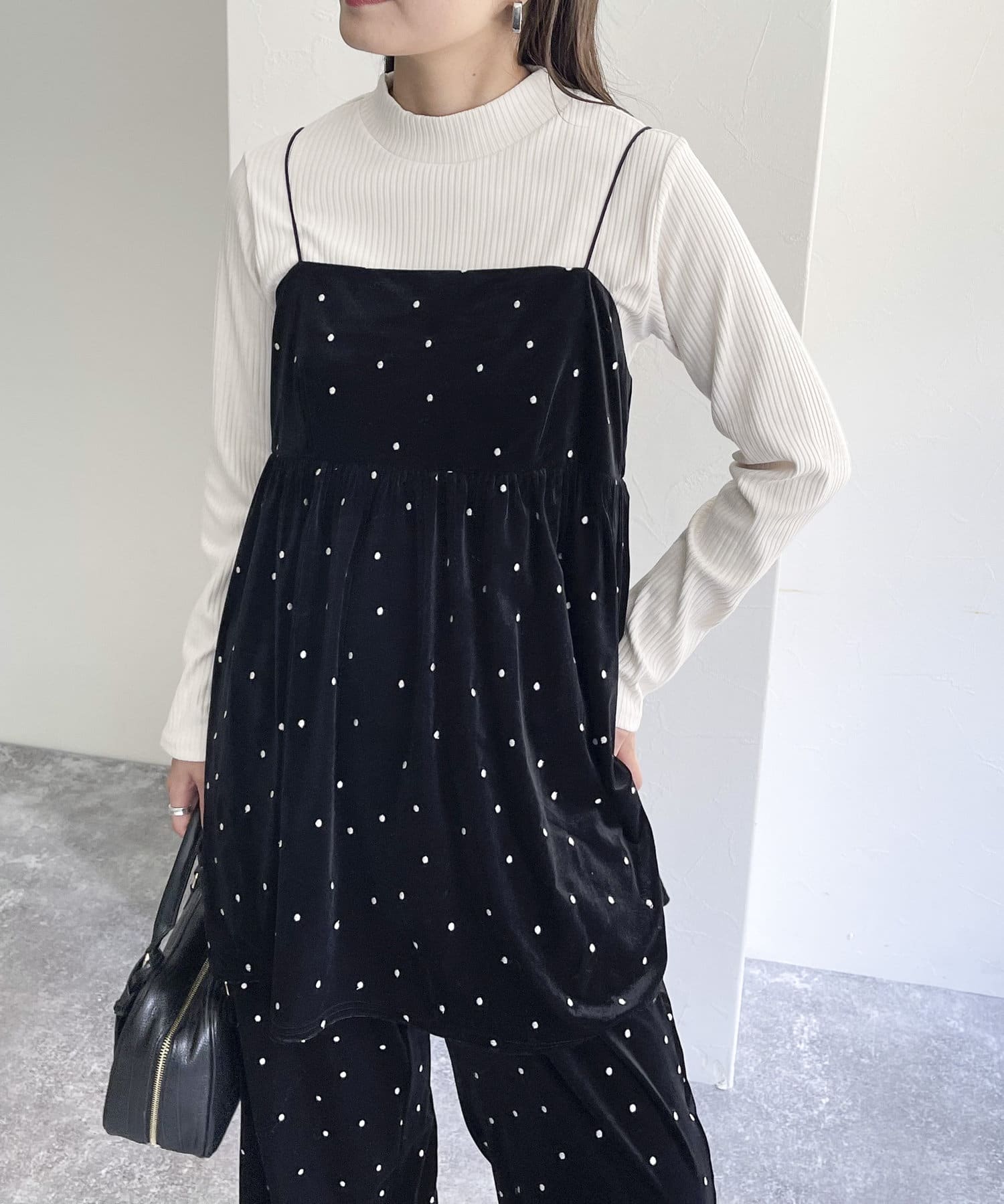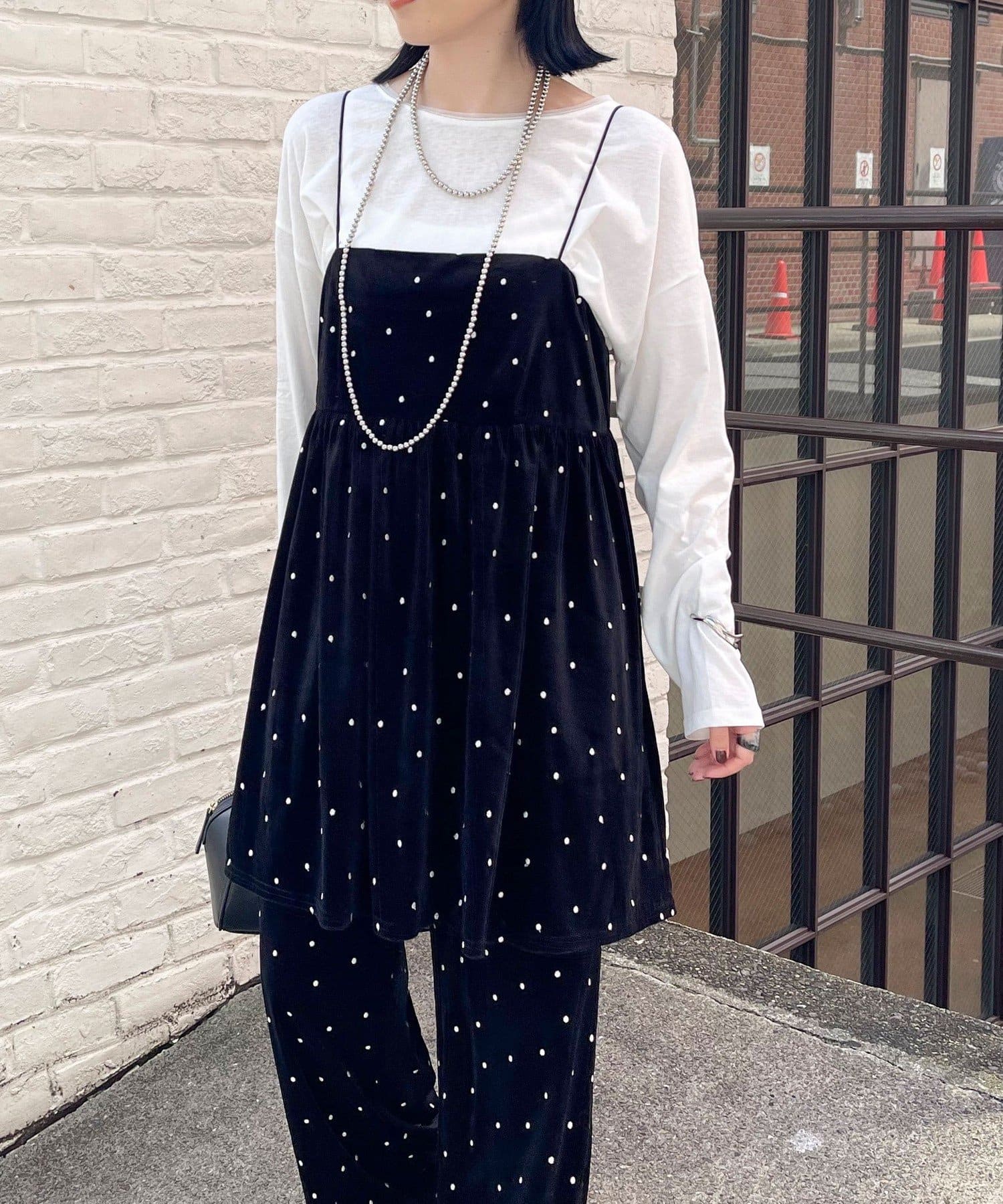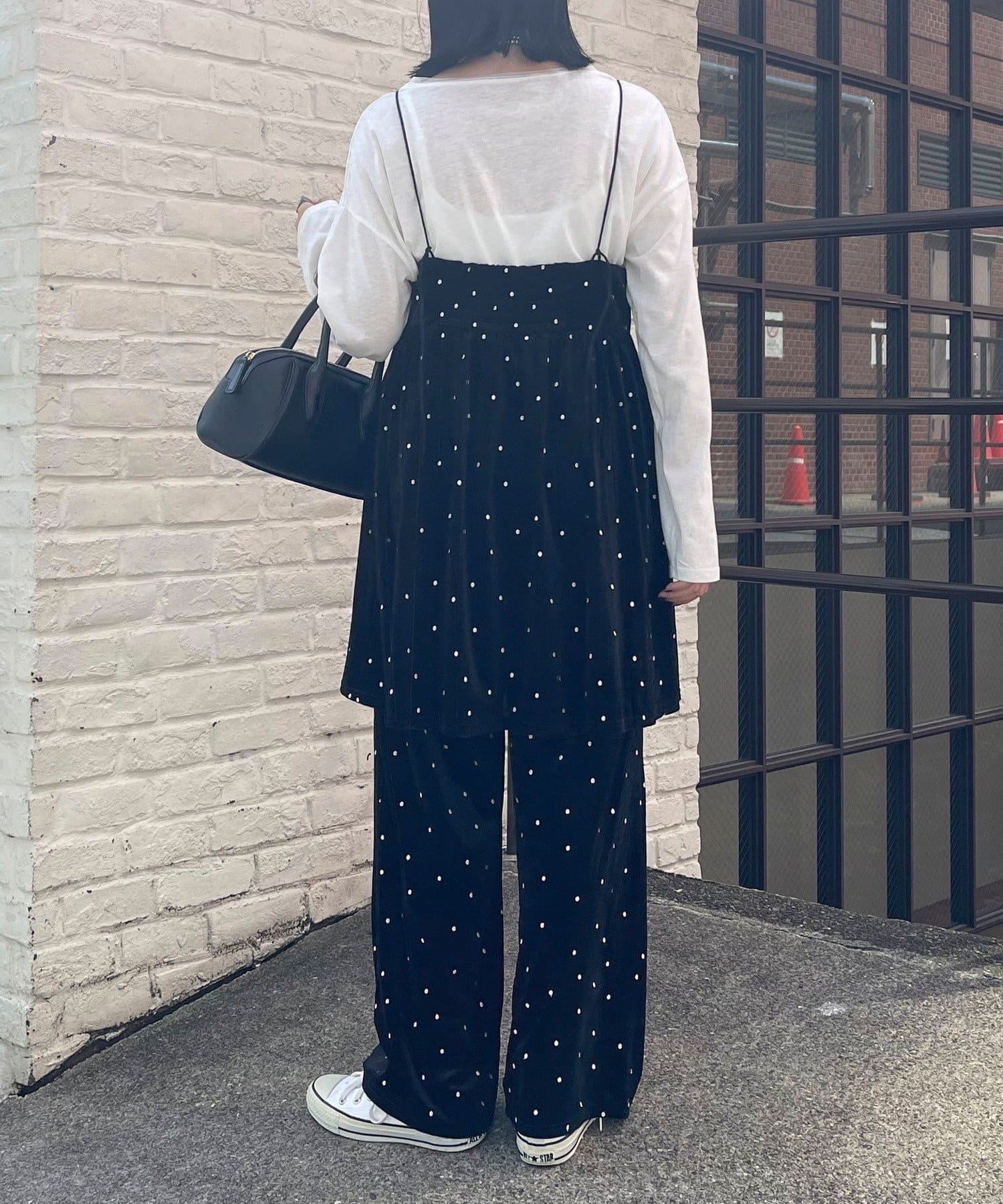 春夏に人気だったドット刺繍セットアップがベロア素材で登場!