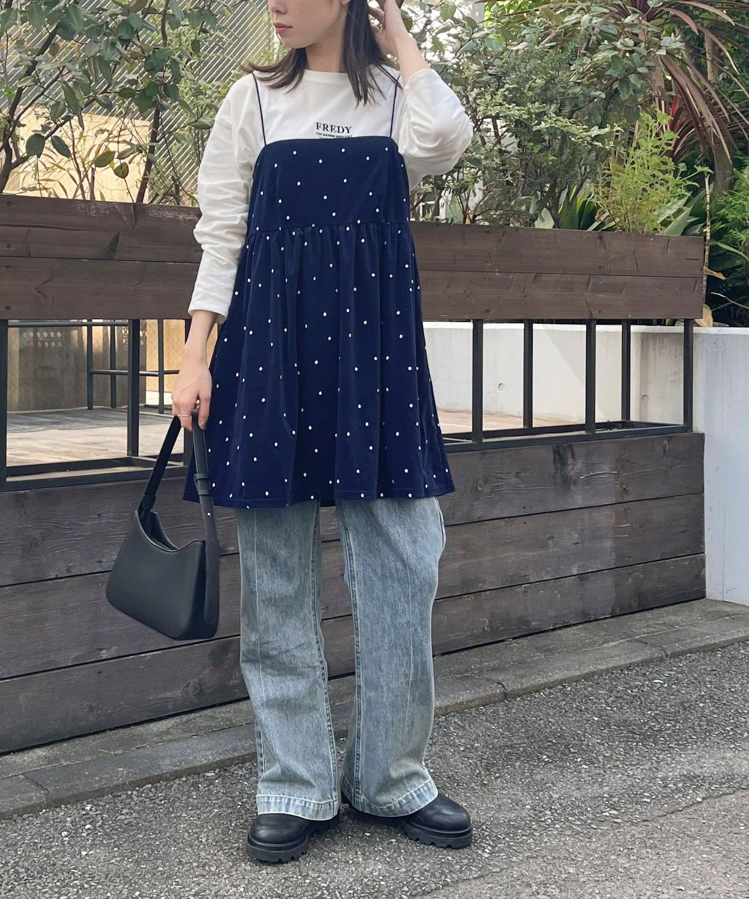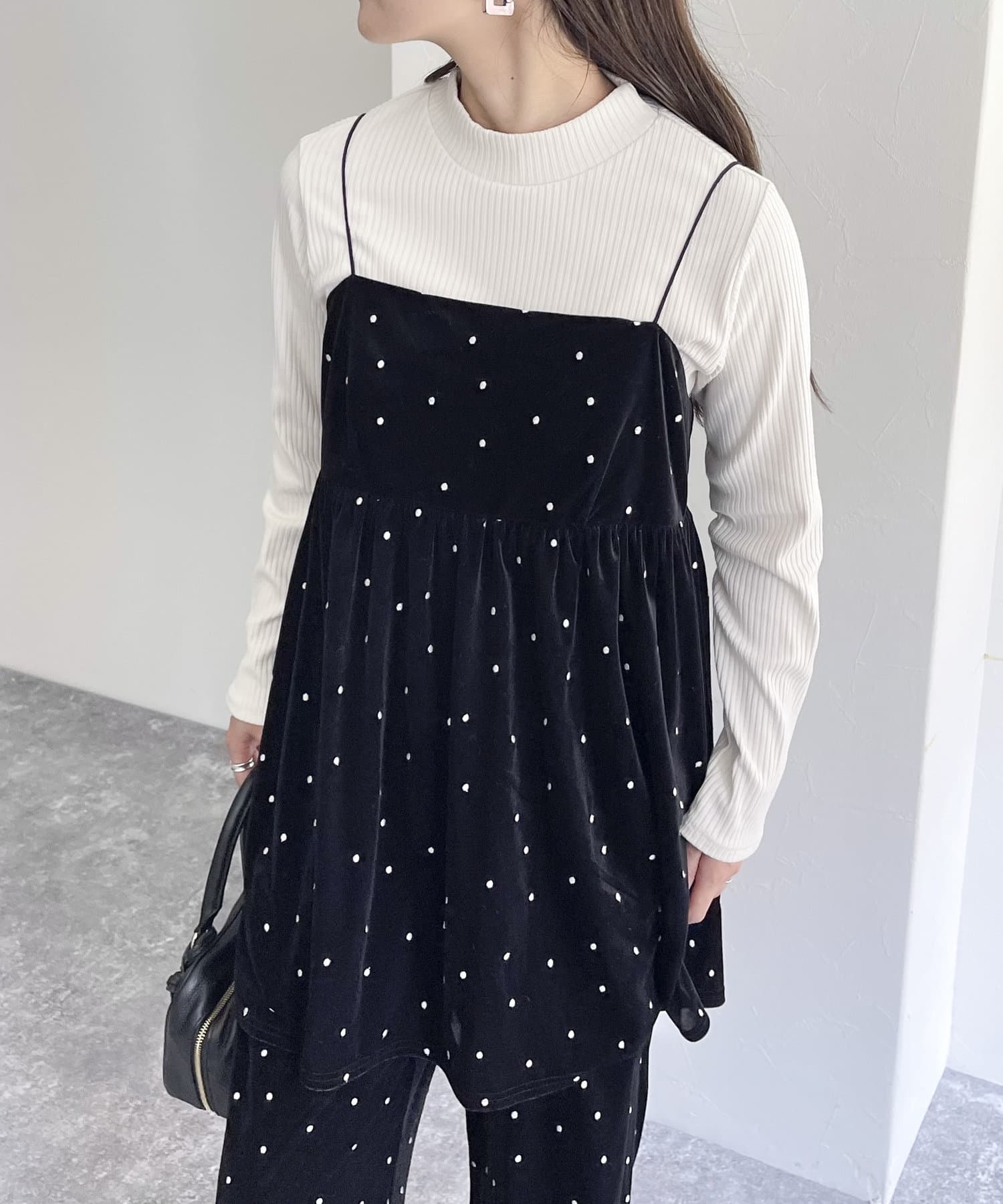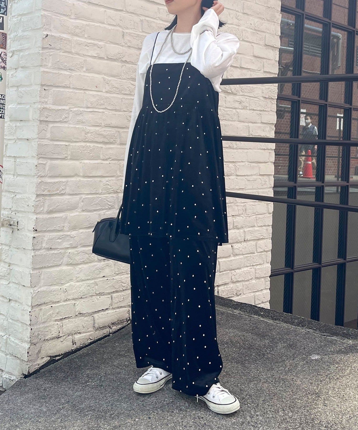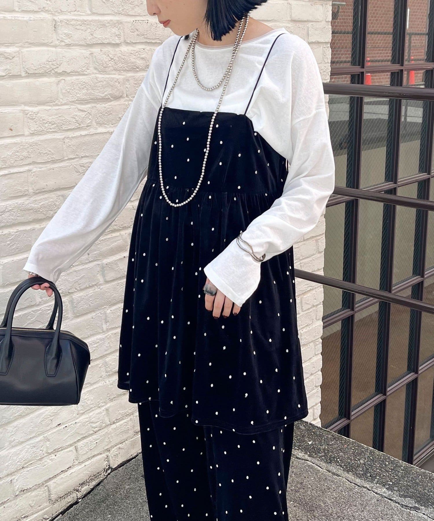 春夏に人気だったドット刺繍セットアップがベロア素材で登場!