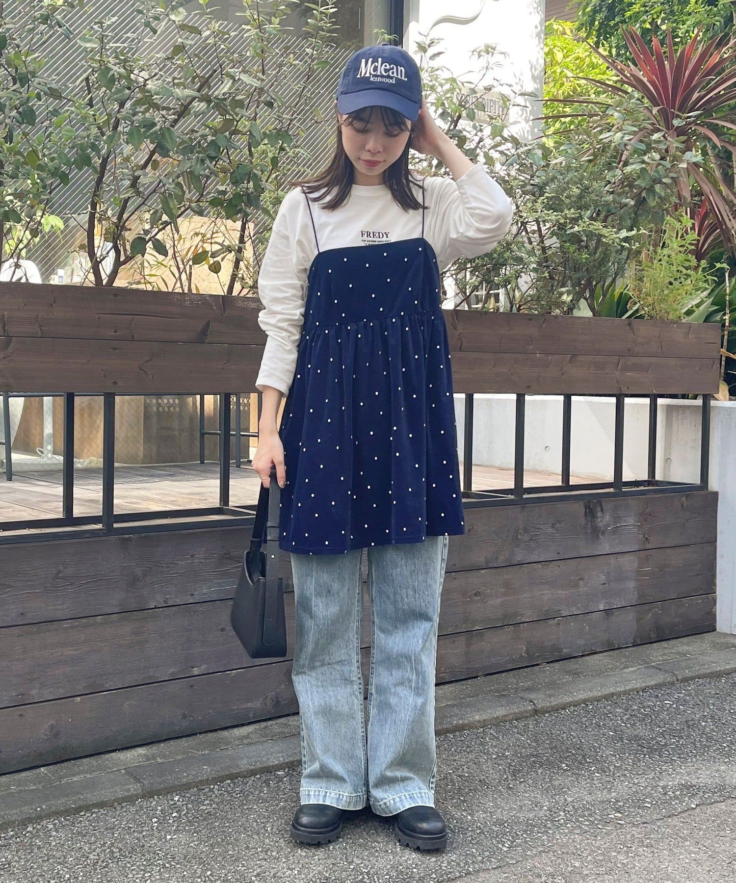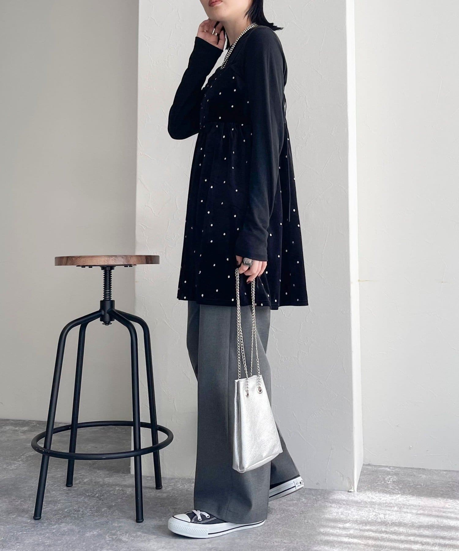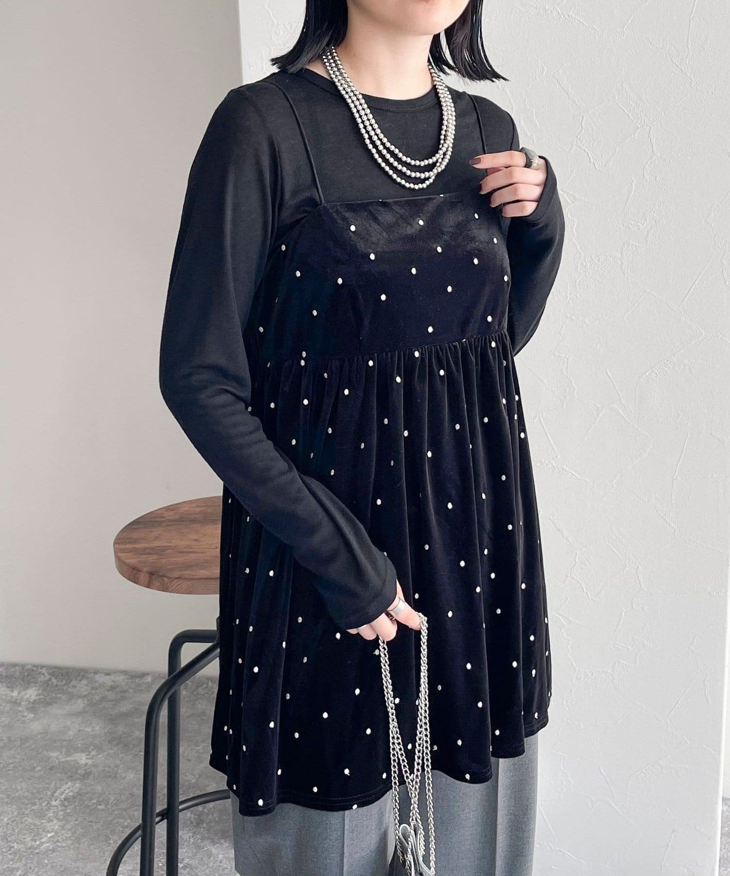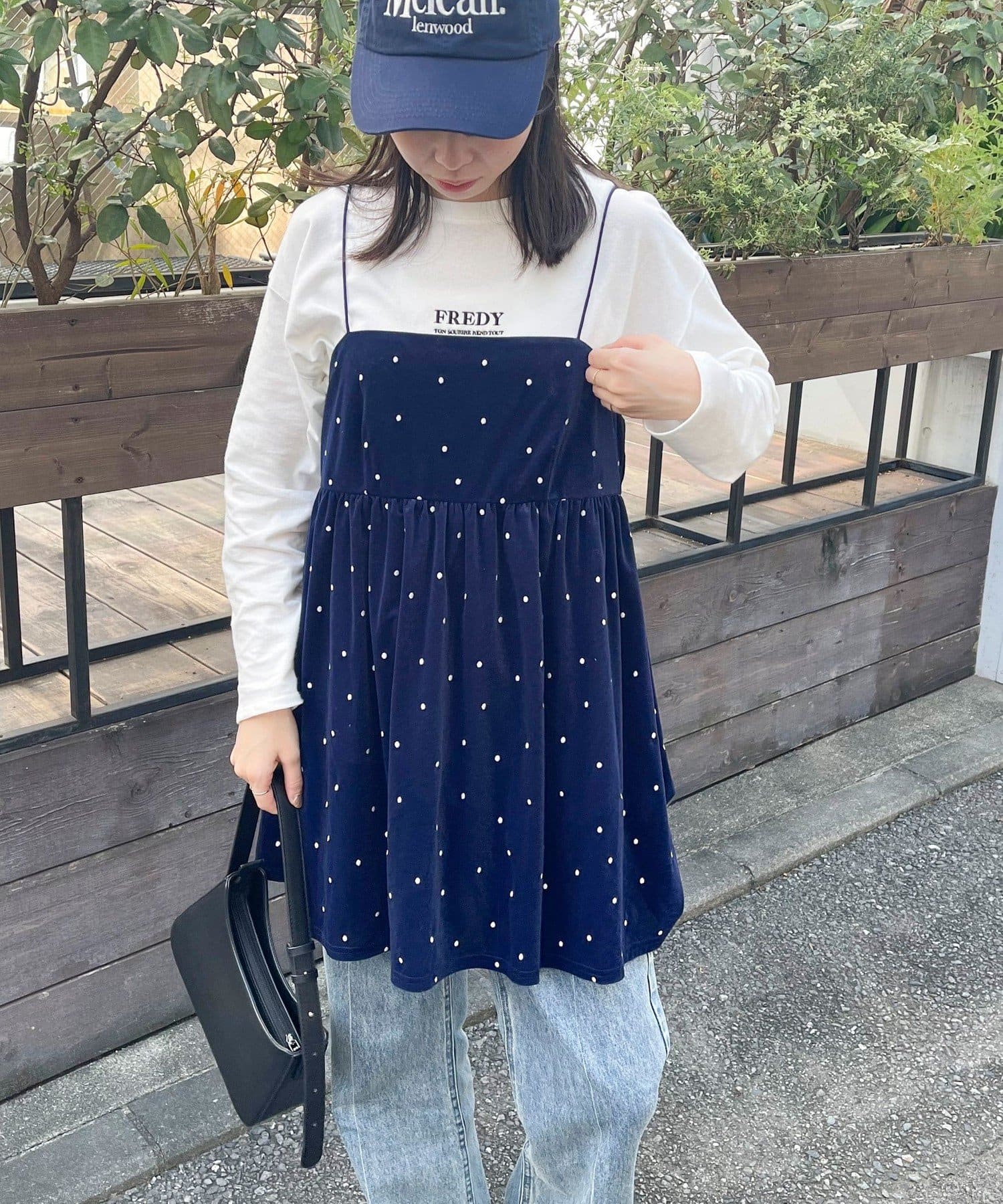 春夏に人気だったドット刺繍セットアップがベロア素材で登場!