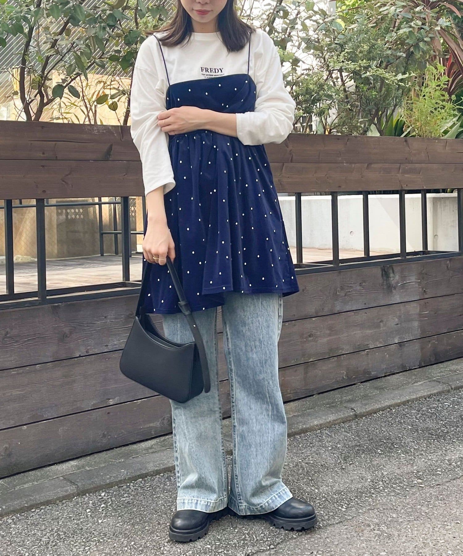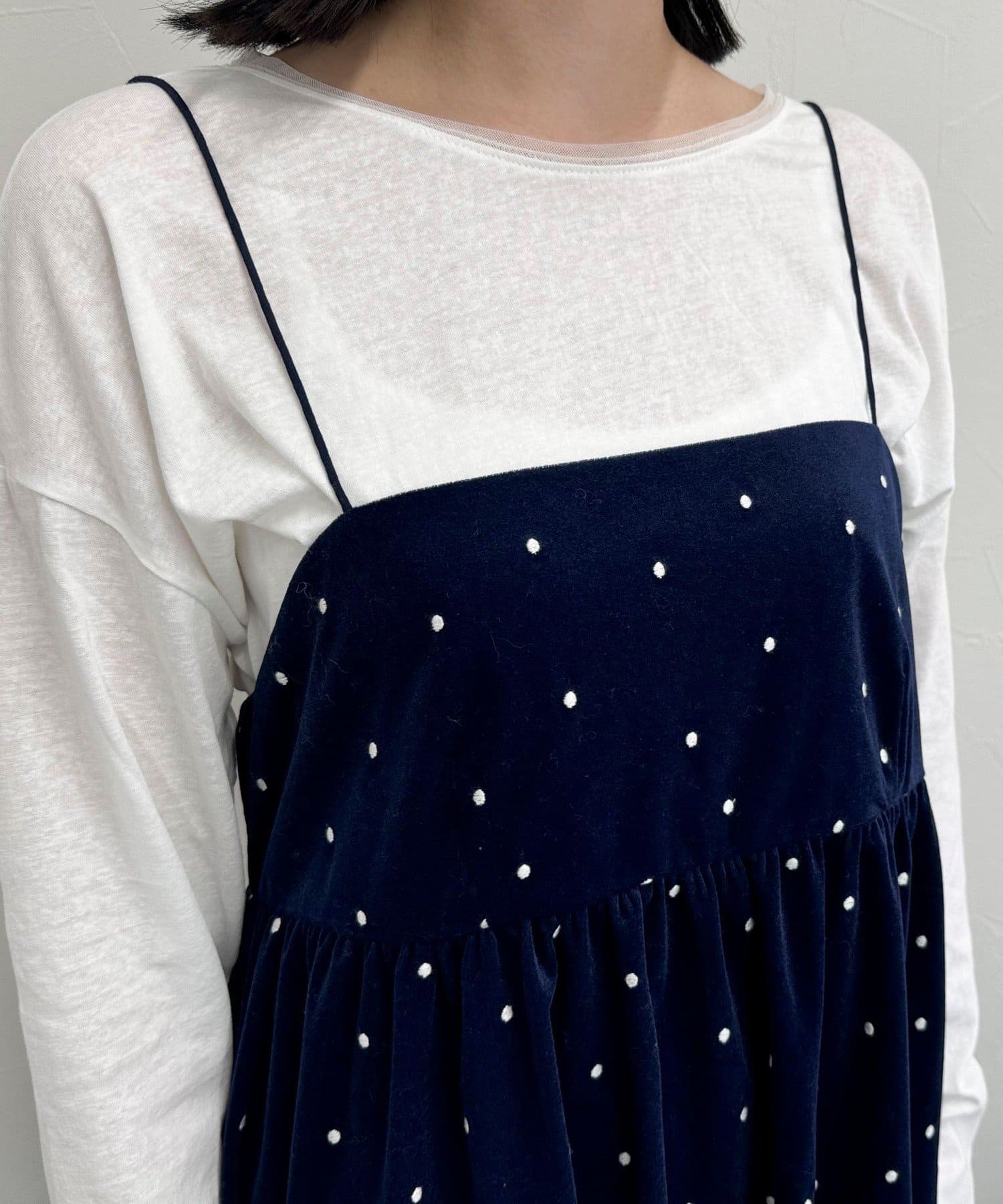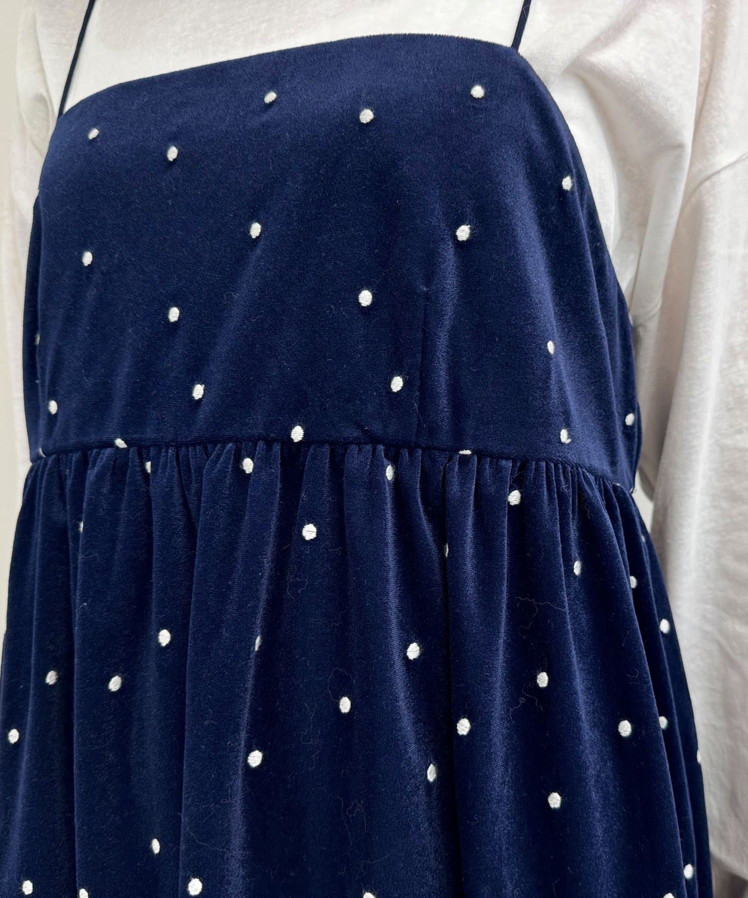 ・ドット刺しゅうをランダムに散りばめた大人可愛い1枚