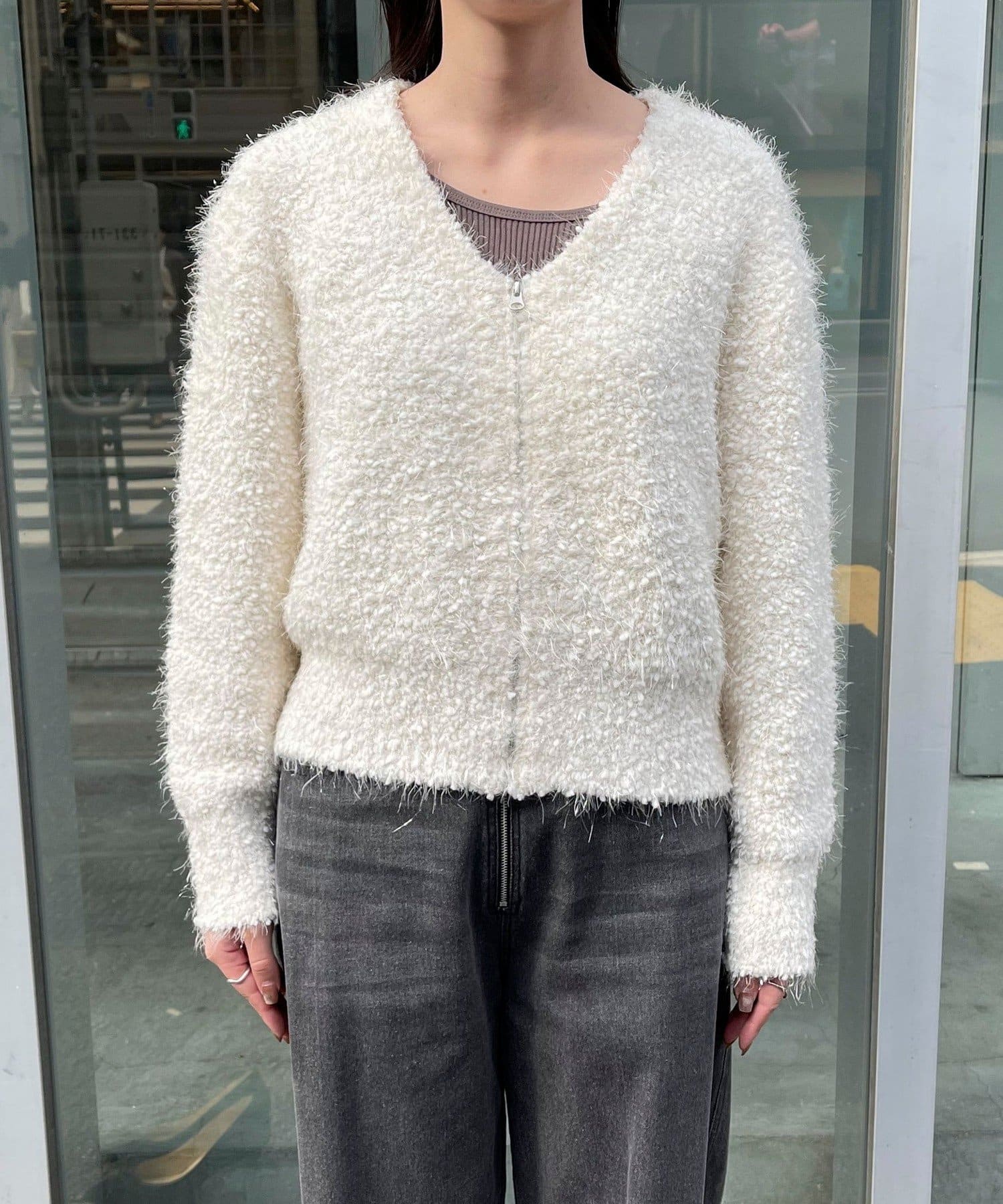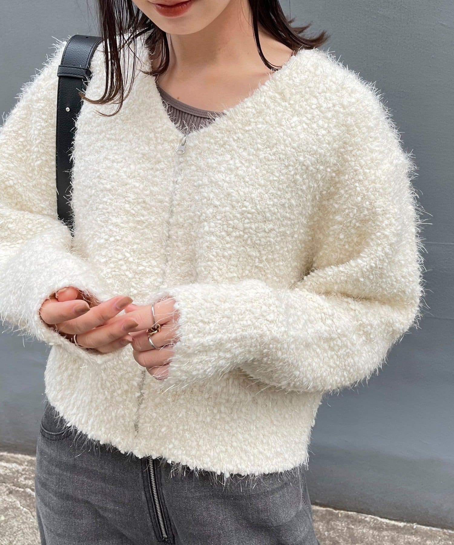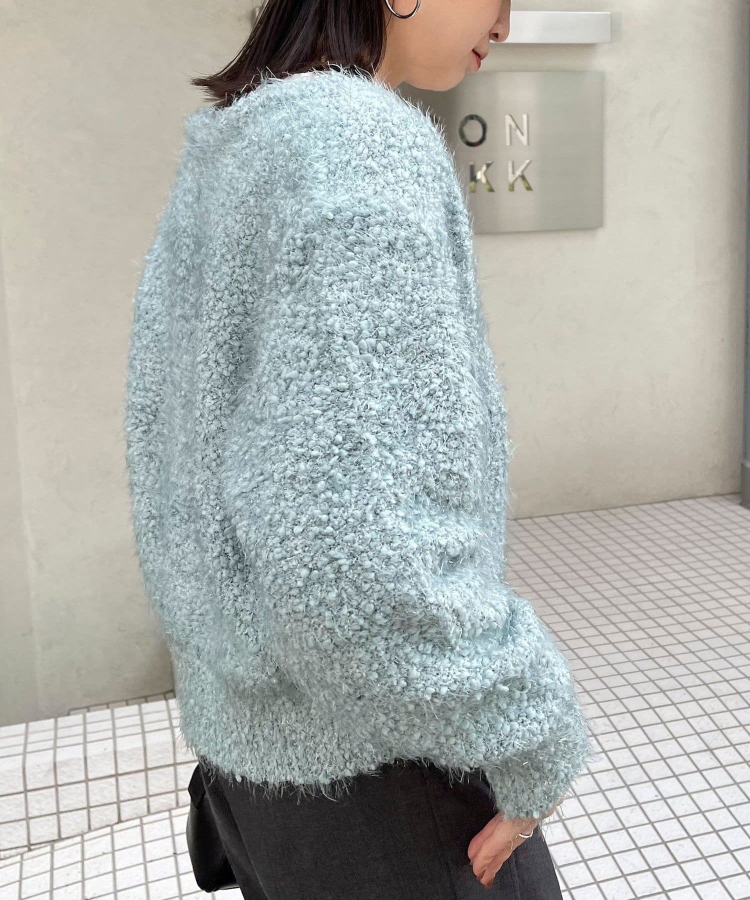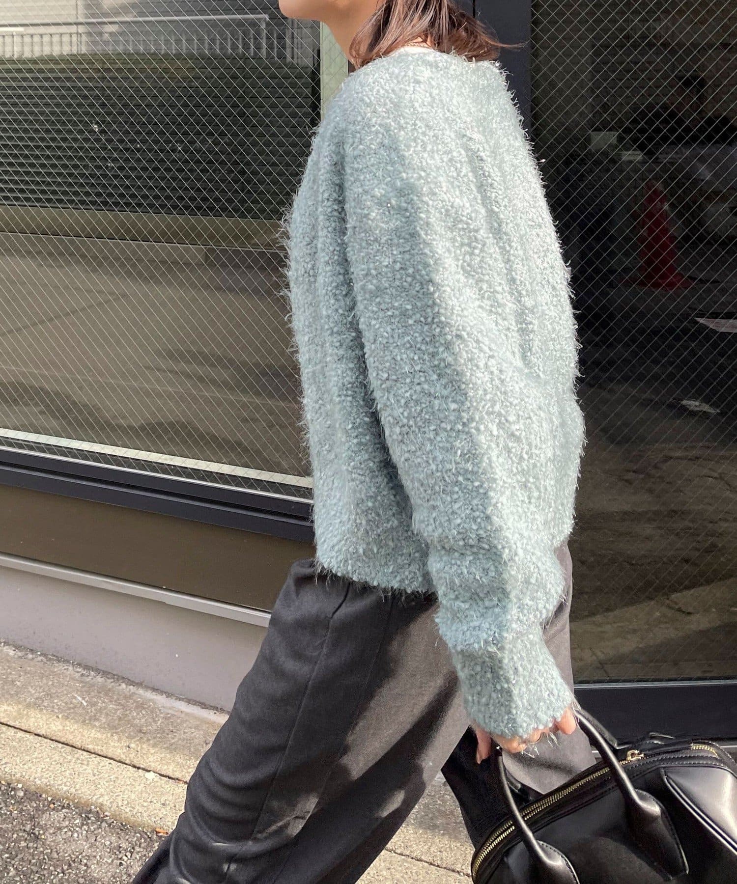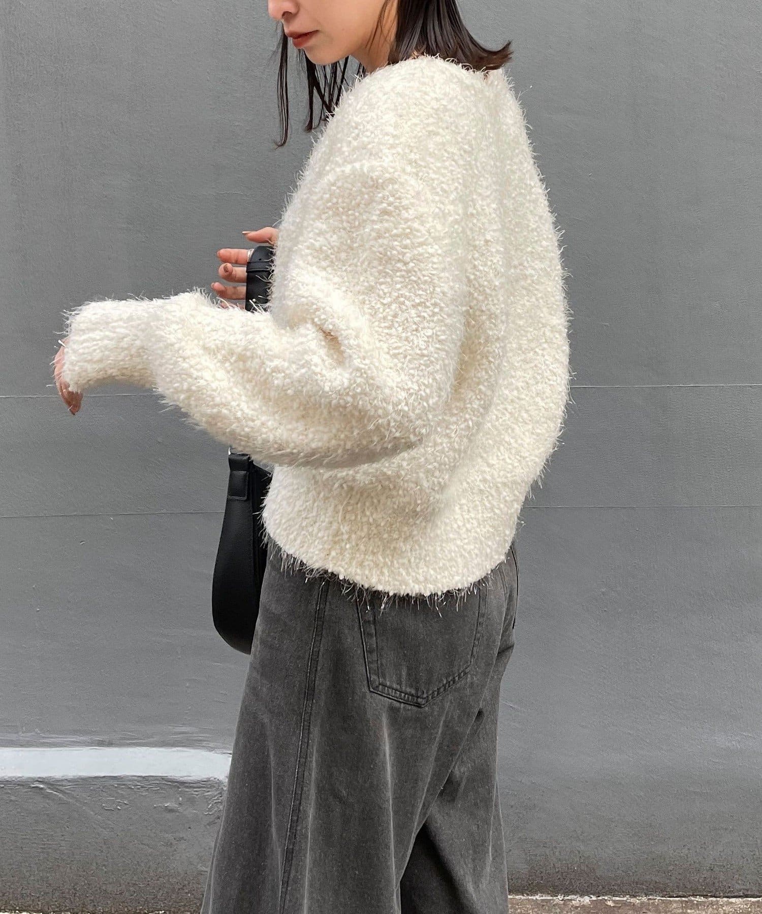 ・ふわっとキラキラ感のあるシャギーの糸をミックスしたトレンド感あるカーディガン