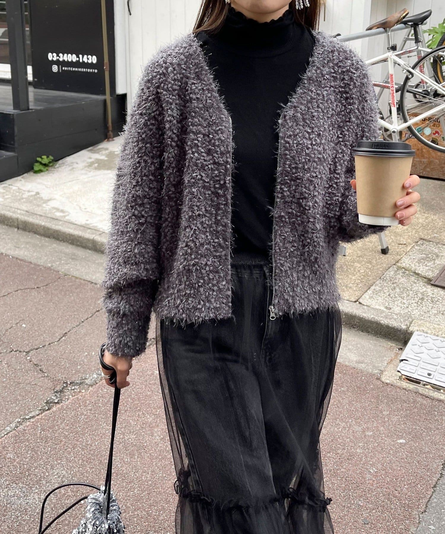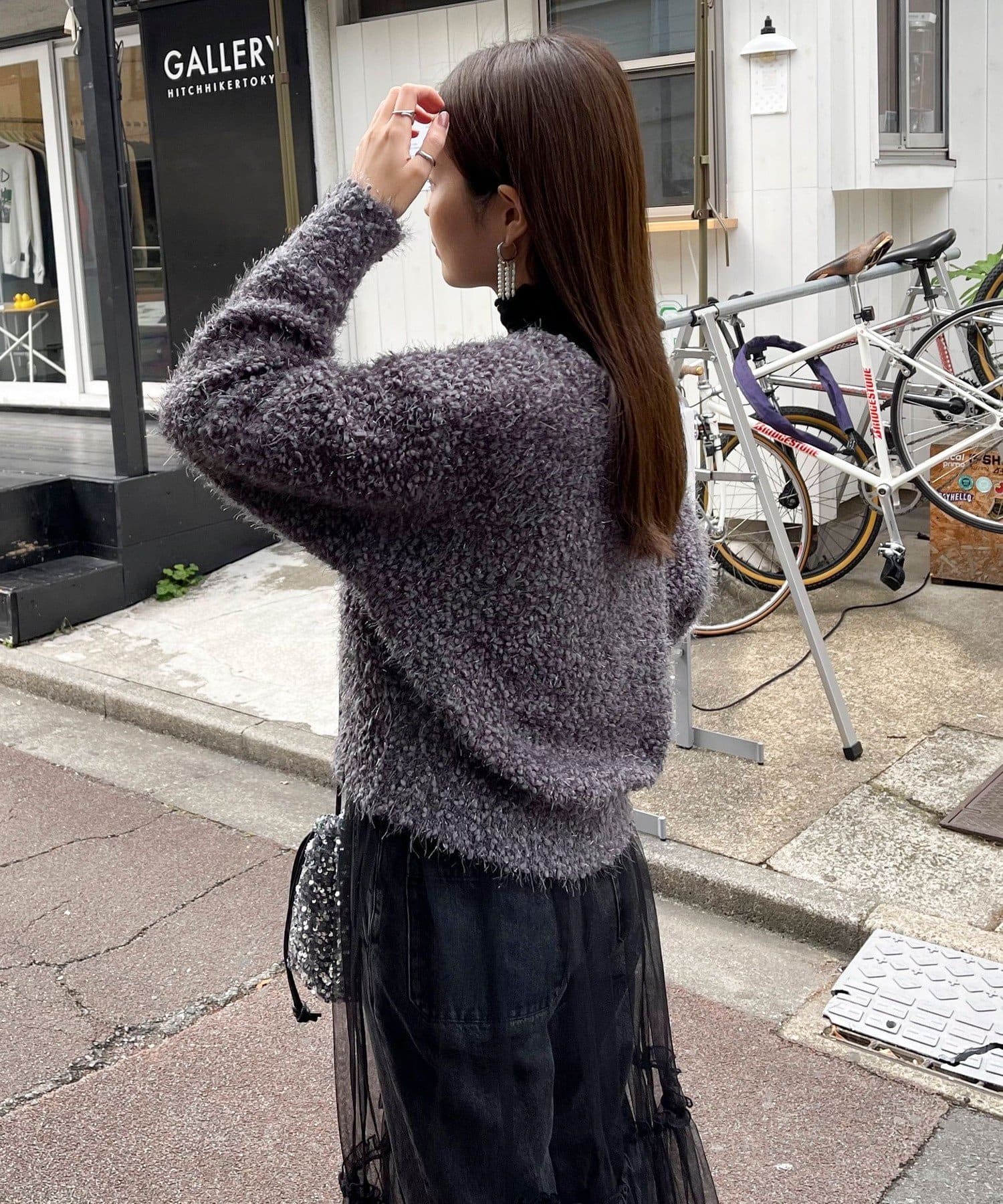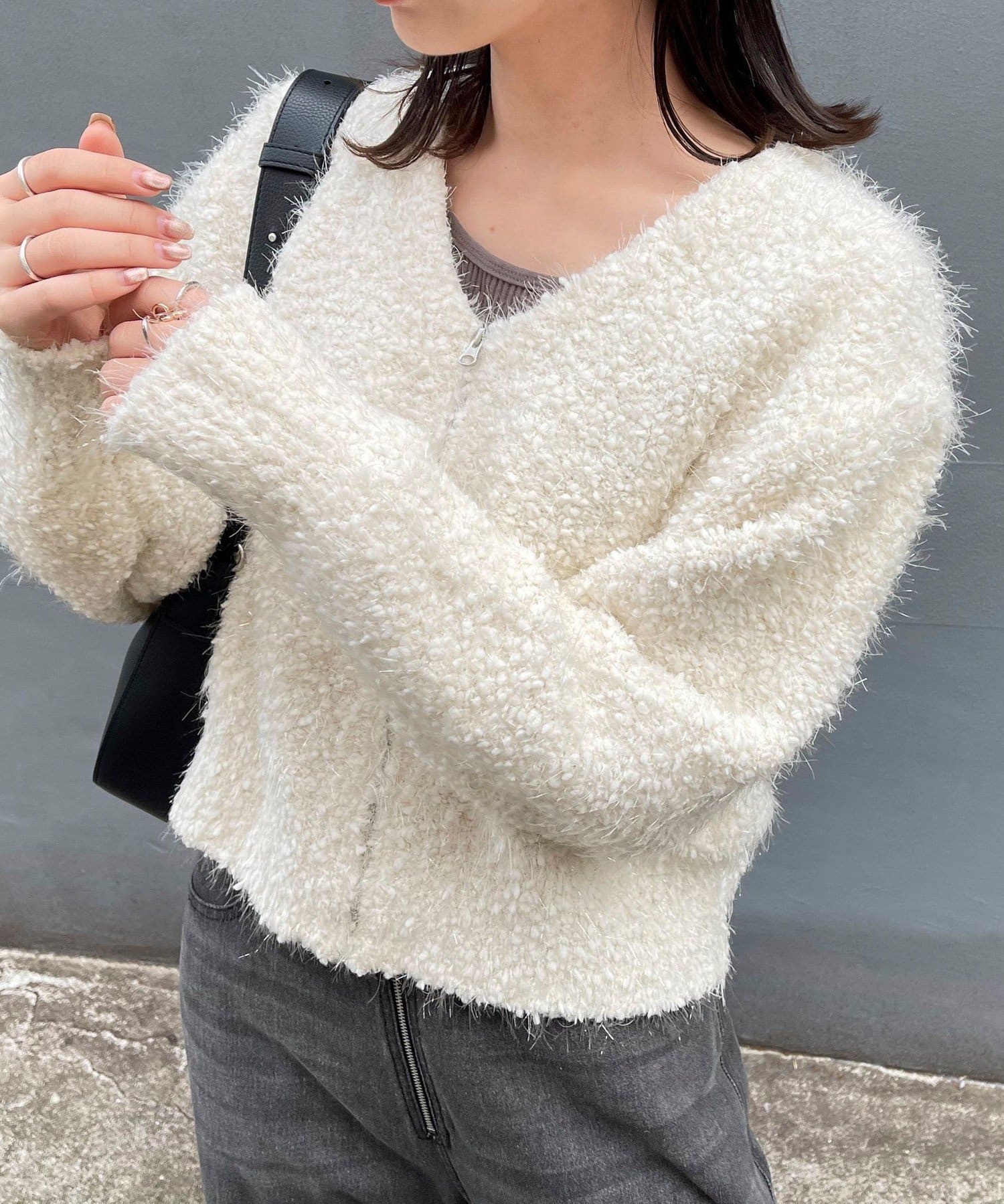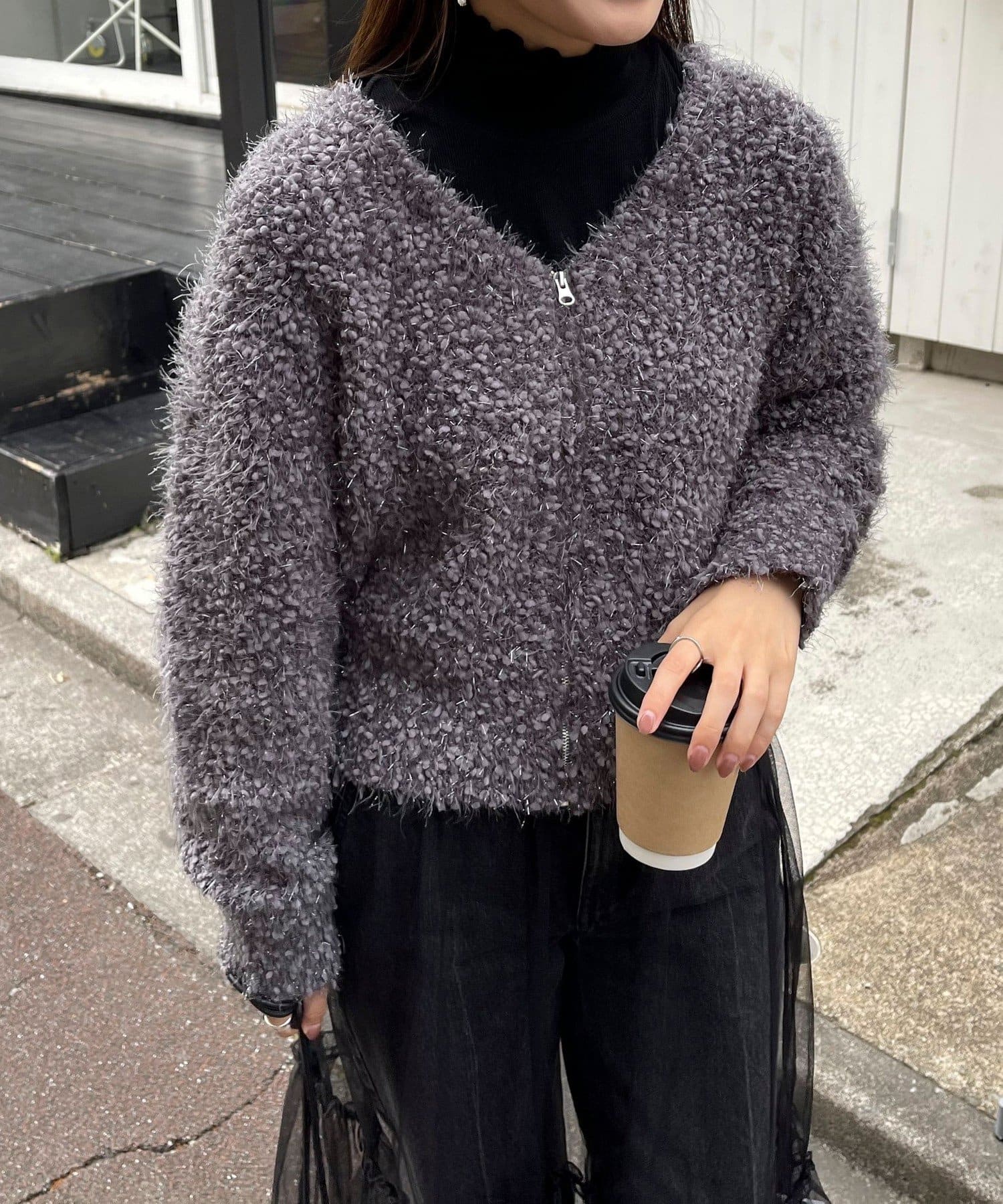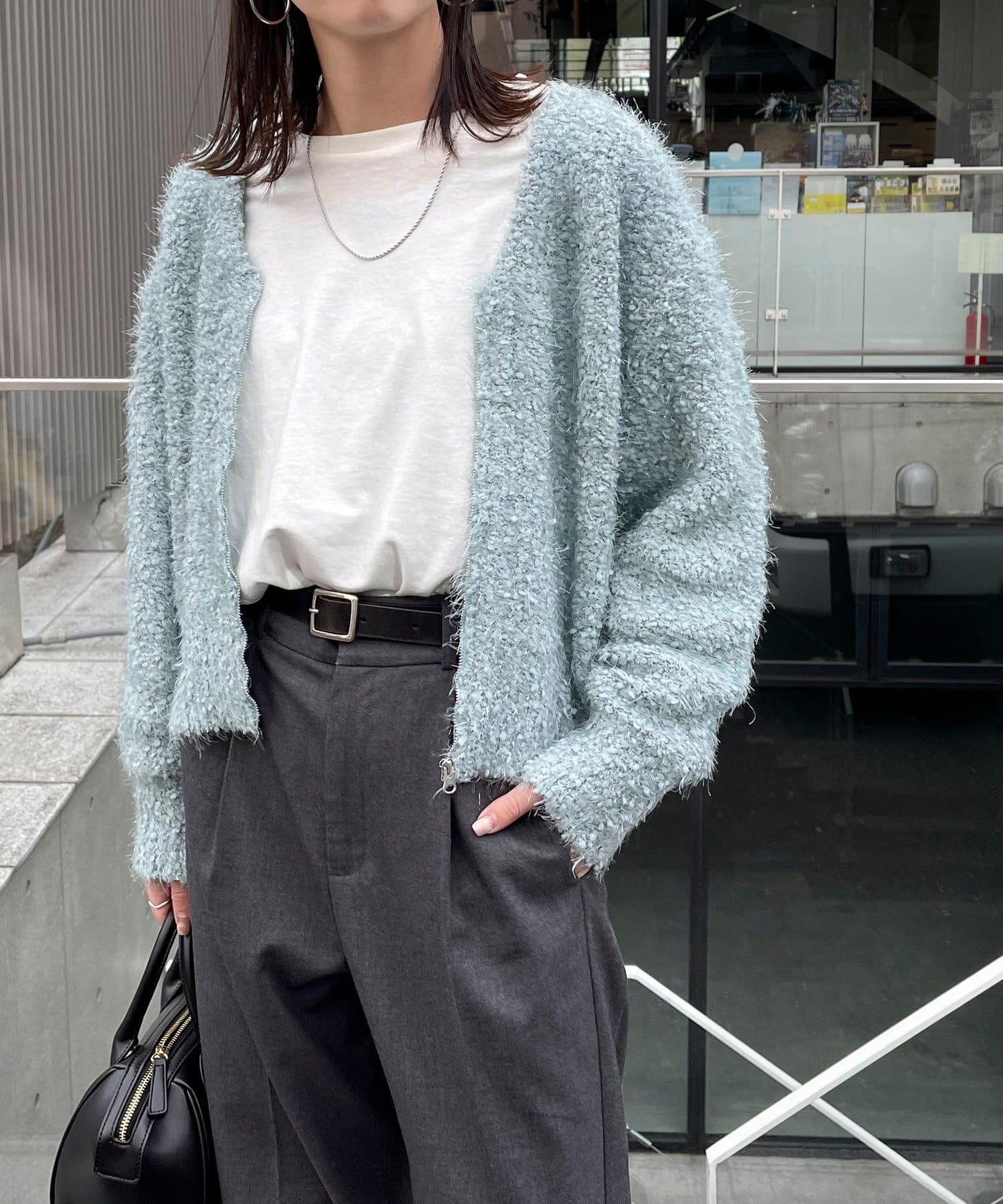 ・ふわっとキラキラ感のあるシャギーの糸をミックスしたトレンド感あるカーディガン