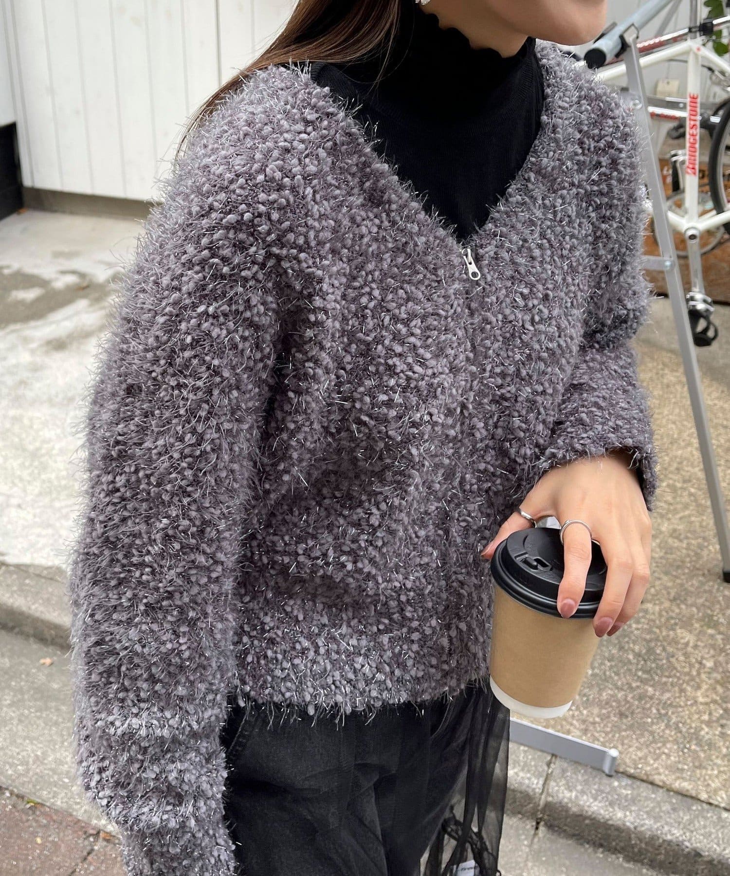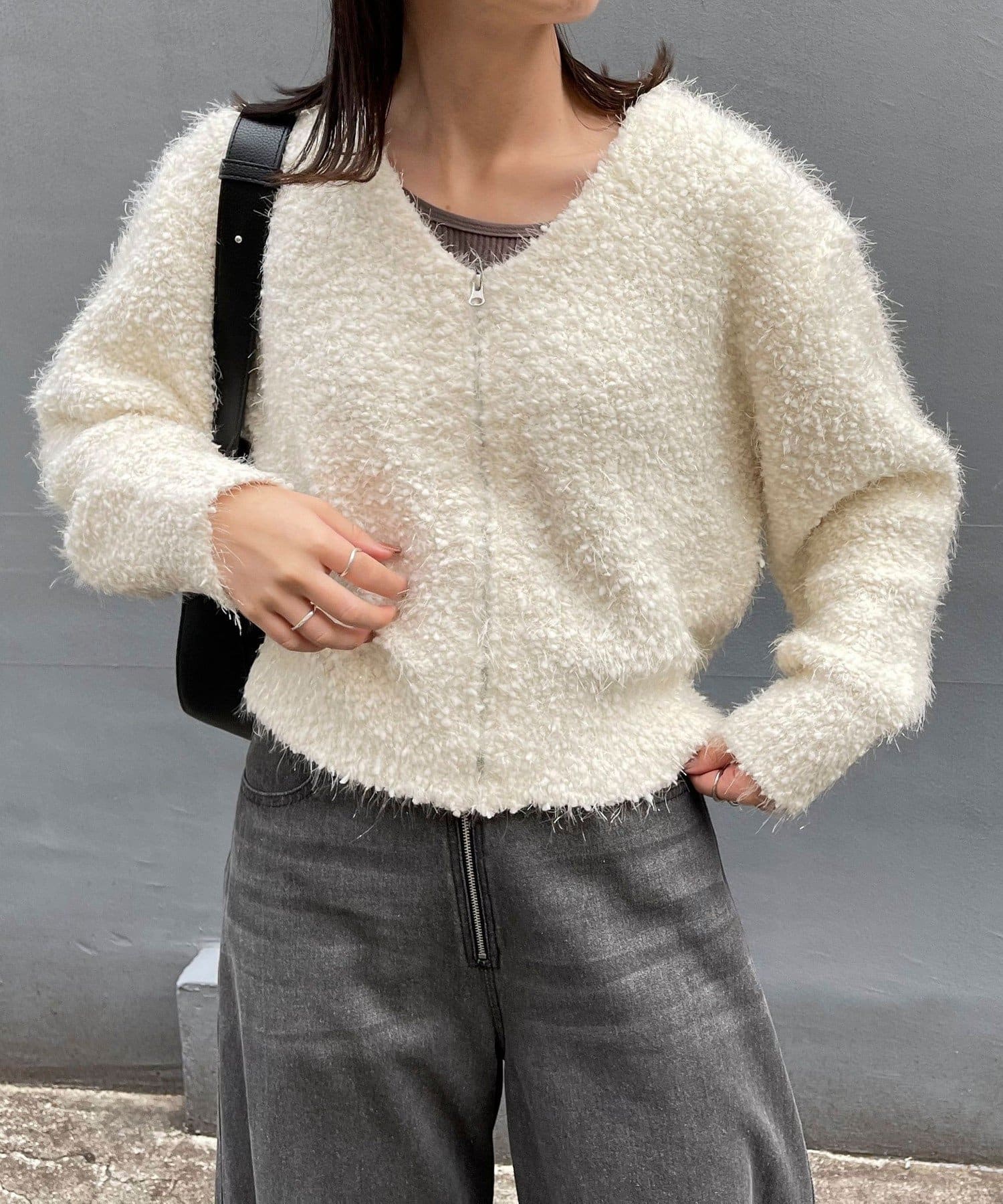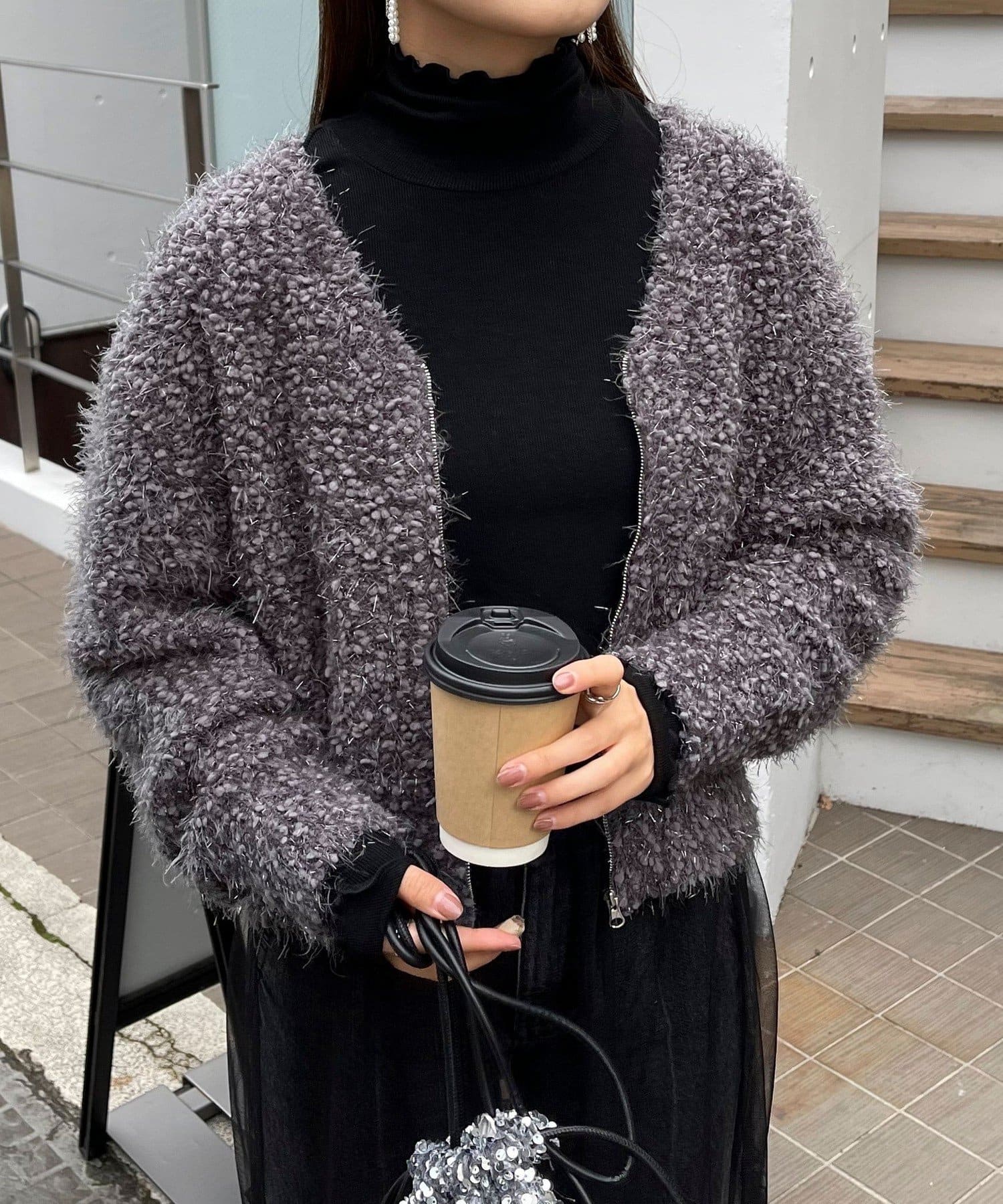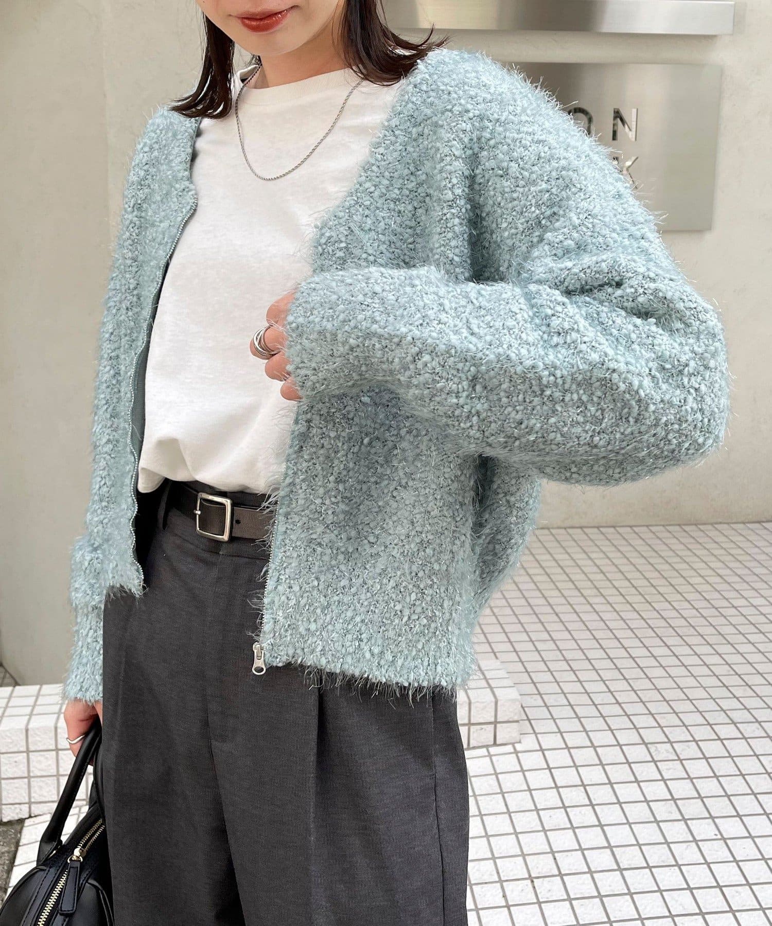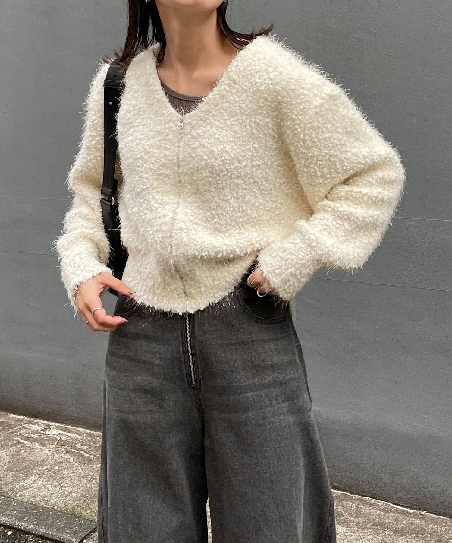 ・ふわっとキラキラ感のあるシャギーの糸をミックスしたトレンド感あるカーディガン