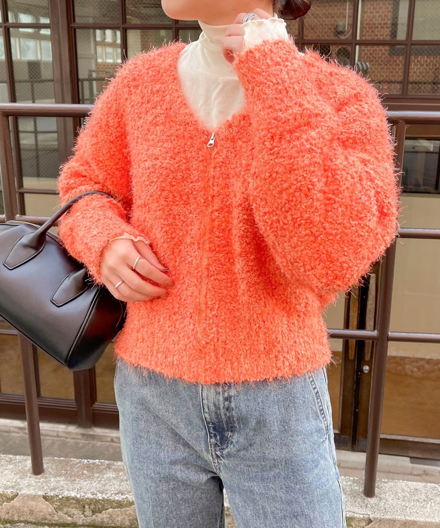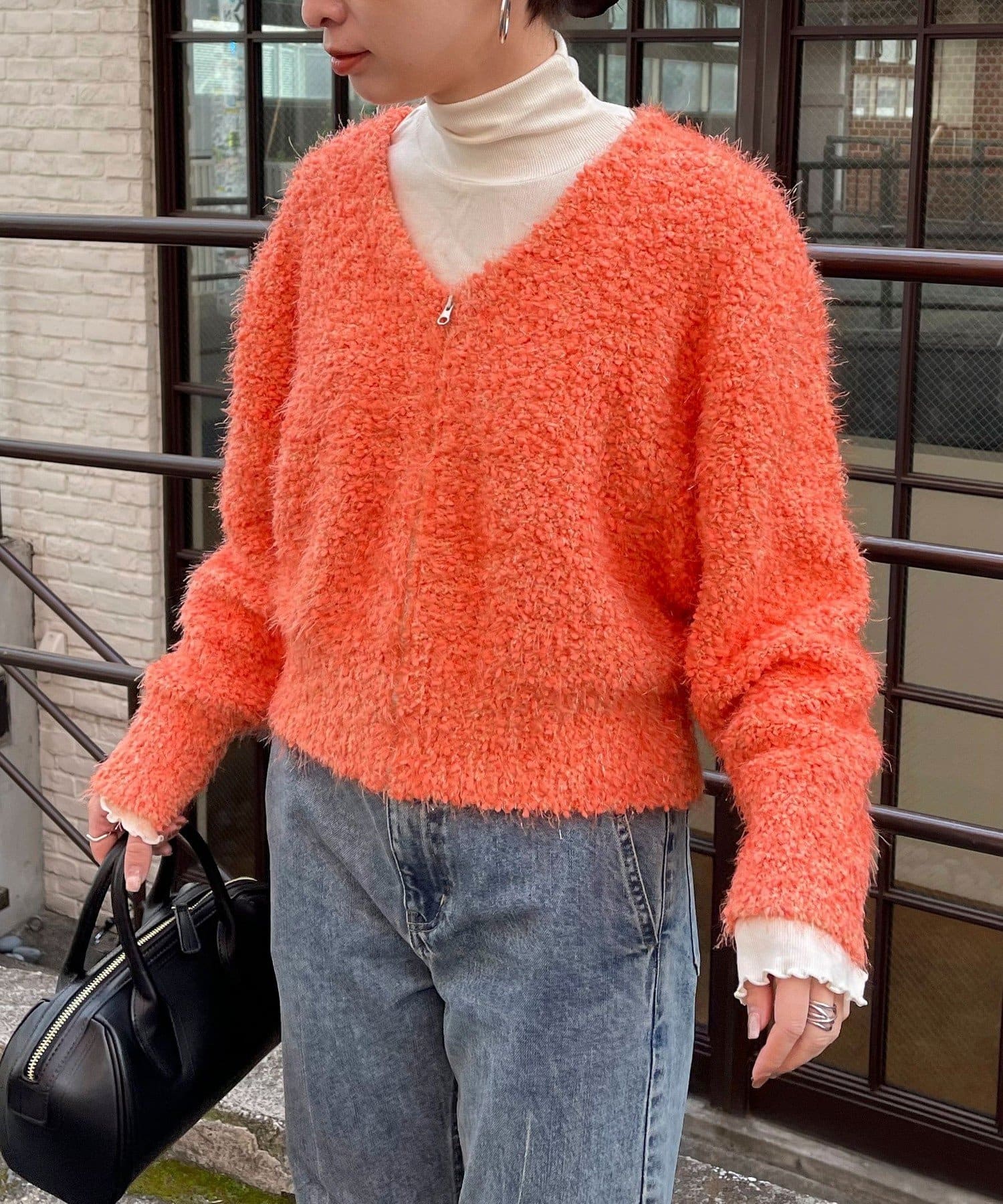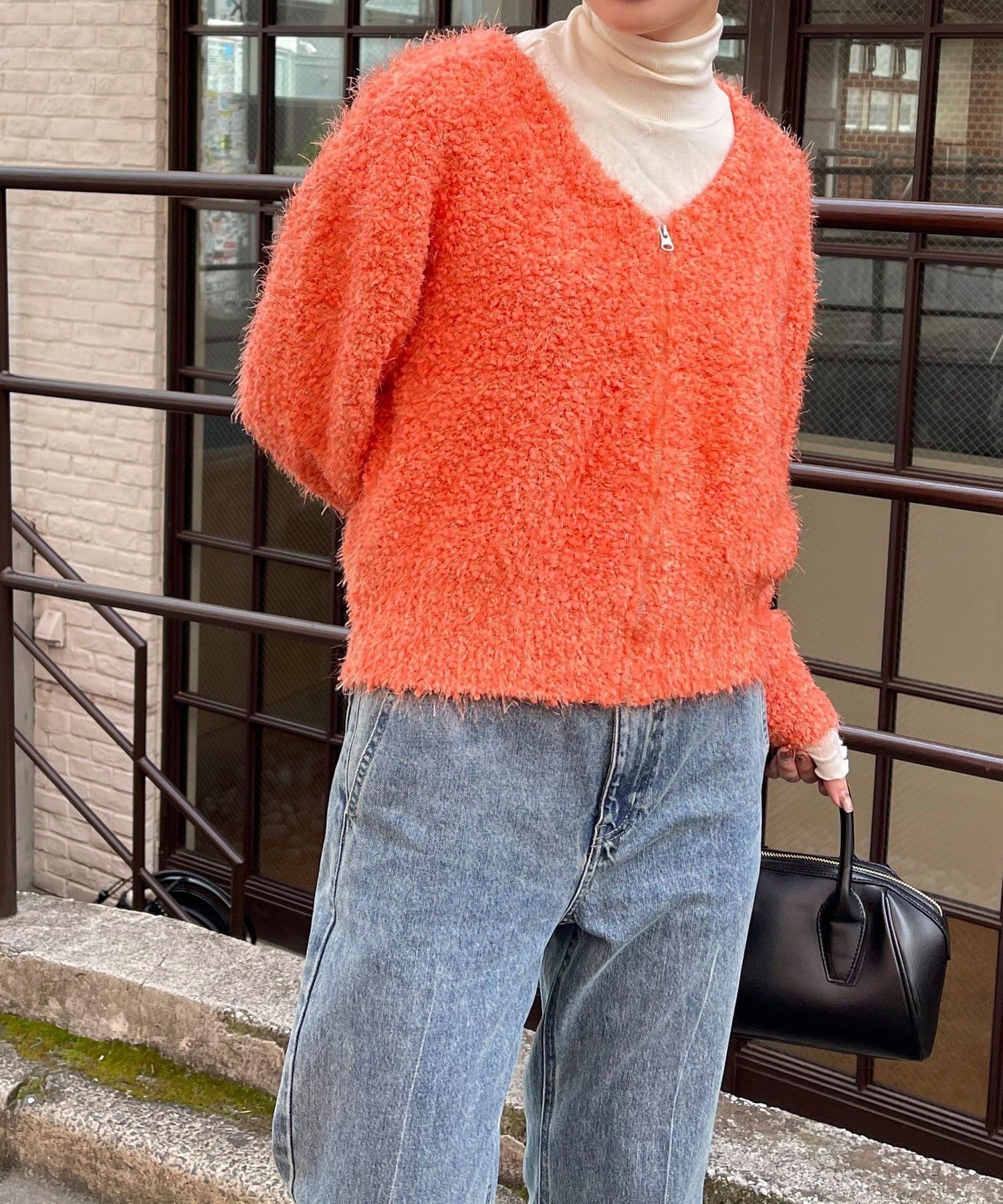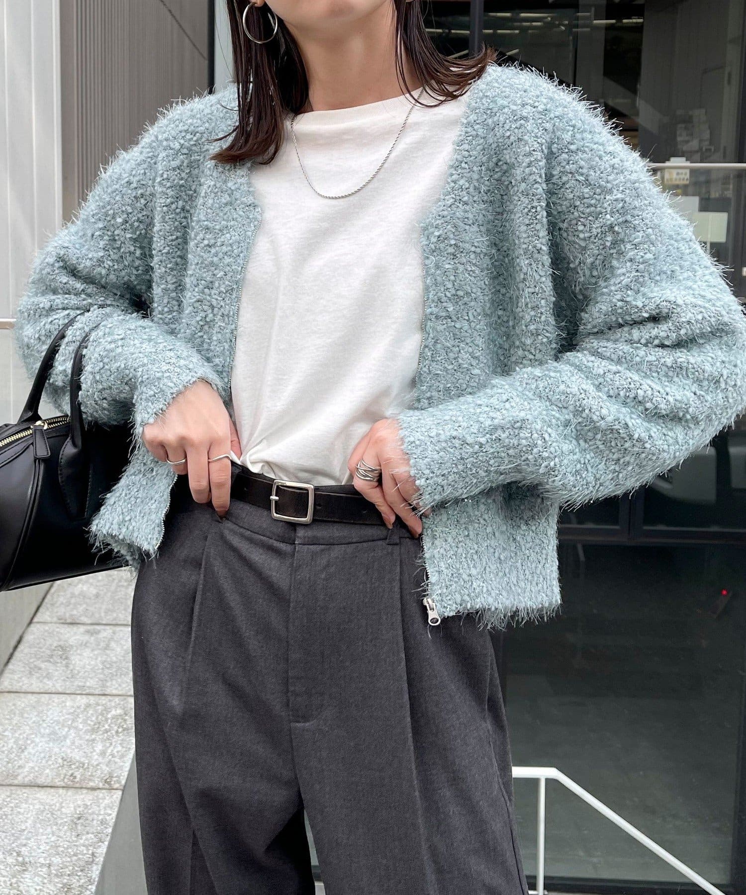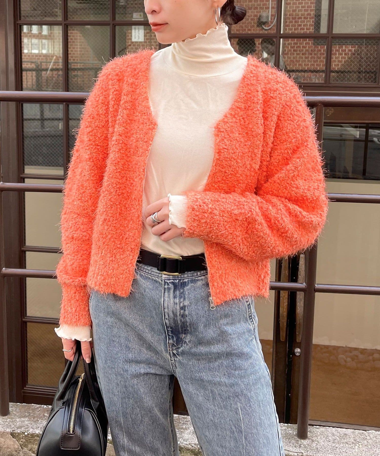 ・ふわっとキラキラ感のあるシャギーの糸をミックスしたトレンド感あるカーディガン