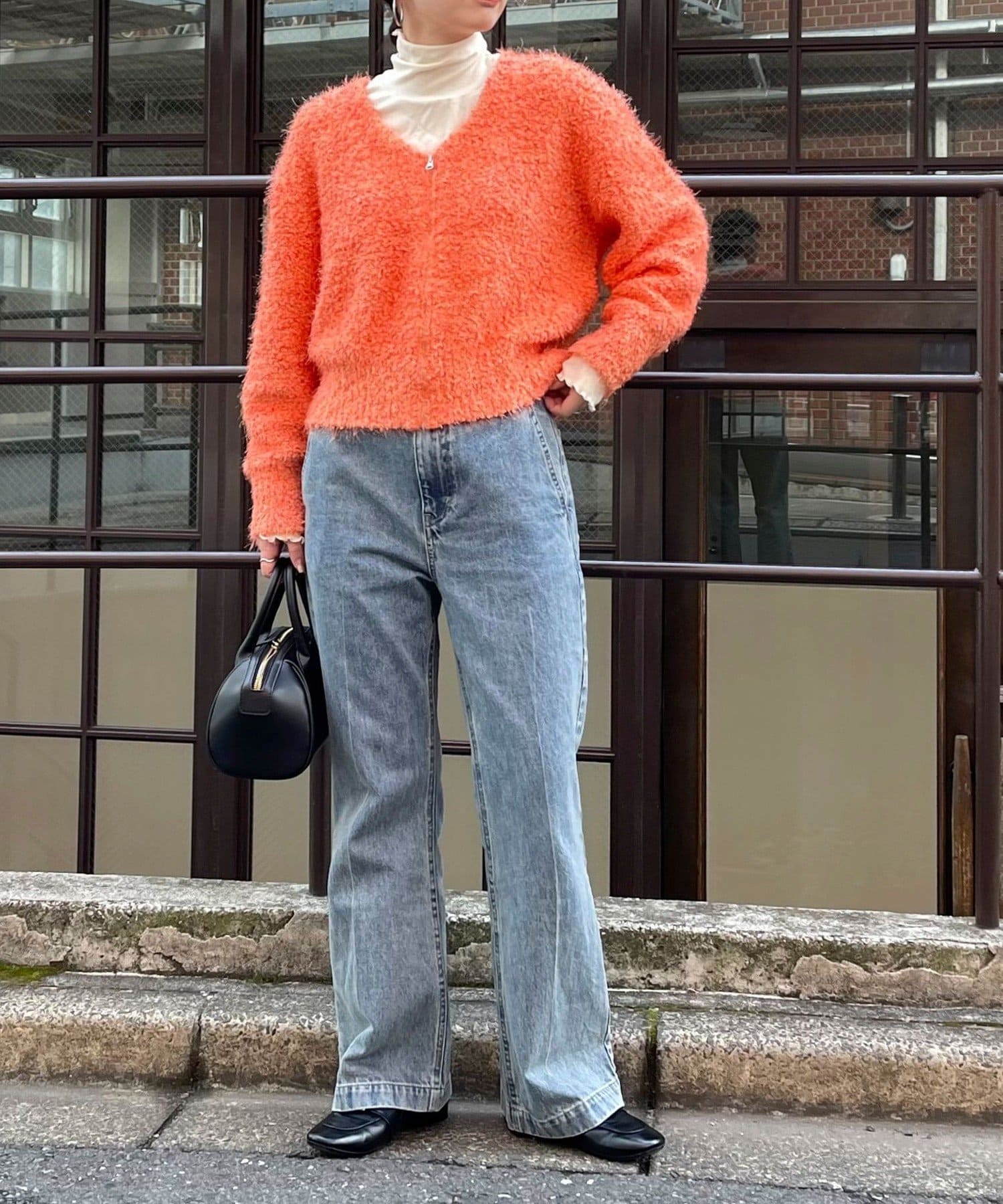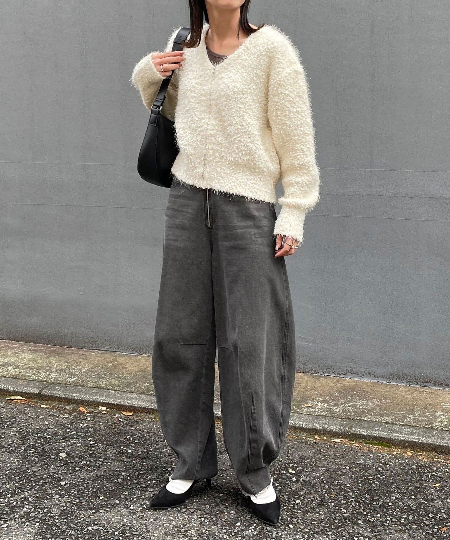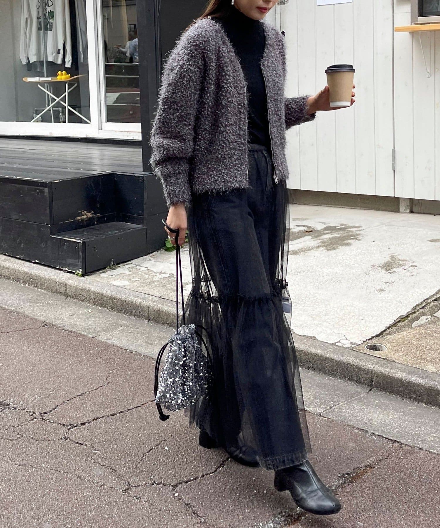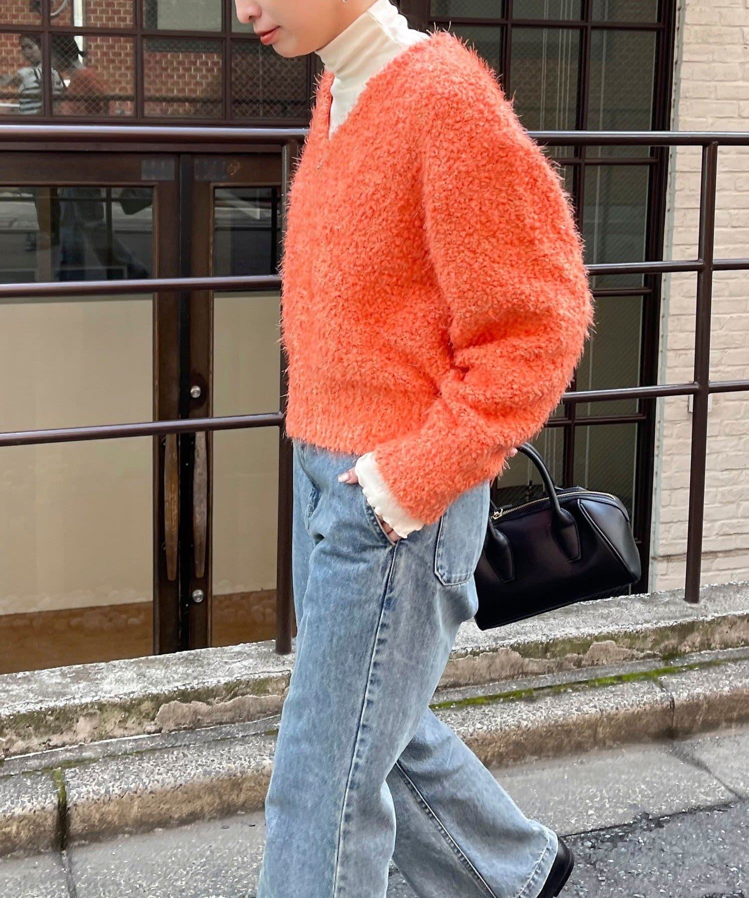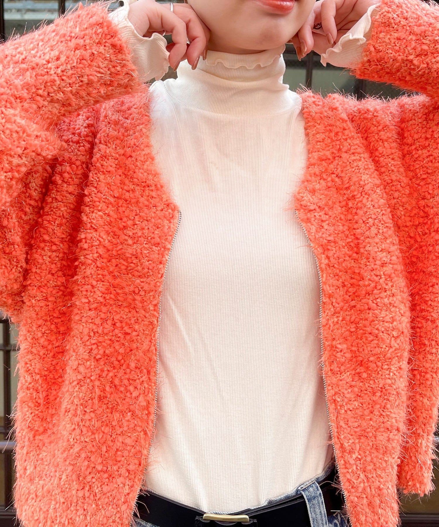 ・ふわっとキラキラ感のあるシャギーの糸をミックスしたトレンド感あるカーディガン