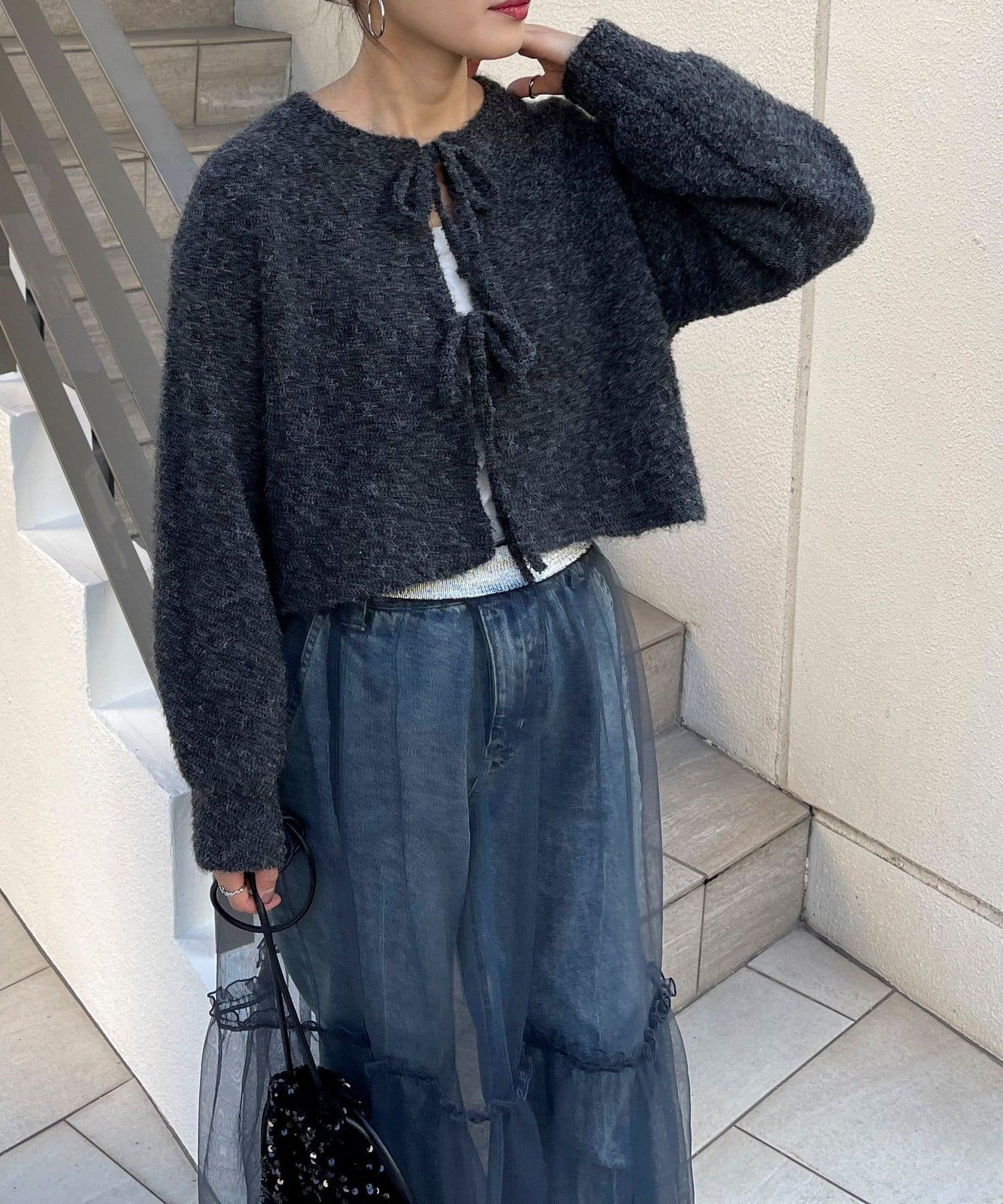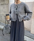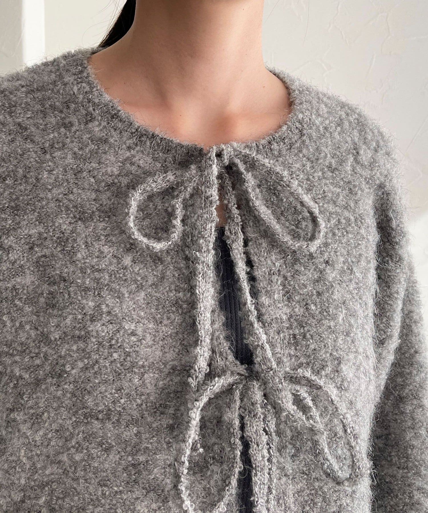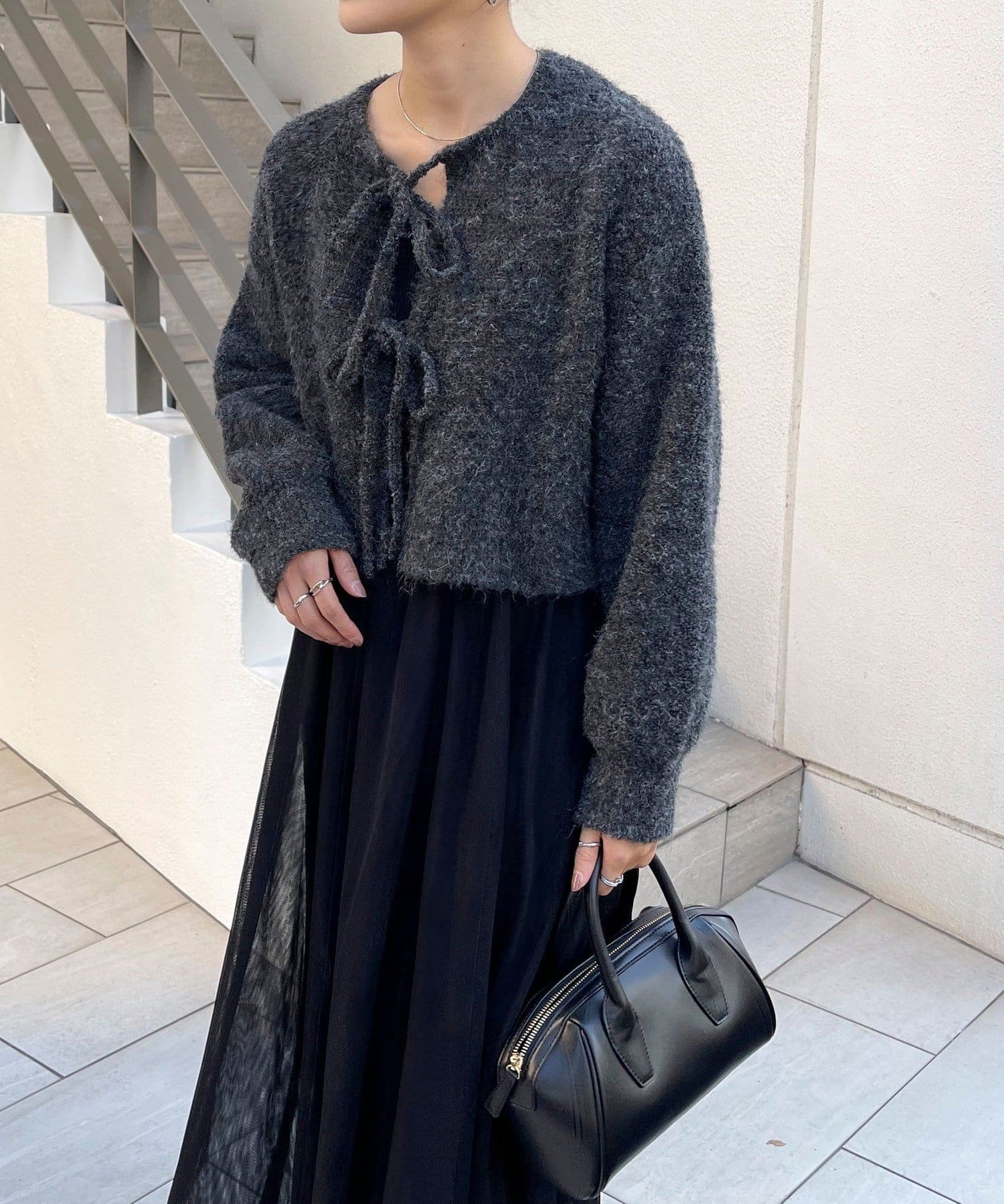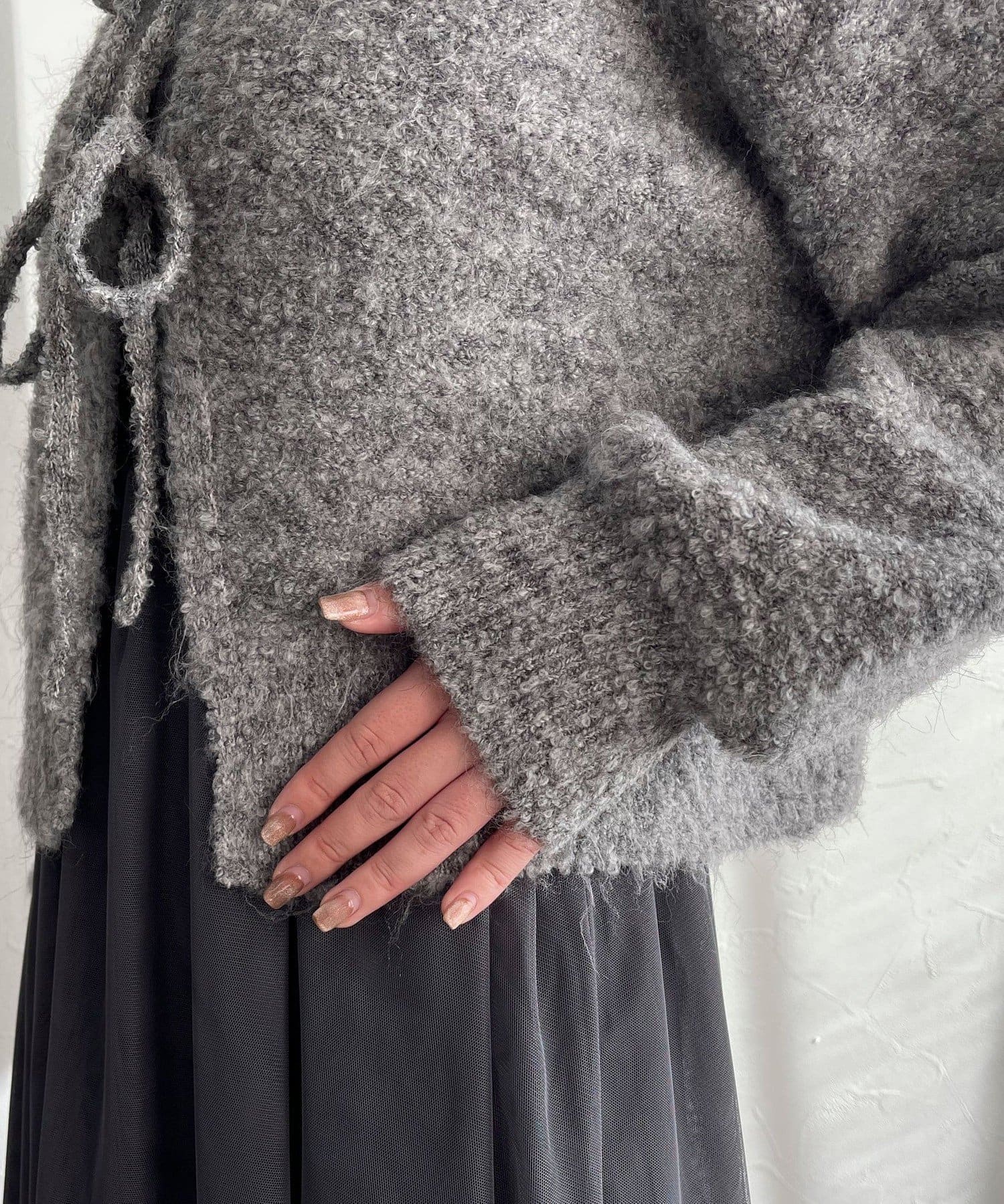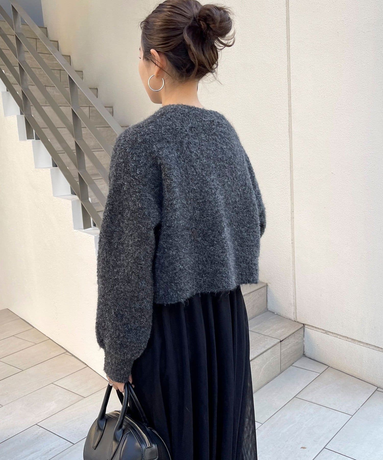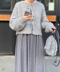 ・ニットはブークレのもこもこ感が可愛いい暖かな素材。コンパクトな丈感がスタイルアップを叶えます