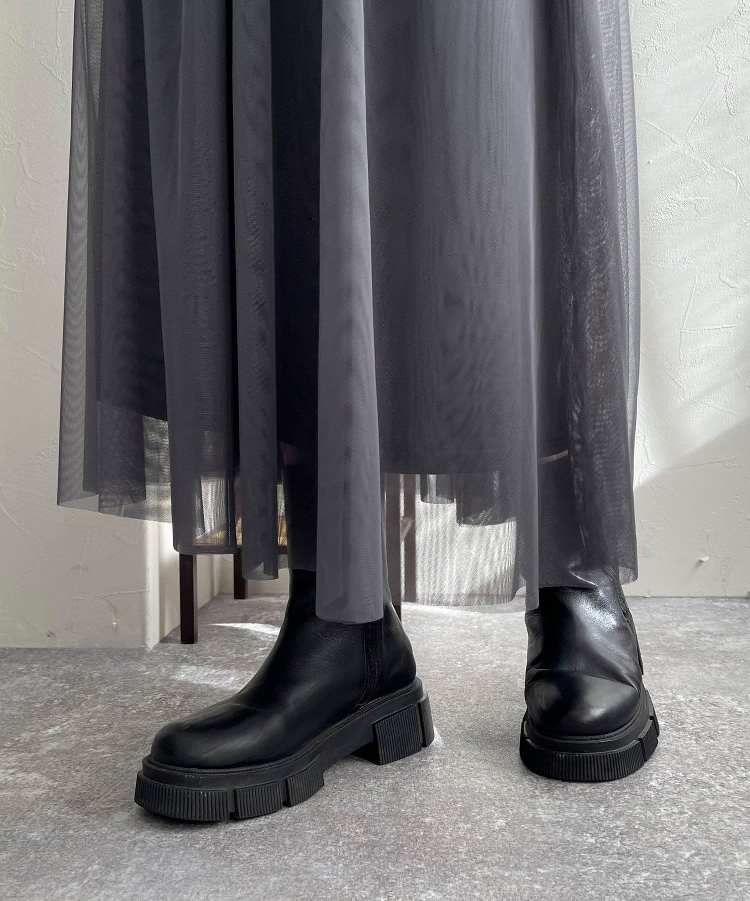 ・チュール素材のワンピースは歩くたびにふんわり揺れる女性らしいシルエット!裏地付きで1枚でも着やすいデザインに仕上げました