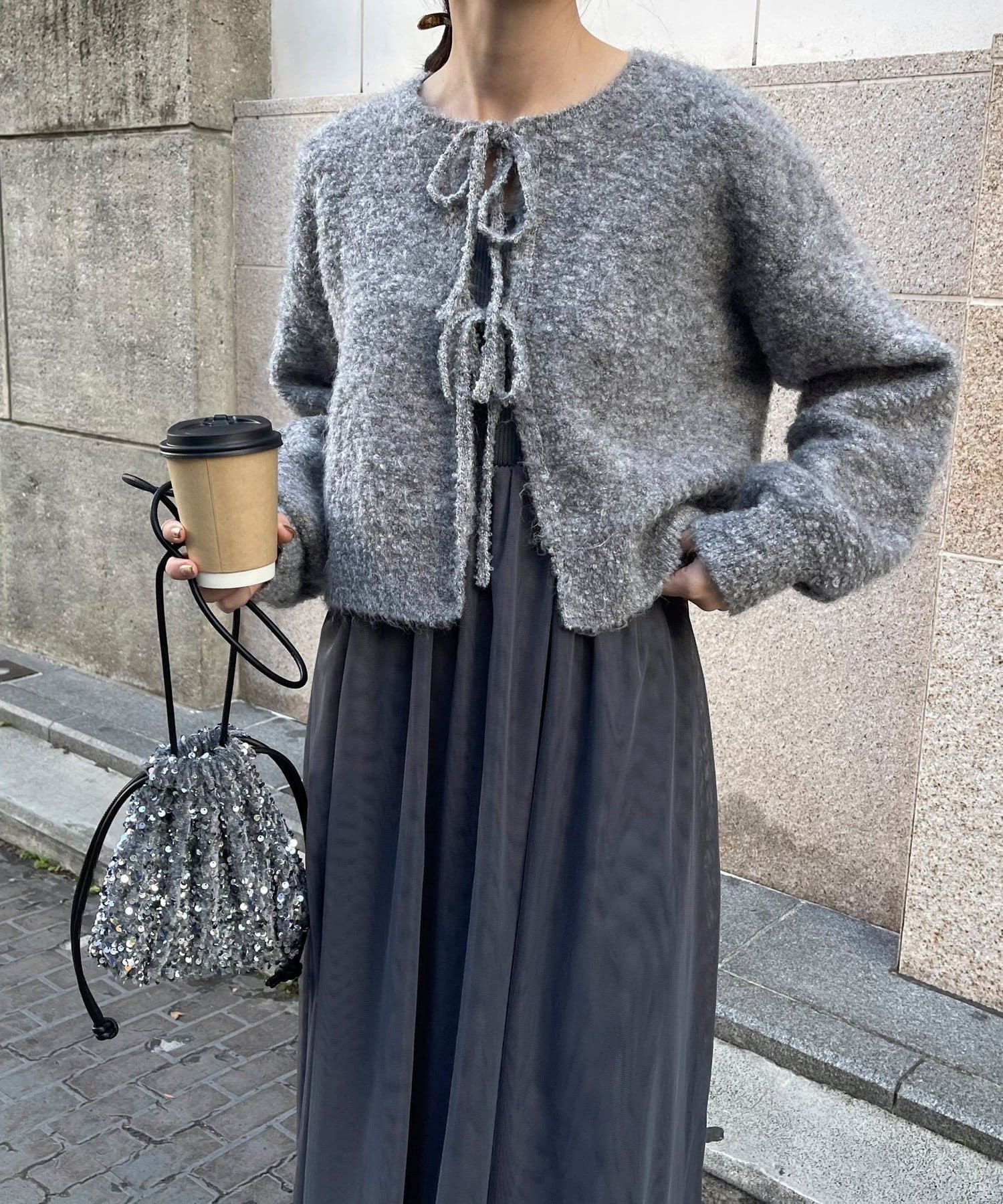 ・フロントの紐は結んでも垂らしても可愛いく、合わせるもので雰囲気を変えて楽しめます
