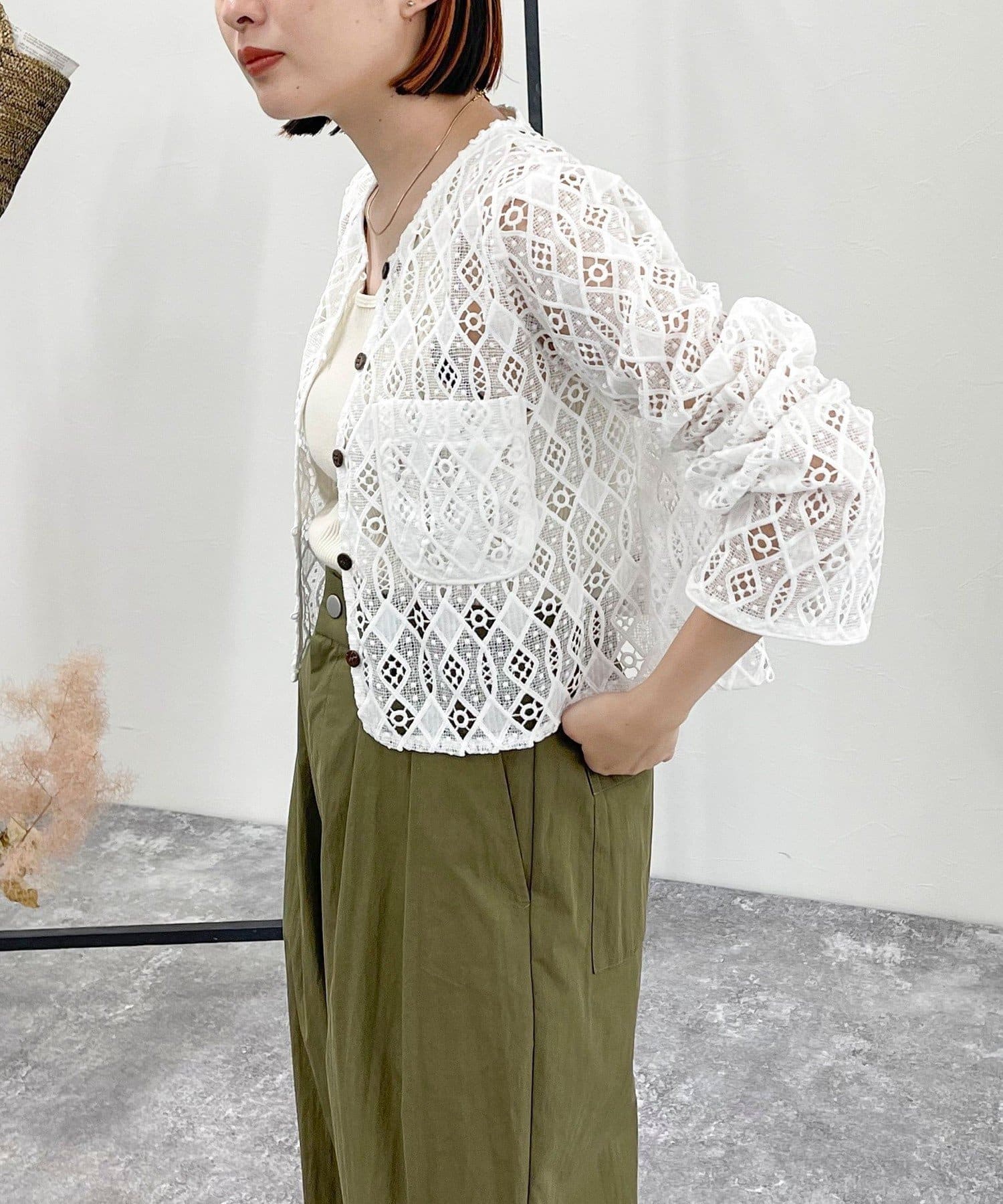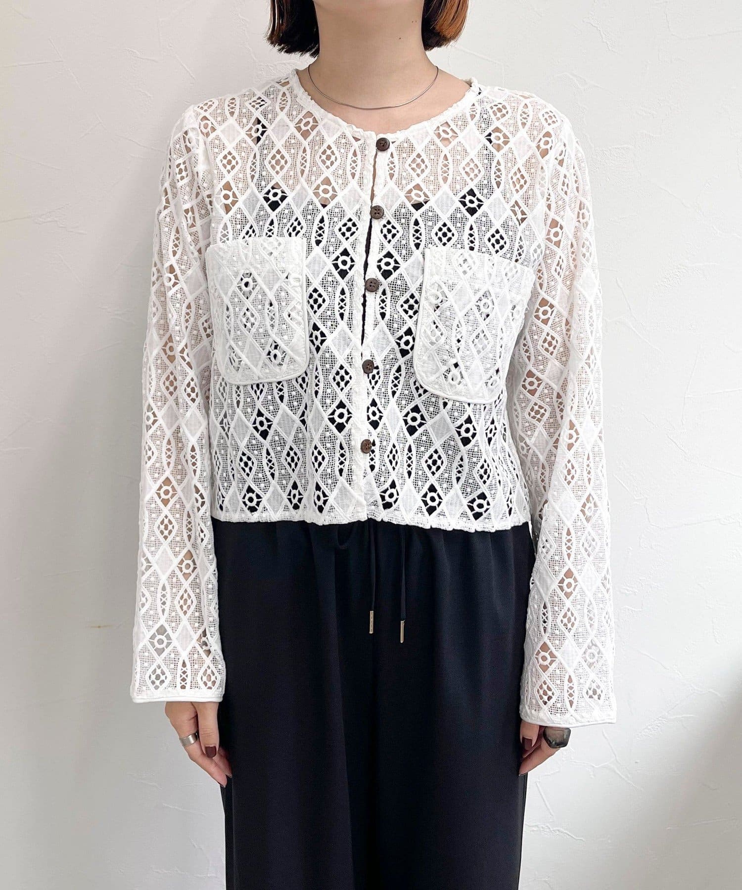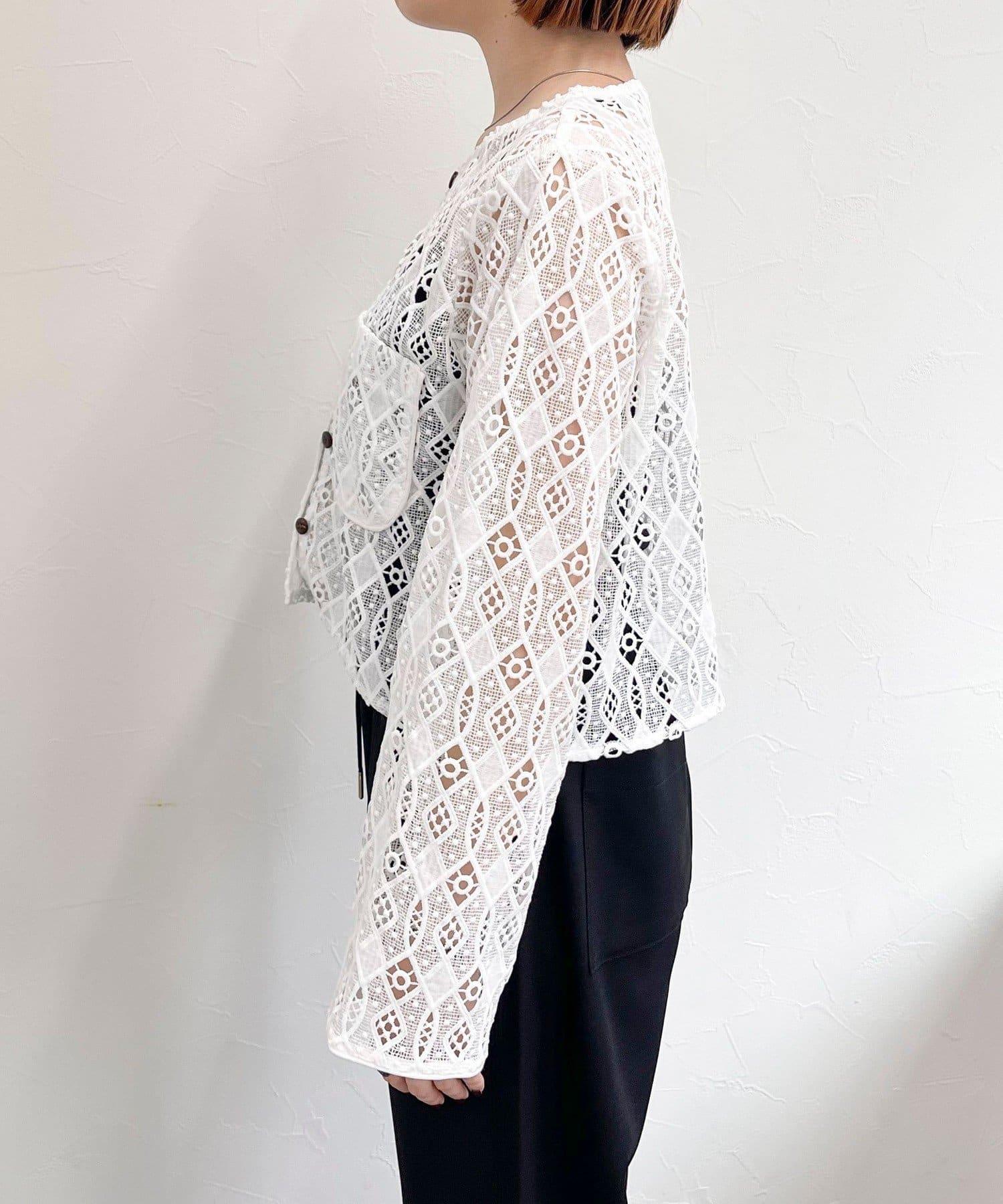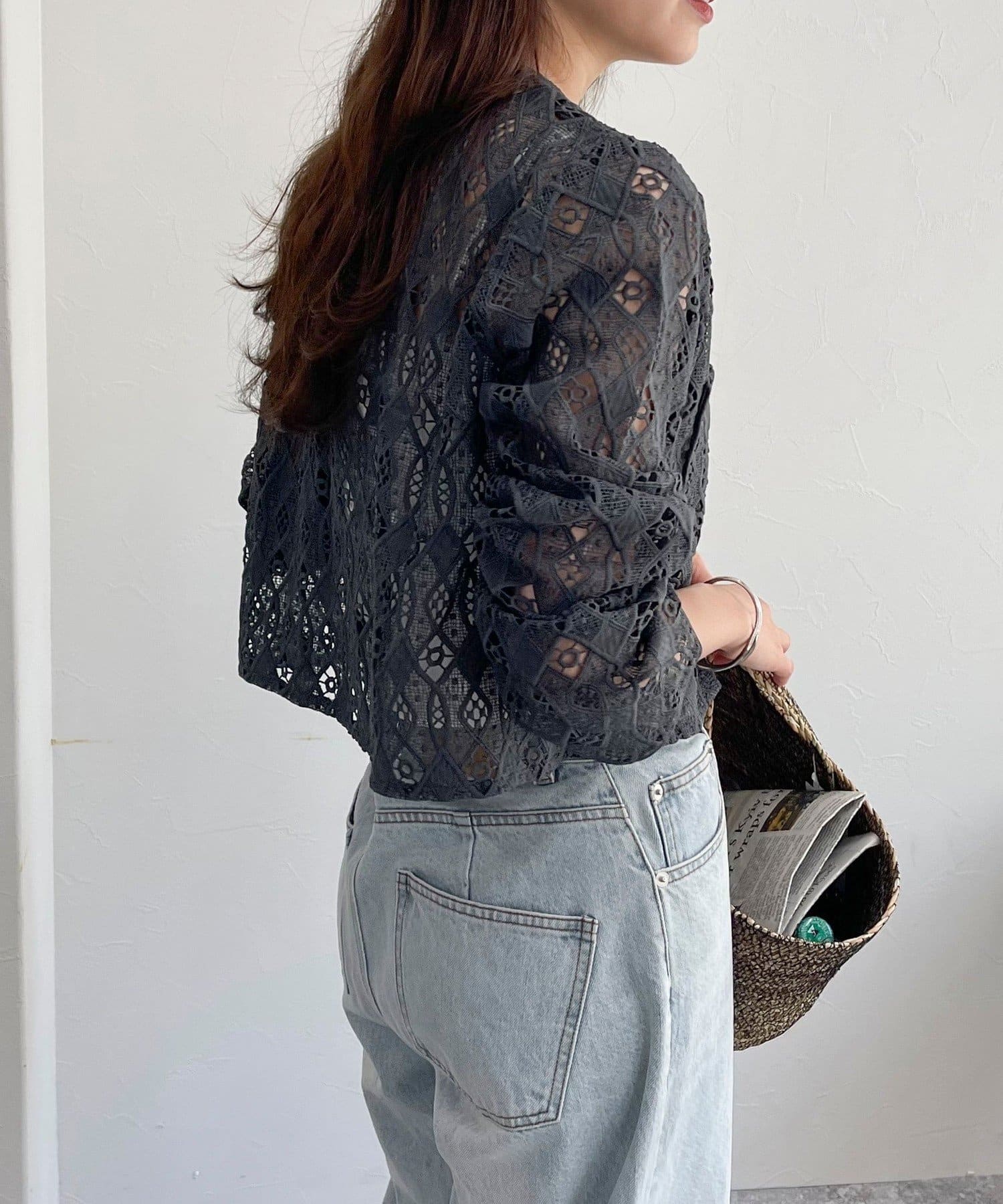 ・ハリ感のあるレース生地を使用したカーディガンブラウスです