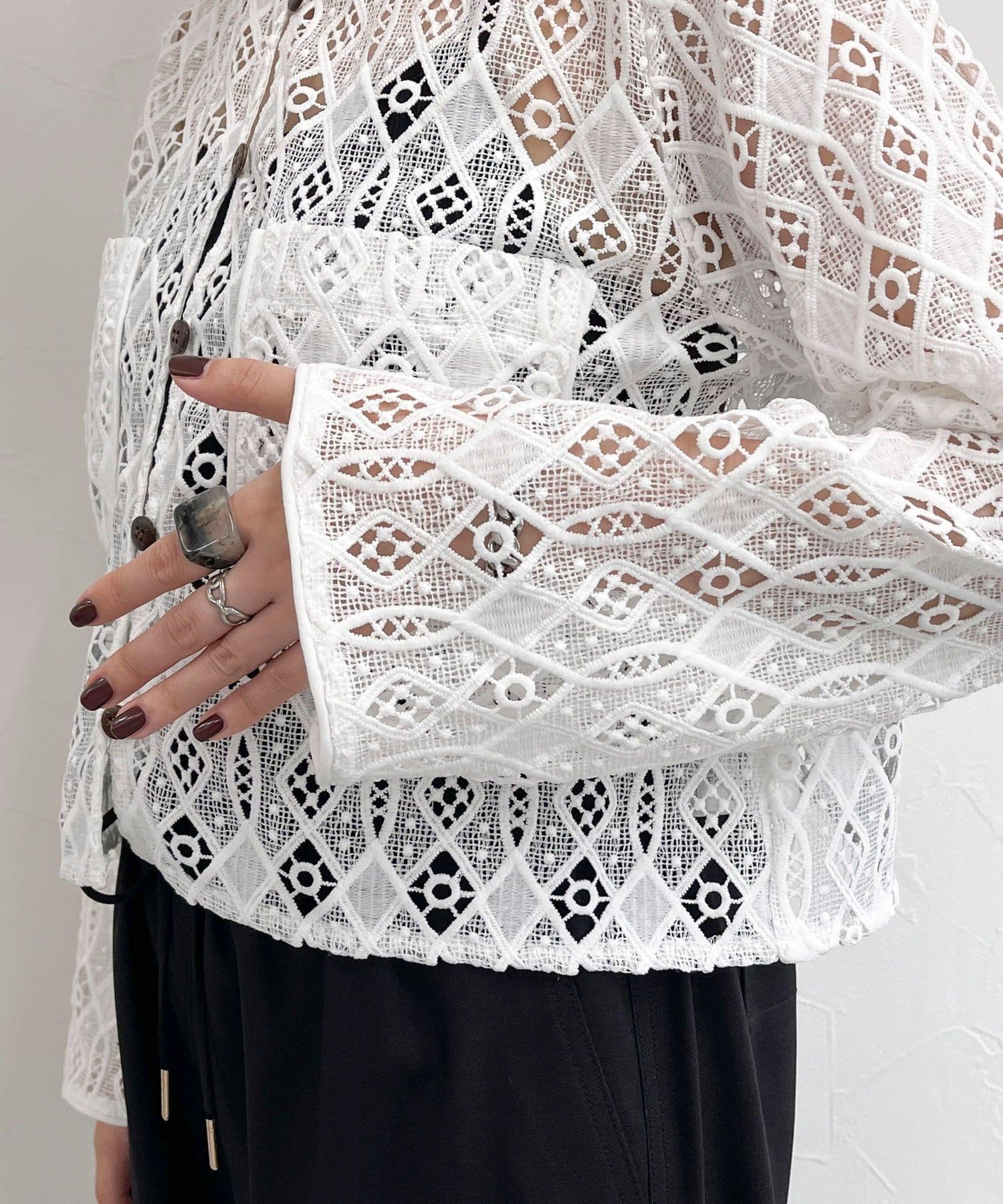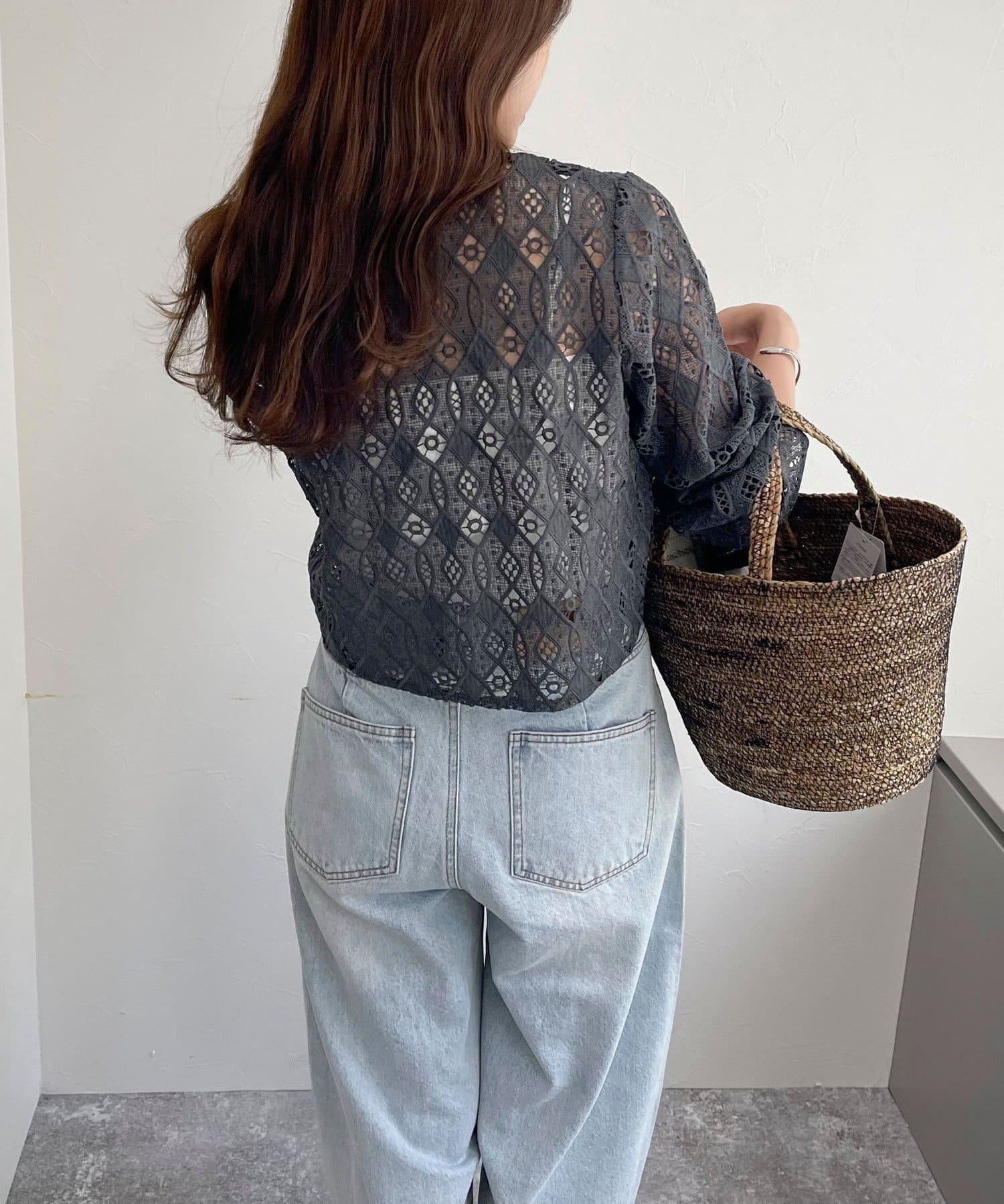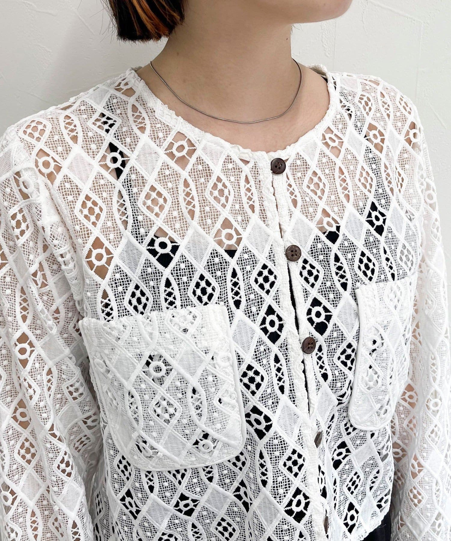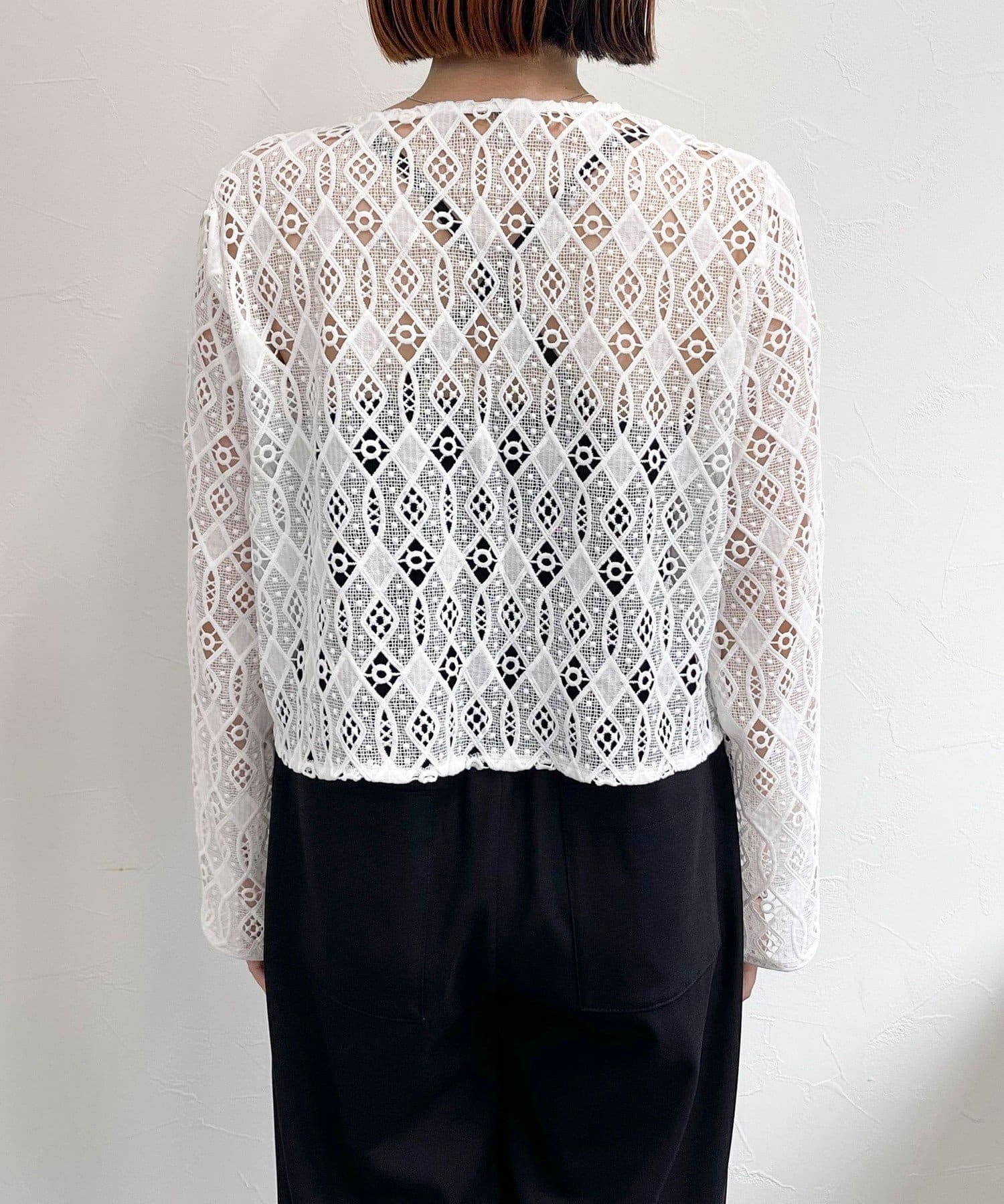 ・ハリ感のあるレース生地を使用したカーディガンブラウスです