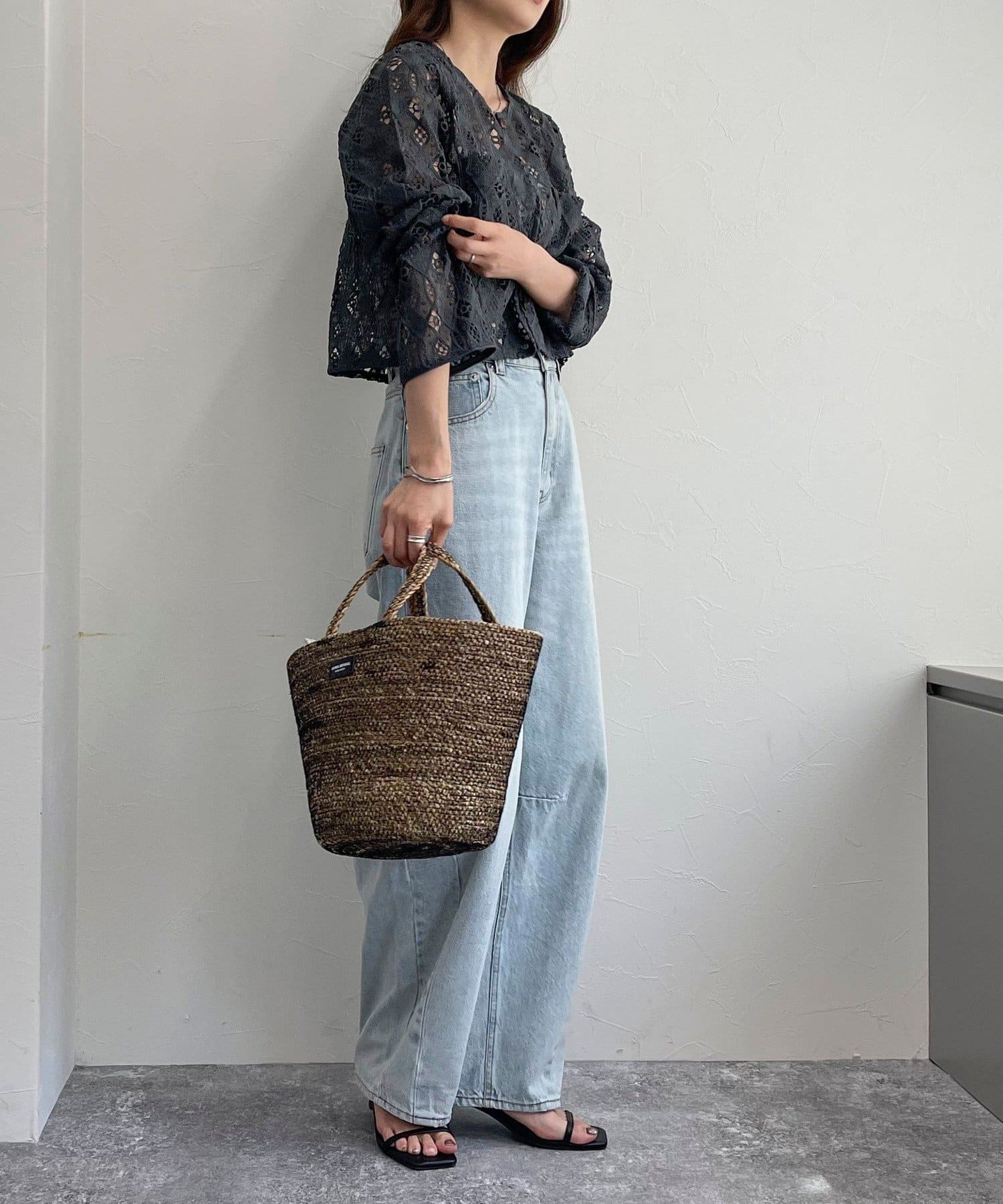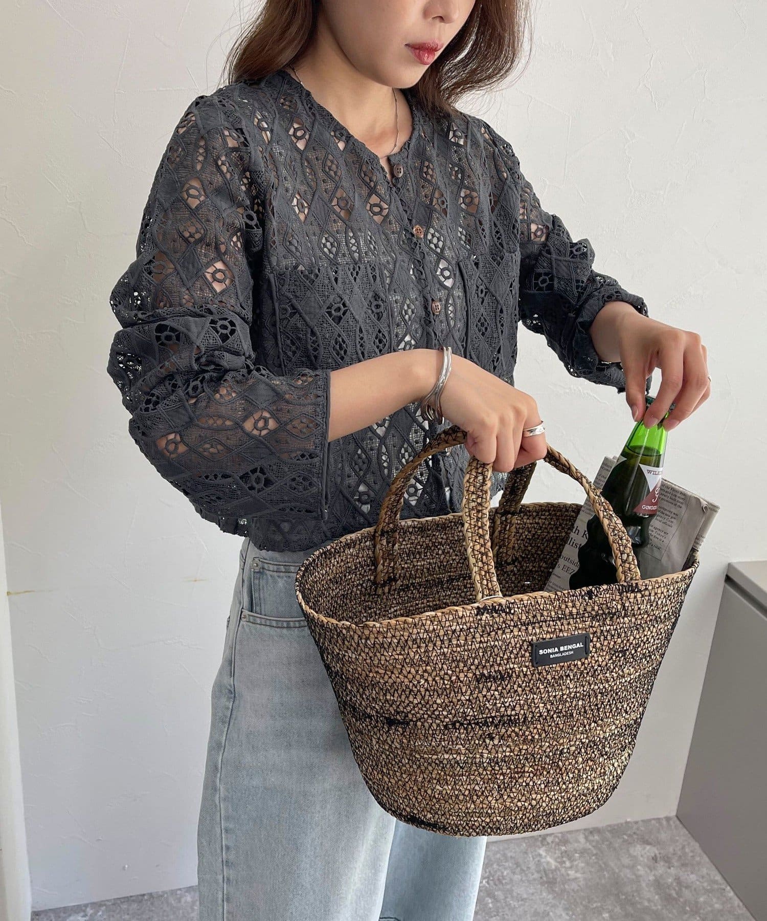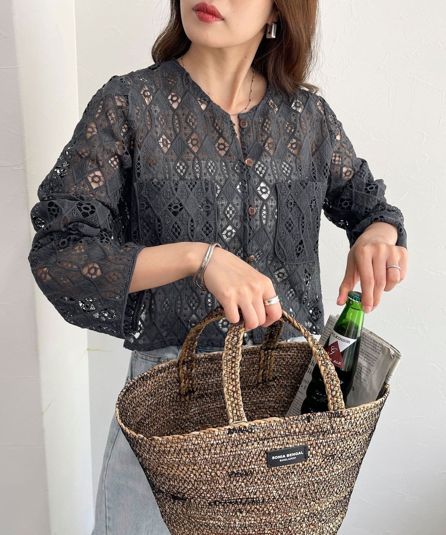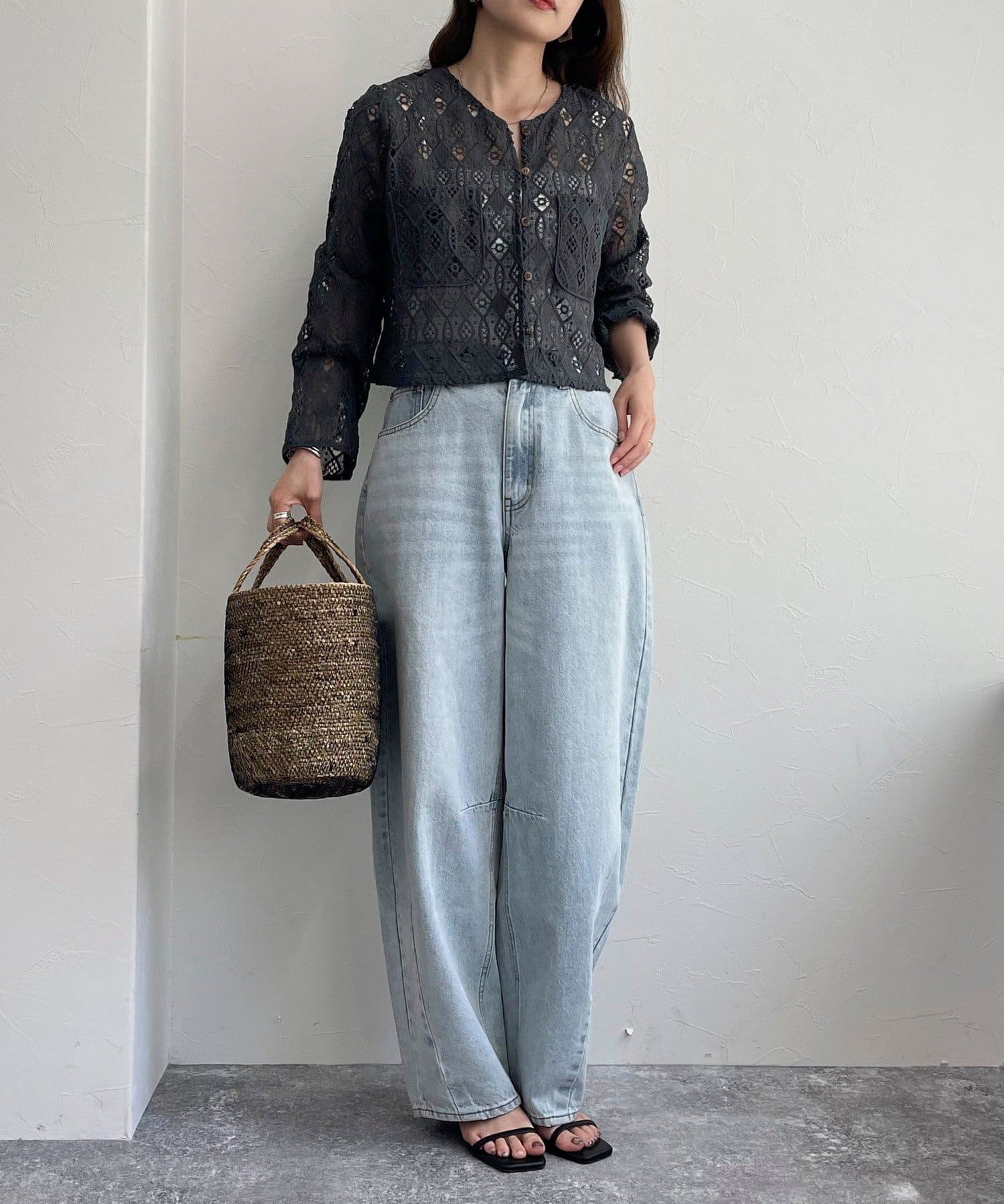 ・ハリ感のあるレース生地を使用したカーディガンブラウスです