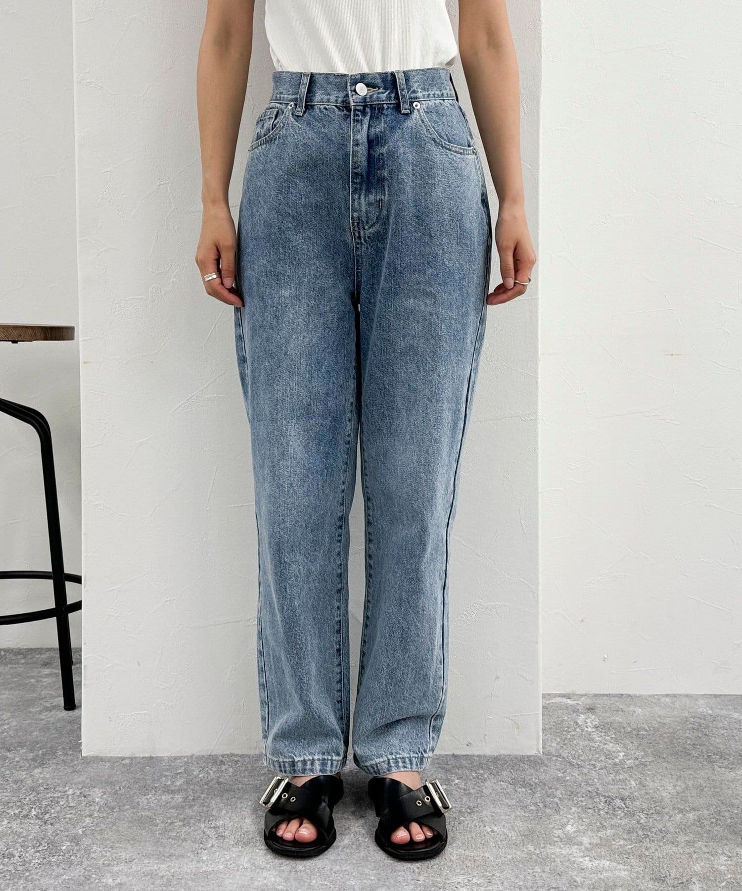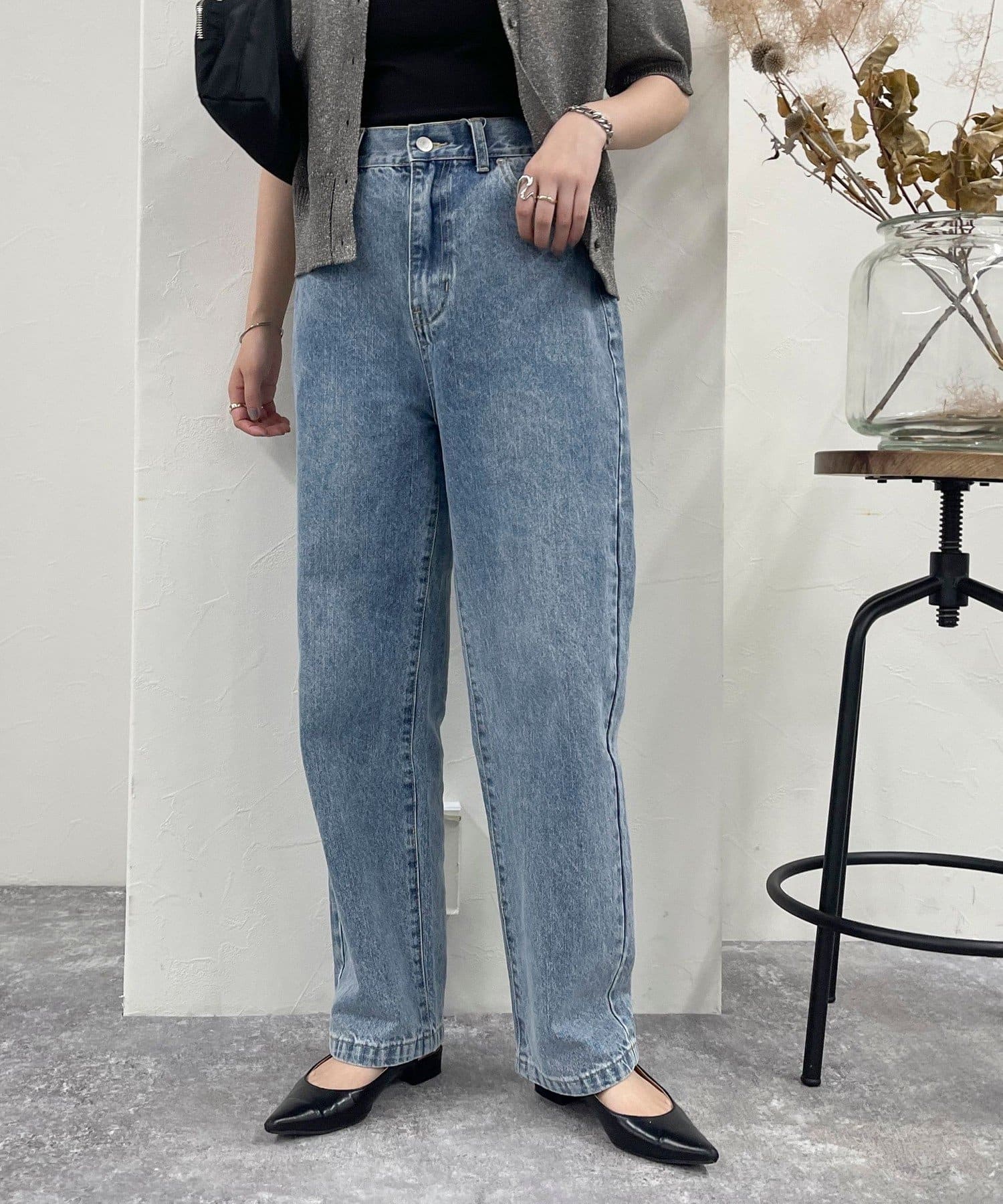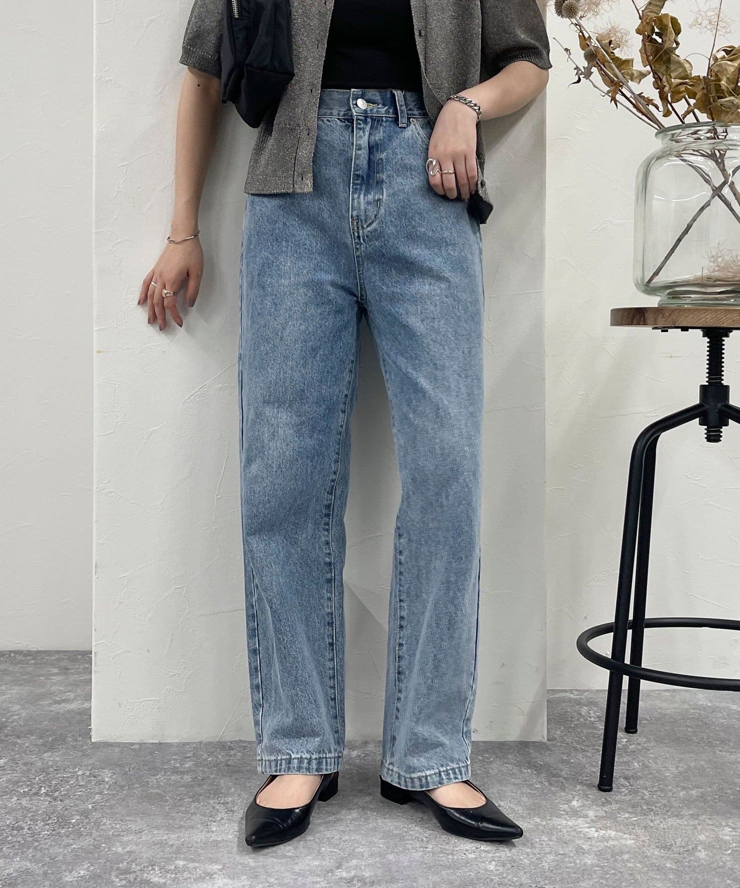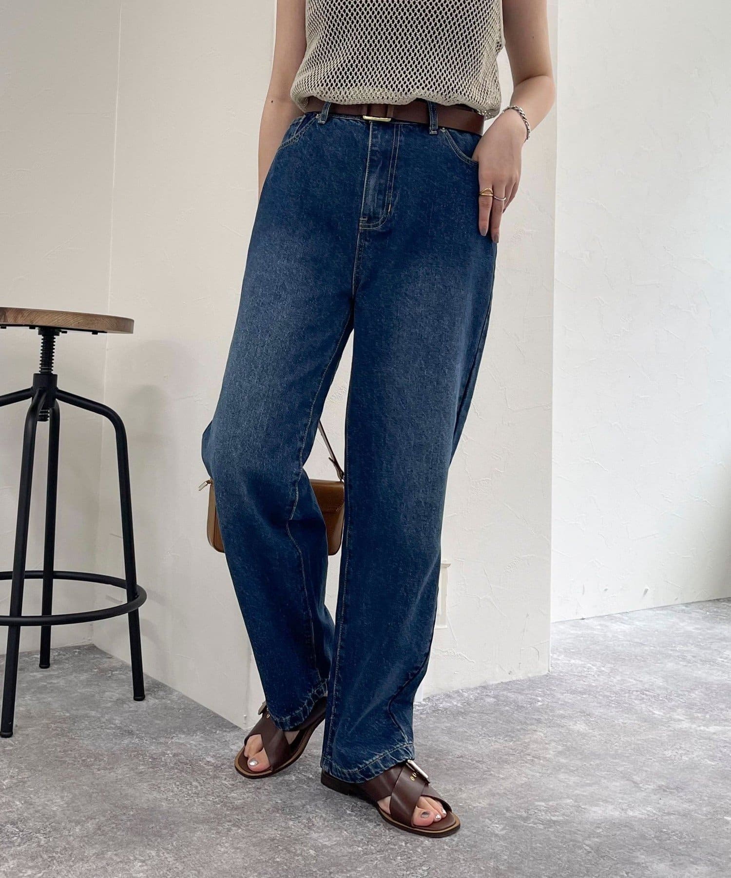・ストレートで脚長効果が得られるこだわりの美シルエットのデニムパンツです