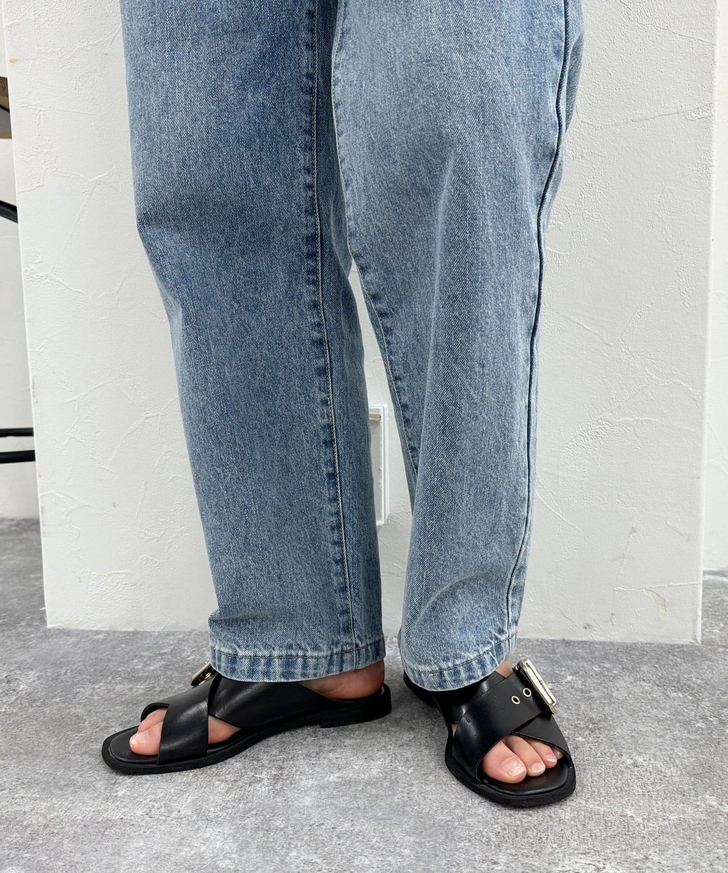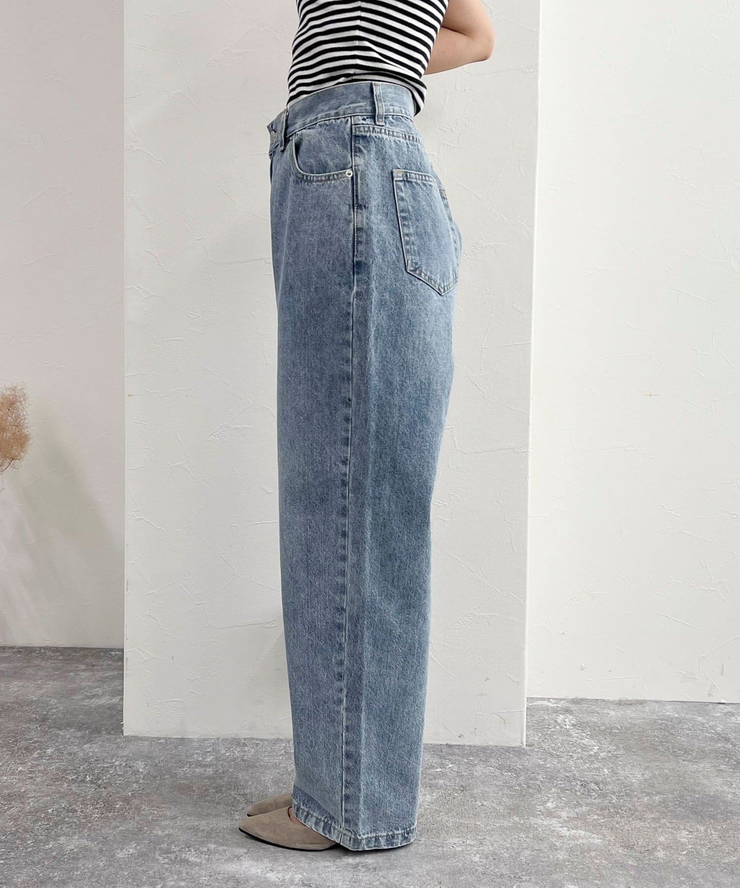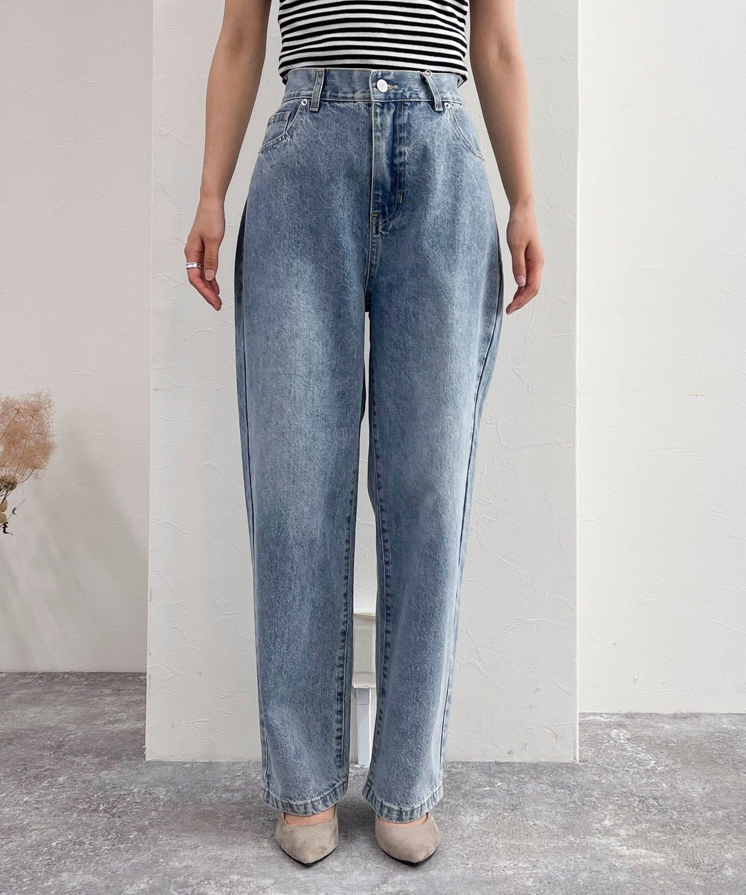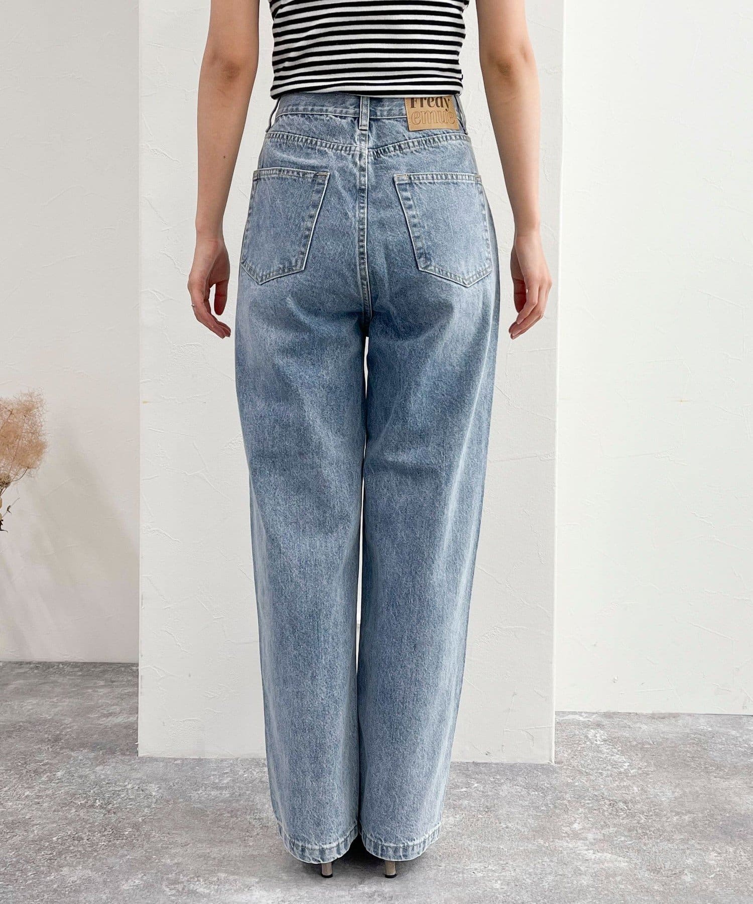 ・ストレートで脚長効果が得られるこだわりの美シルエットのデニムパンツです