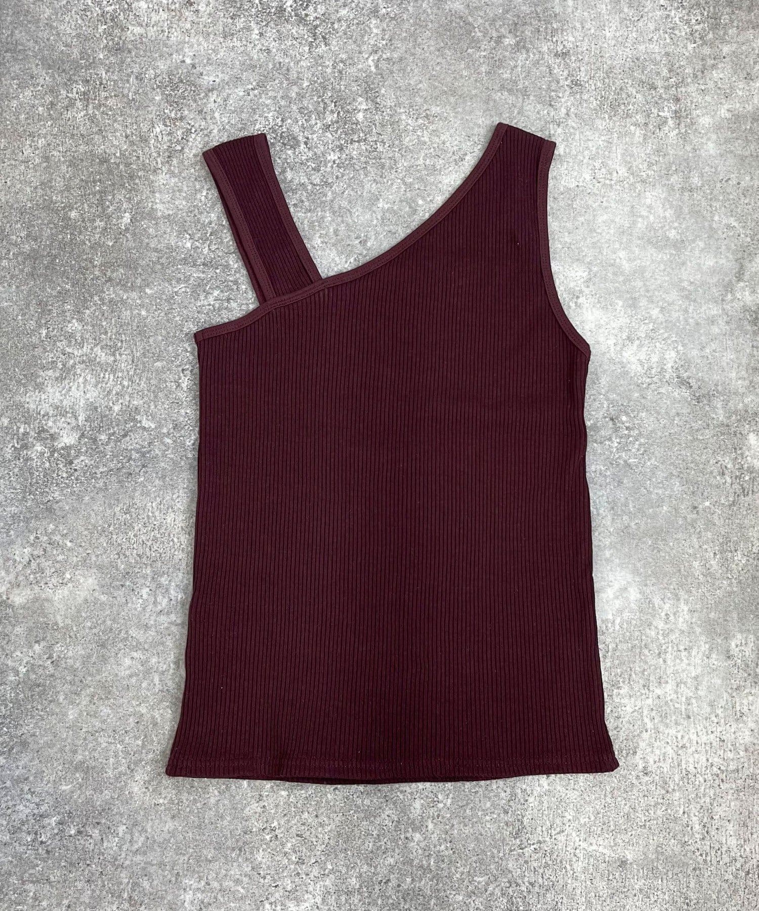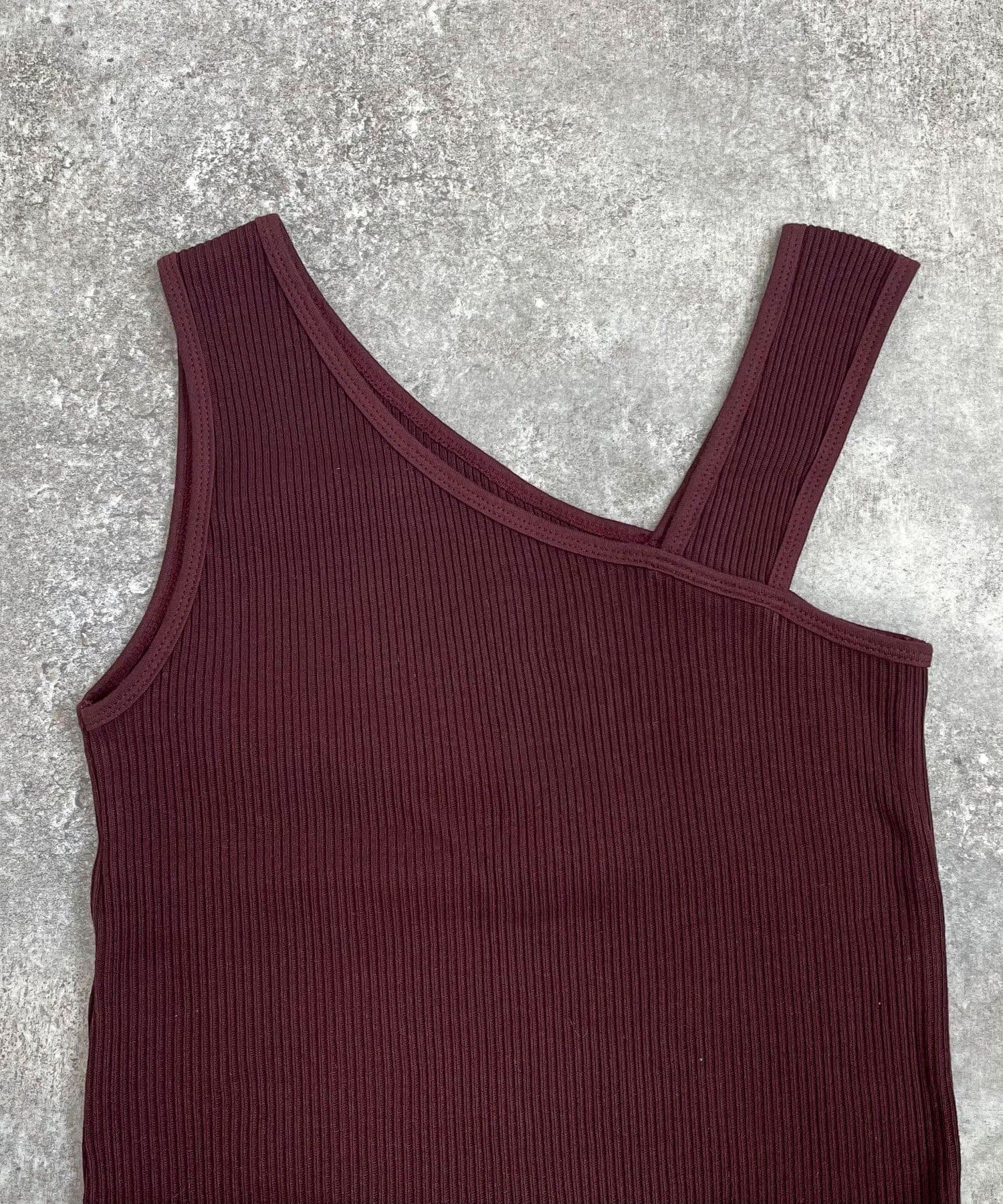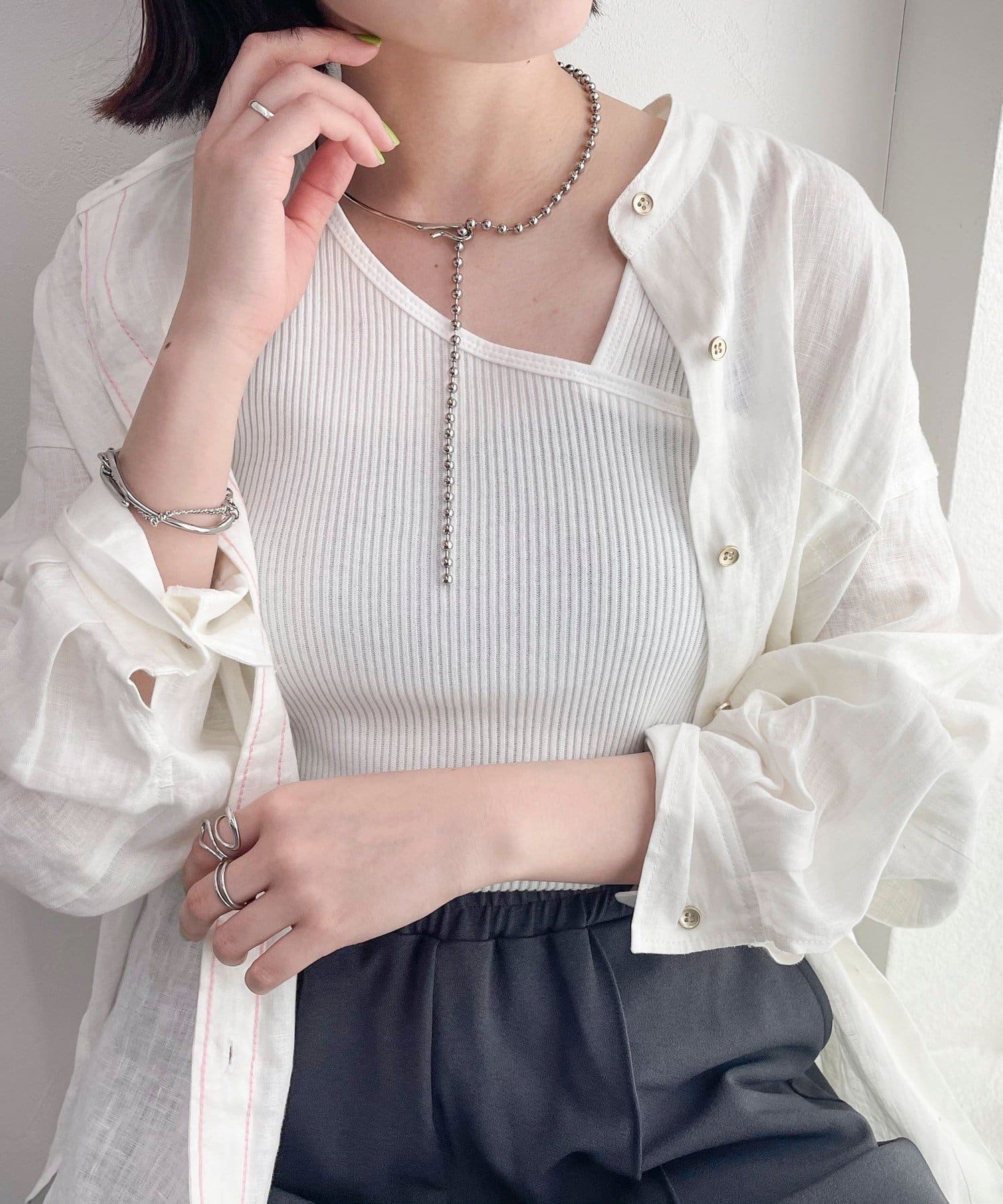 ・オールシーズン使える、アシメデザインがこなれ感を演出してくれるタンクトップです