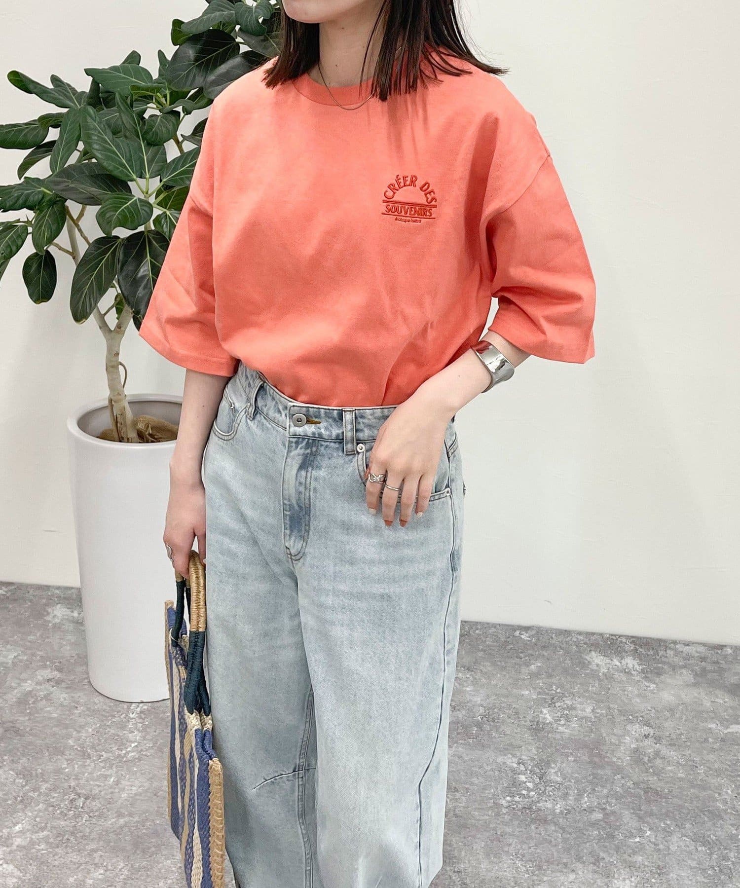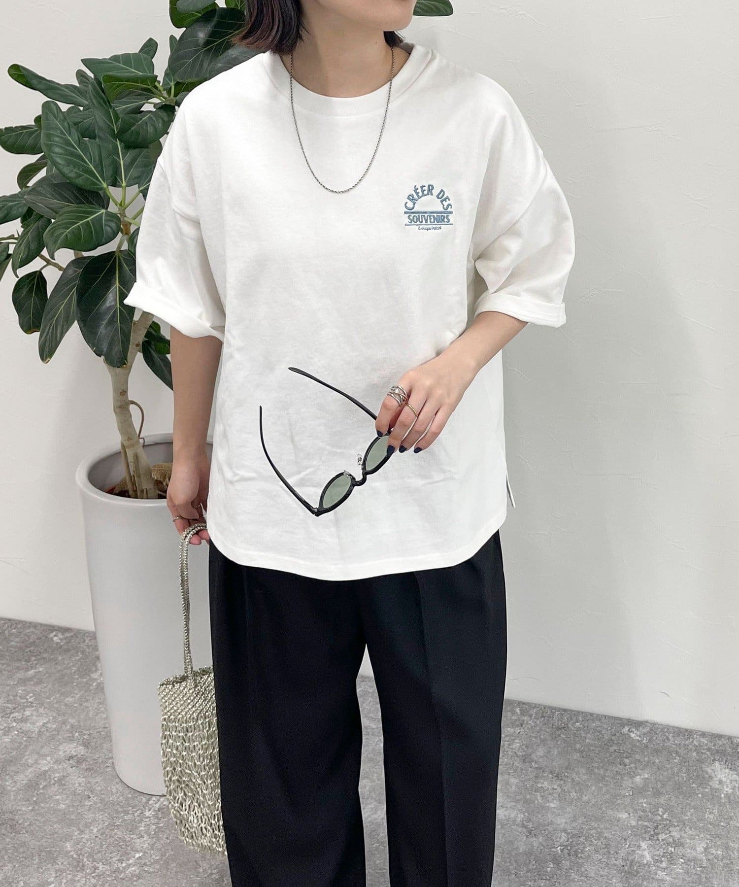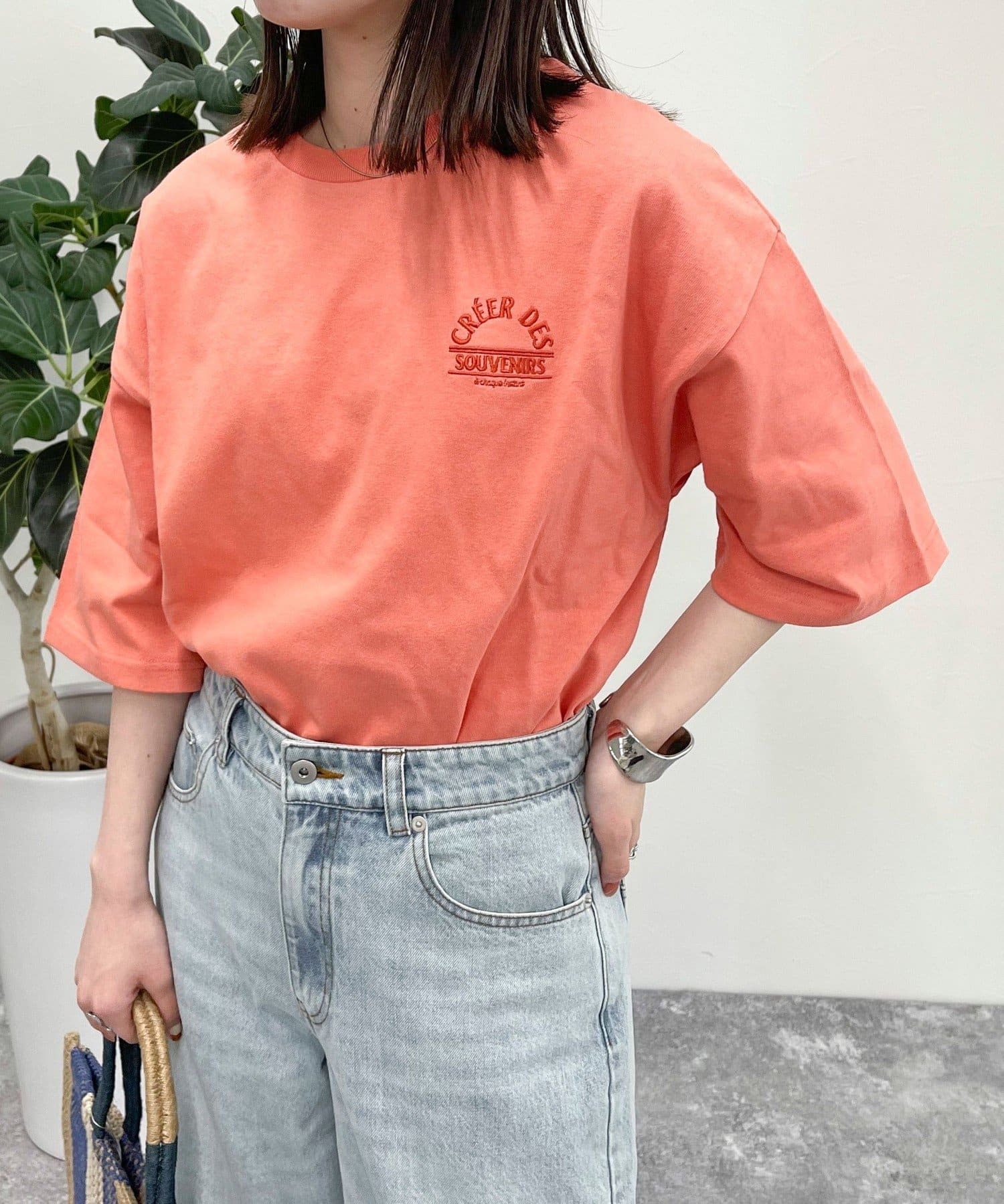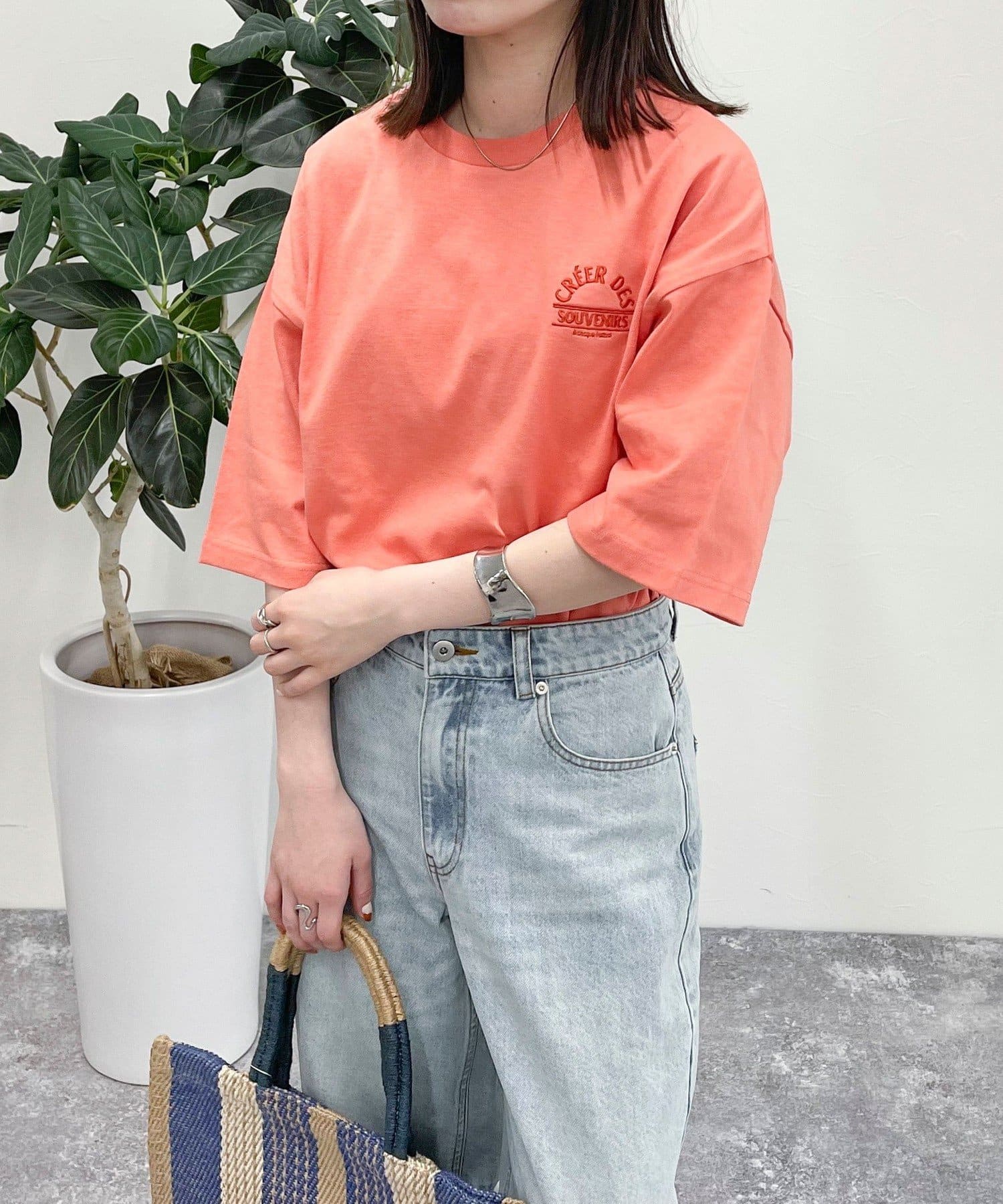 トレンド感のあるシルエットの刺繍入りTシャツ