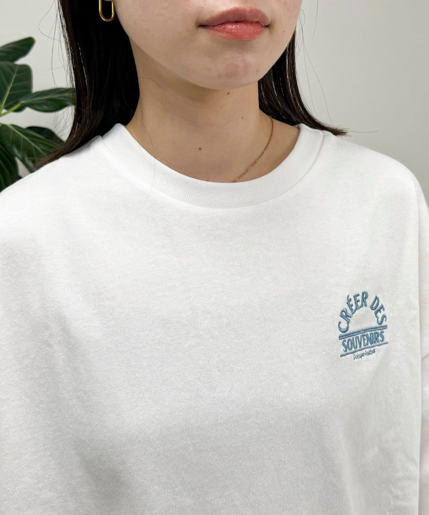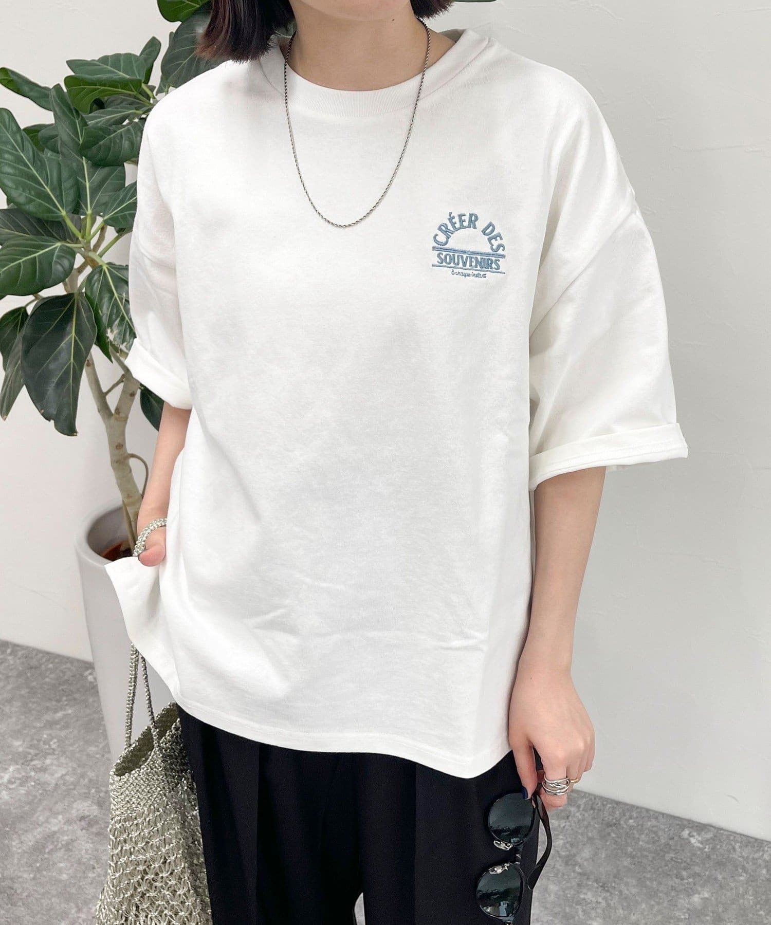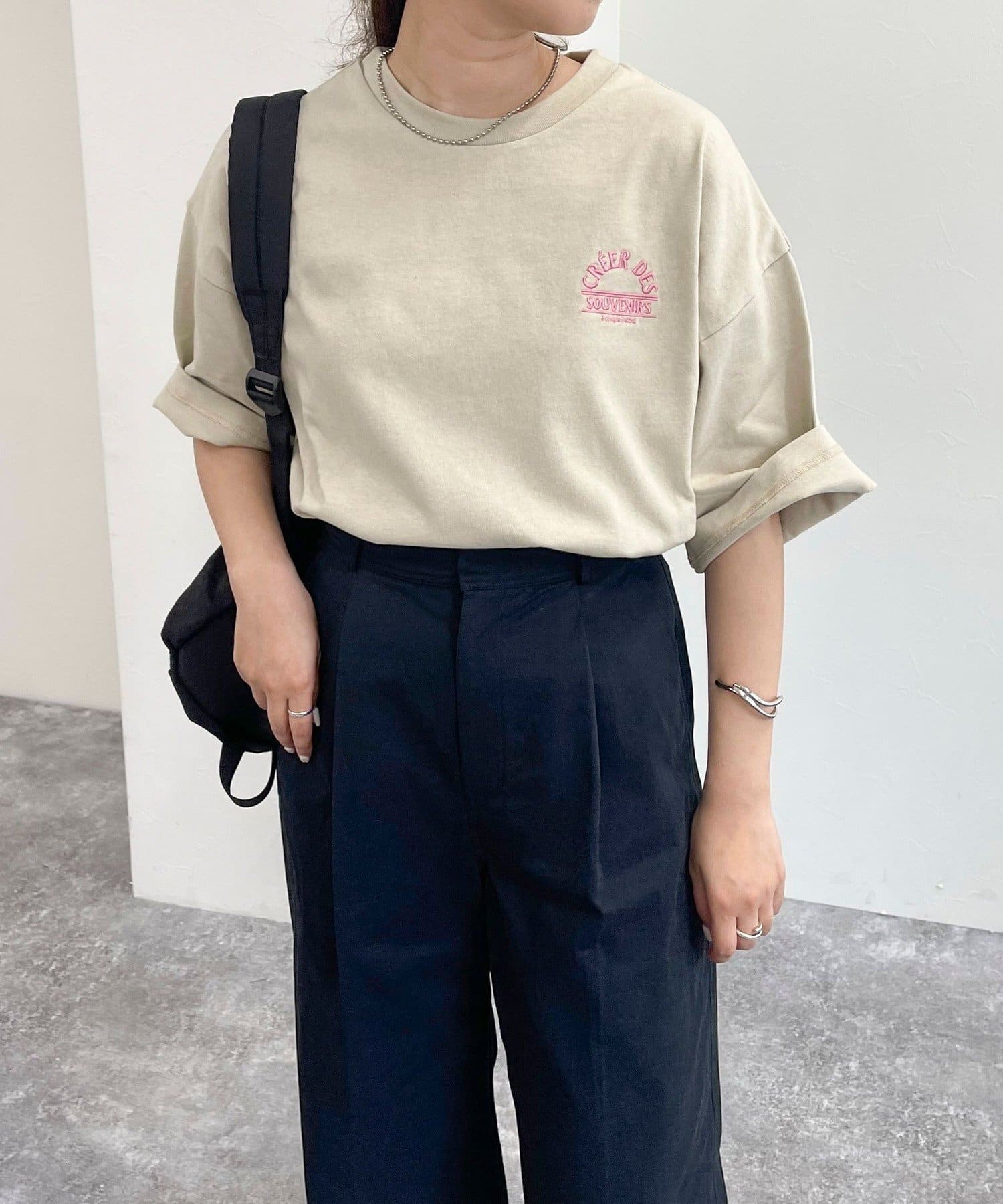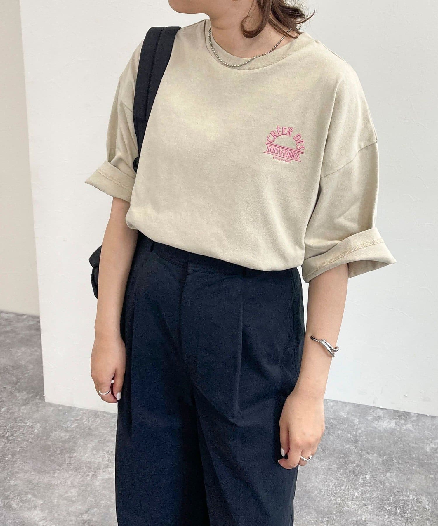 ・胸元の刺繍がポイントのゆったりサイズのTシャツです