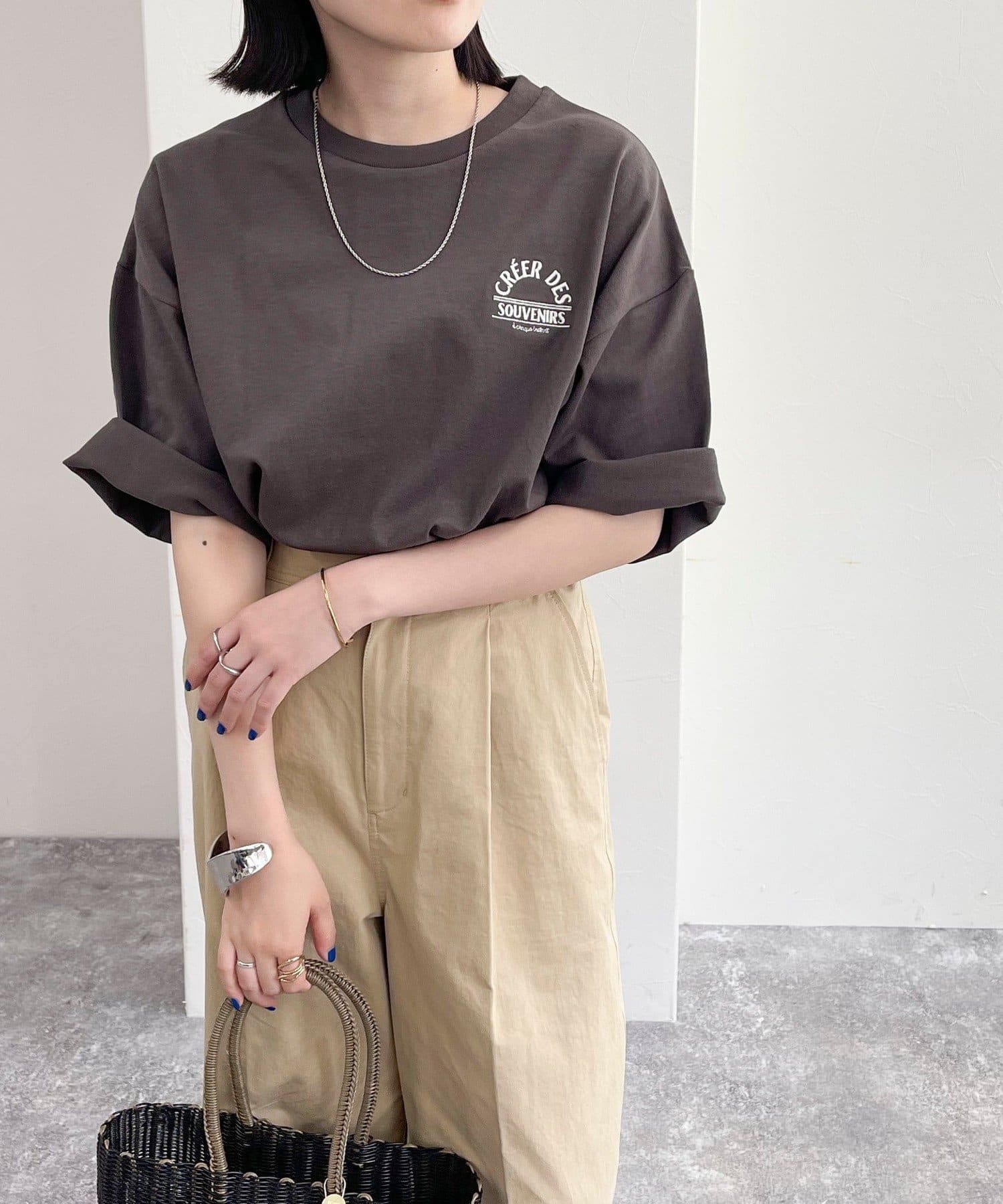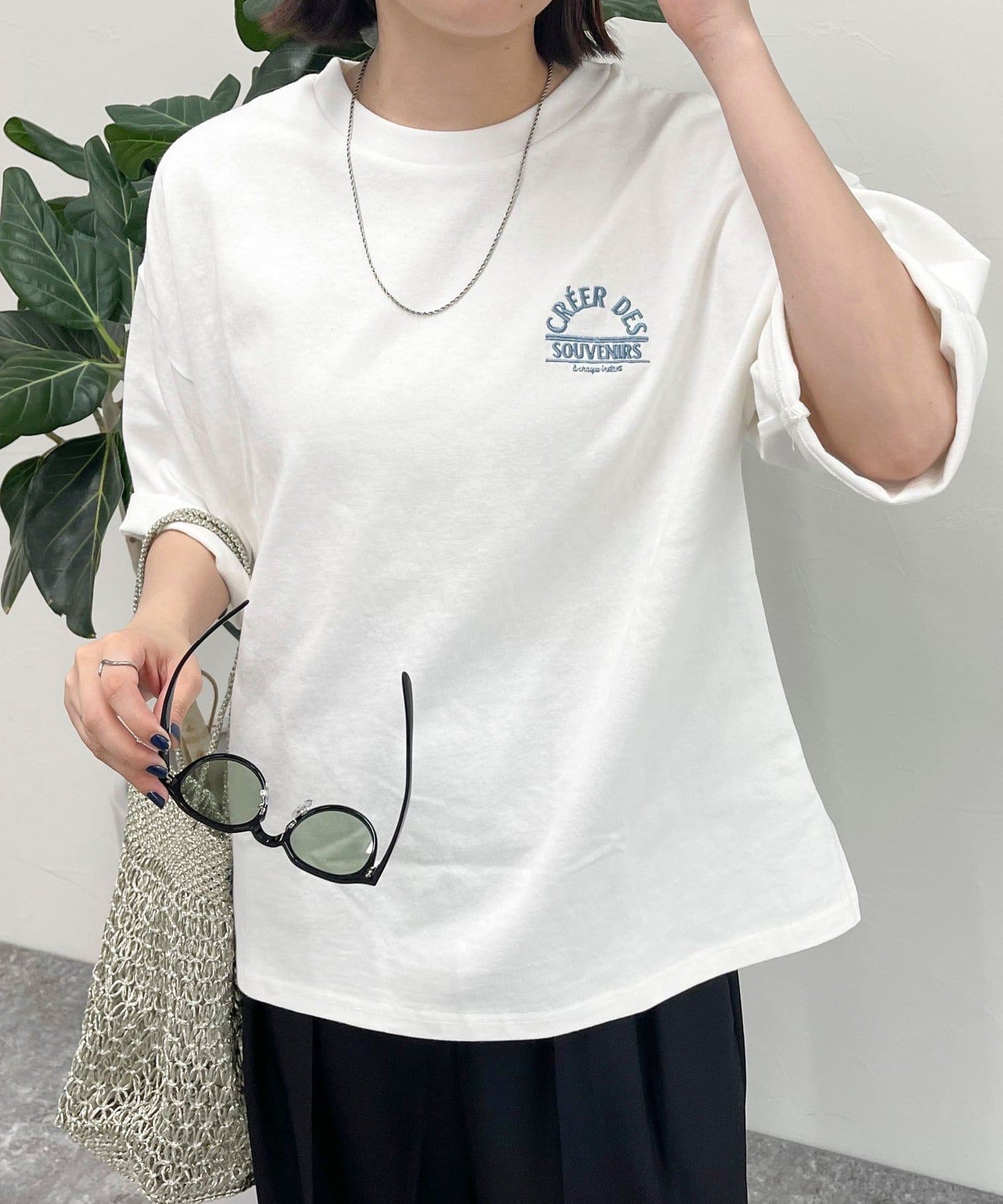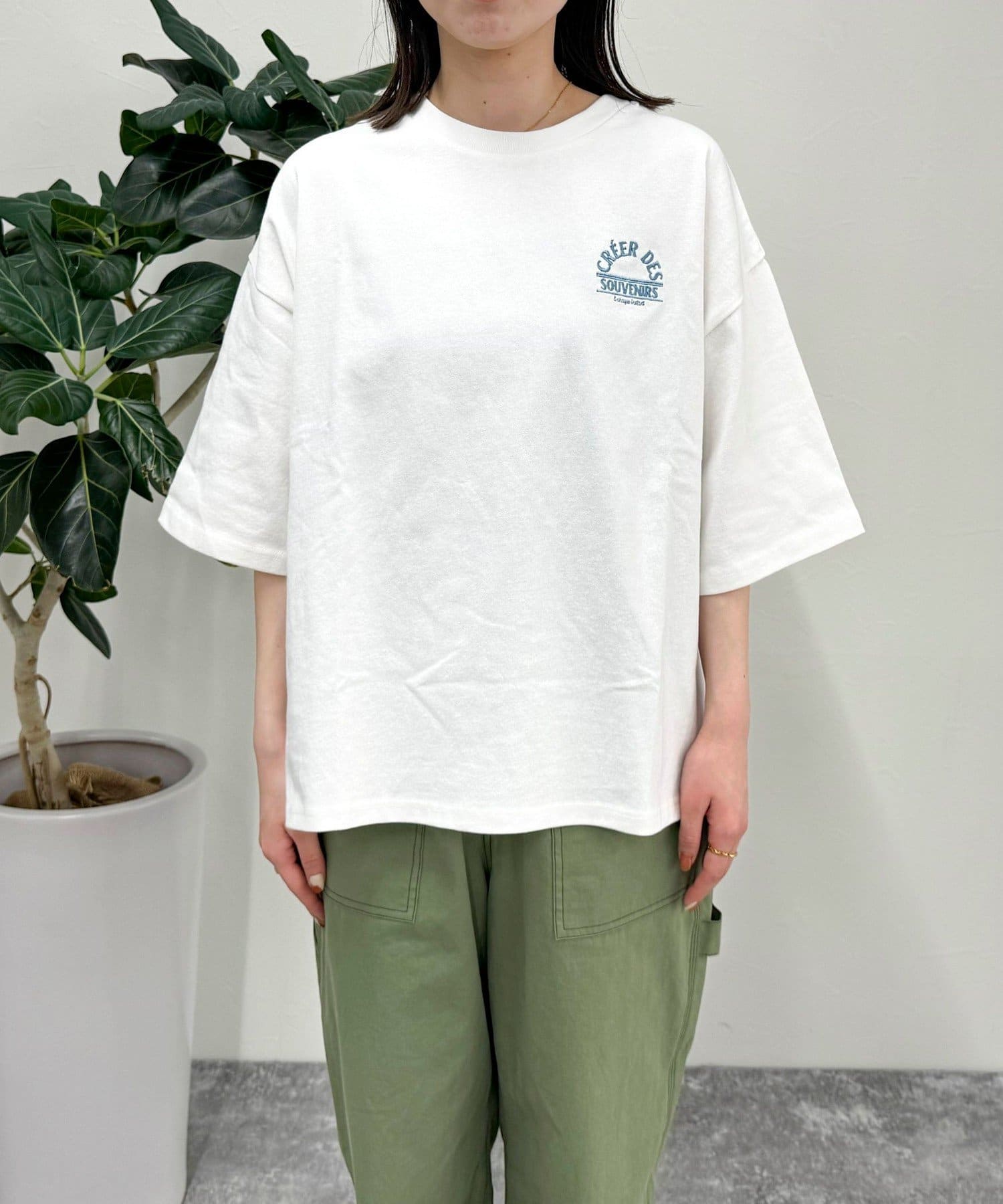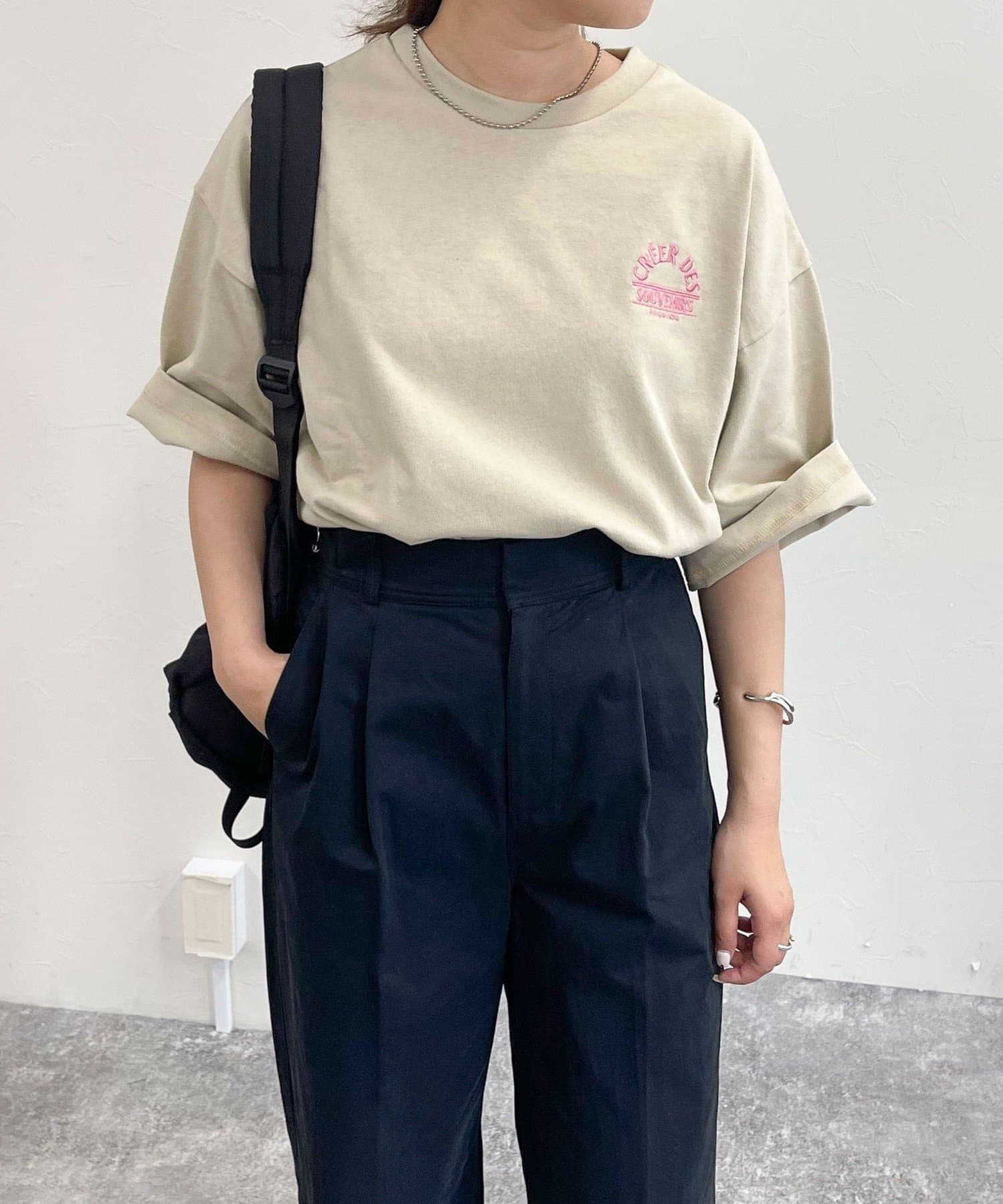 ・胸元の刺繍がポイントのゆったりサイズのTシャツです