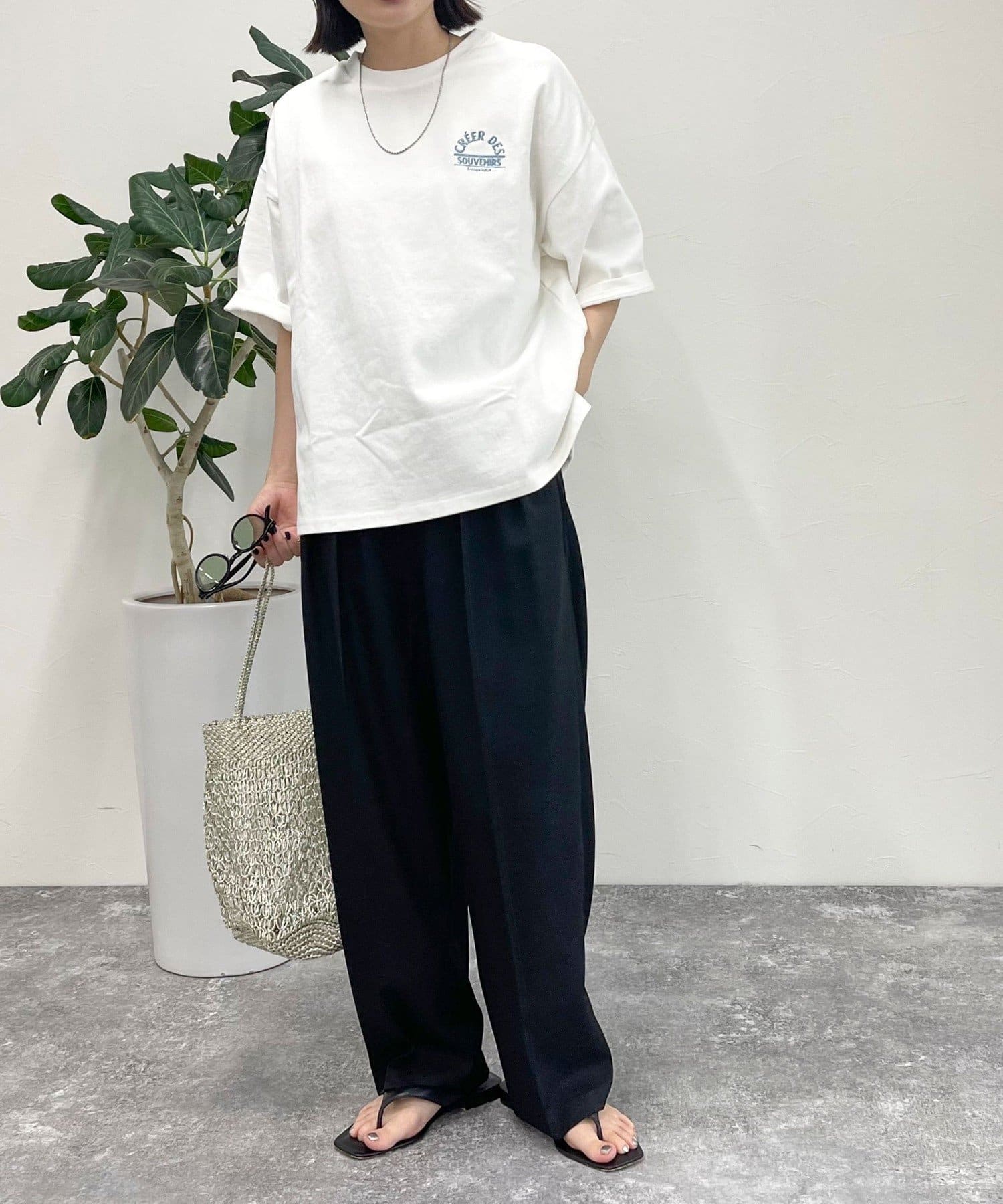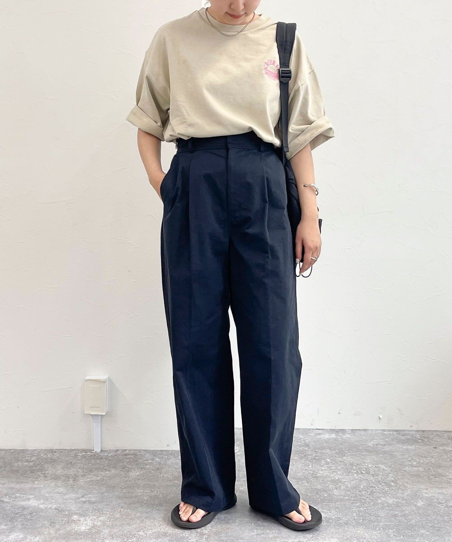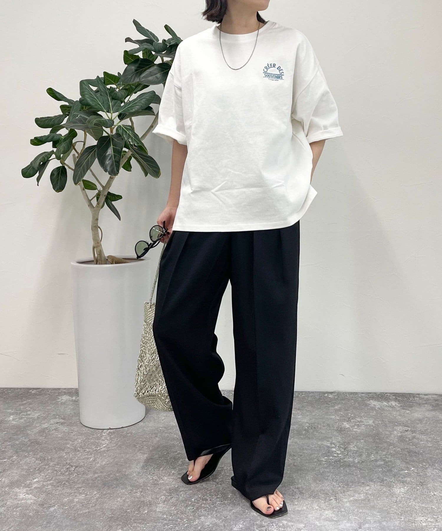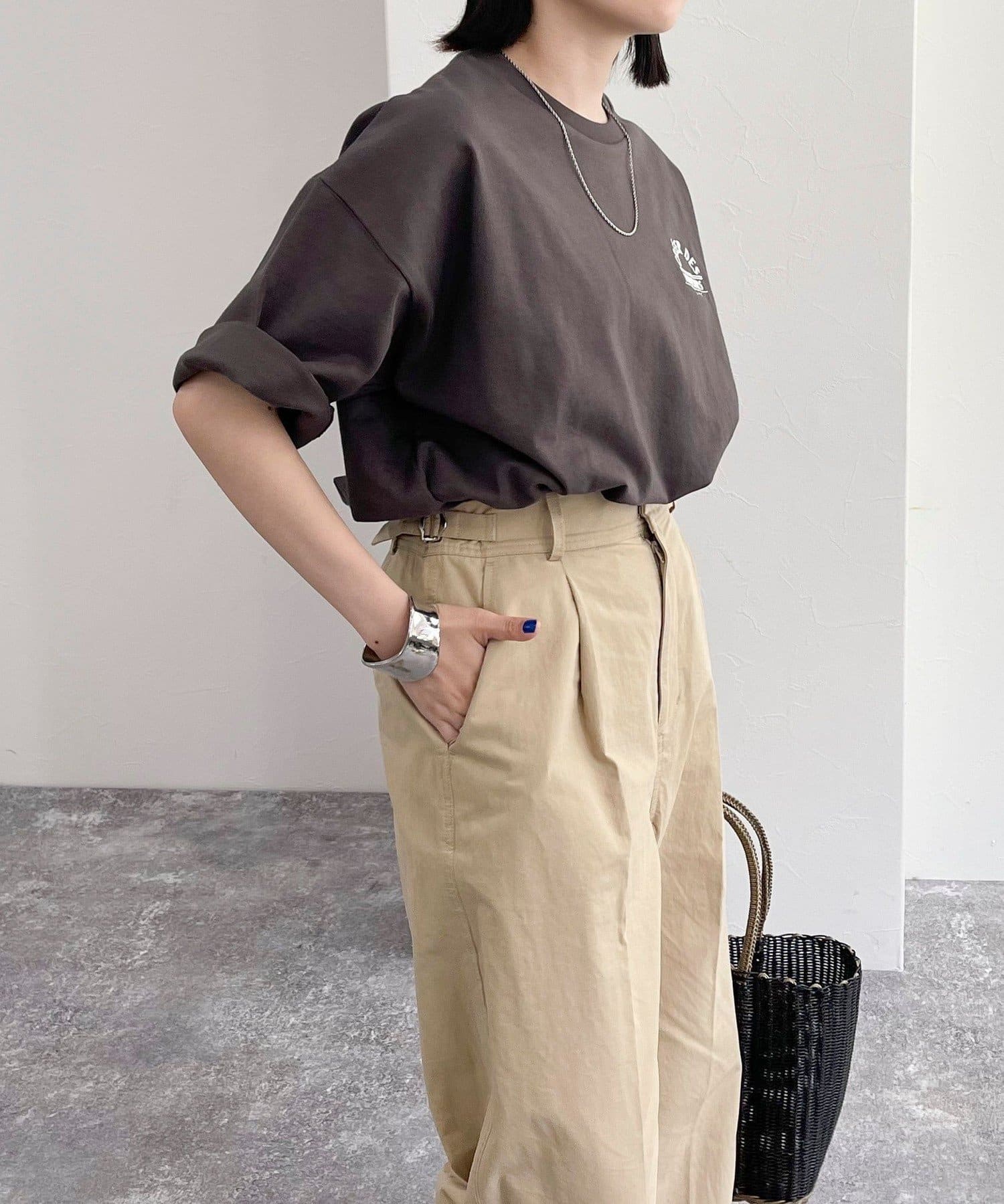 ・胸元の刺繍がポイントのゆったりサイズのTシャツです
