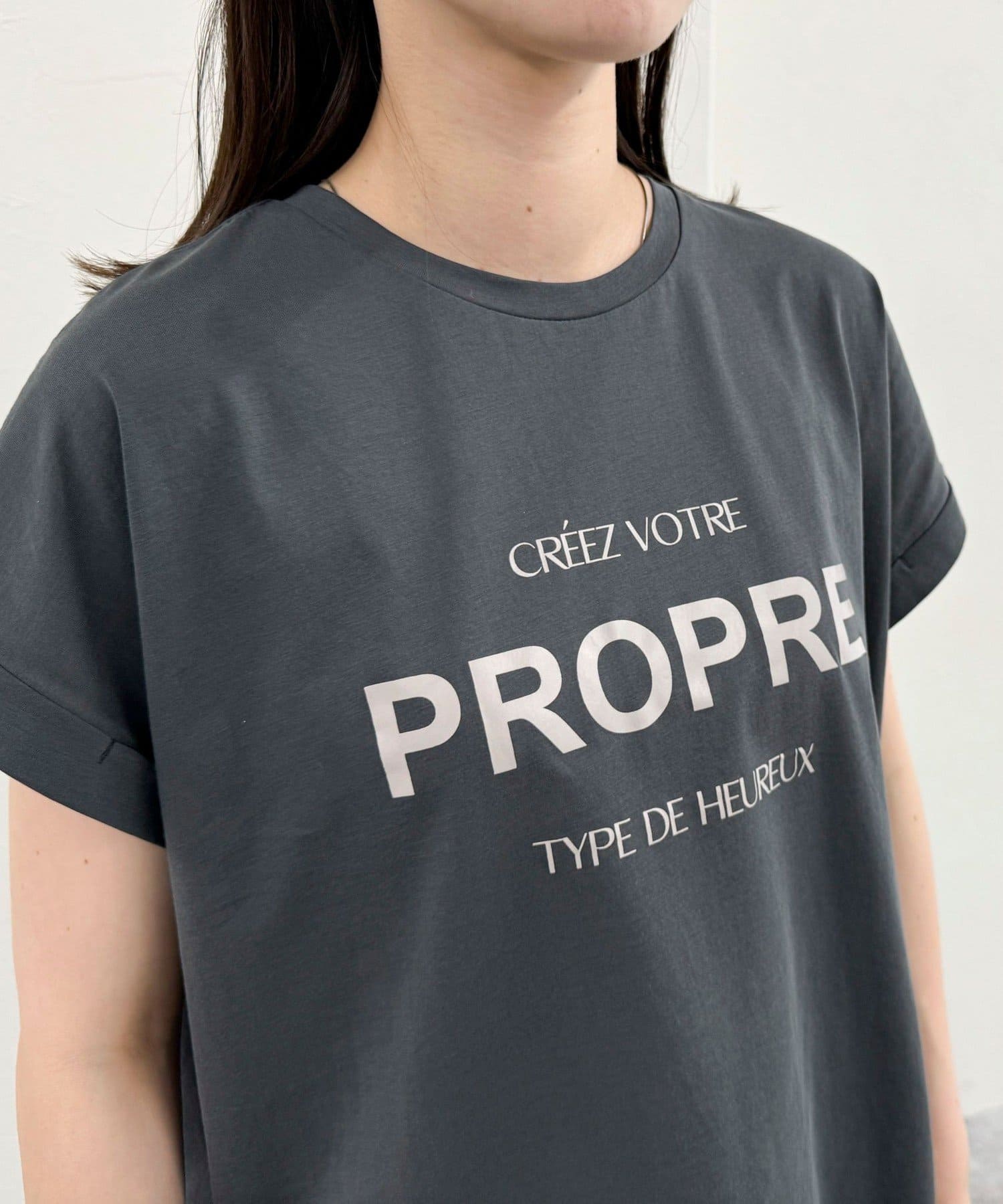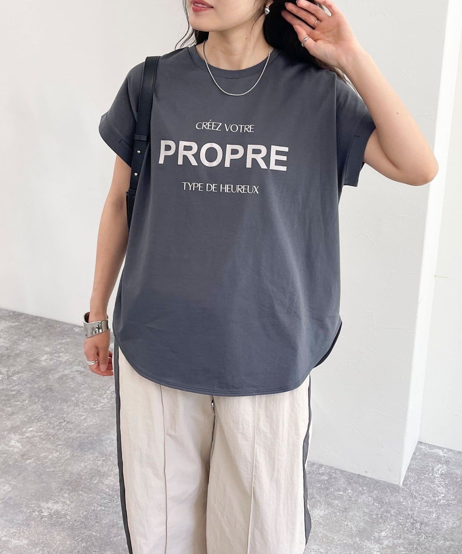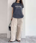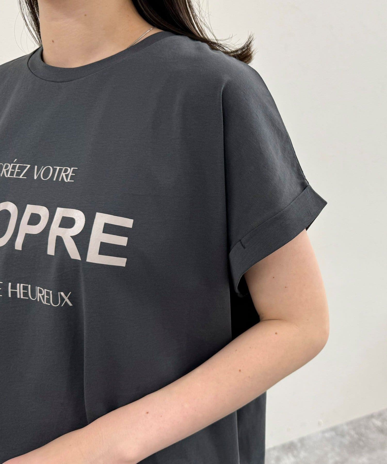 ・英語のロゴがアクセントになった袖ロールロゴTです
