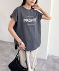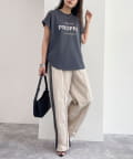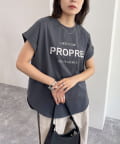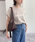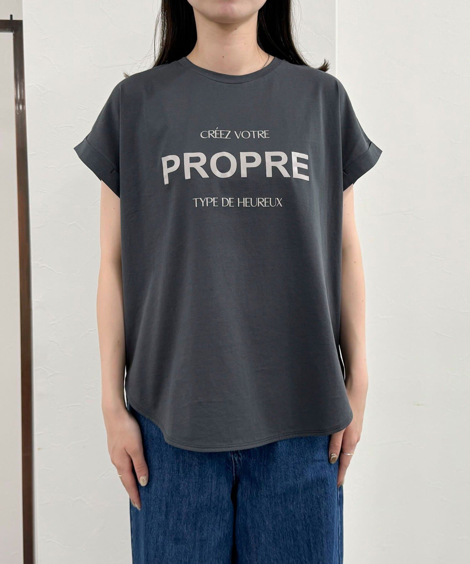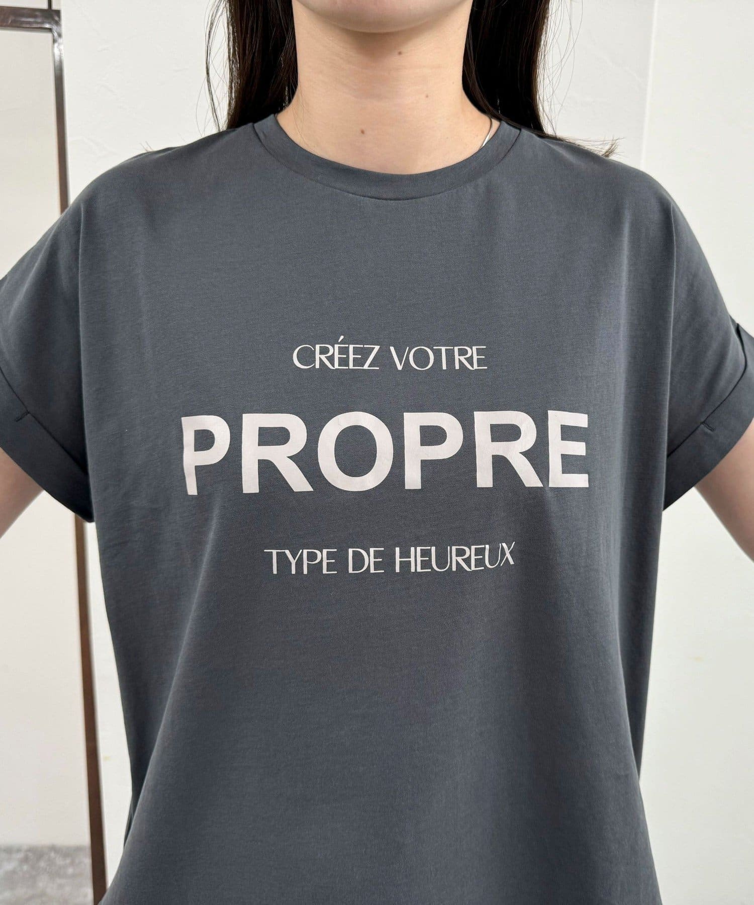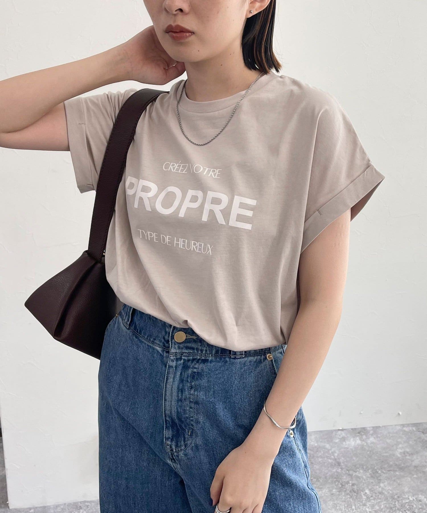 ・英語のロゴがアクセントになった袖ロールロゴTです