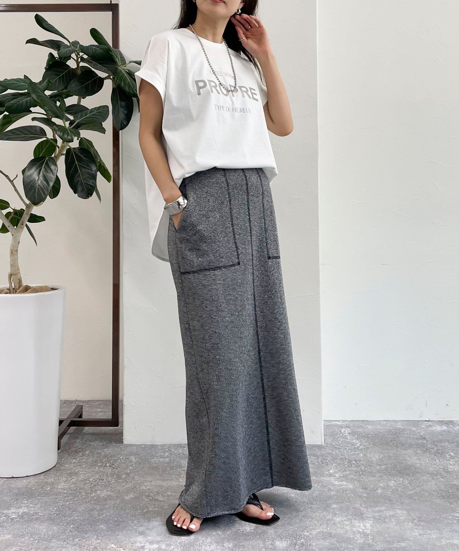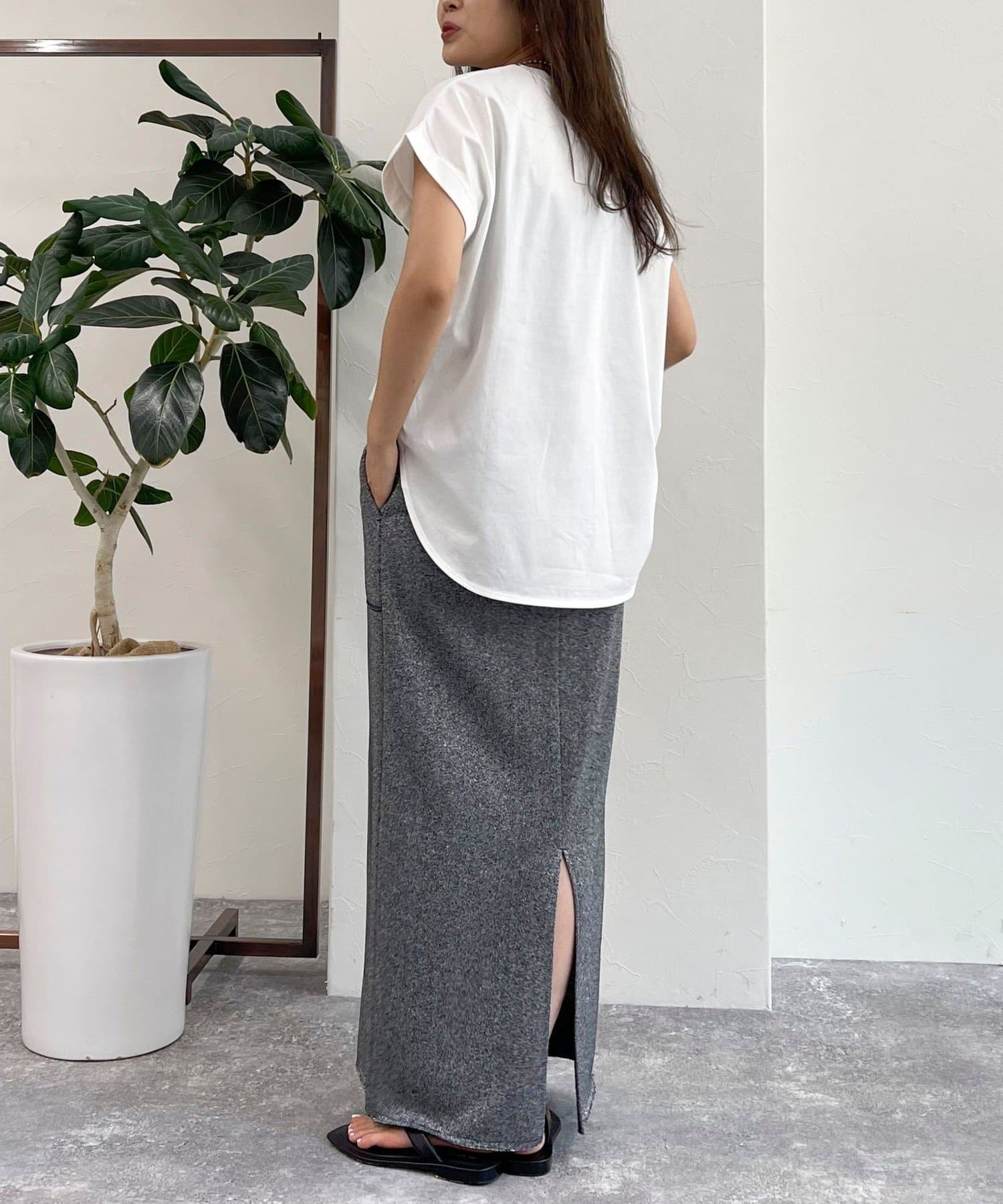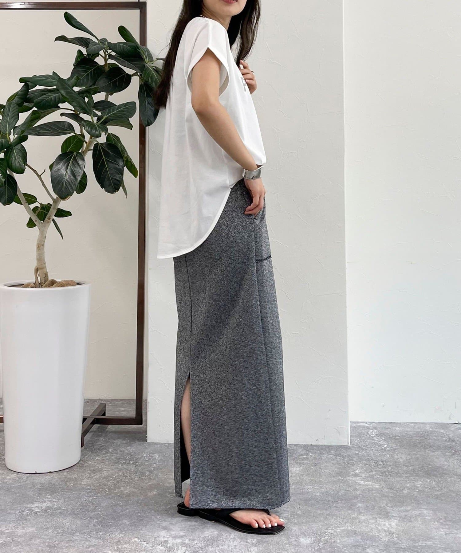 ・インしてもアウトでも決まる丈感で幅広いボトムスと合わせていただけます