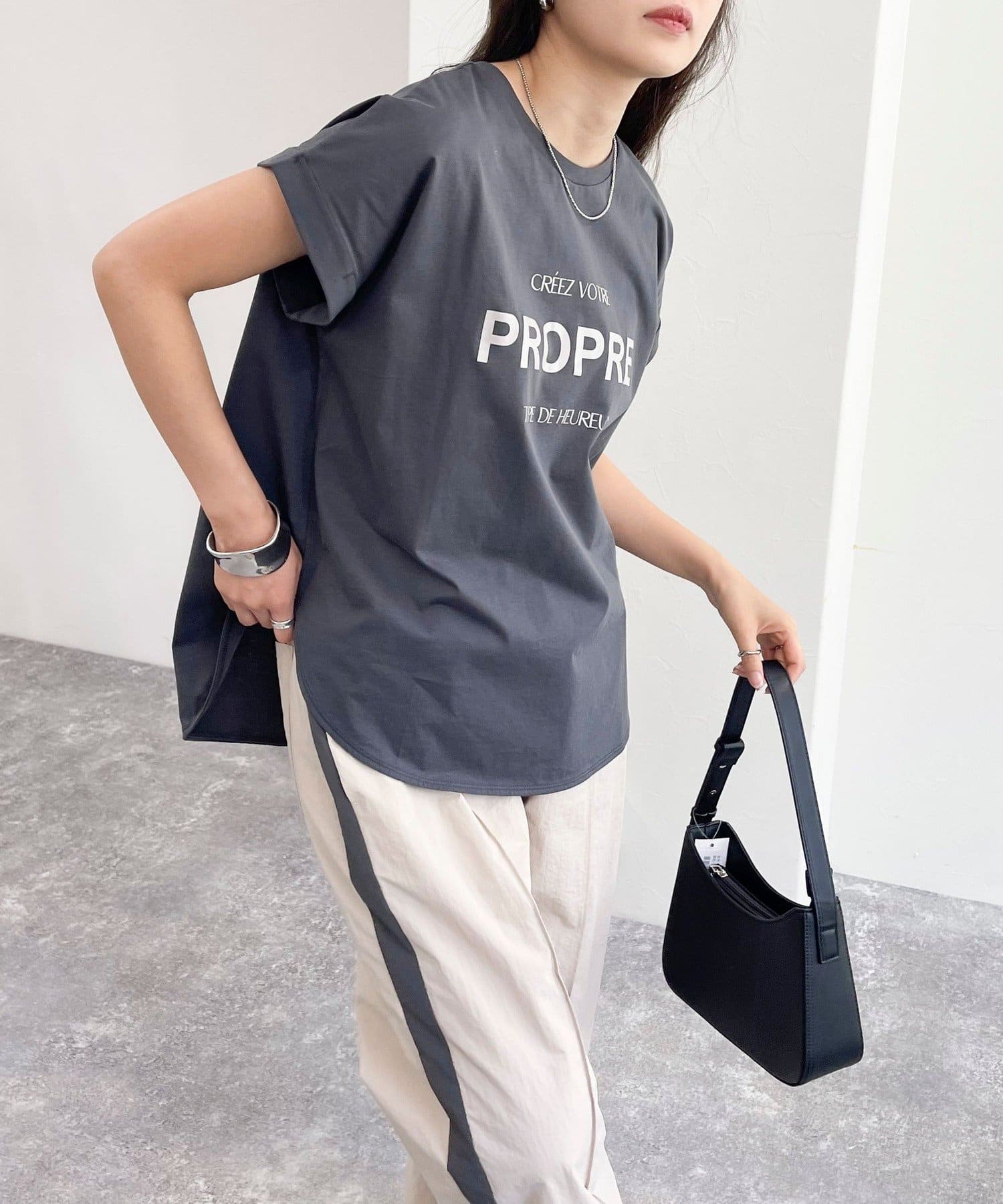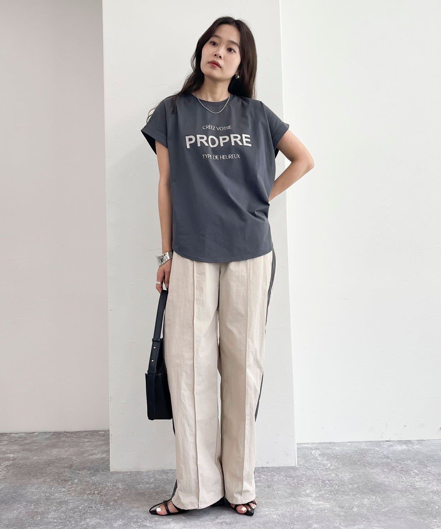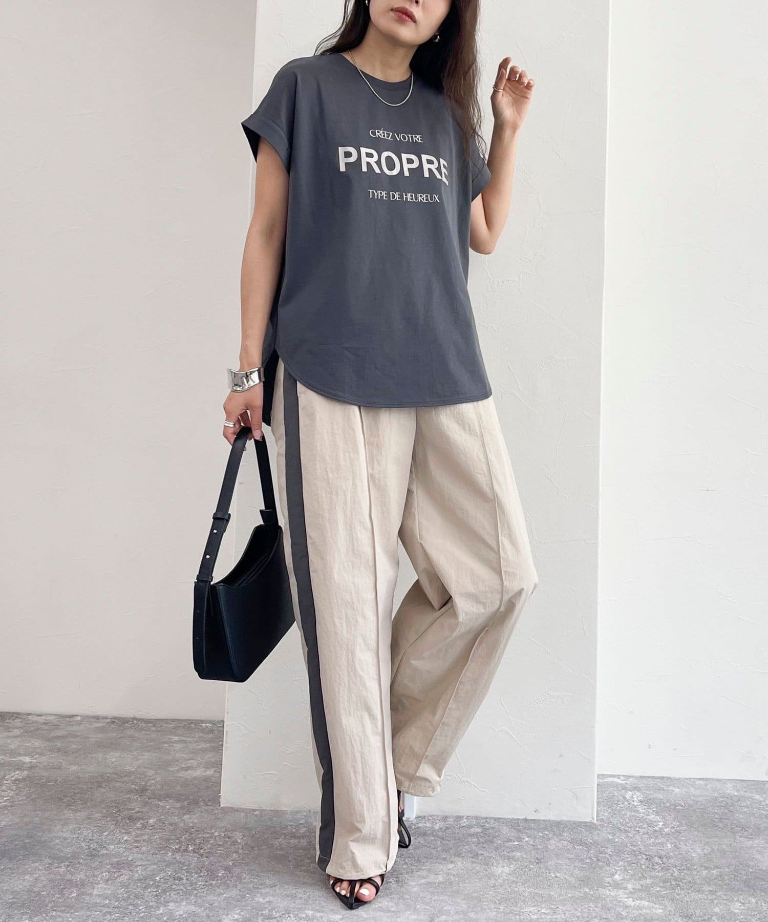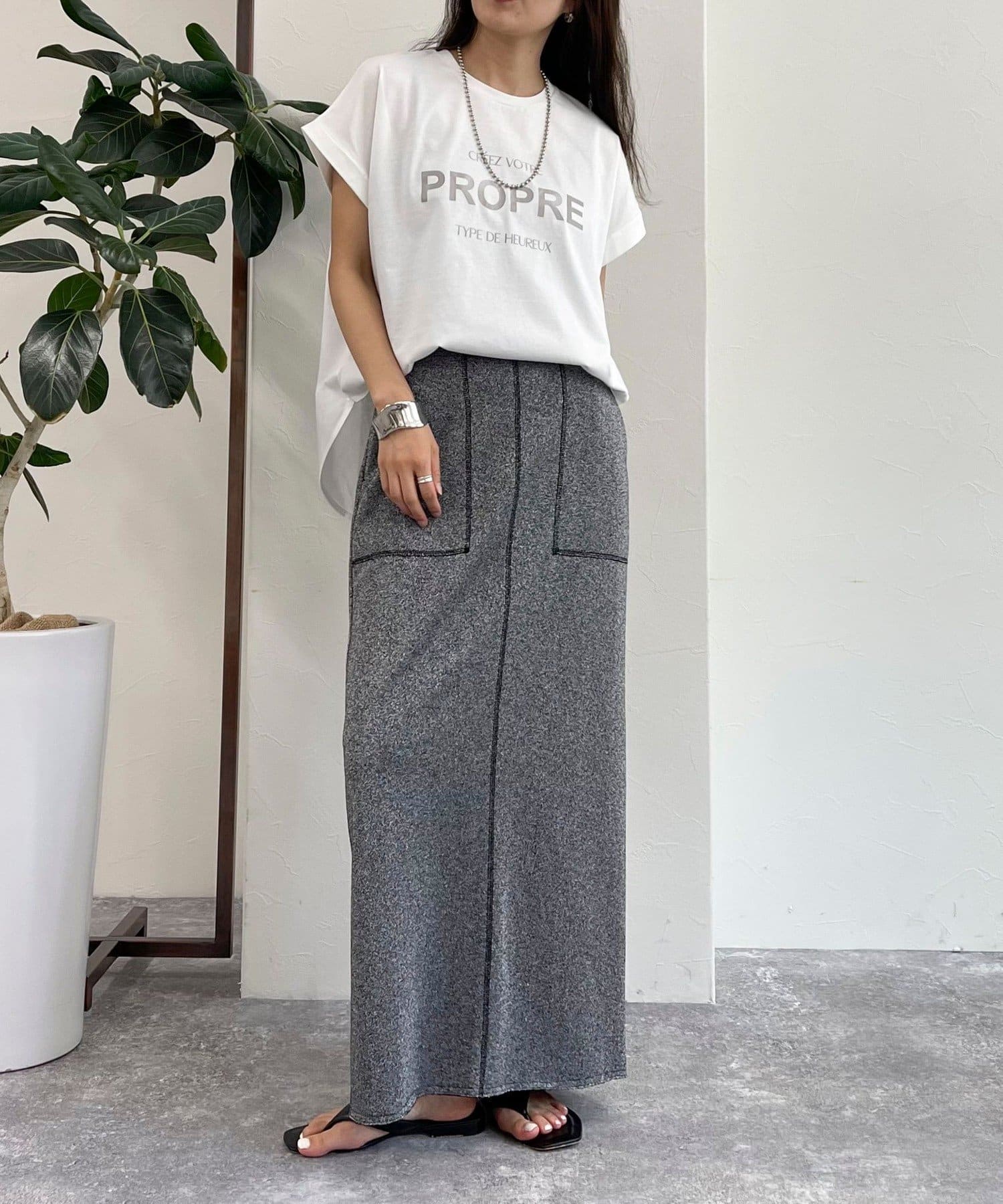 ・インしてもアウトでも決まる丈感で幅広いボトムスと合わせていただけます