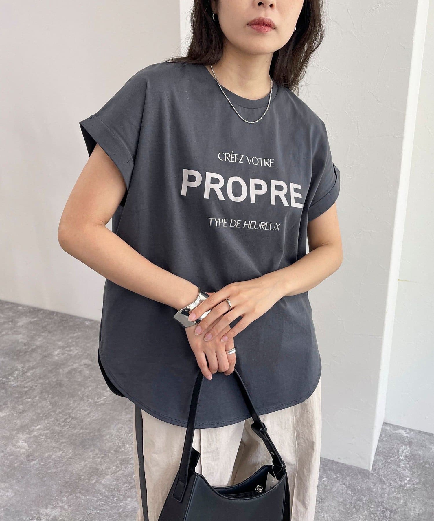 ・袖ロールされたデザインで気になる二の腕周りもしっかりカバー◎