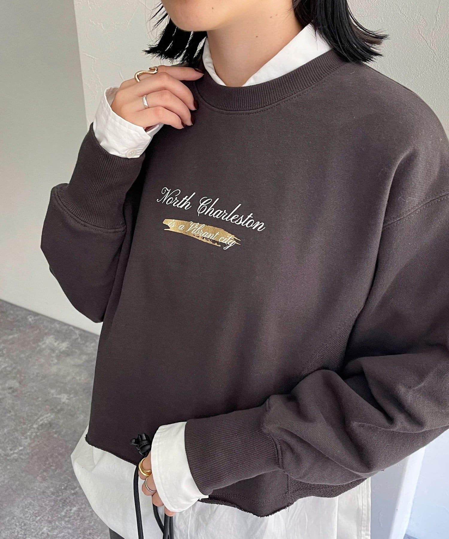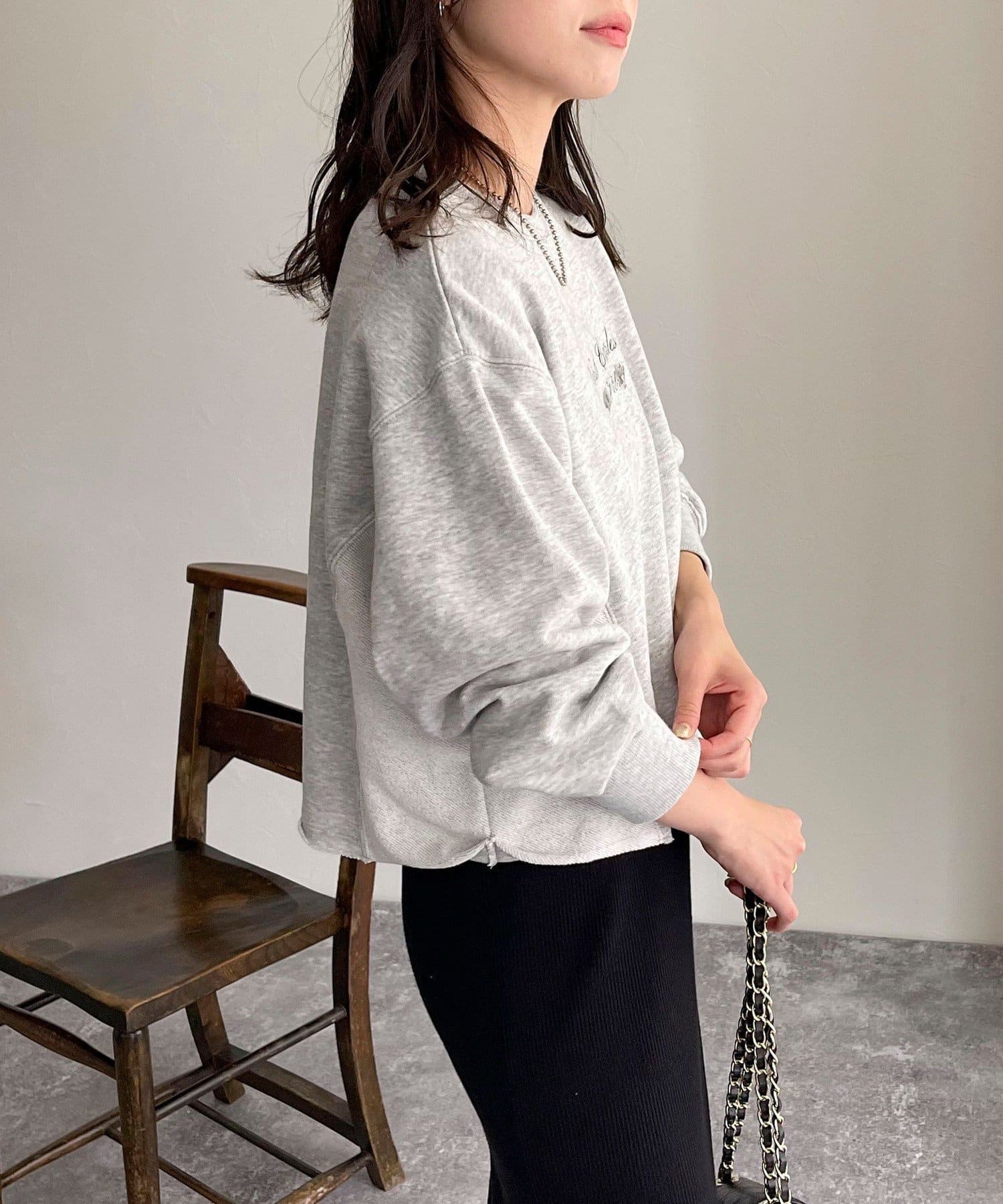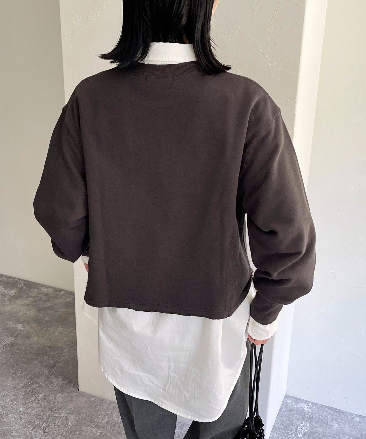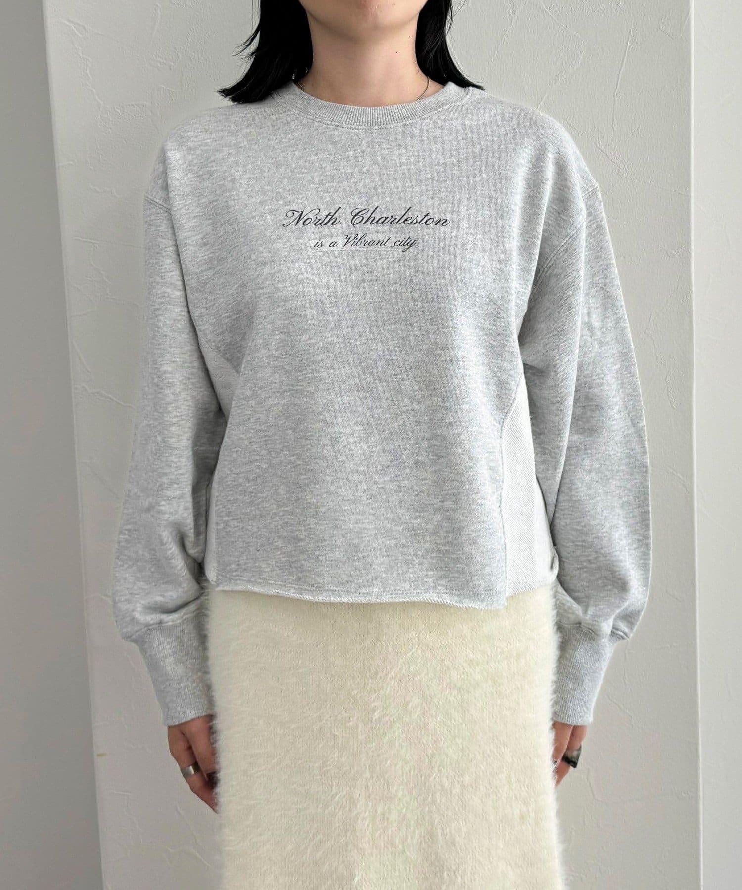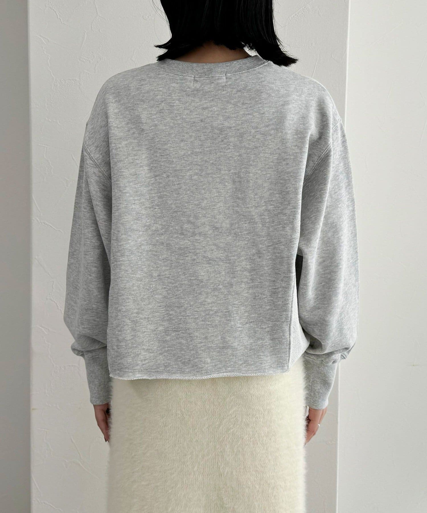 ・さりげない小さめロゴがどんなアイテムとも相性抜群な裏毛切替クロップドプルオーバーです