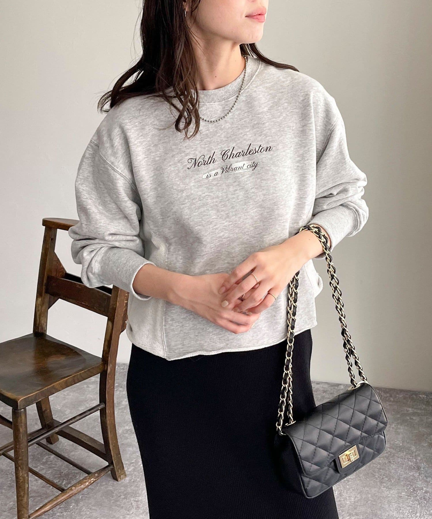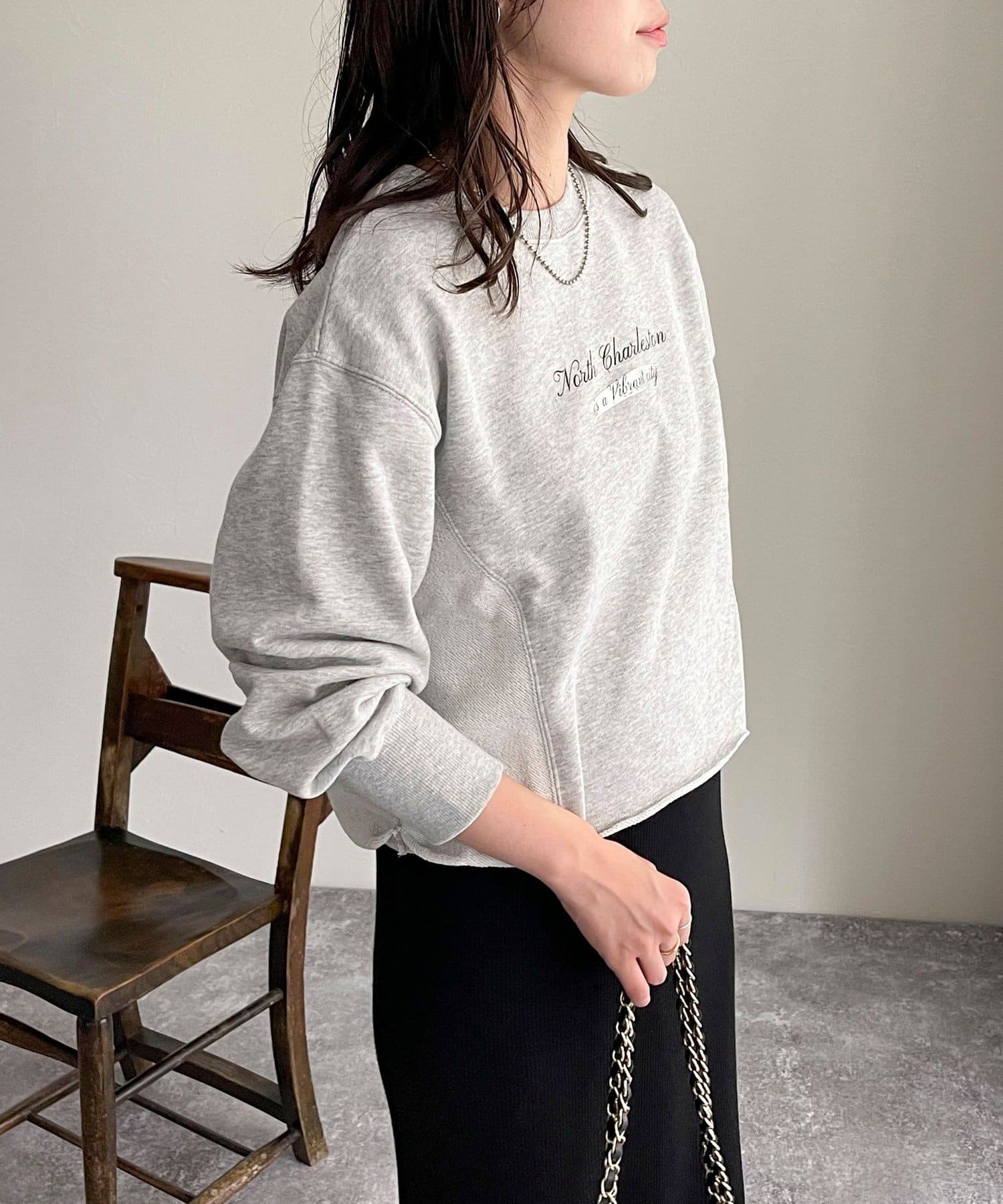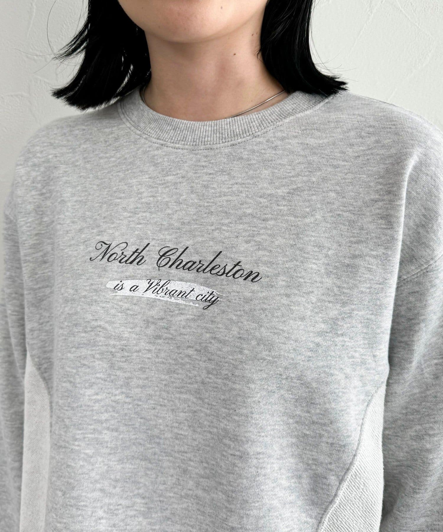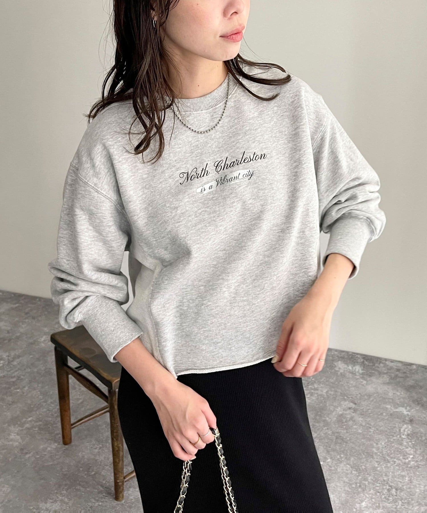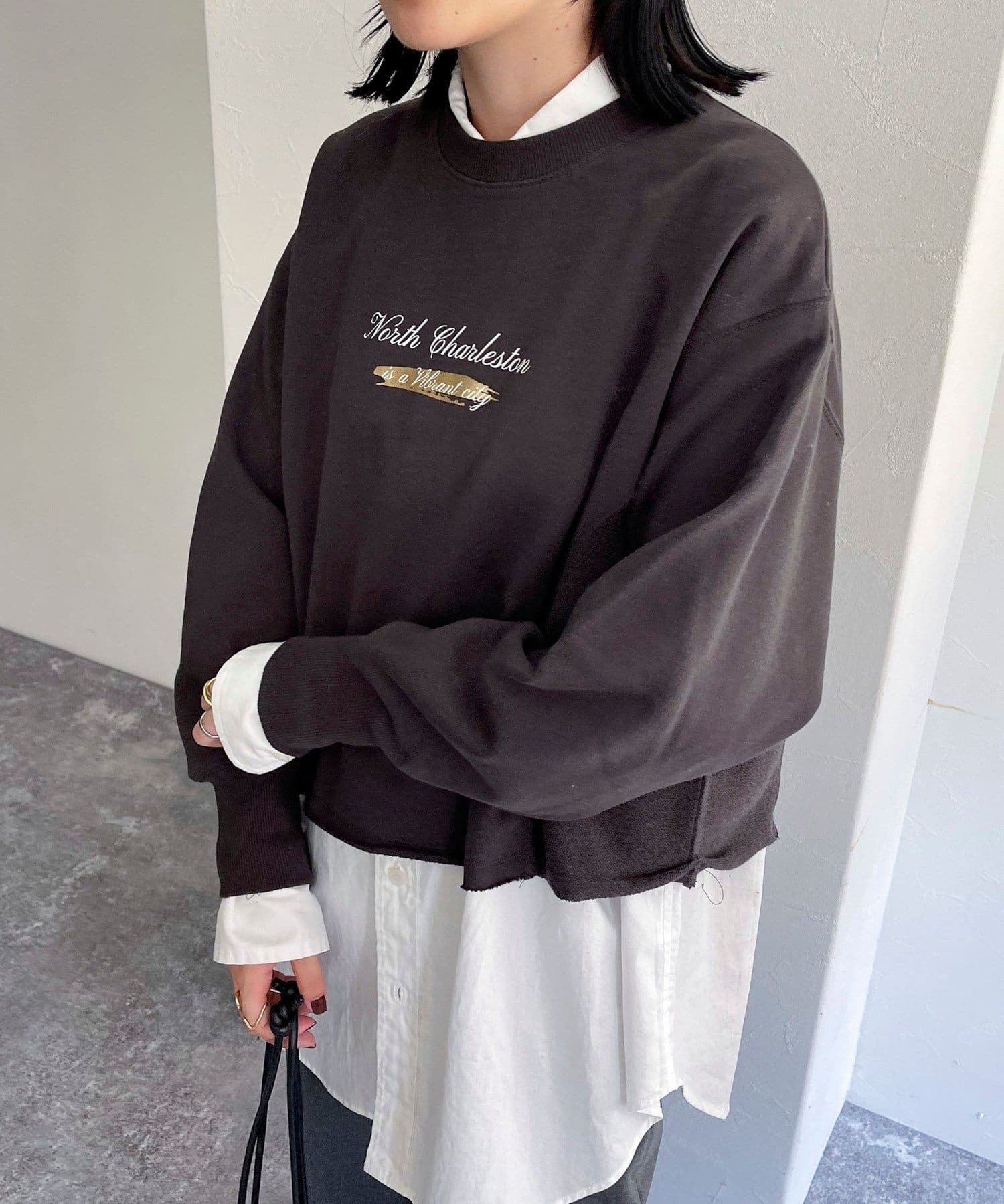 ・さりげない小さめロゴがどんなアイテムとも相性抜群な裏毛切替クロップドプルオーバーです