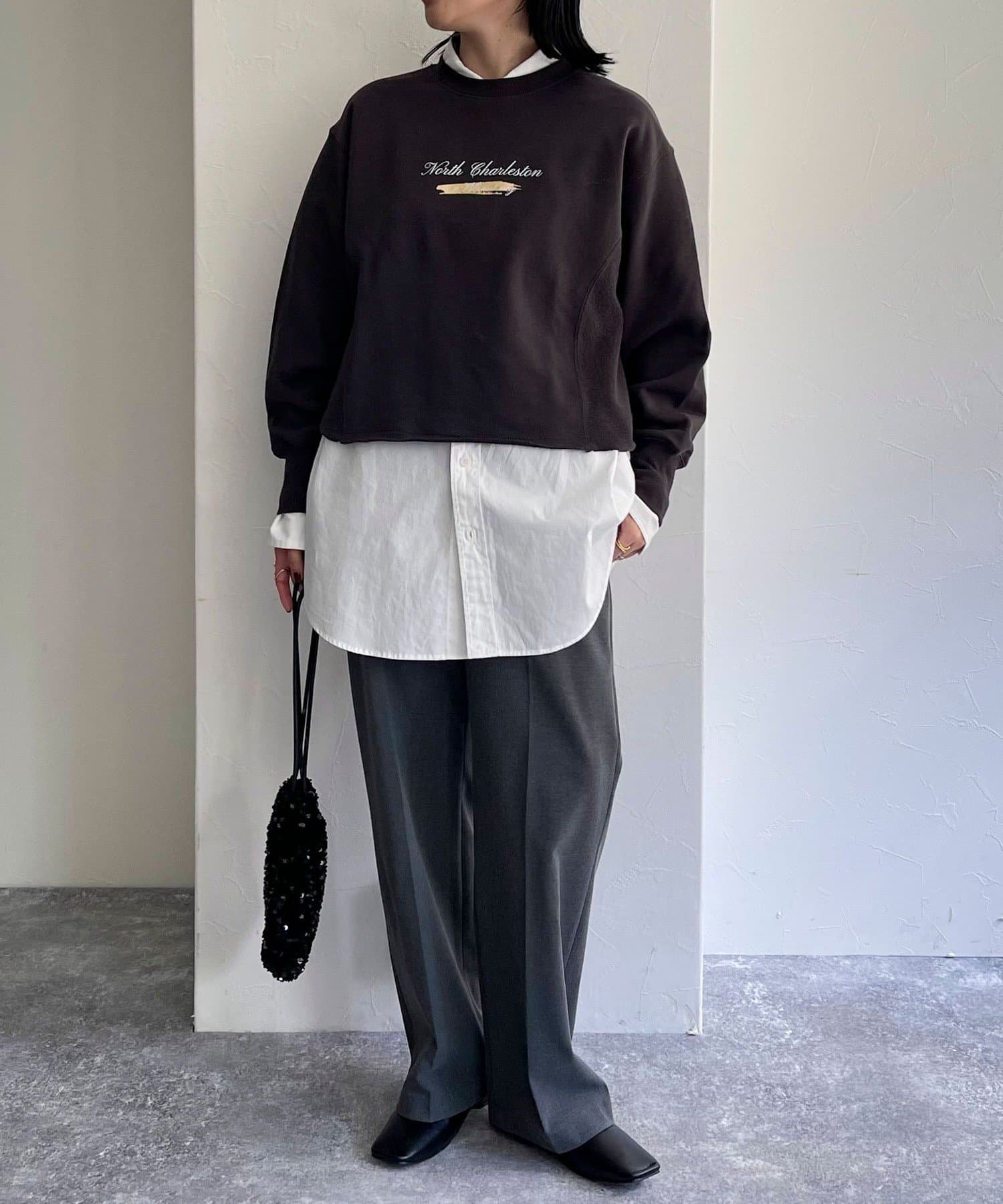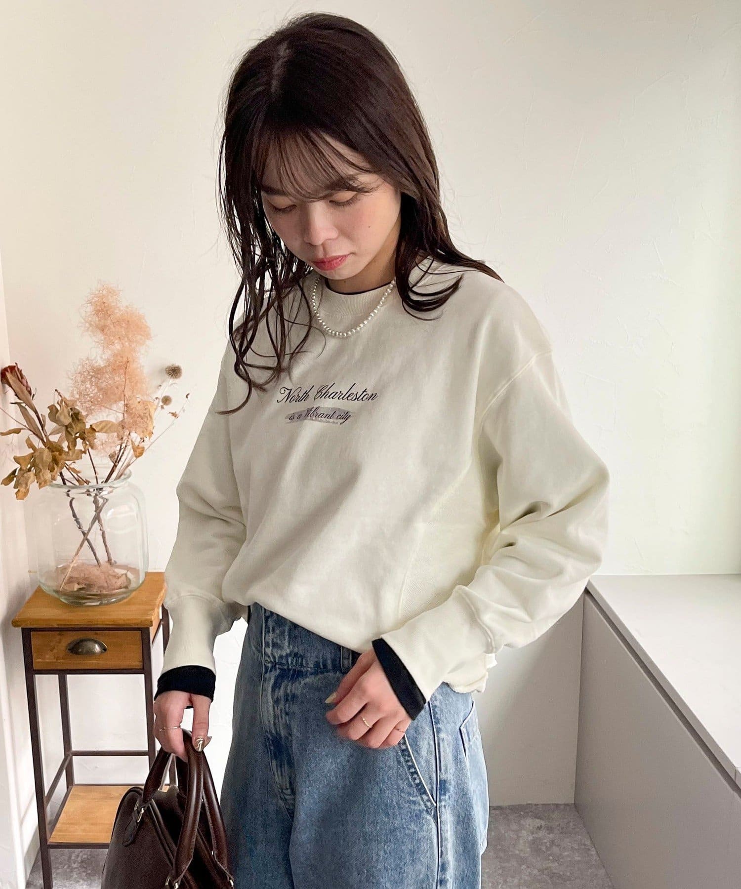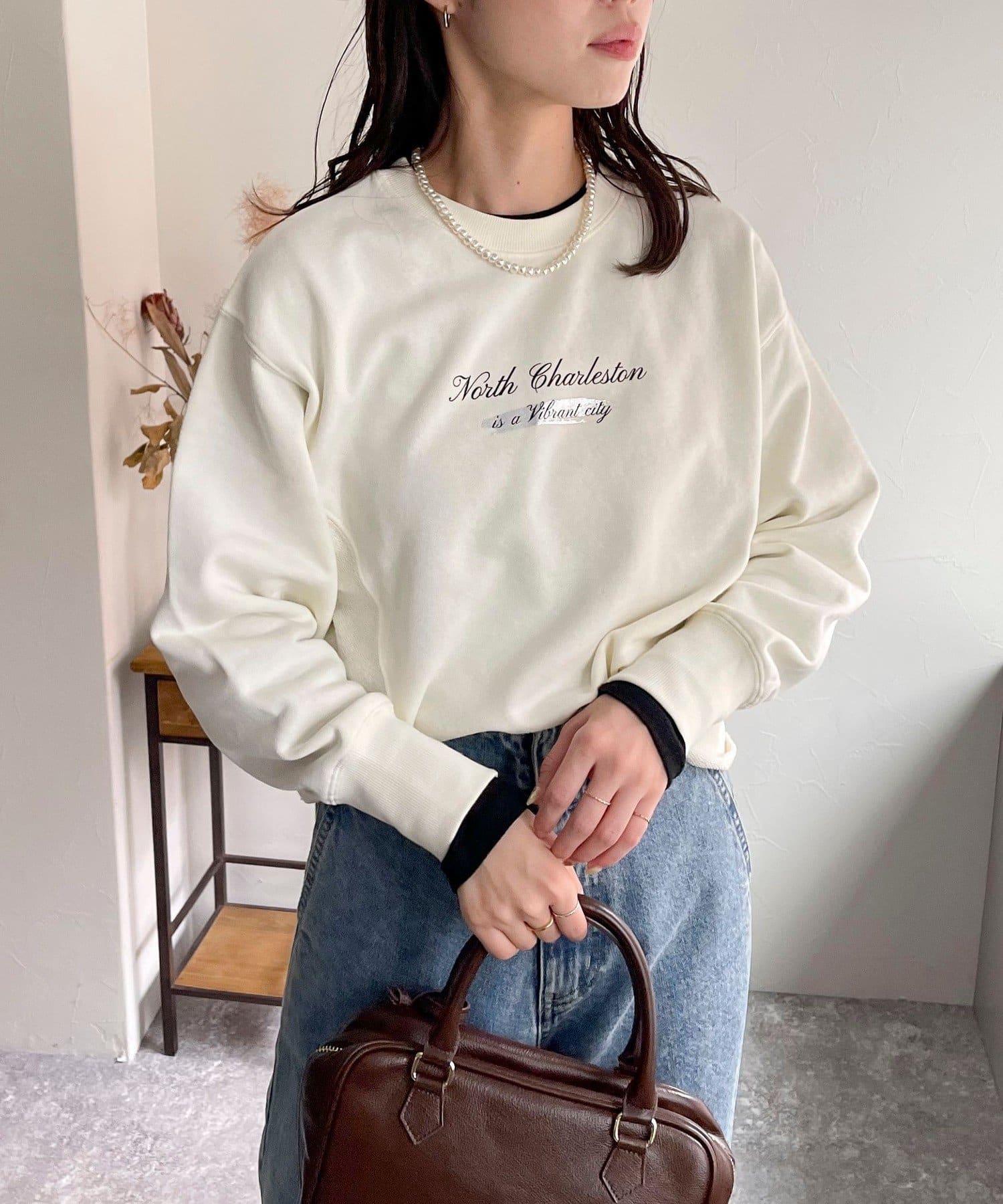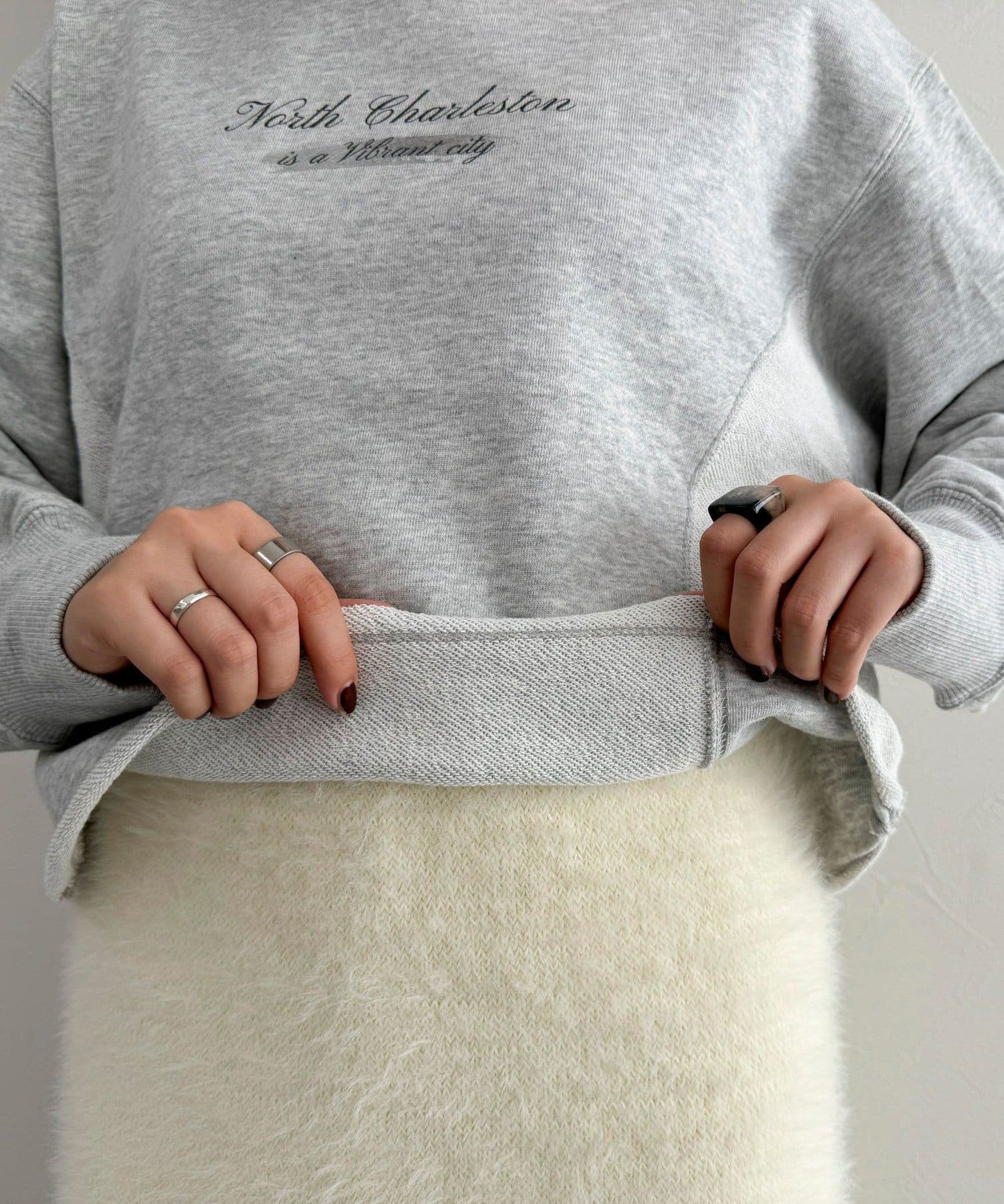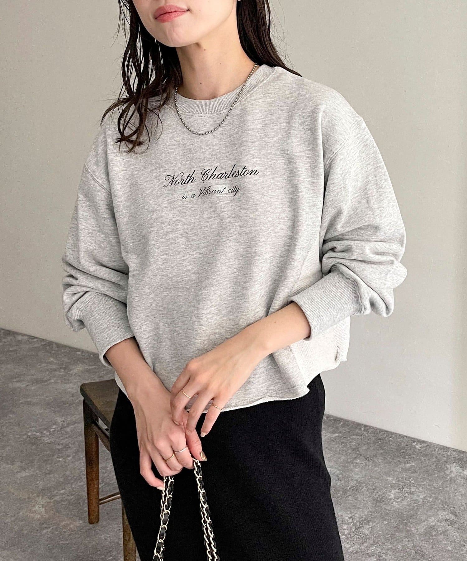 ・さりげない小さめロゴがどんなアイテムとも相性抜群な裏毛切替クロップドプルオーバーです
