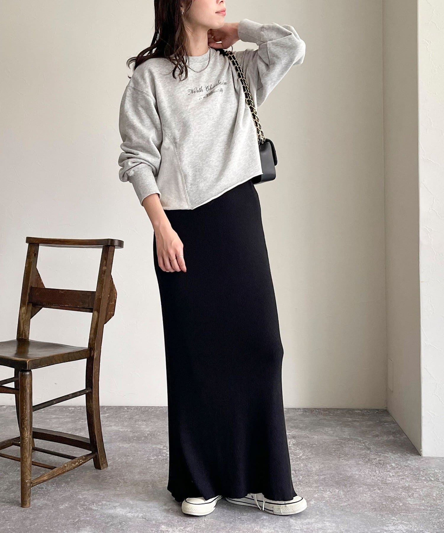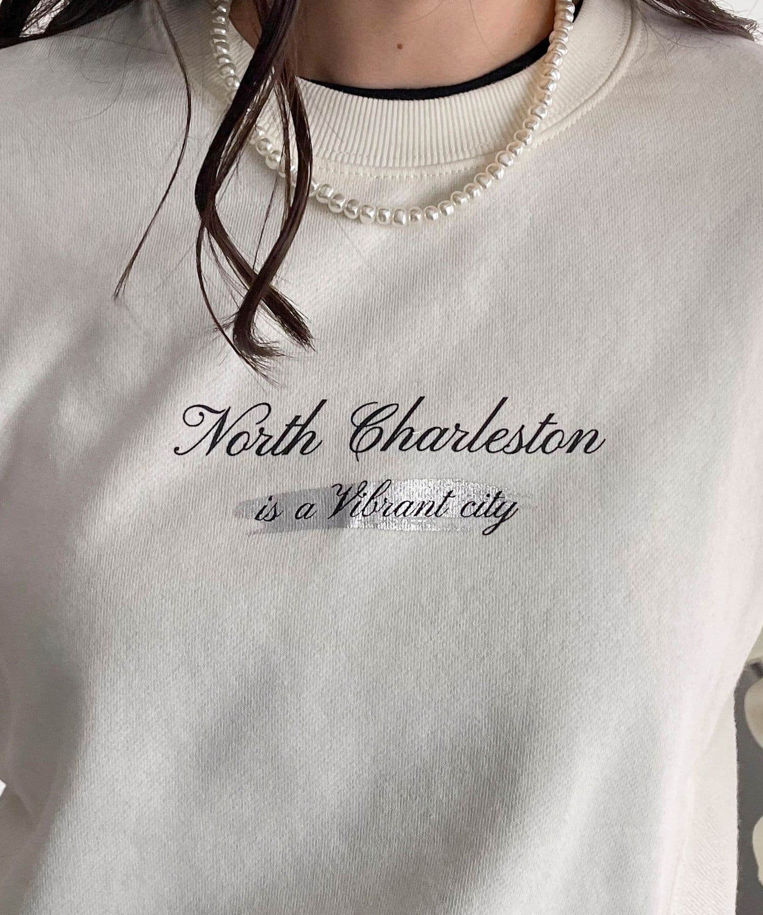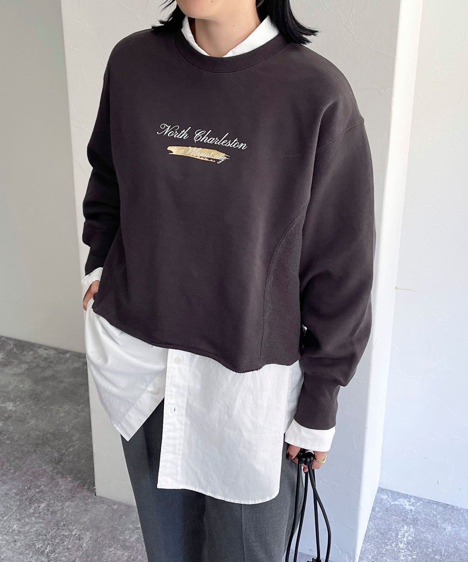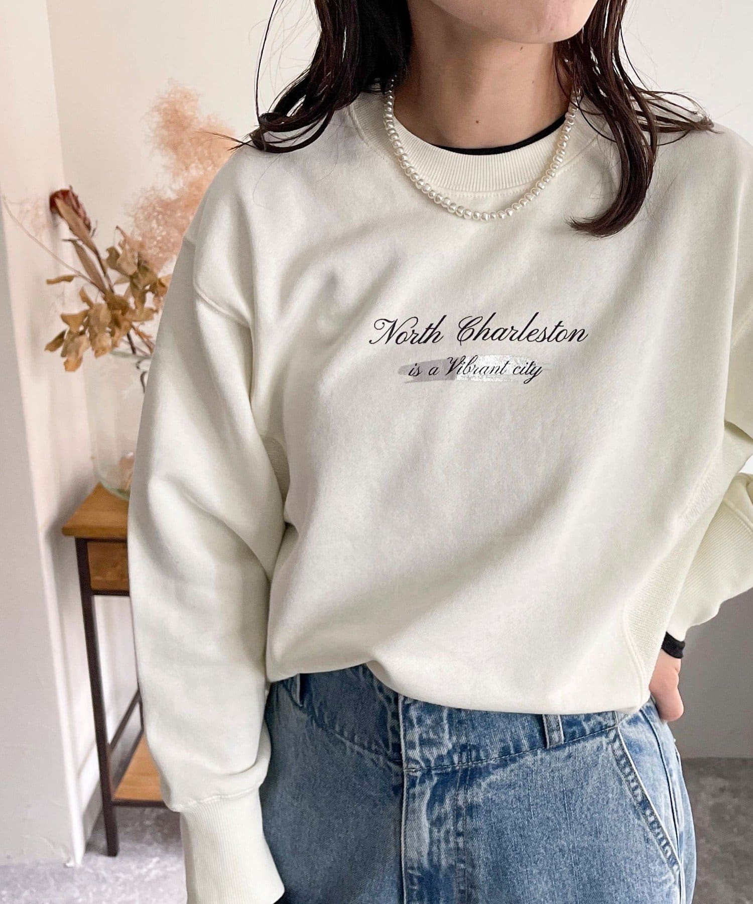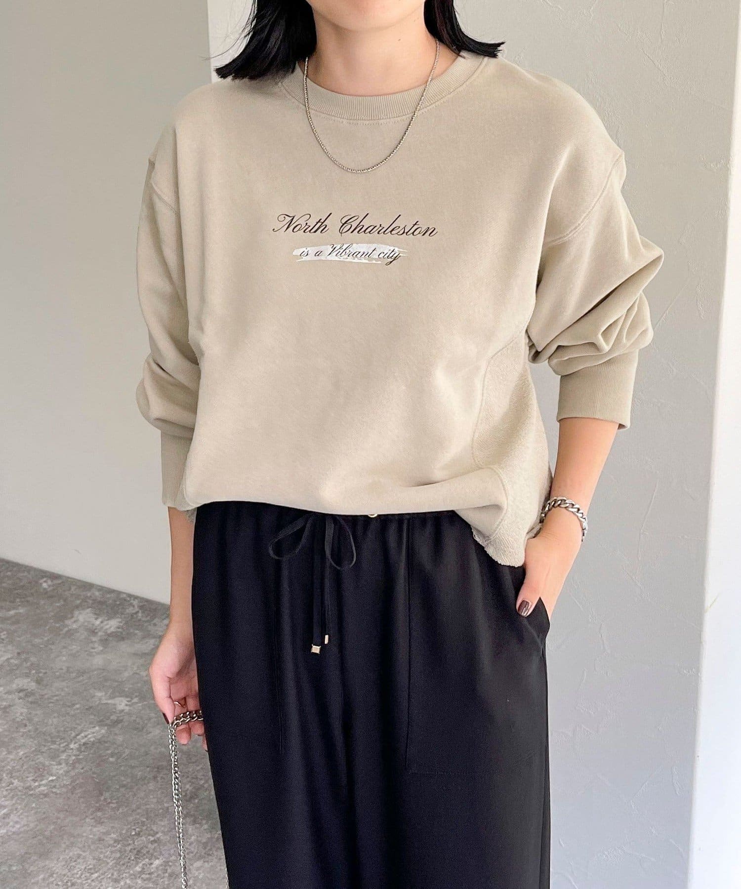 ・さりげない小さめロゴがどんなアイテムとも相性抜群な裏毛切替クロップドプルオーバーです