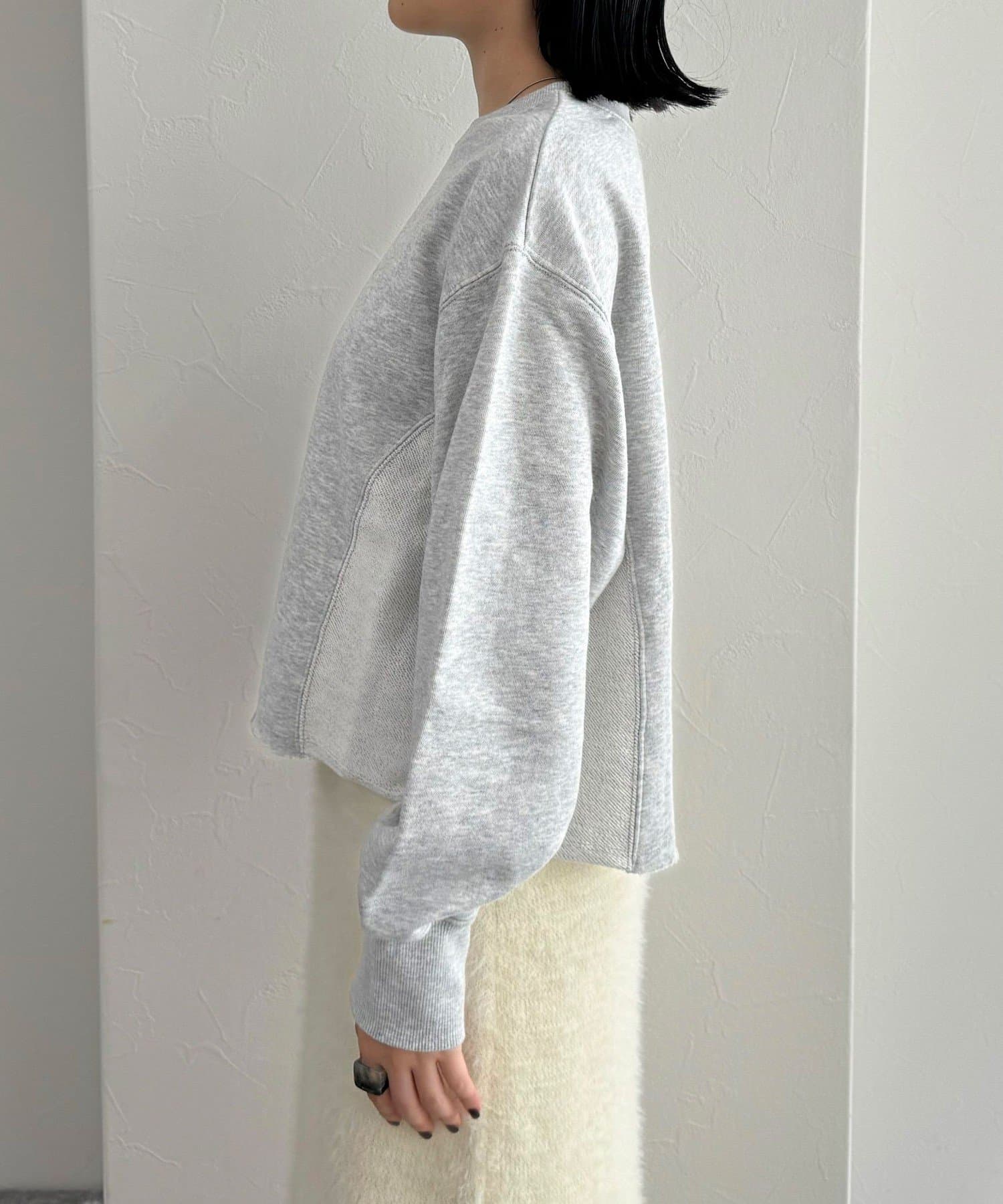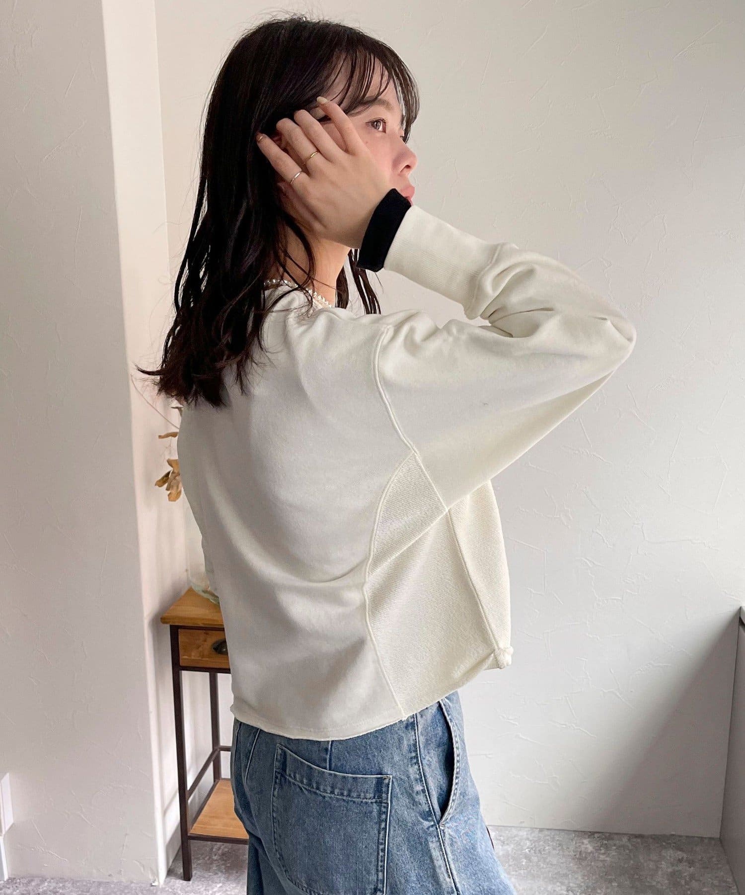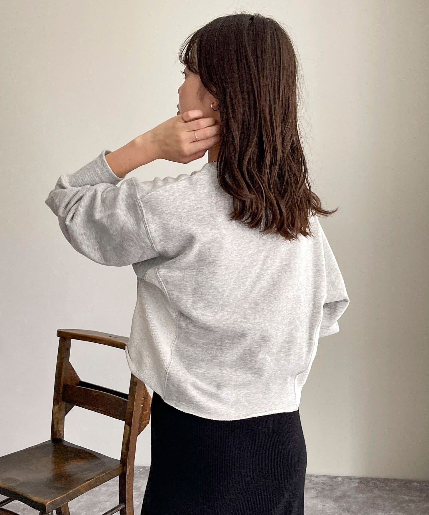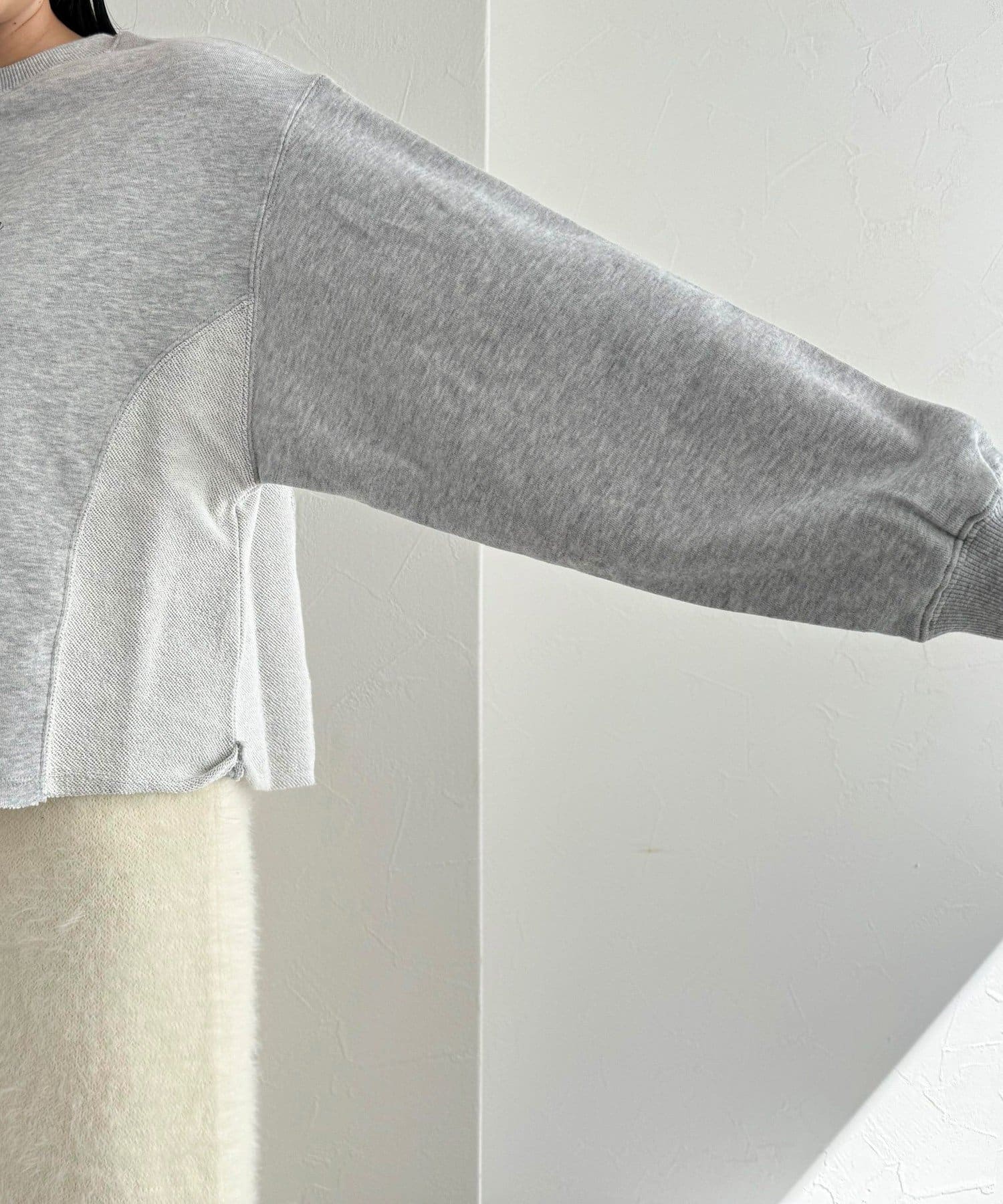 トレンド感のあるシルエットの裏毛切替クロップドプルオーバー