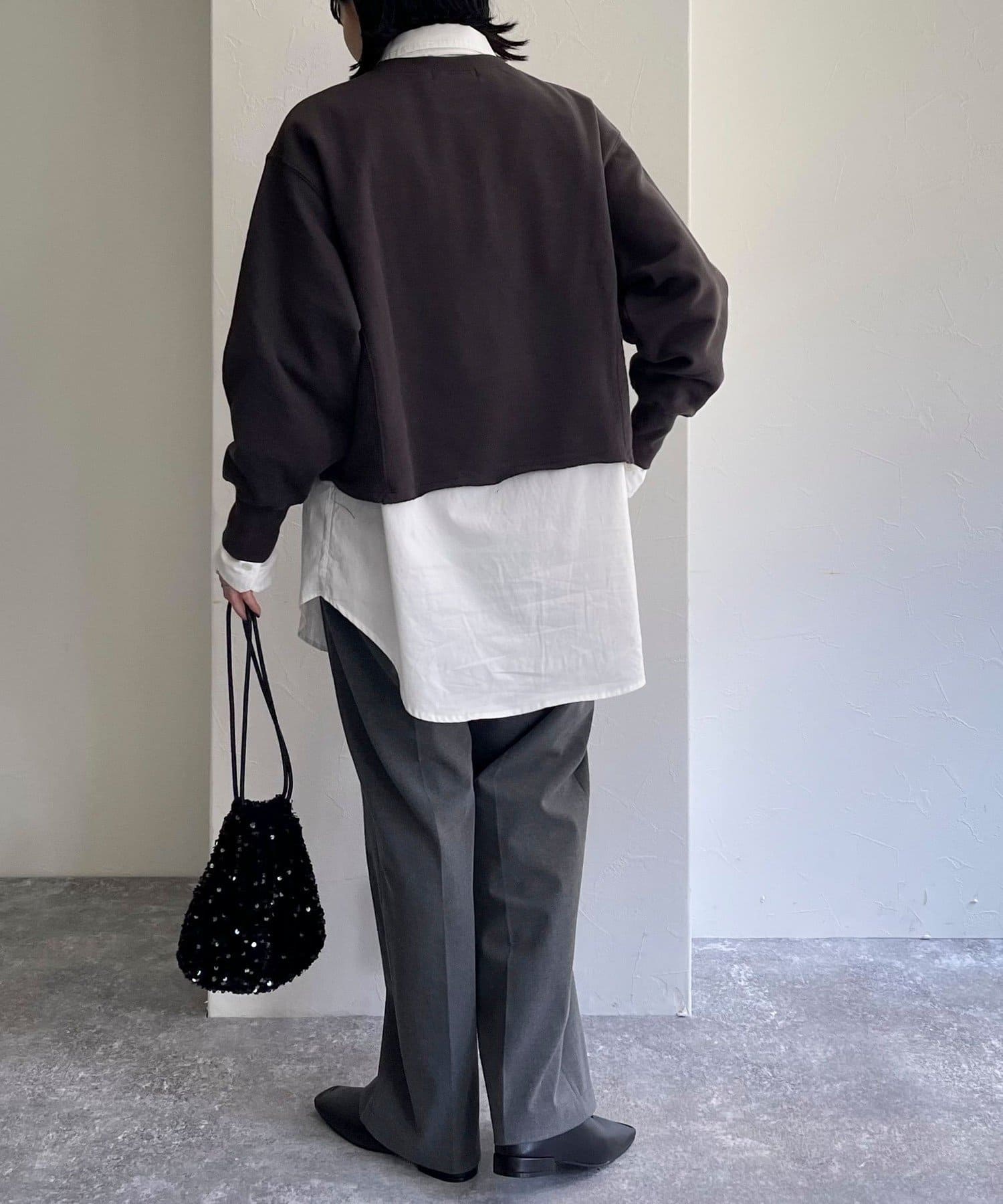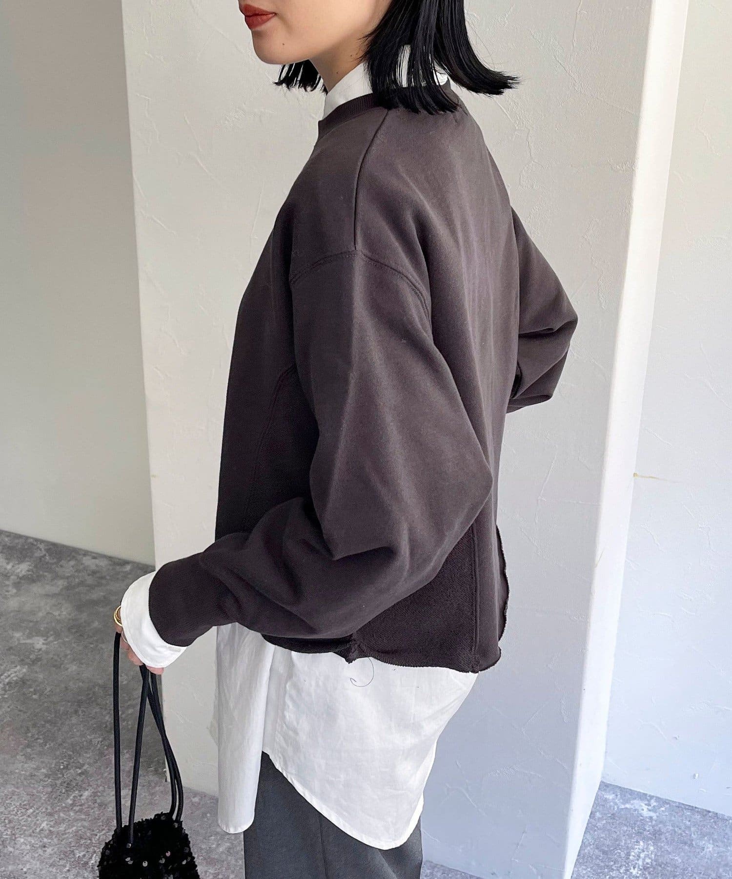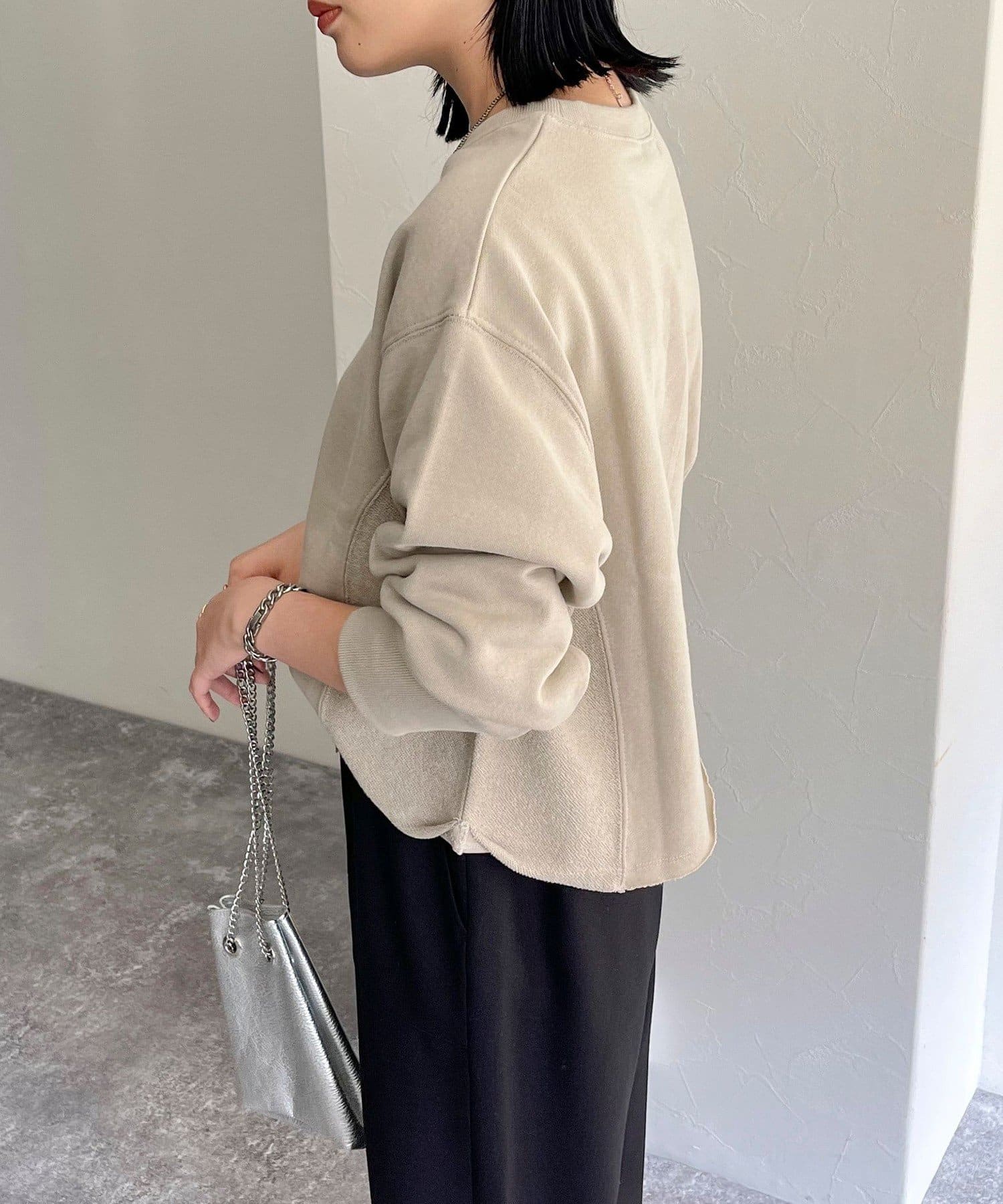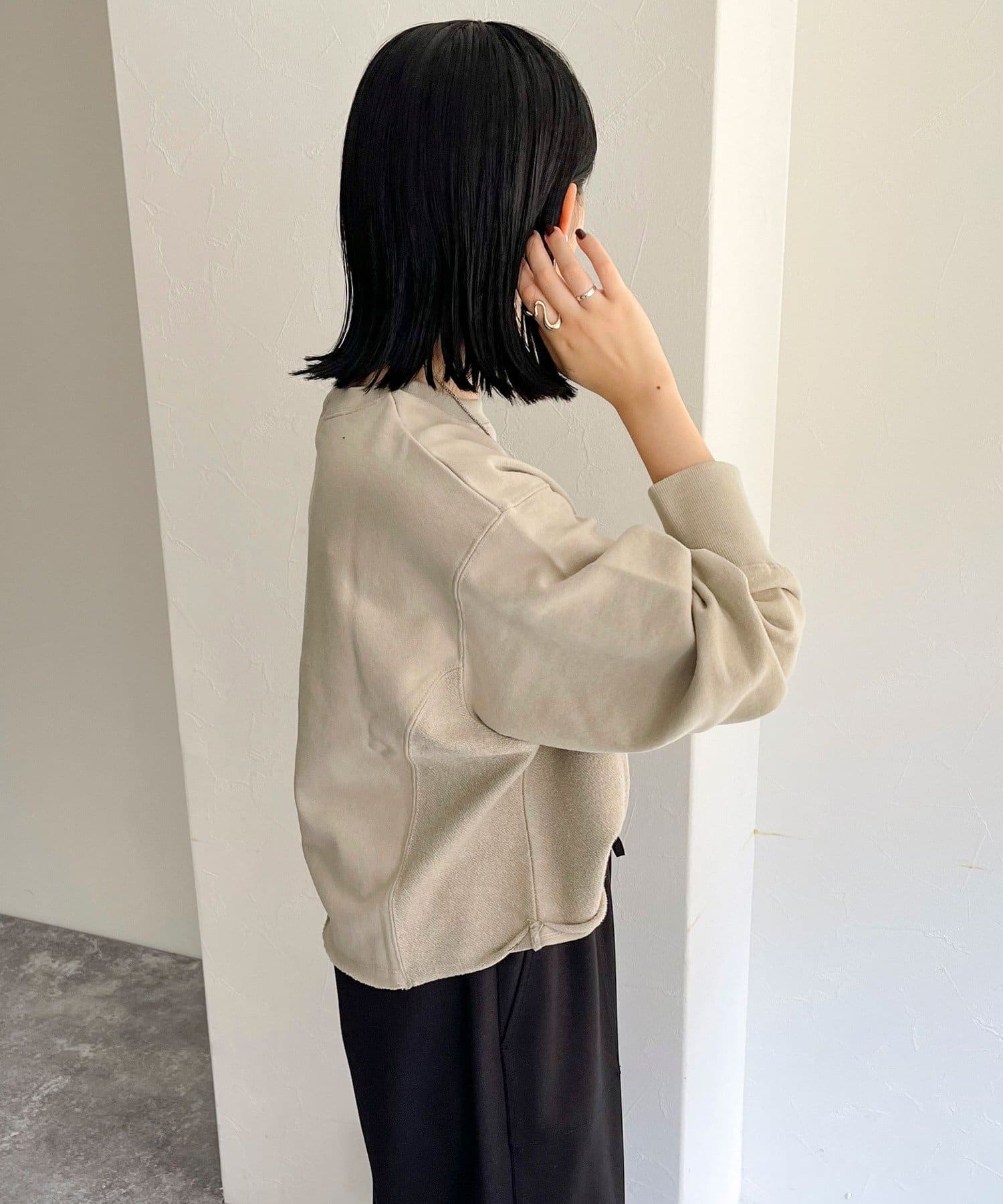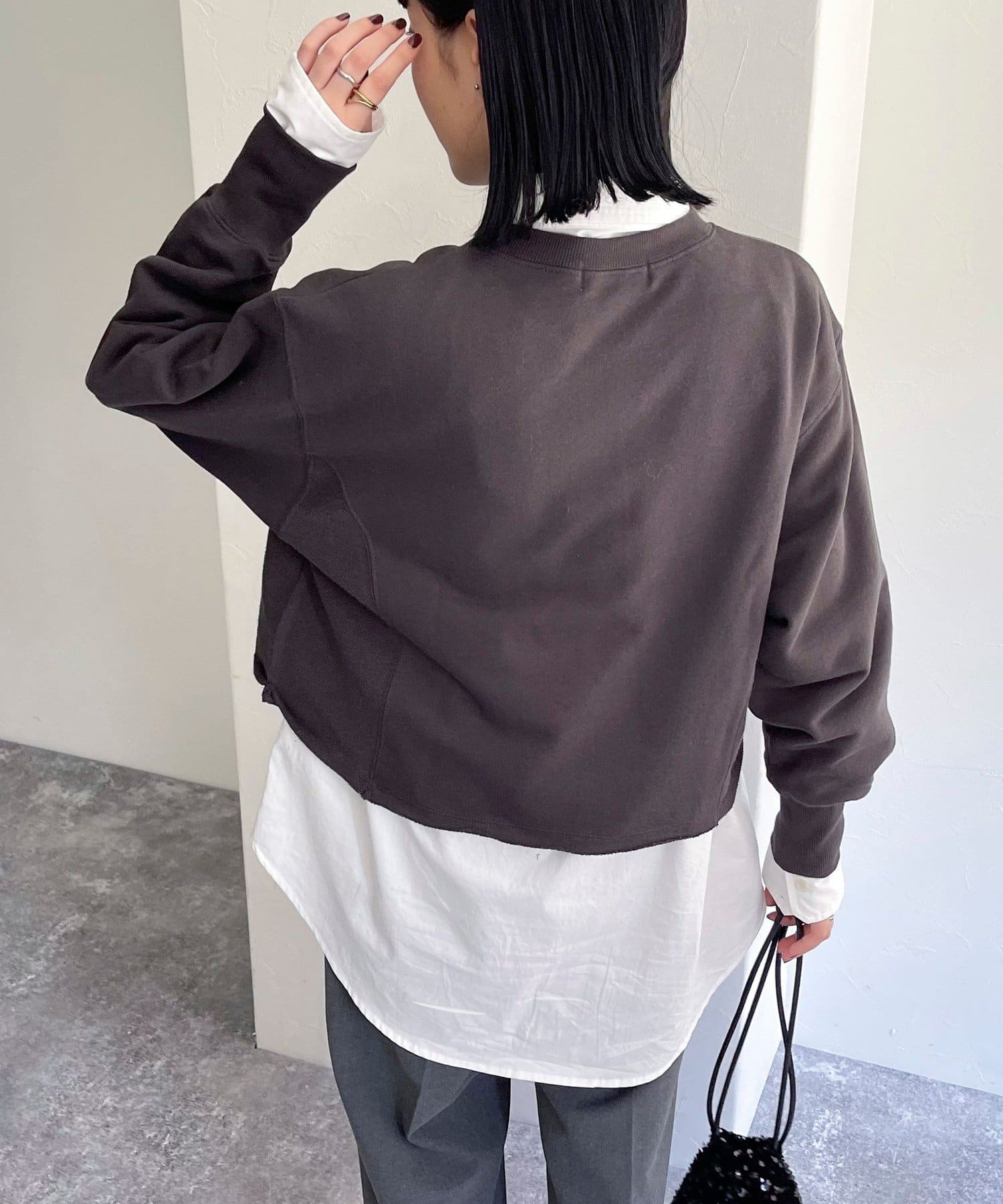 トレンド感のあるシルエットの裏毛切替クロップドプルオーバー