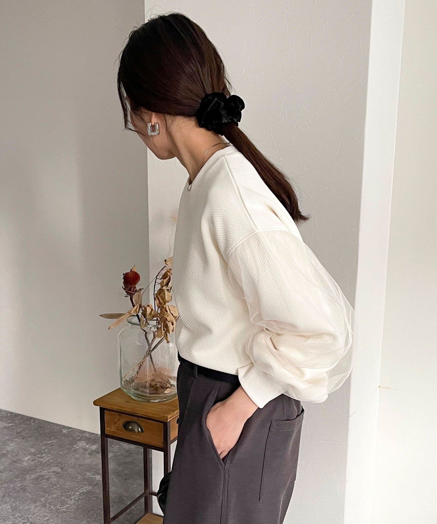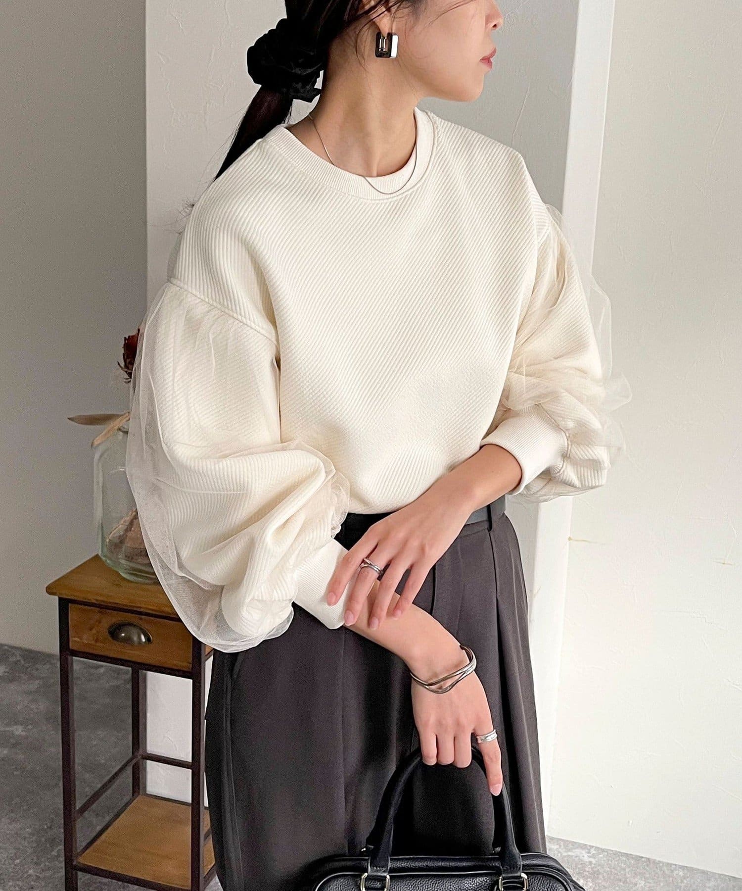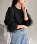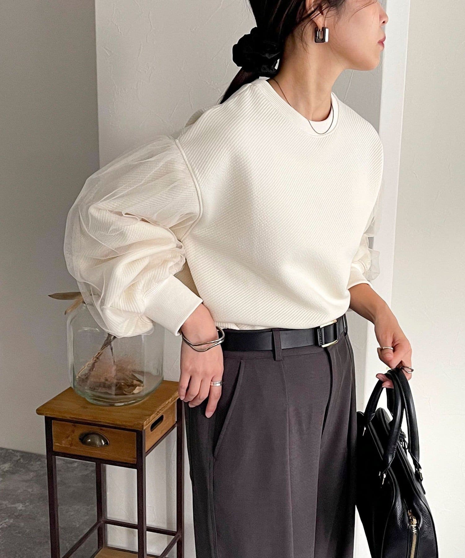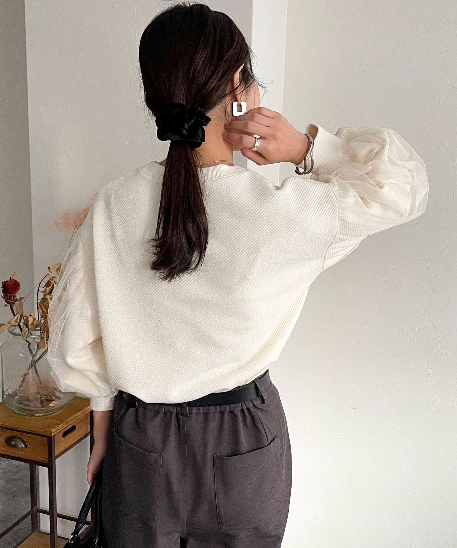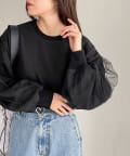 ・袖にチュールを重ねた1枚で着映えするカットソーです
