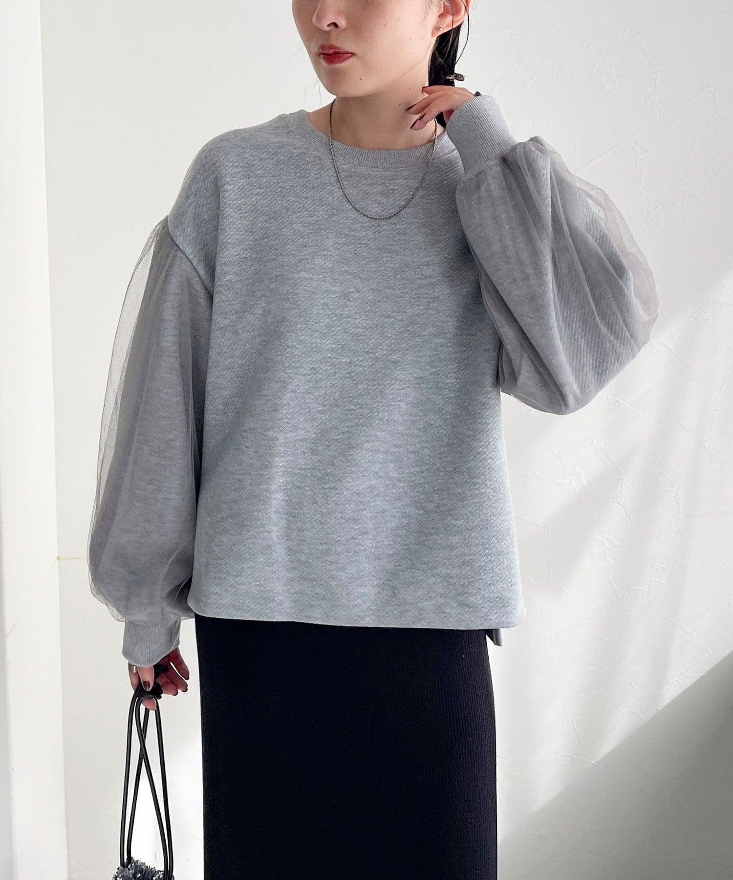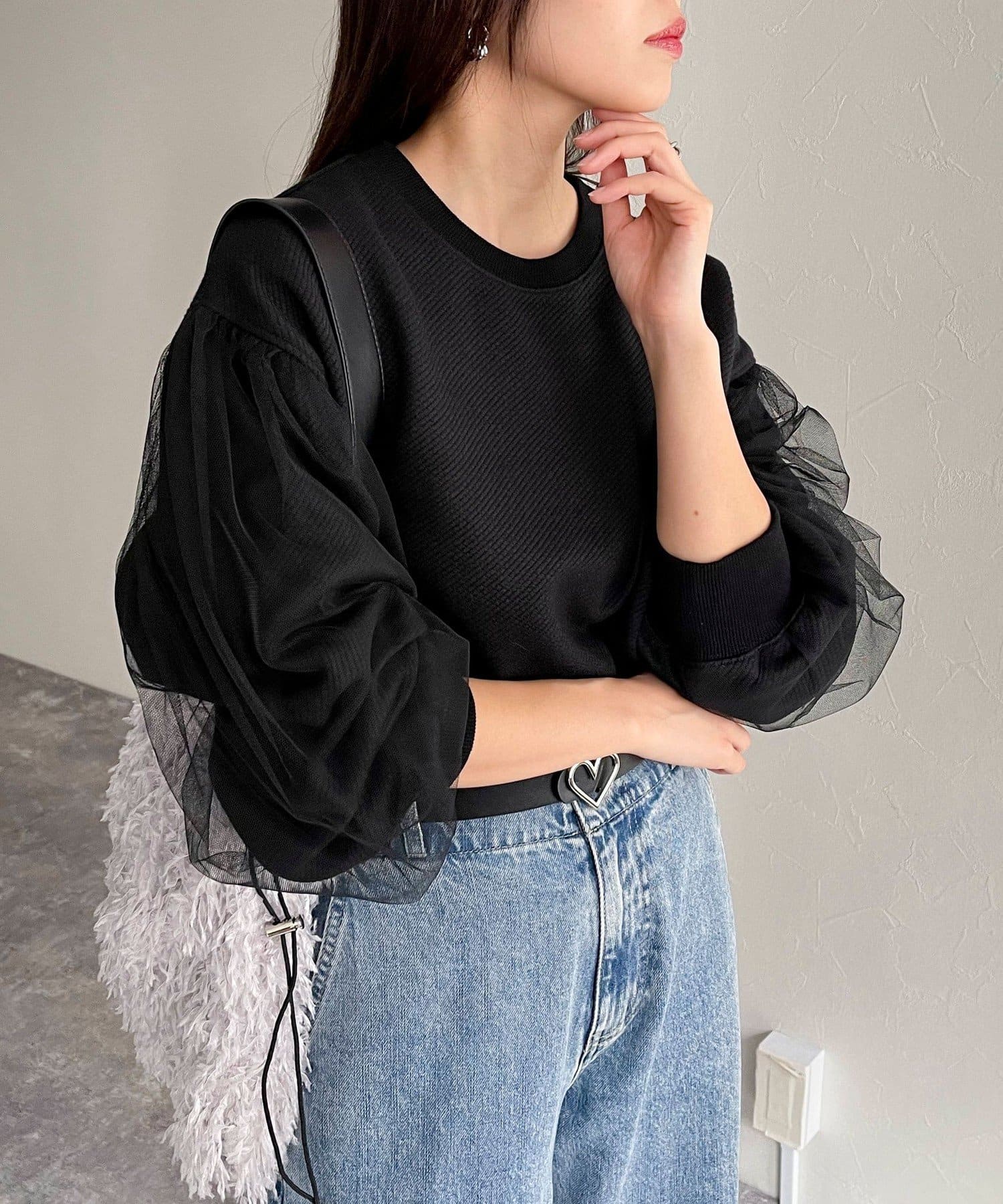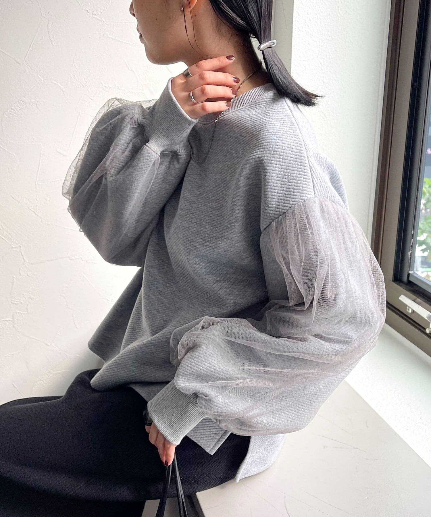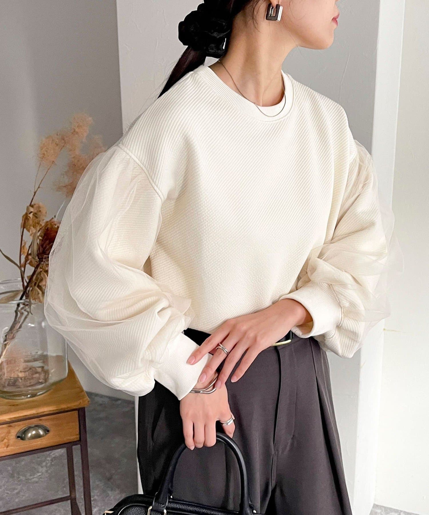 ・袖にチュールを重ねた1枚で着映えするカットソーです