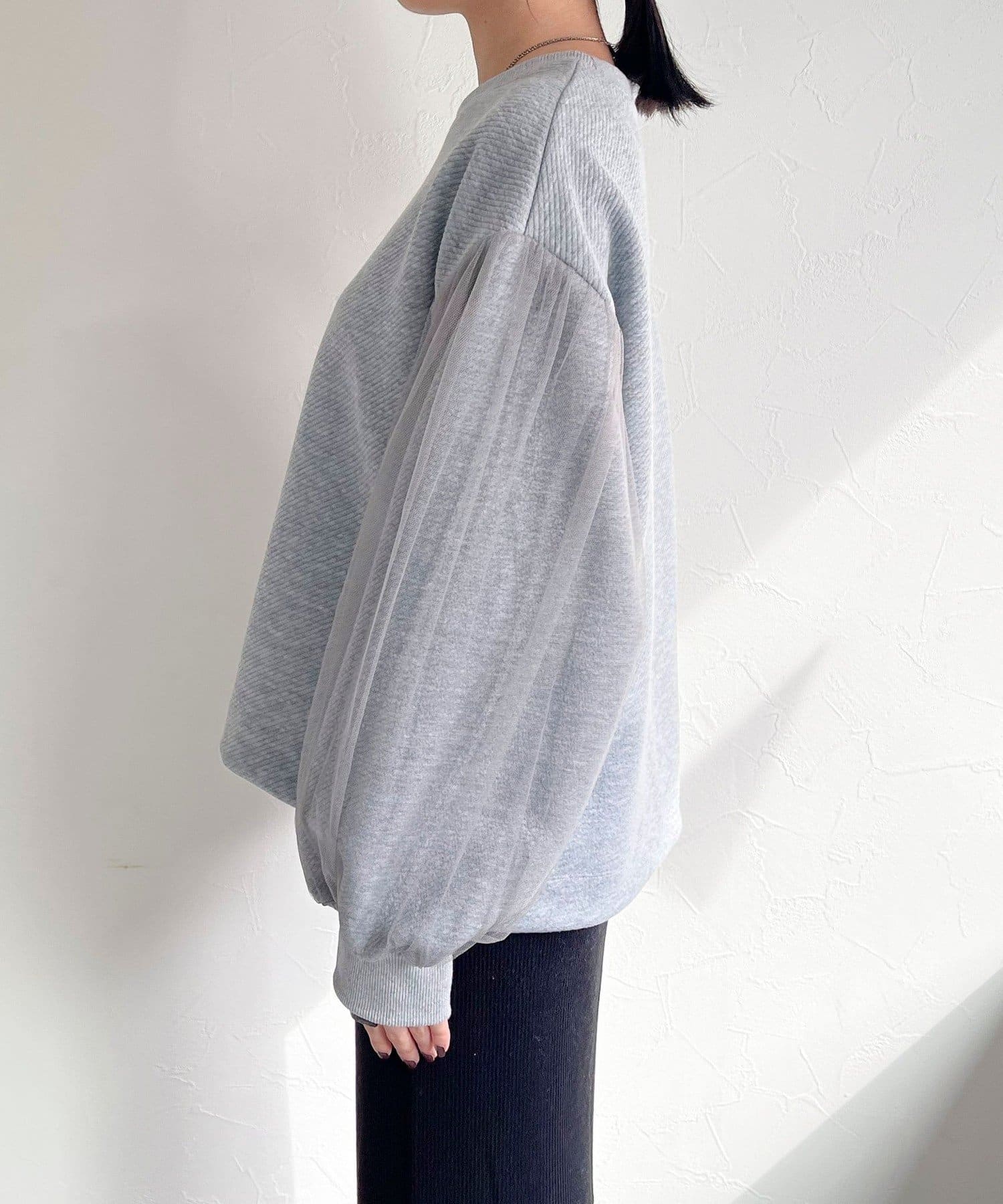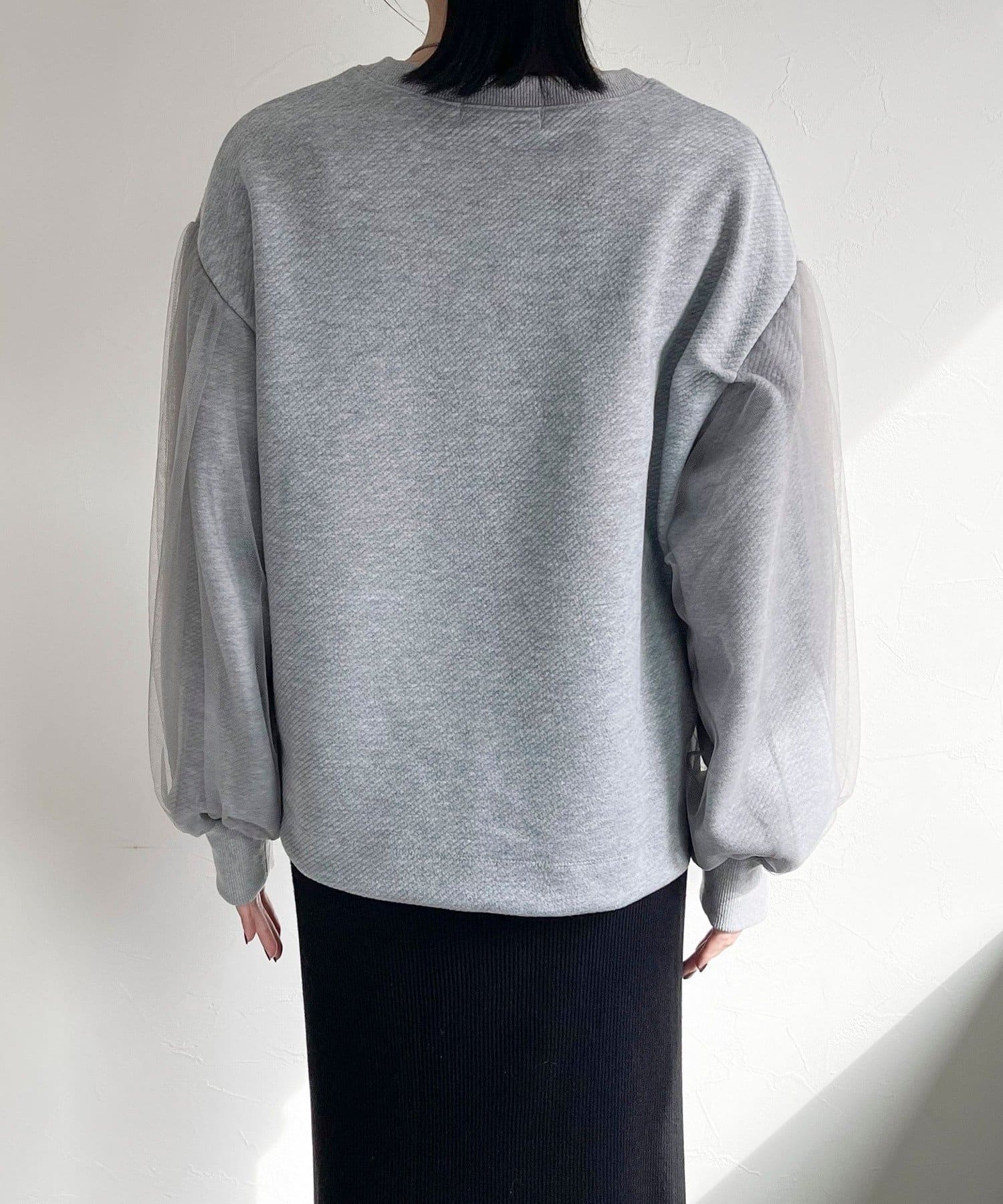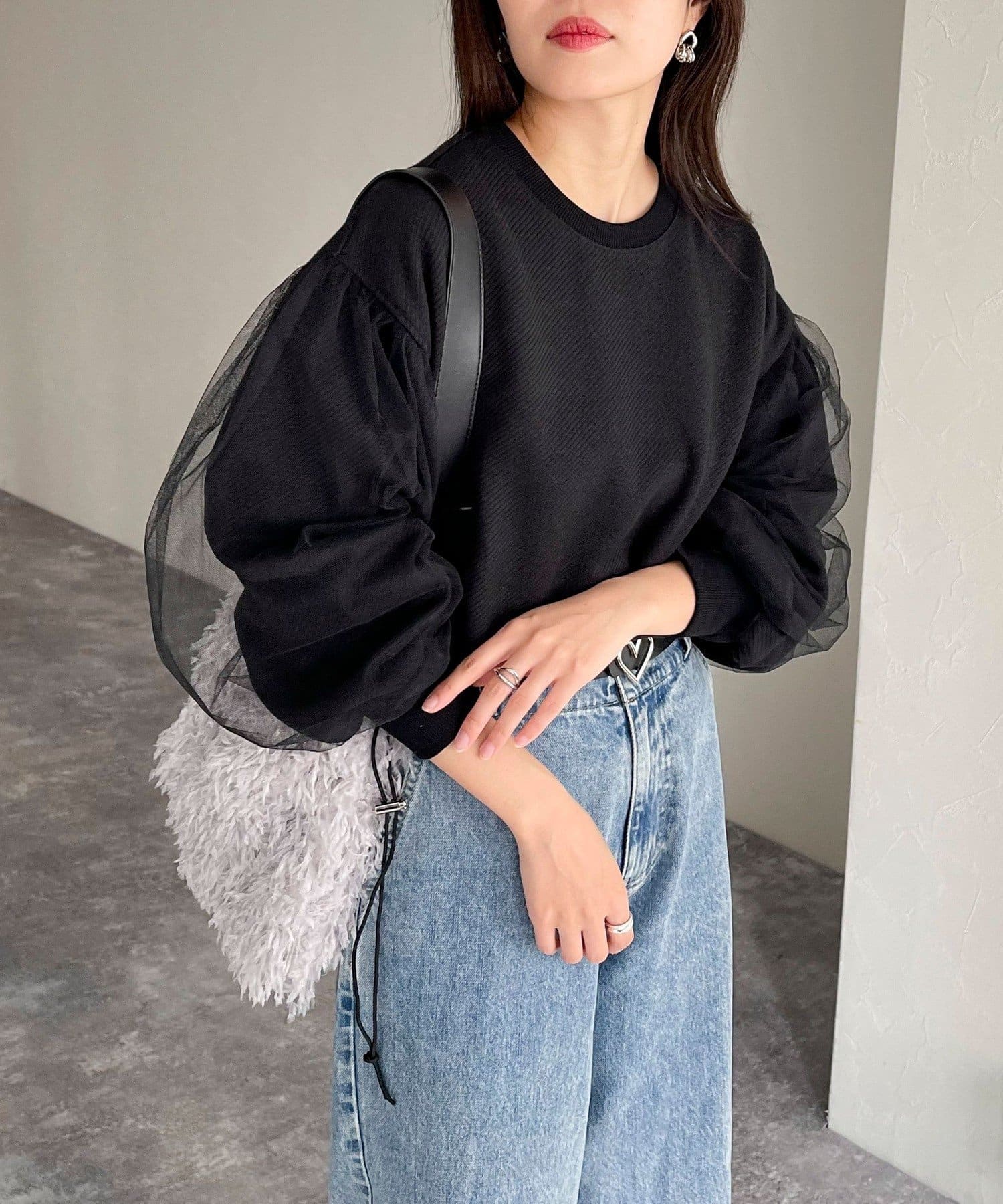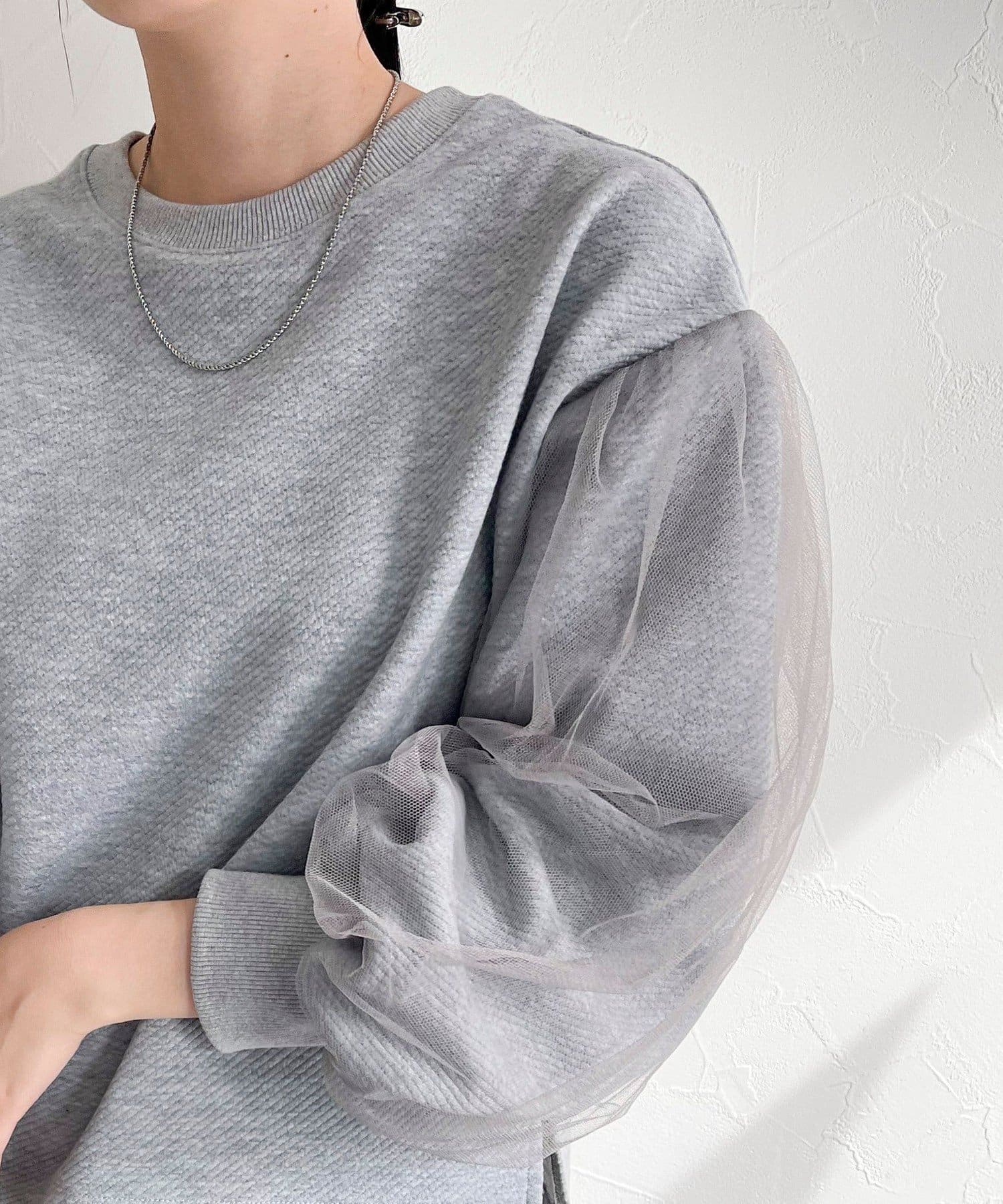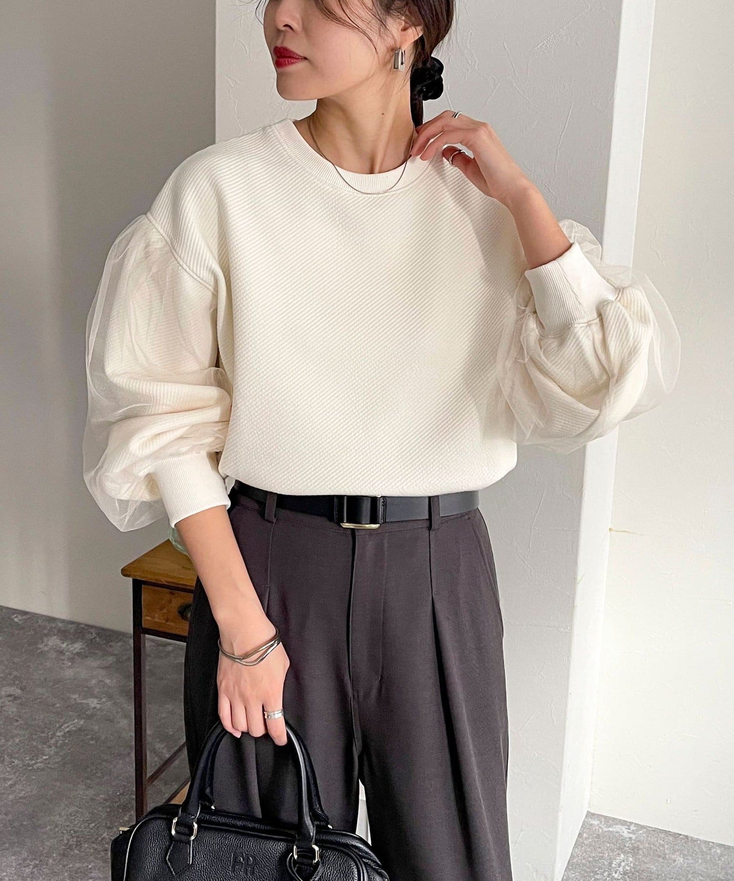 ・袖にチュールを重ねた1枚で着映えするカットソーです